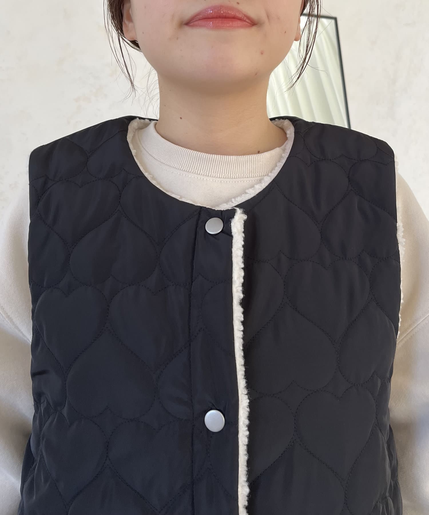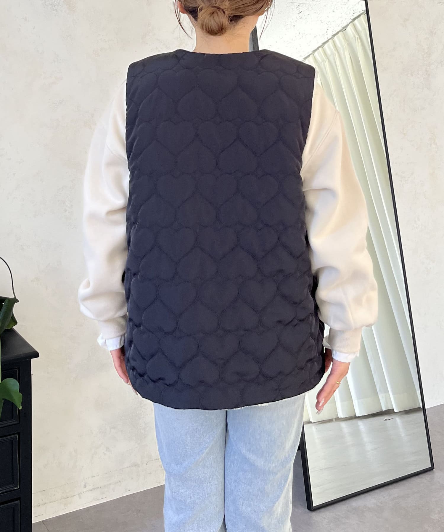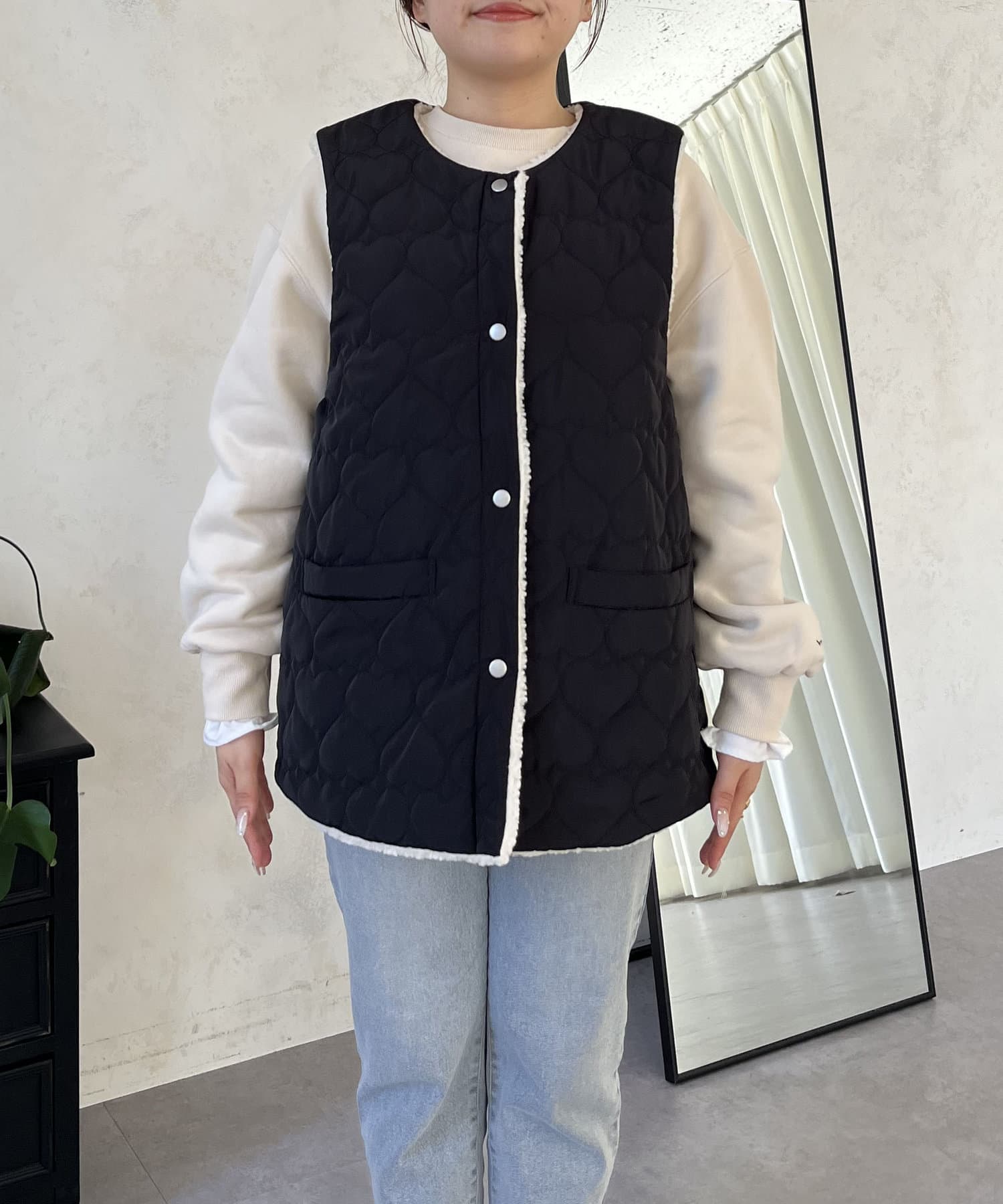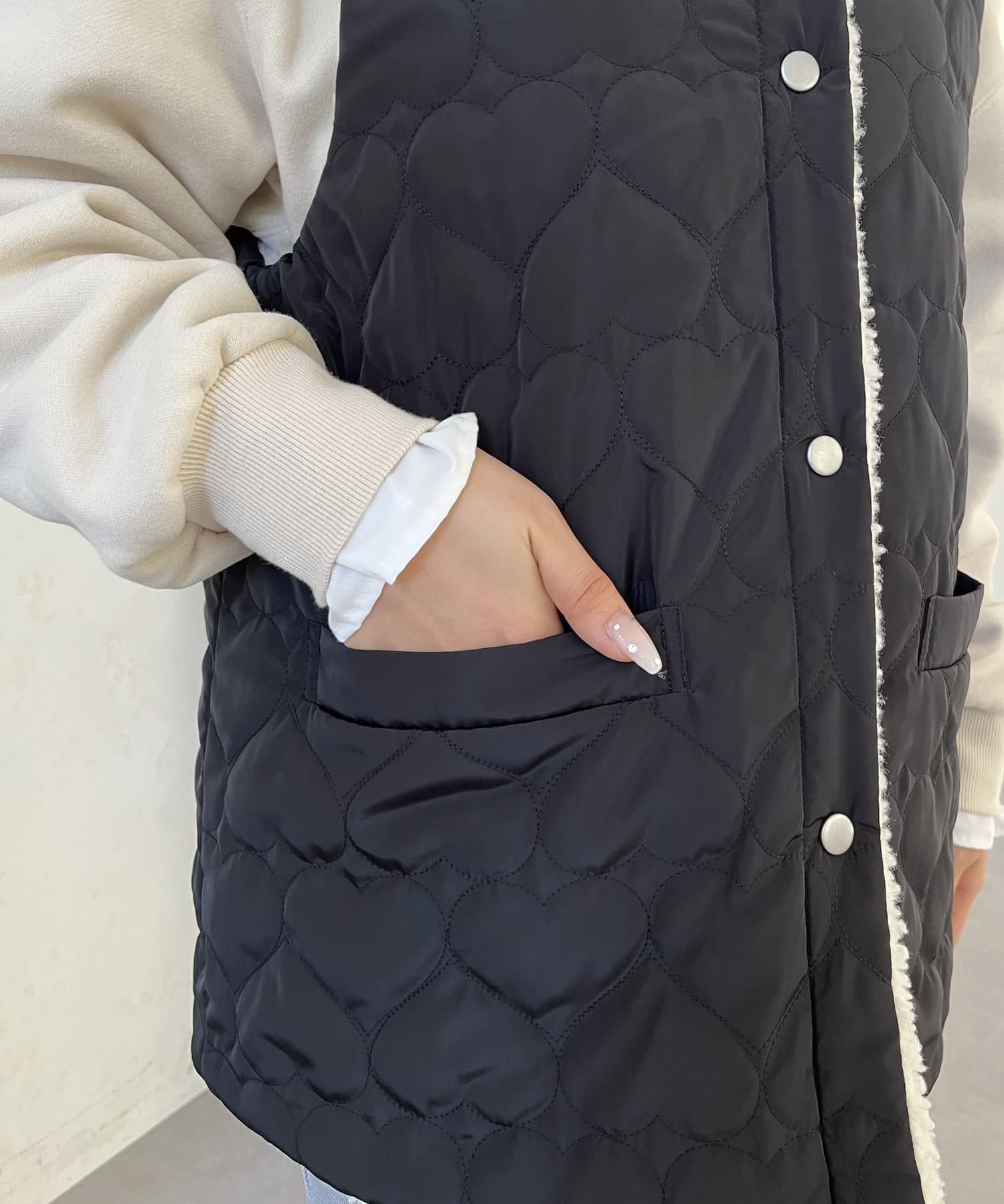 【MOMO】ボア×ハートキルティングリバーシブルベスト