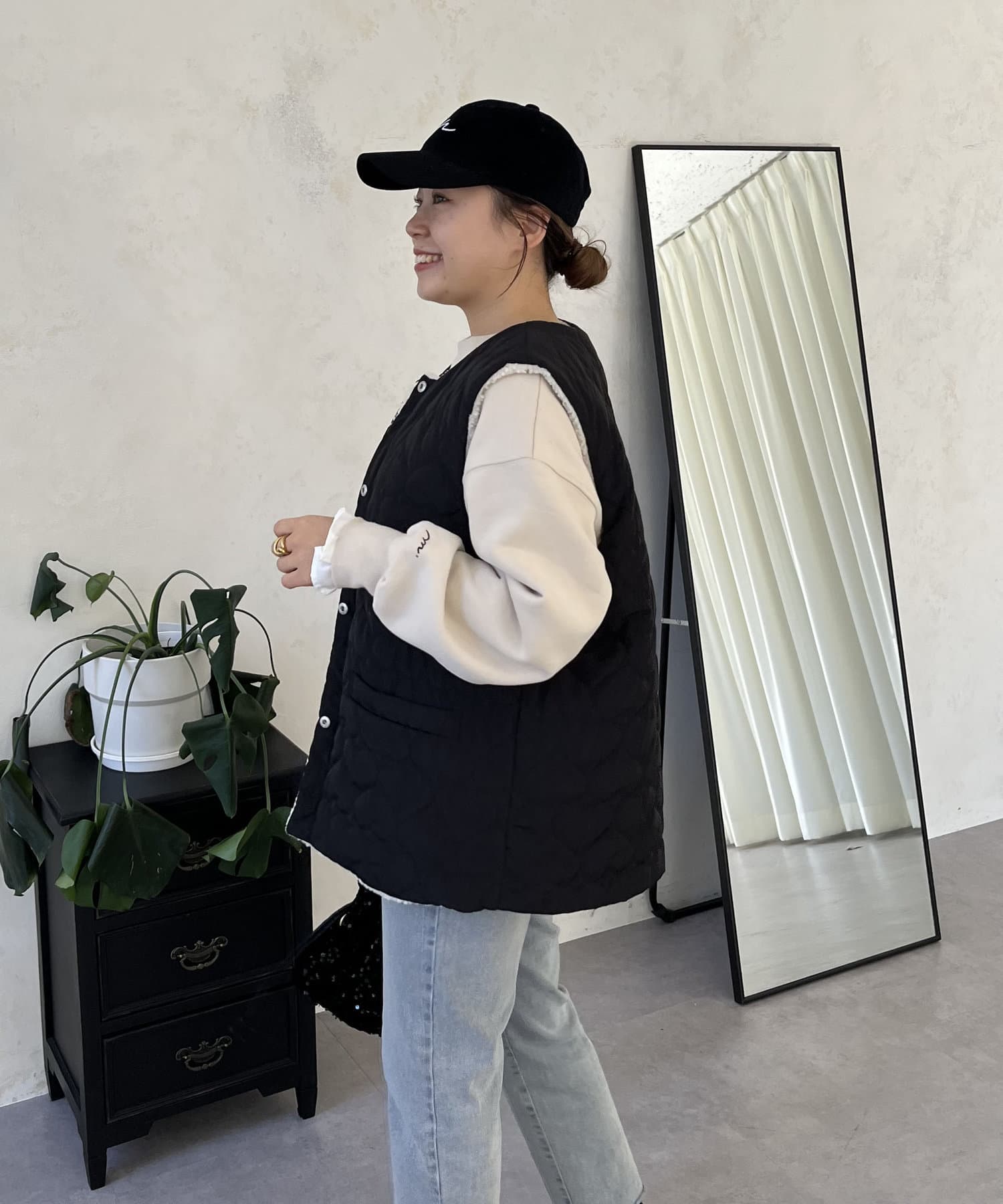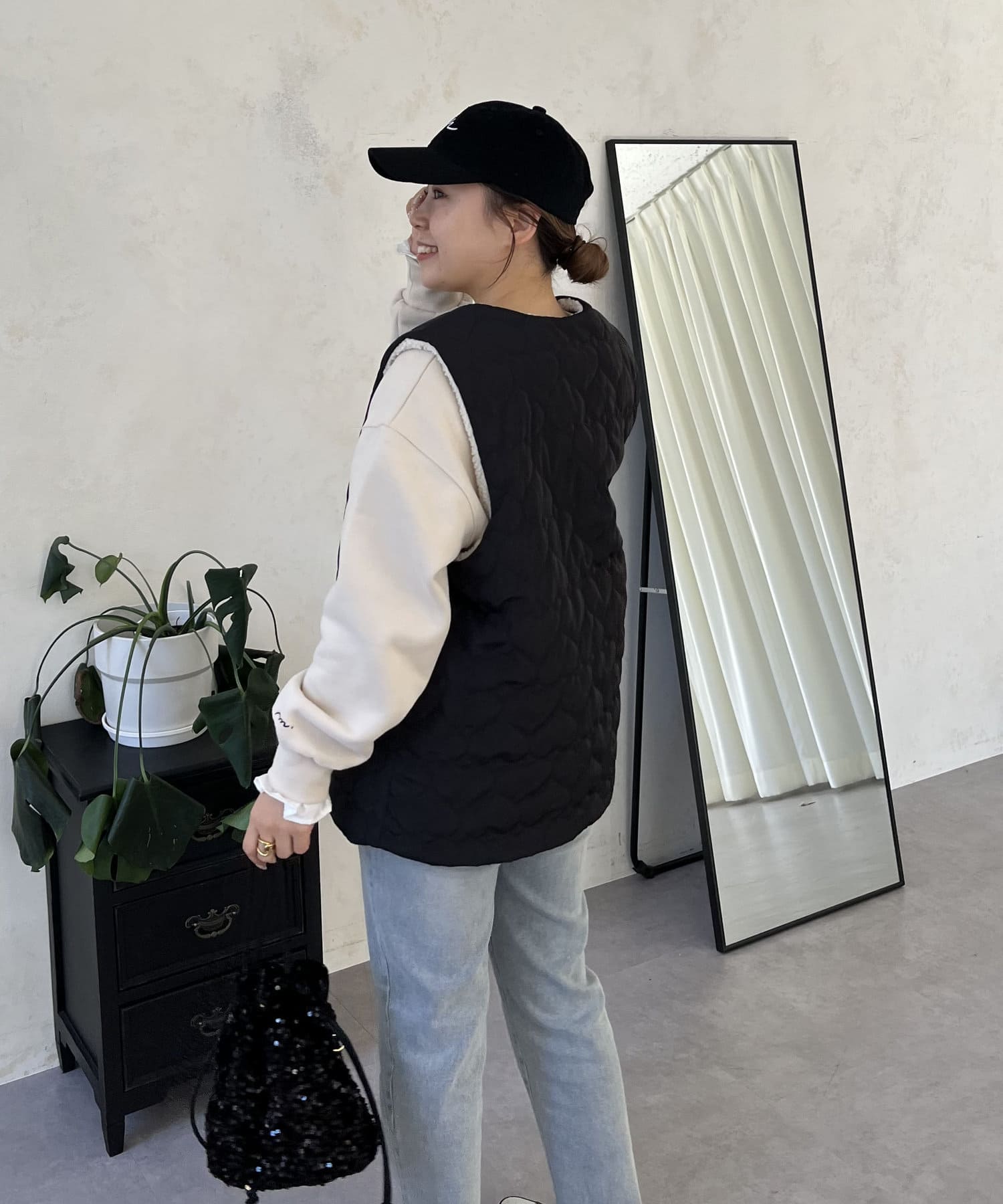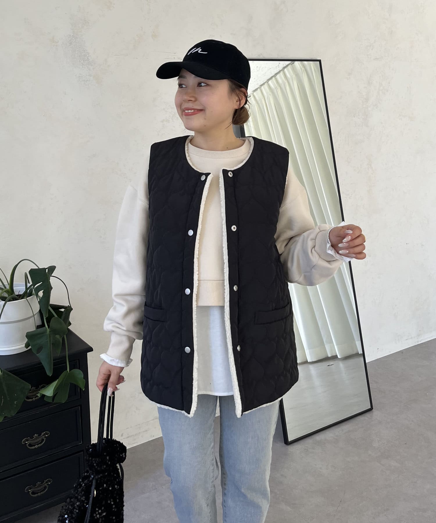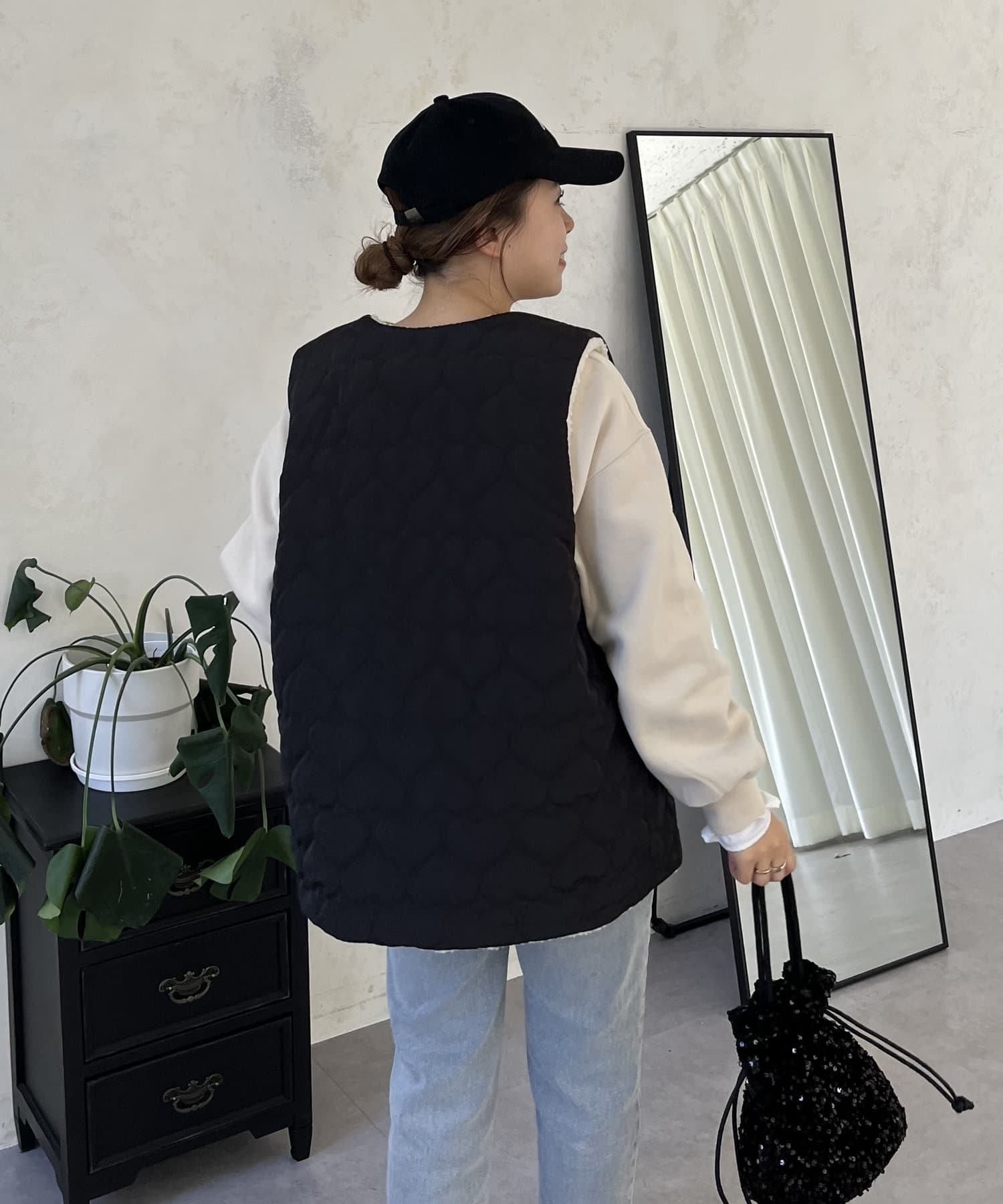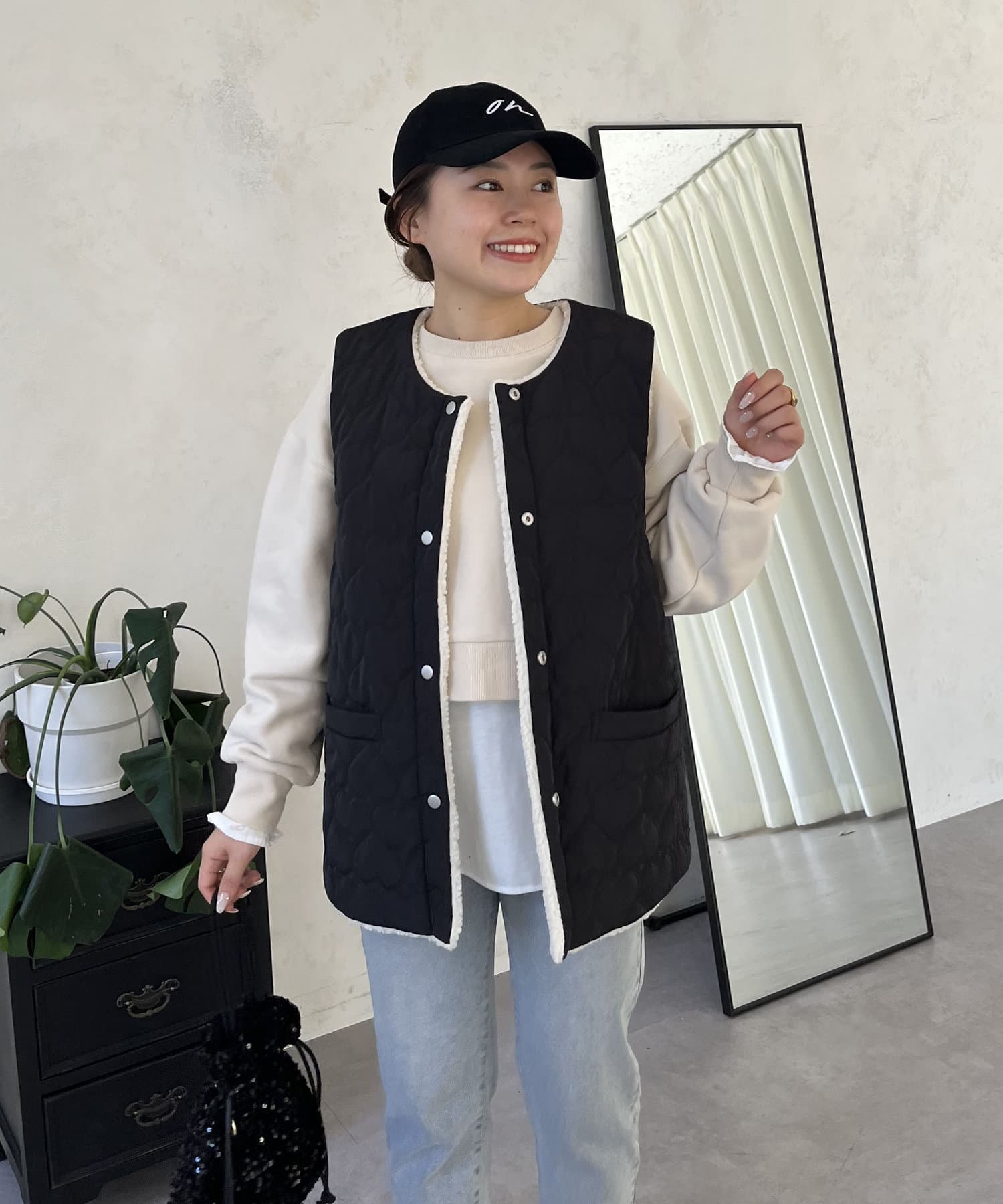 【MOMO】ボア×ハートキルティングリバーシブルベスト