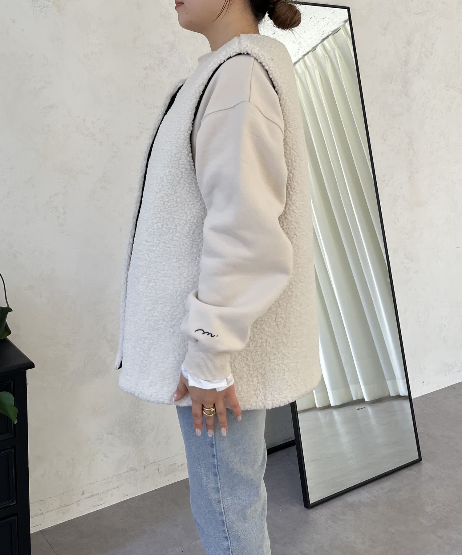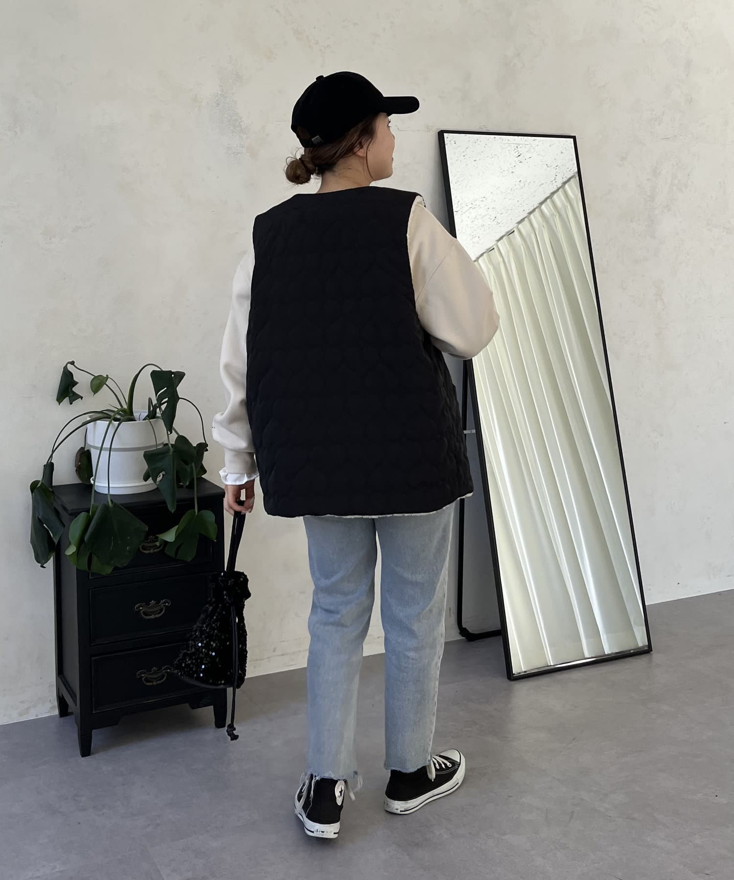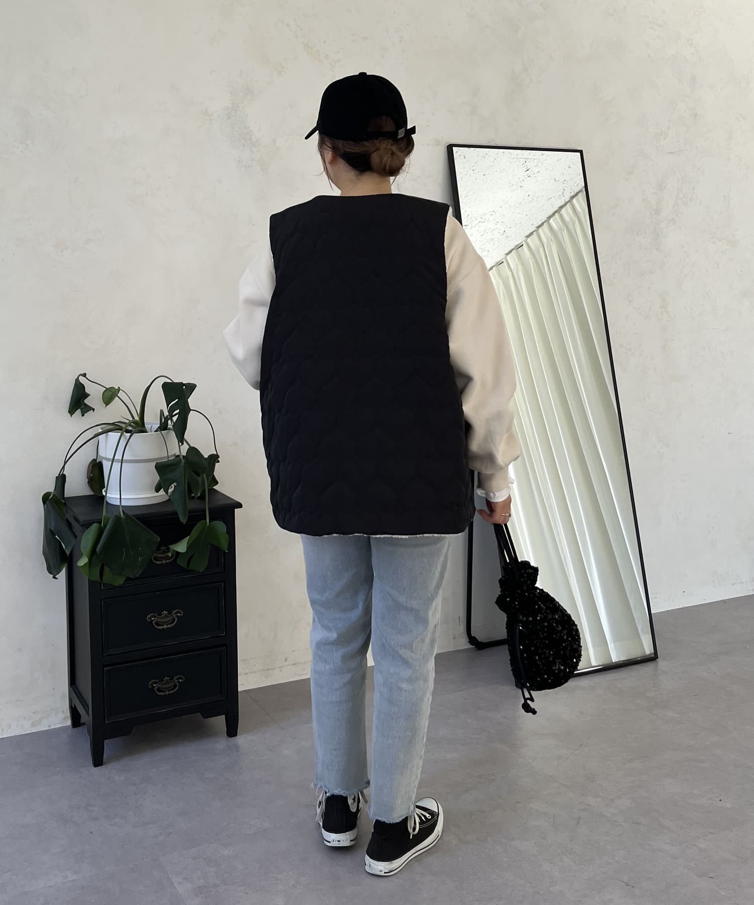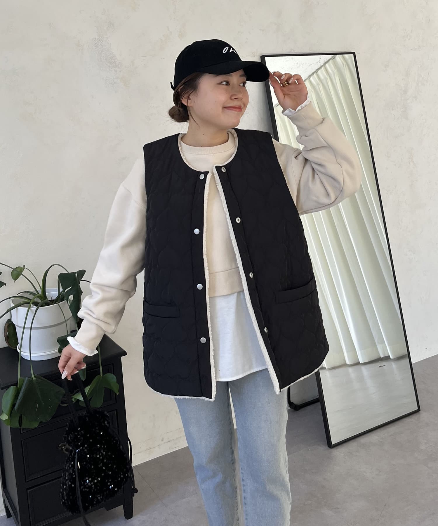 【MOMO】ボア×ハートキルティングリバーシブルベスト
