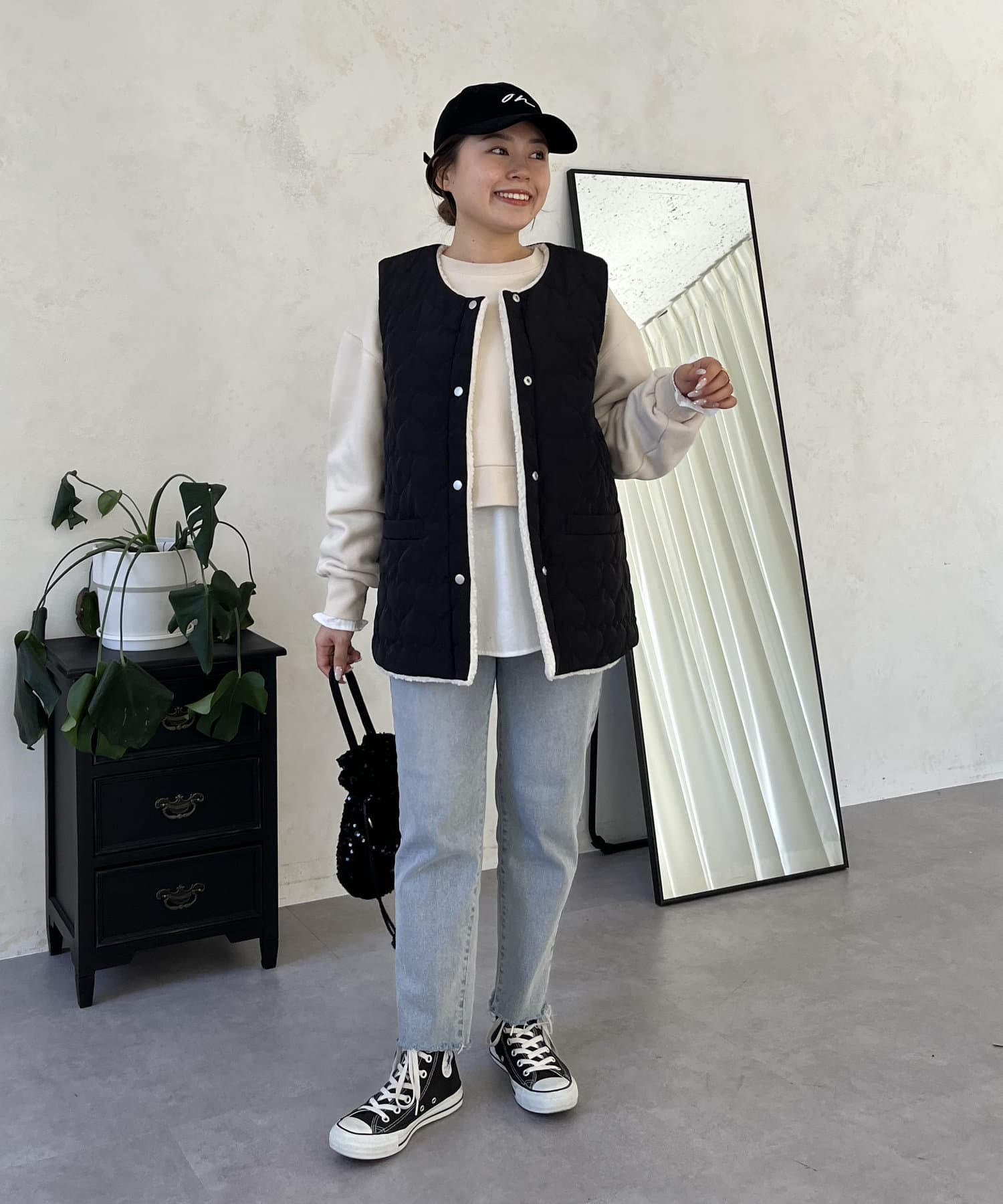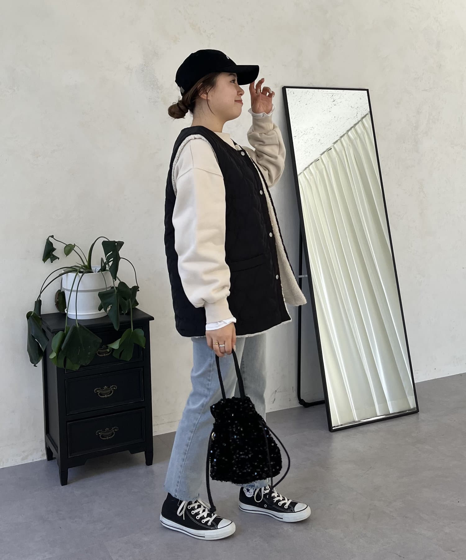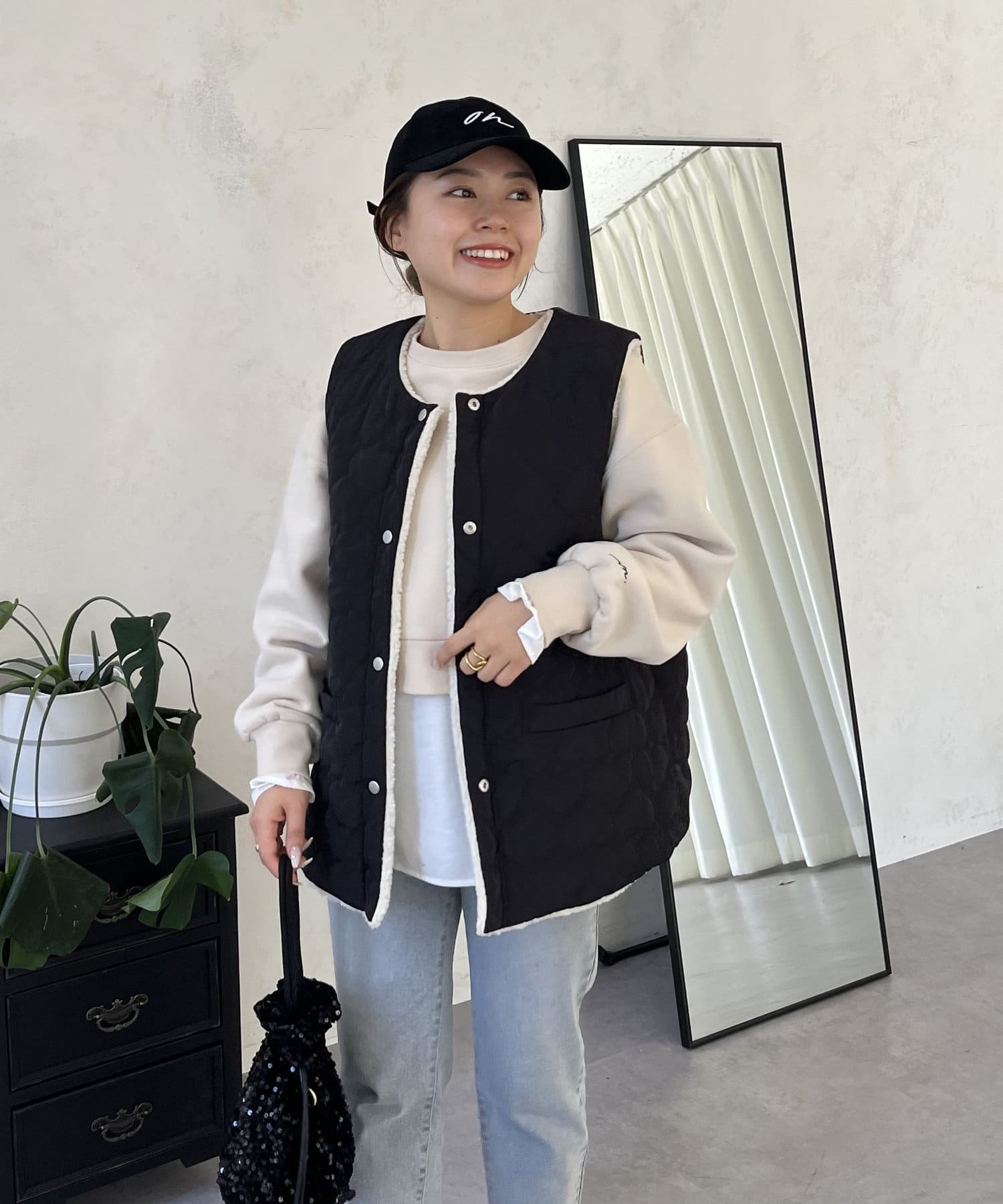 ボア/キルティング/ベスト/2way/大人カジュアル