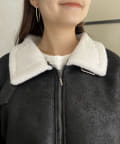 ボアフェイクレザー/ミドル丈/大人カジュアル/フライトジャケット