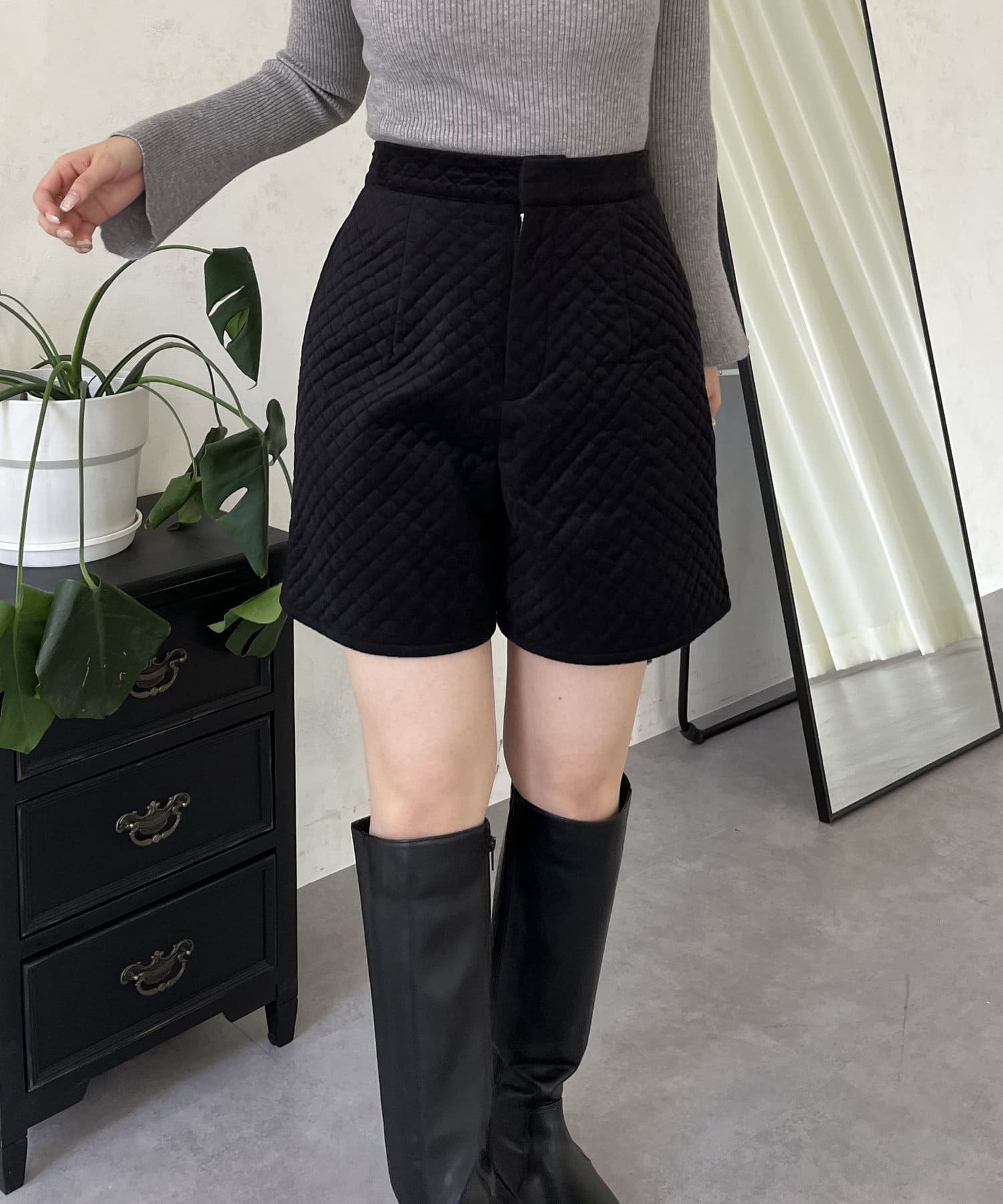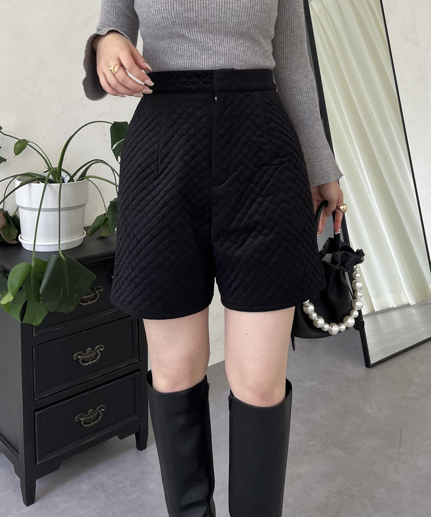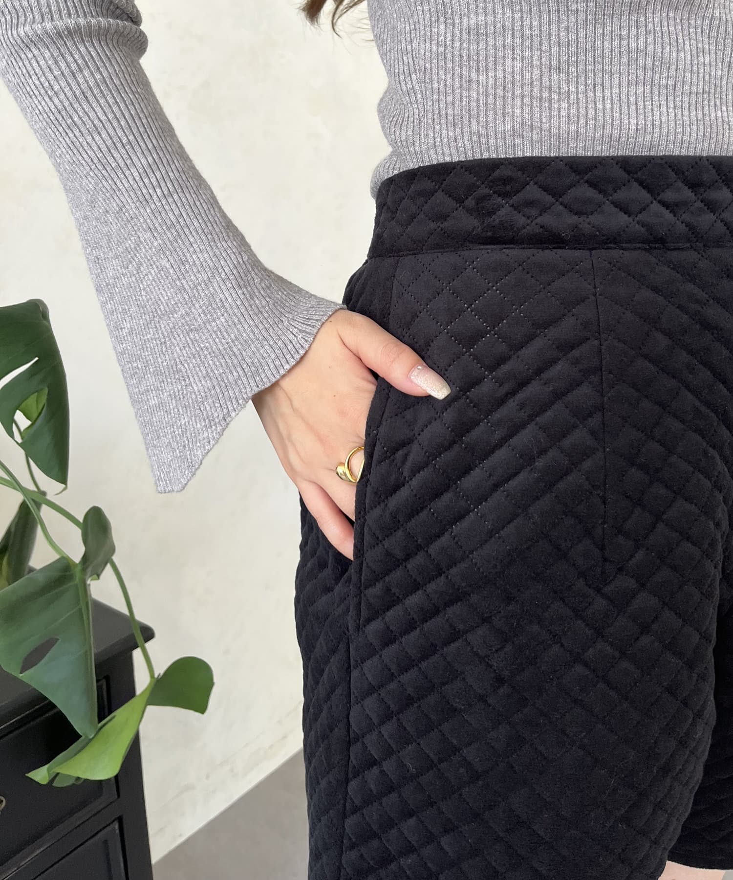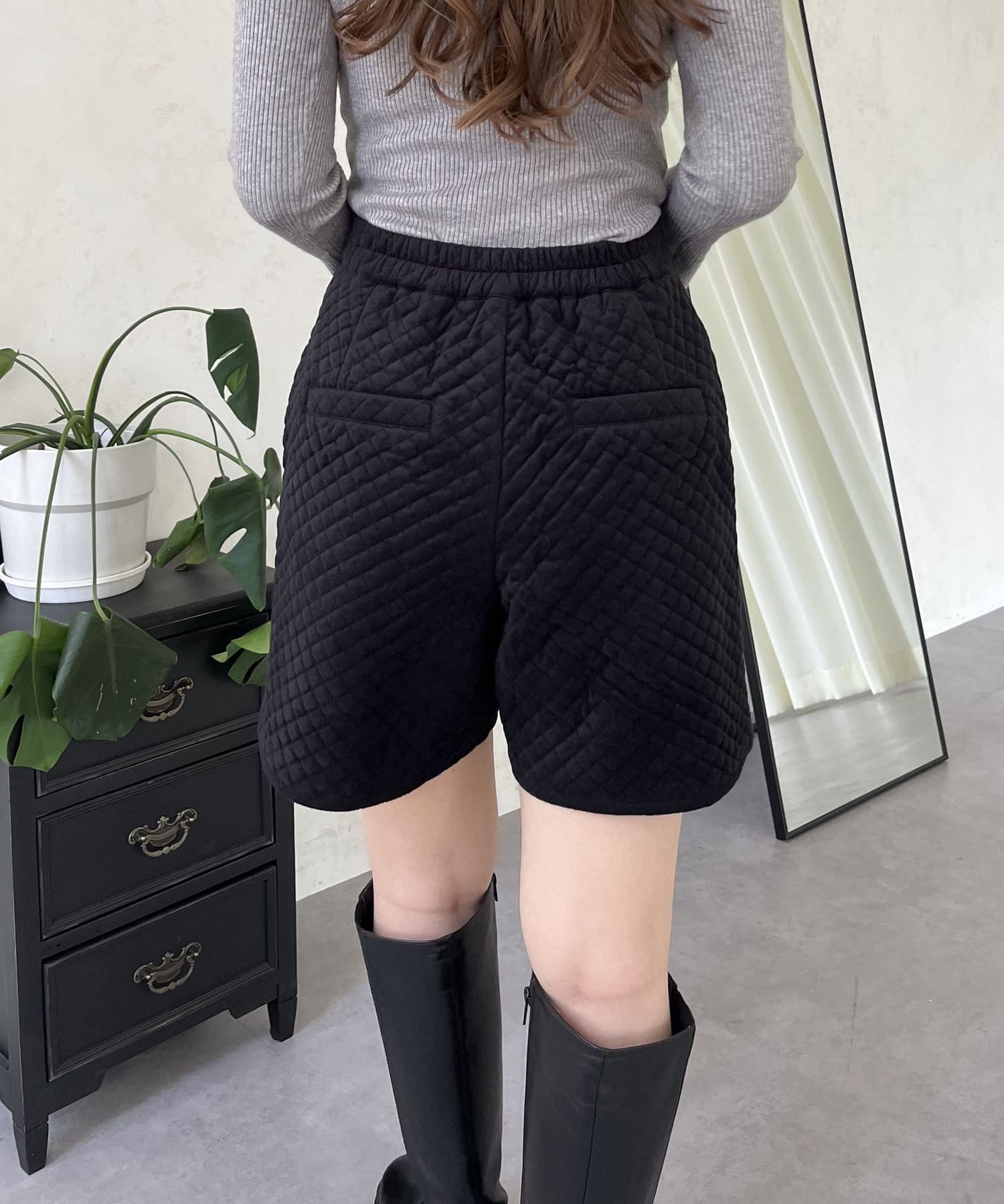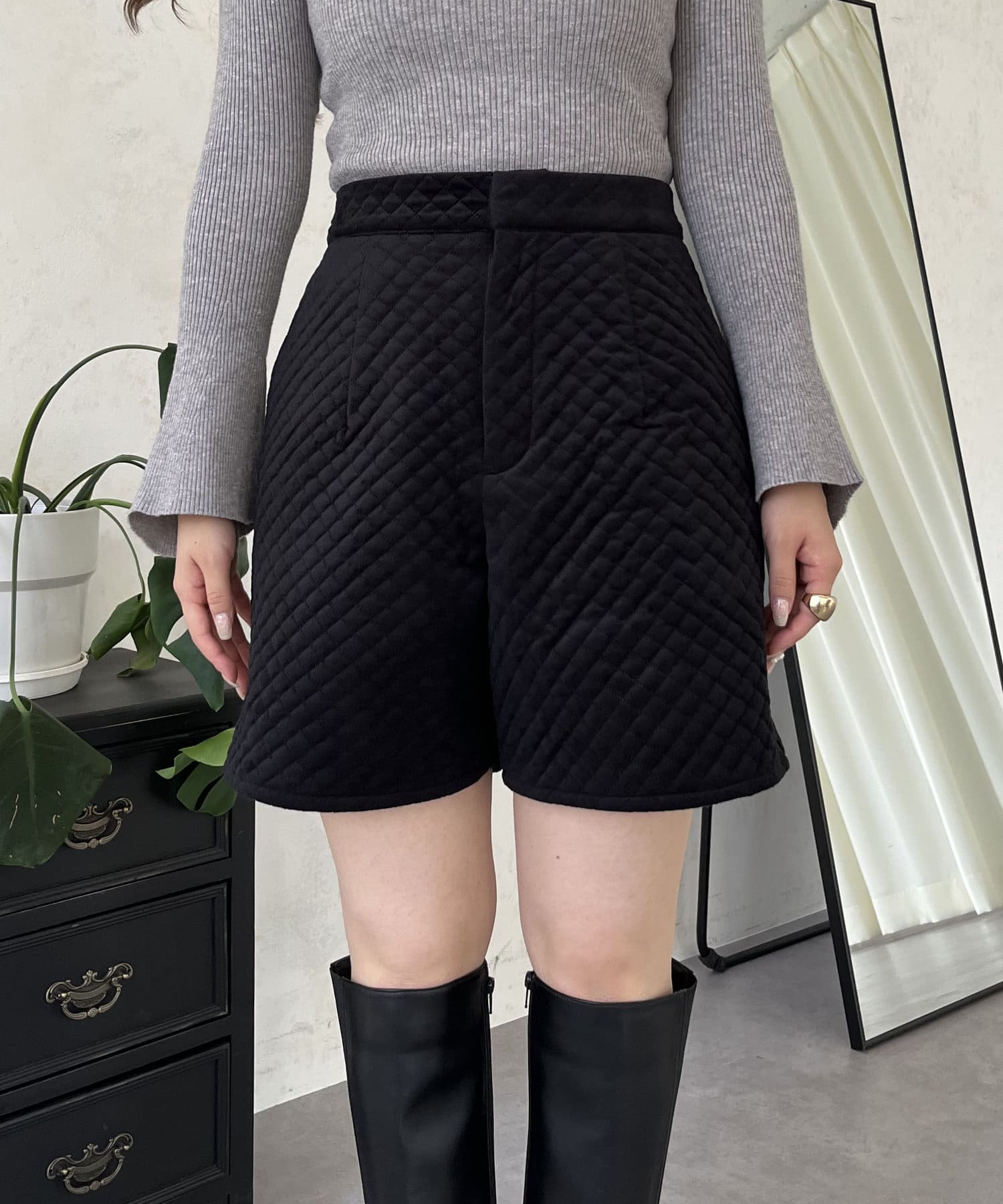 ベロア素材がときめくキルティングショートパンツ