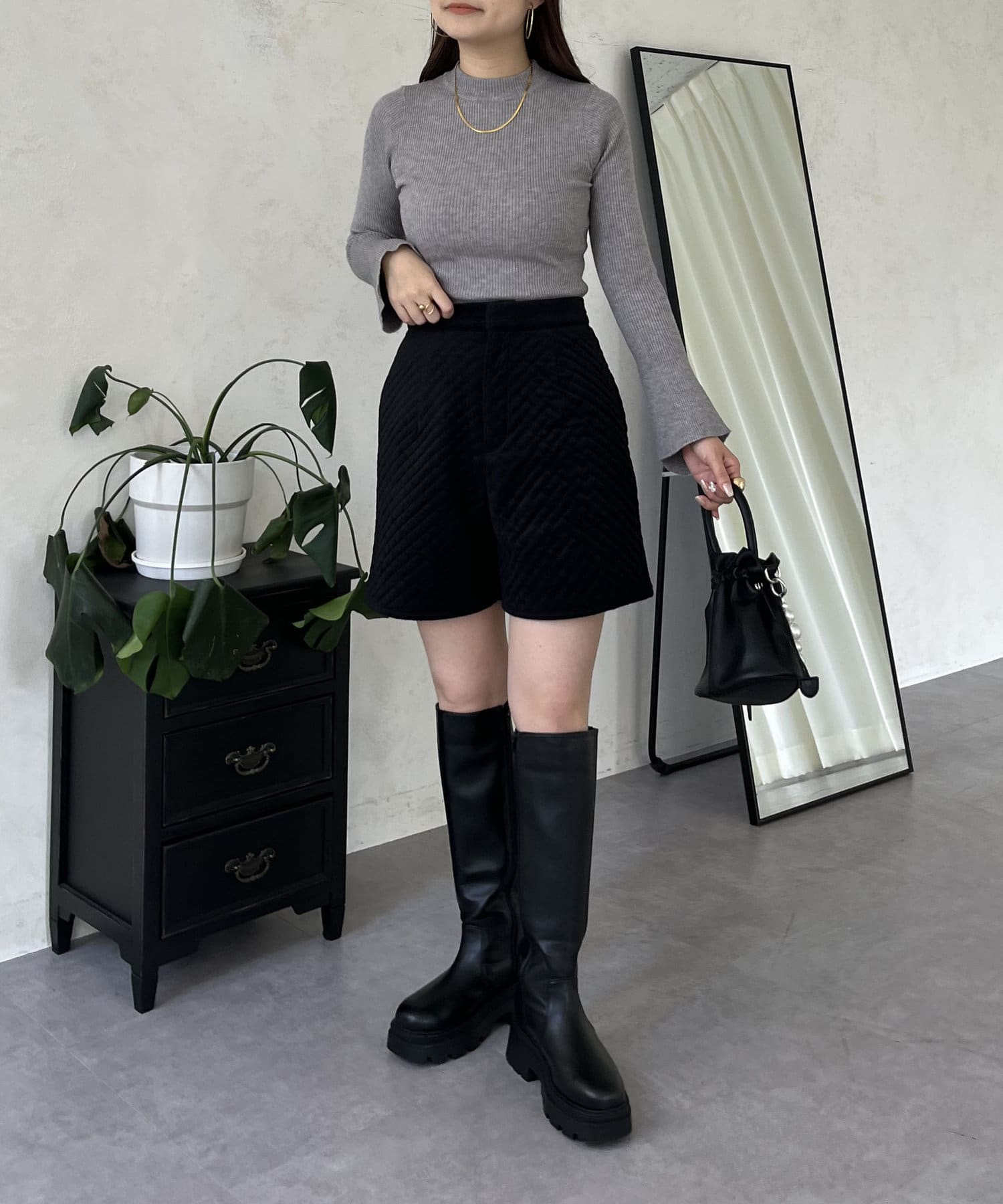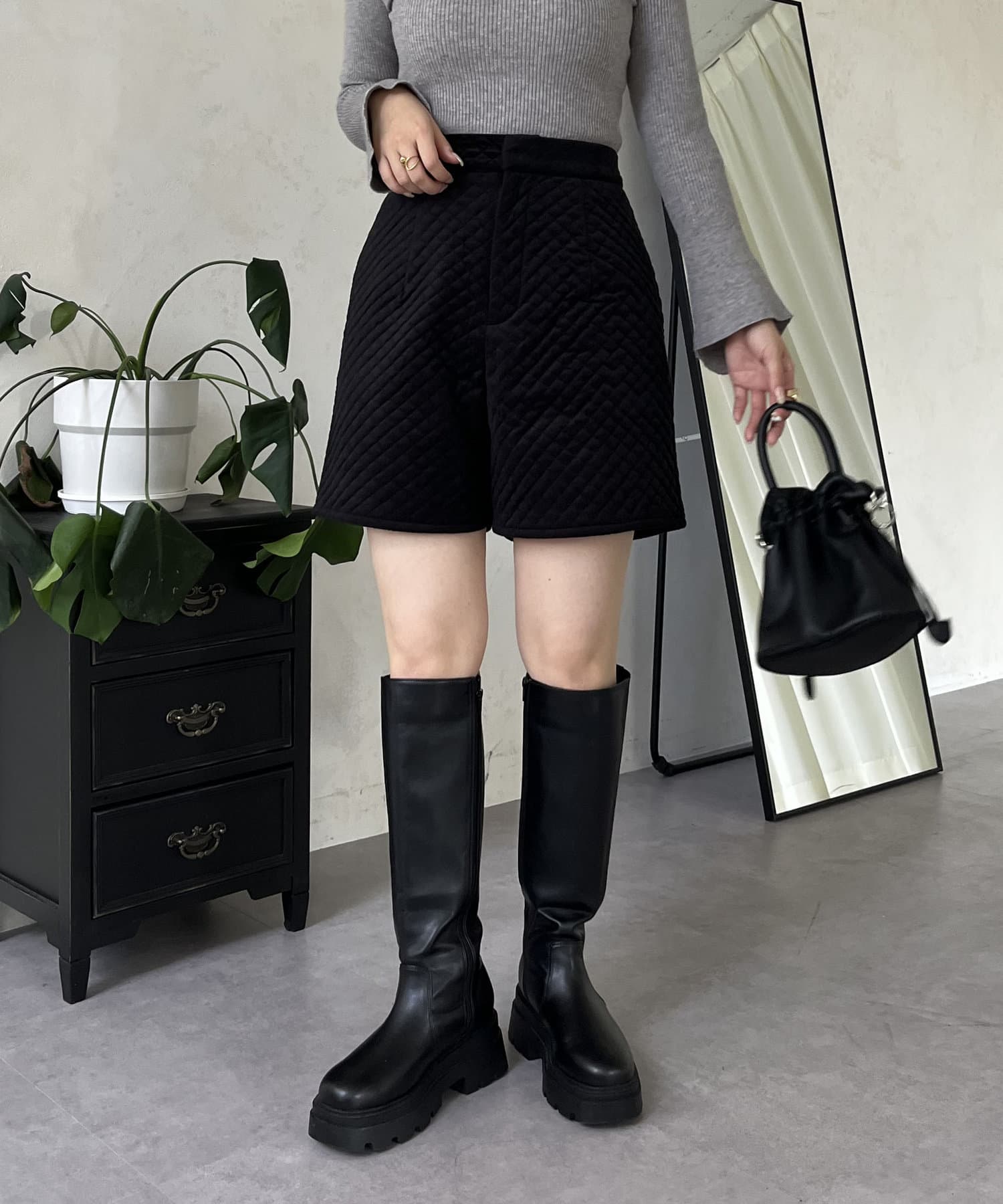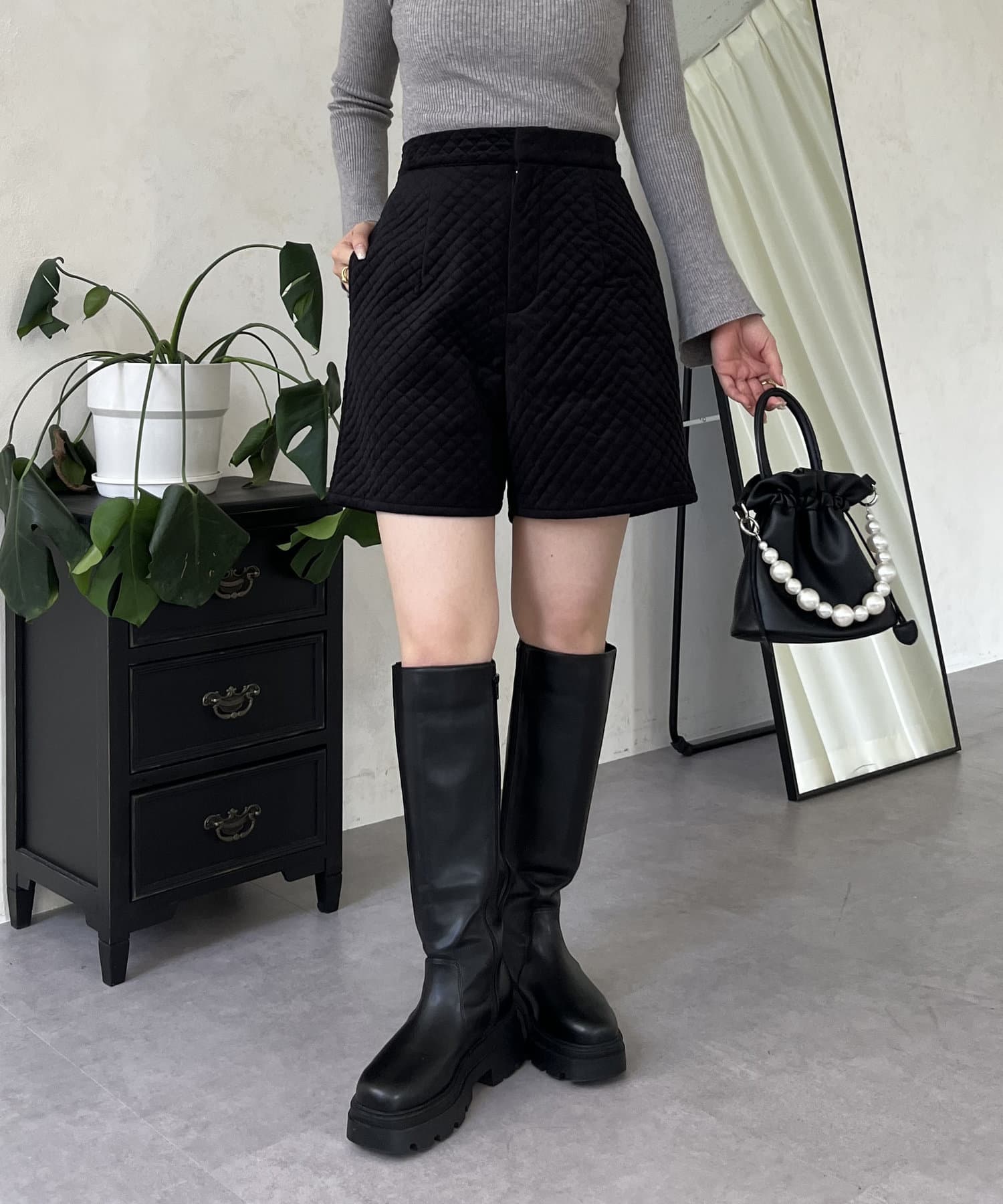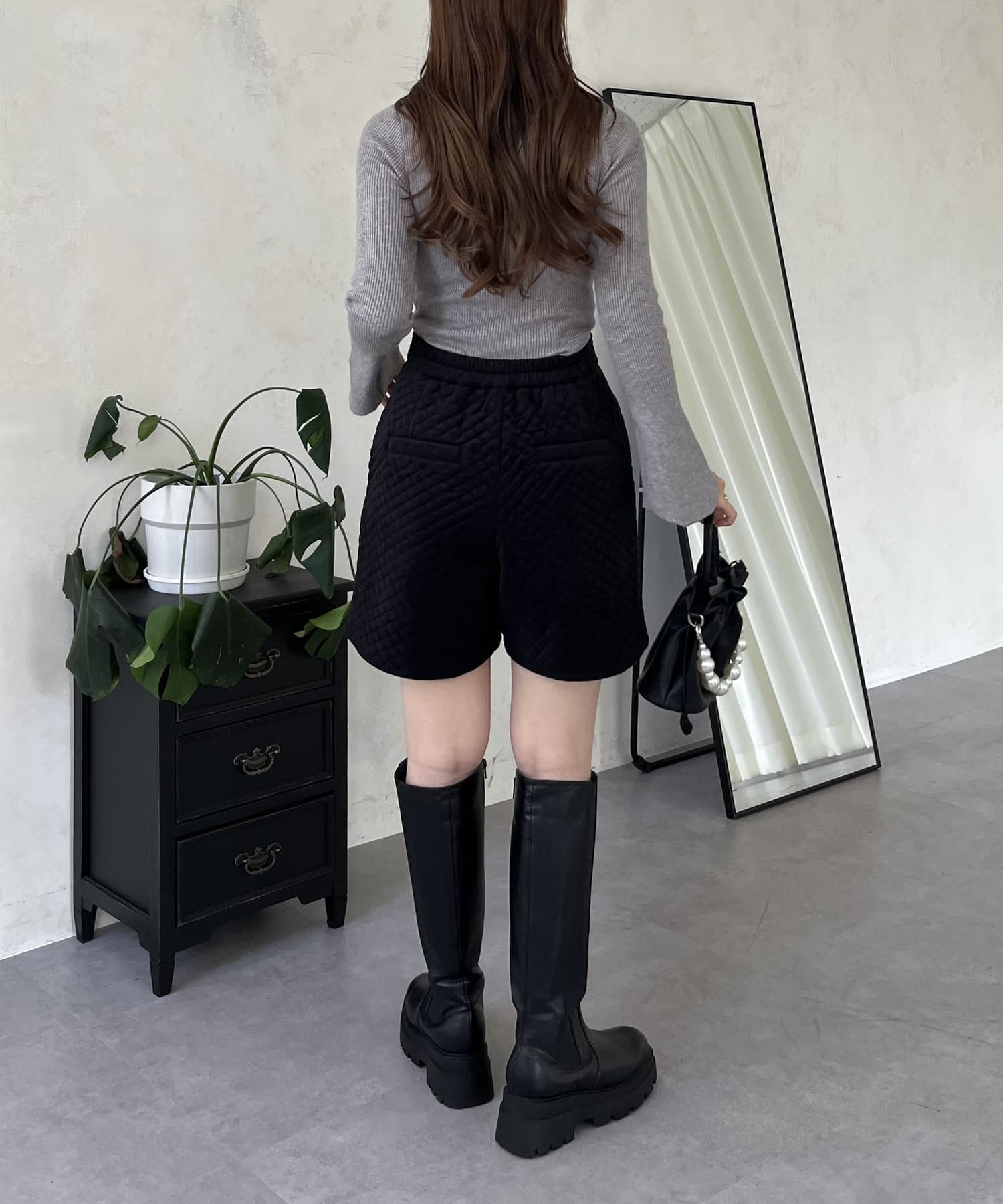 ベロア素材がときめくキルティングショートパンツ