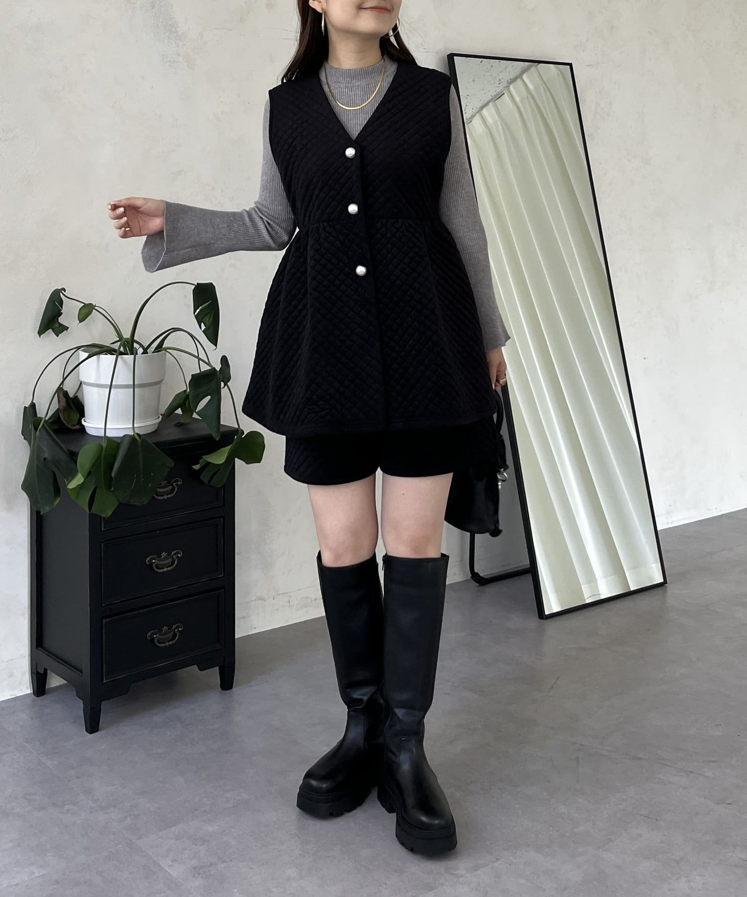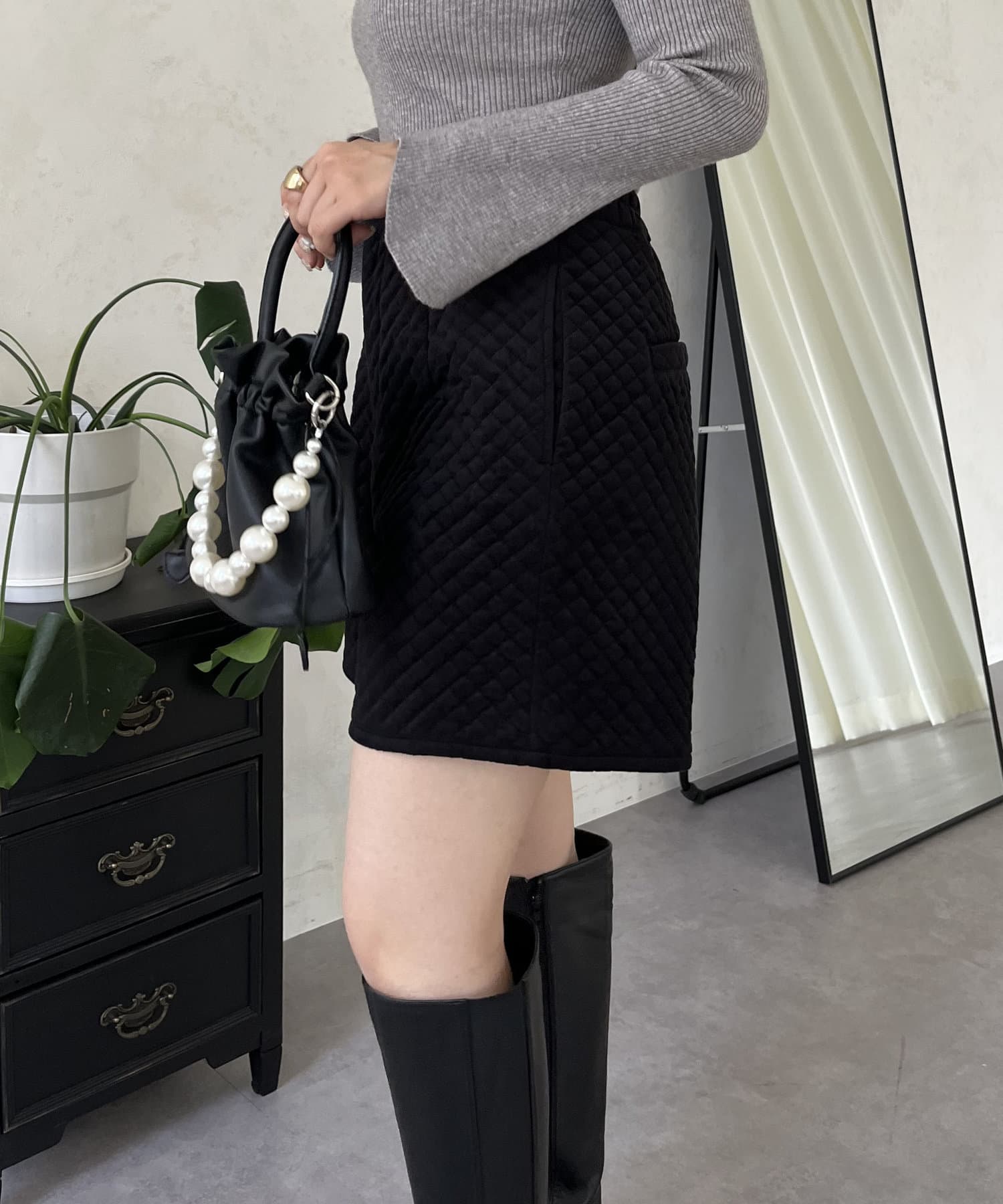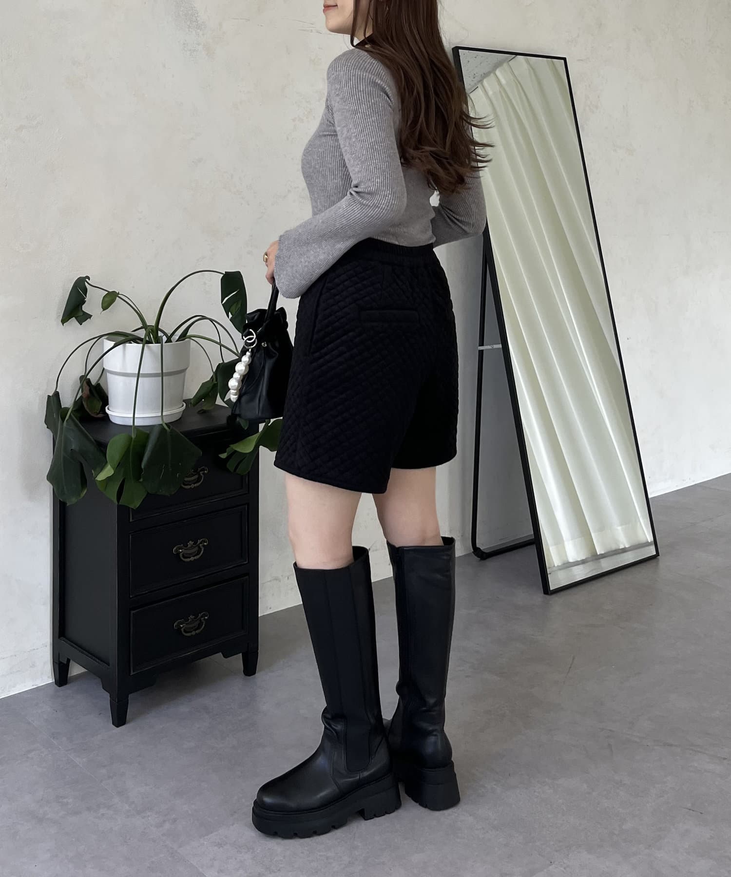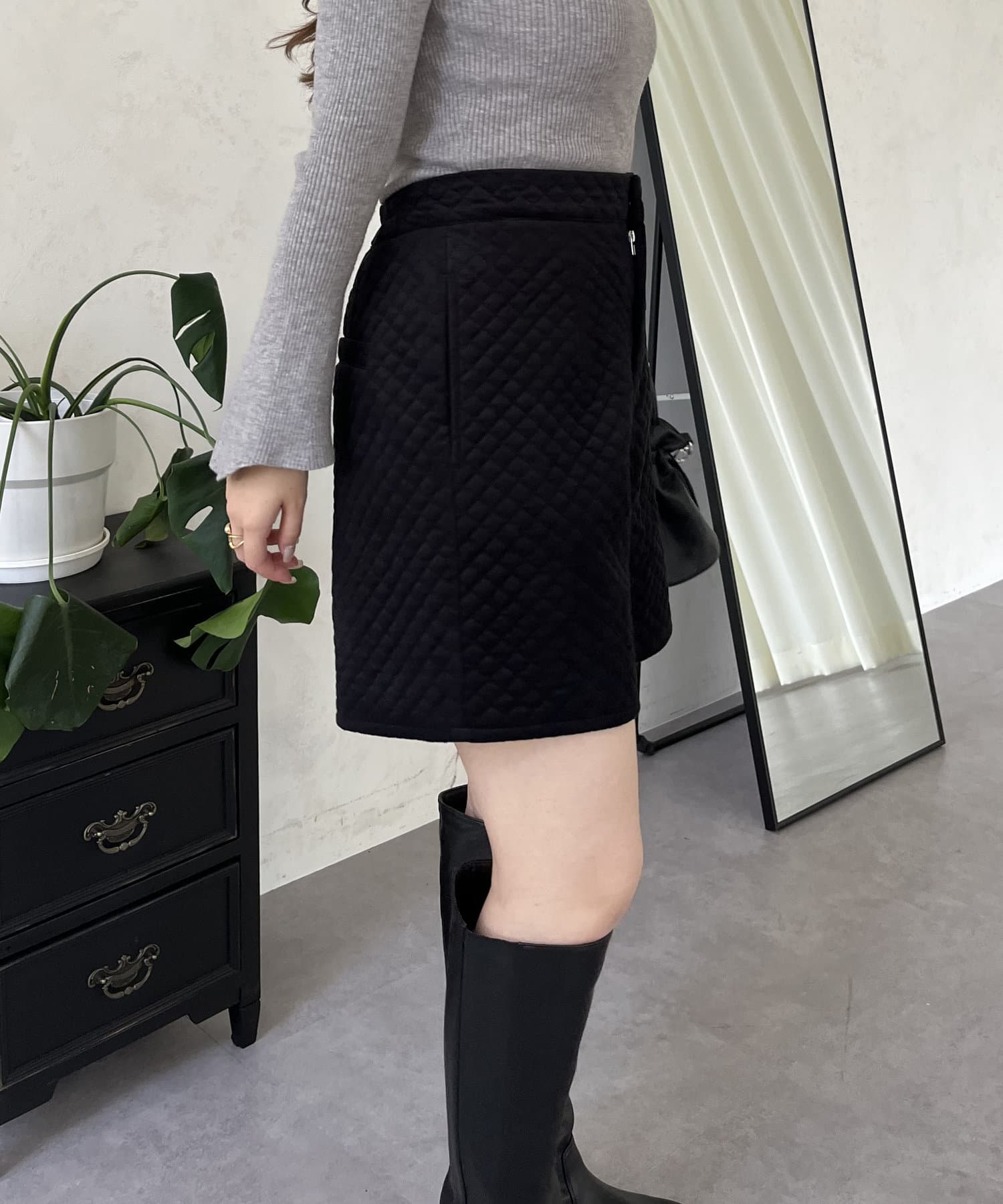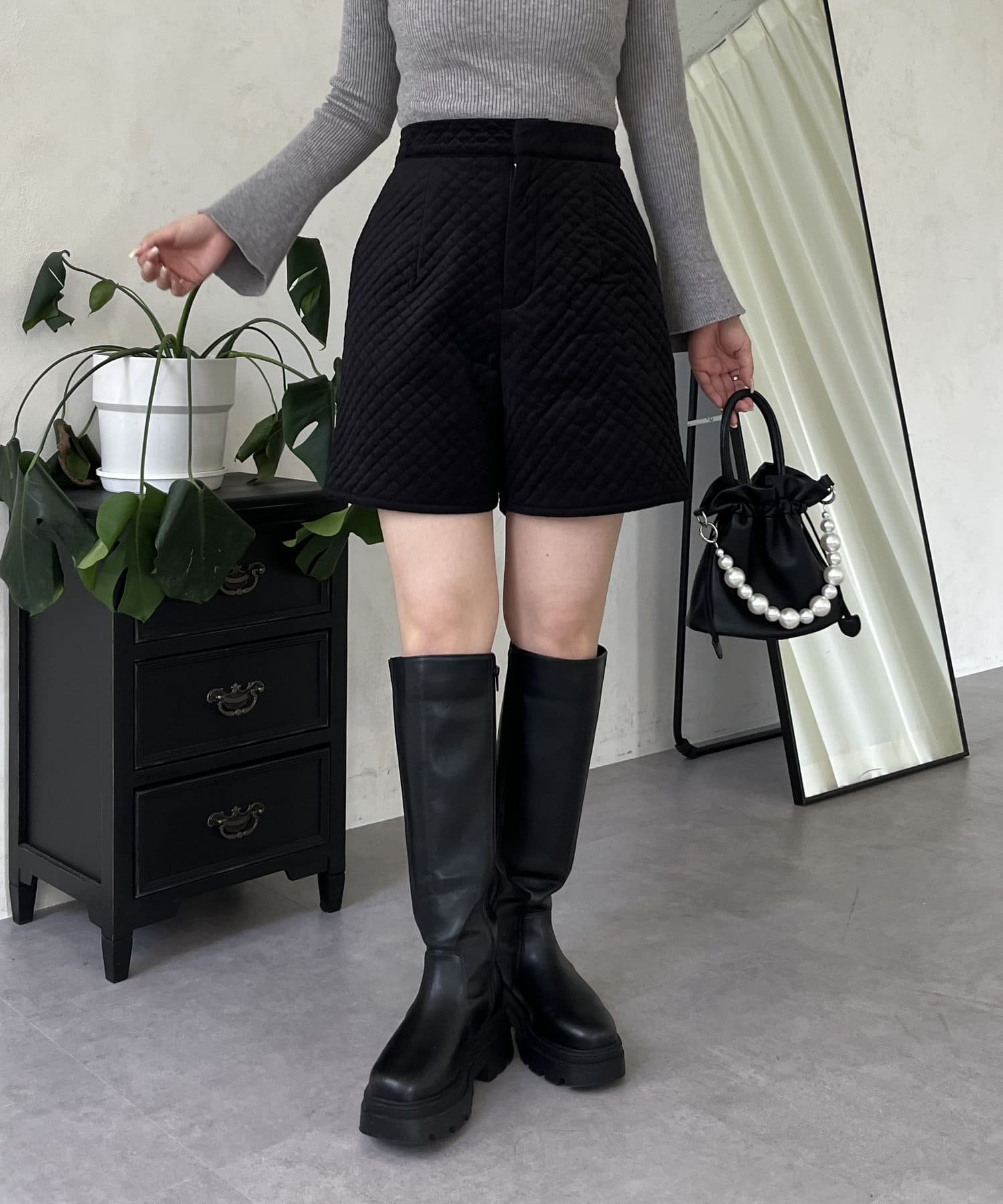 ベロア素材がときめくキルティングショートパンツ