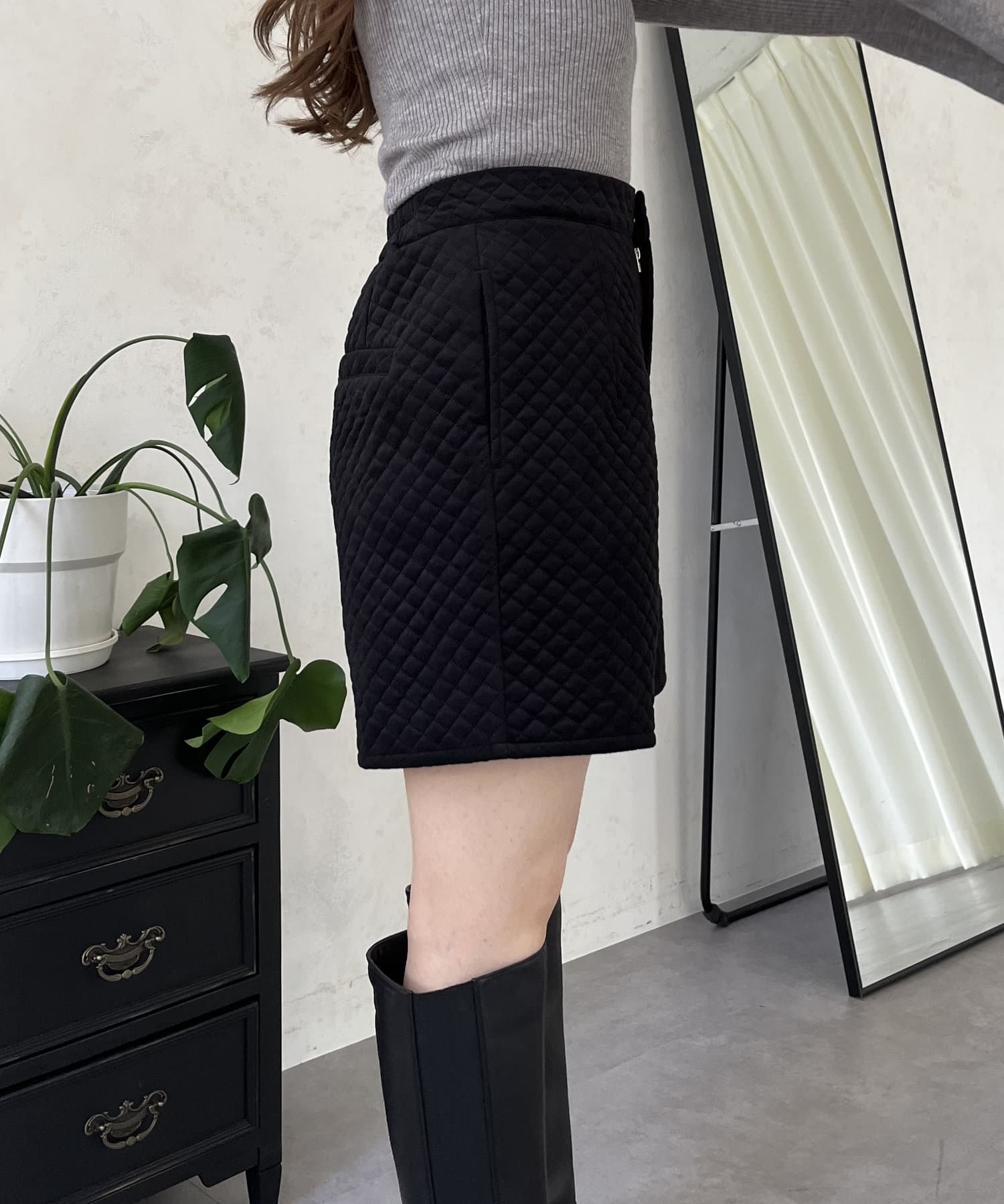 キルティングベロアショートパンツ