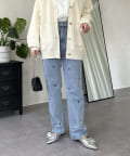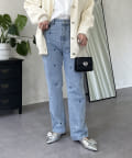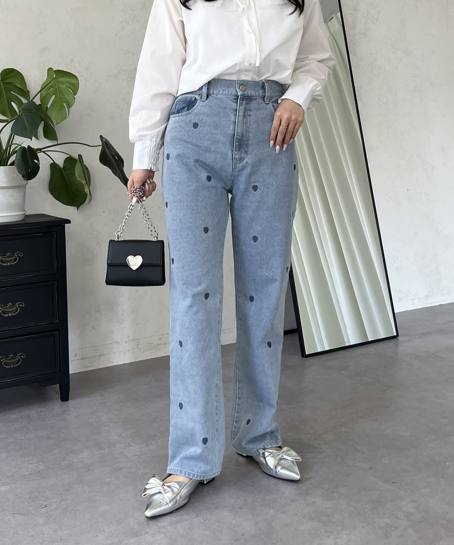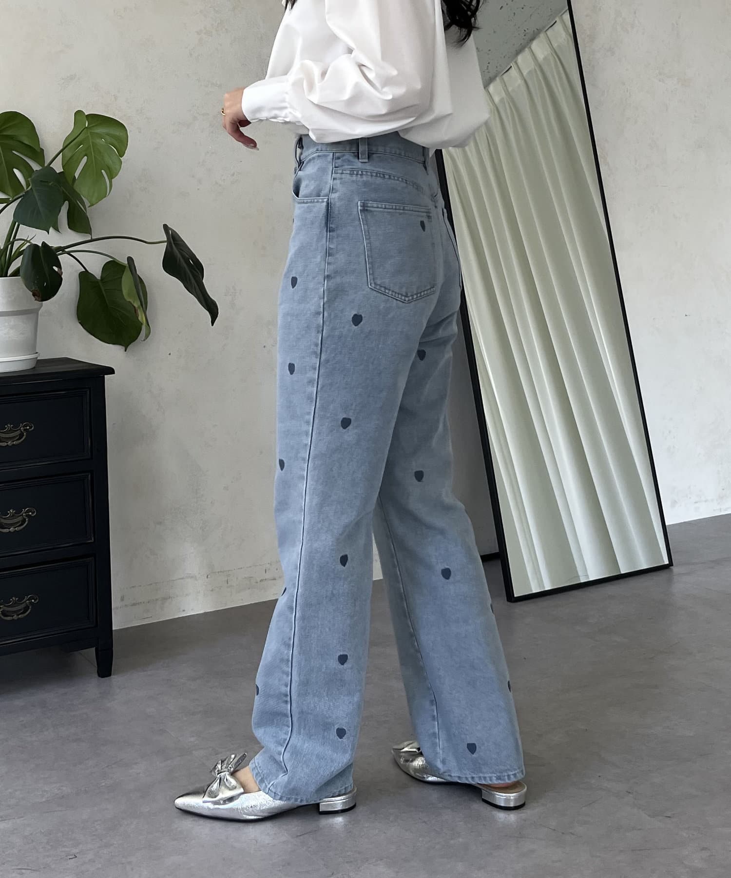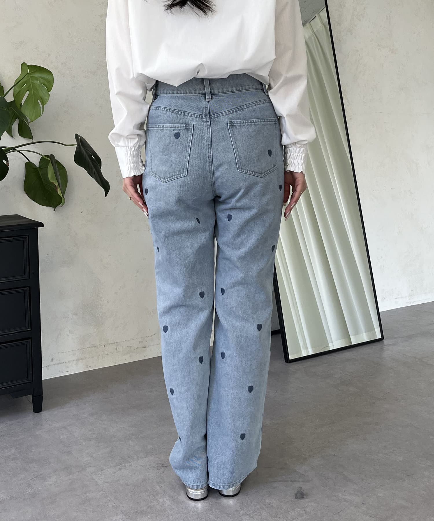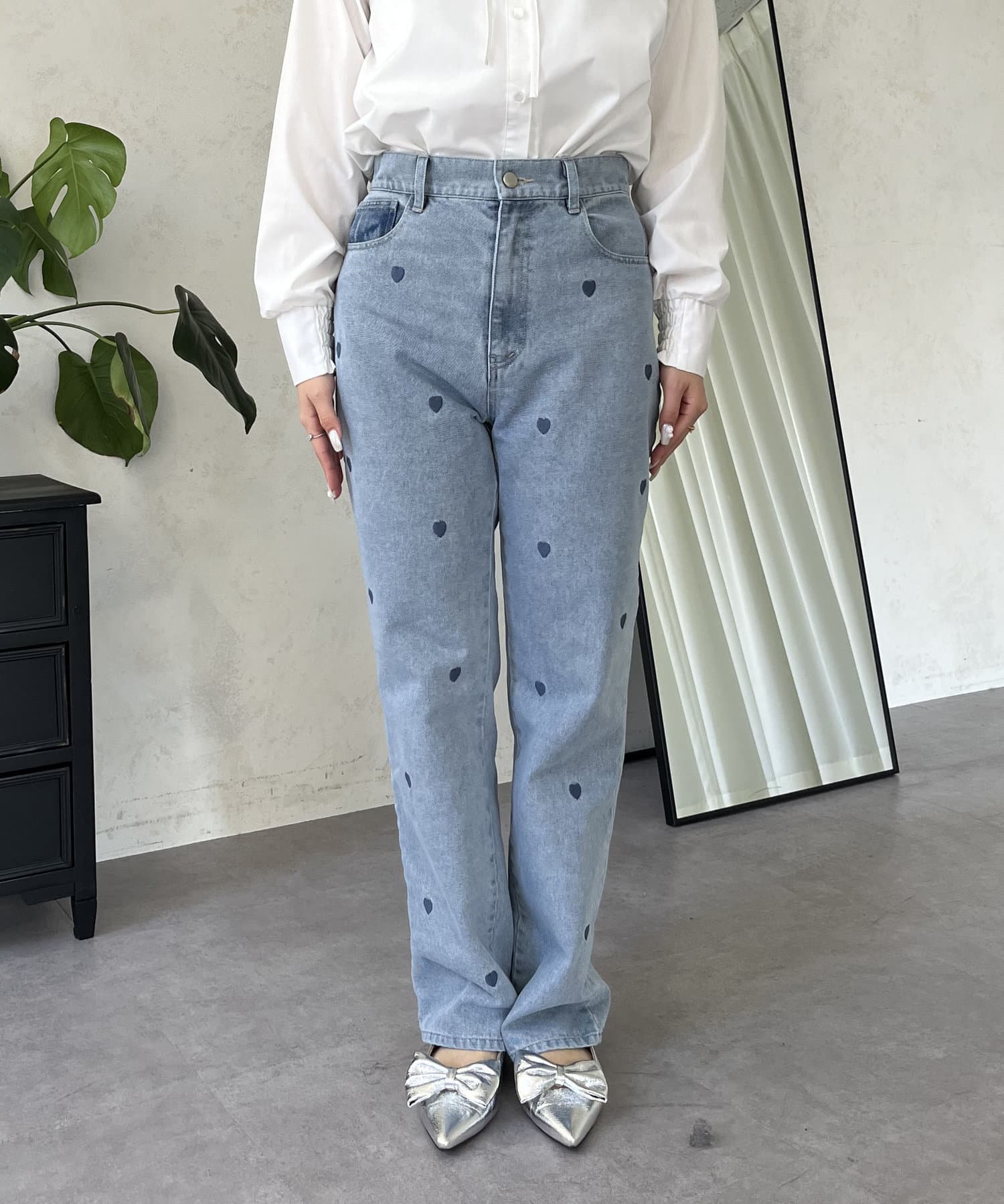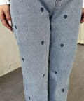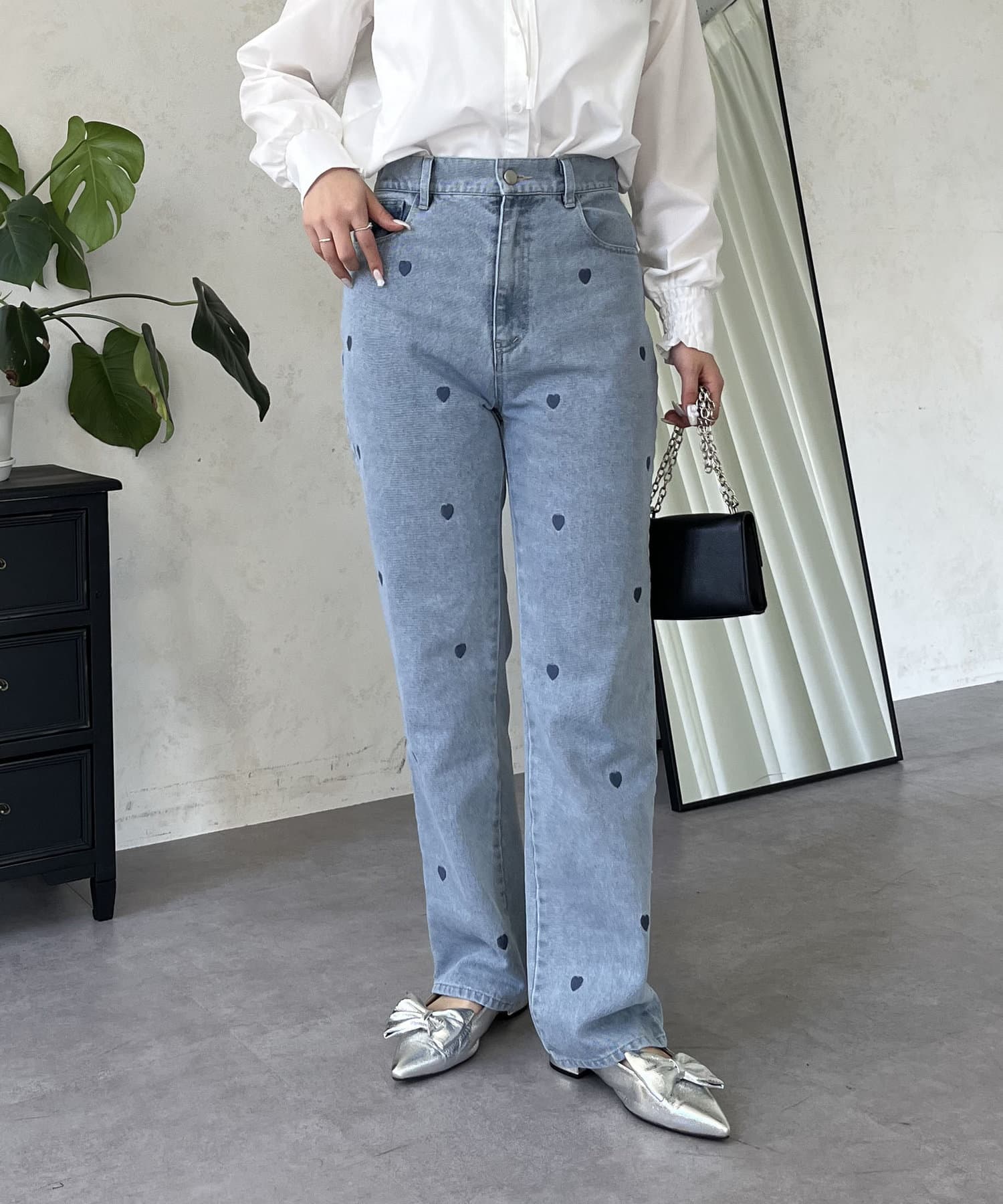 ハート刺繍ストレートデニムパンツ