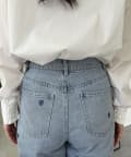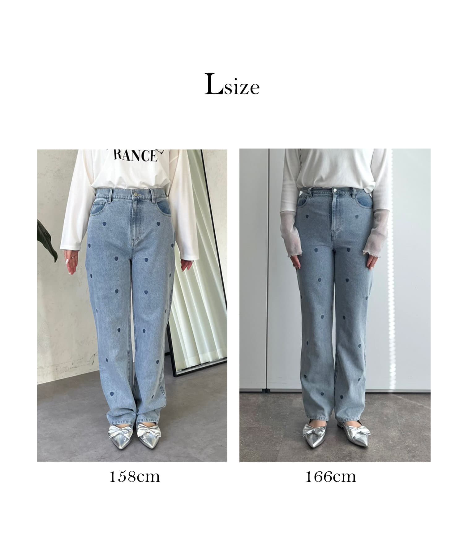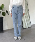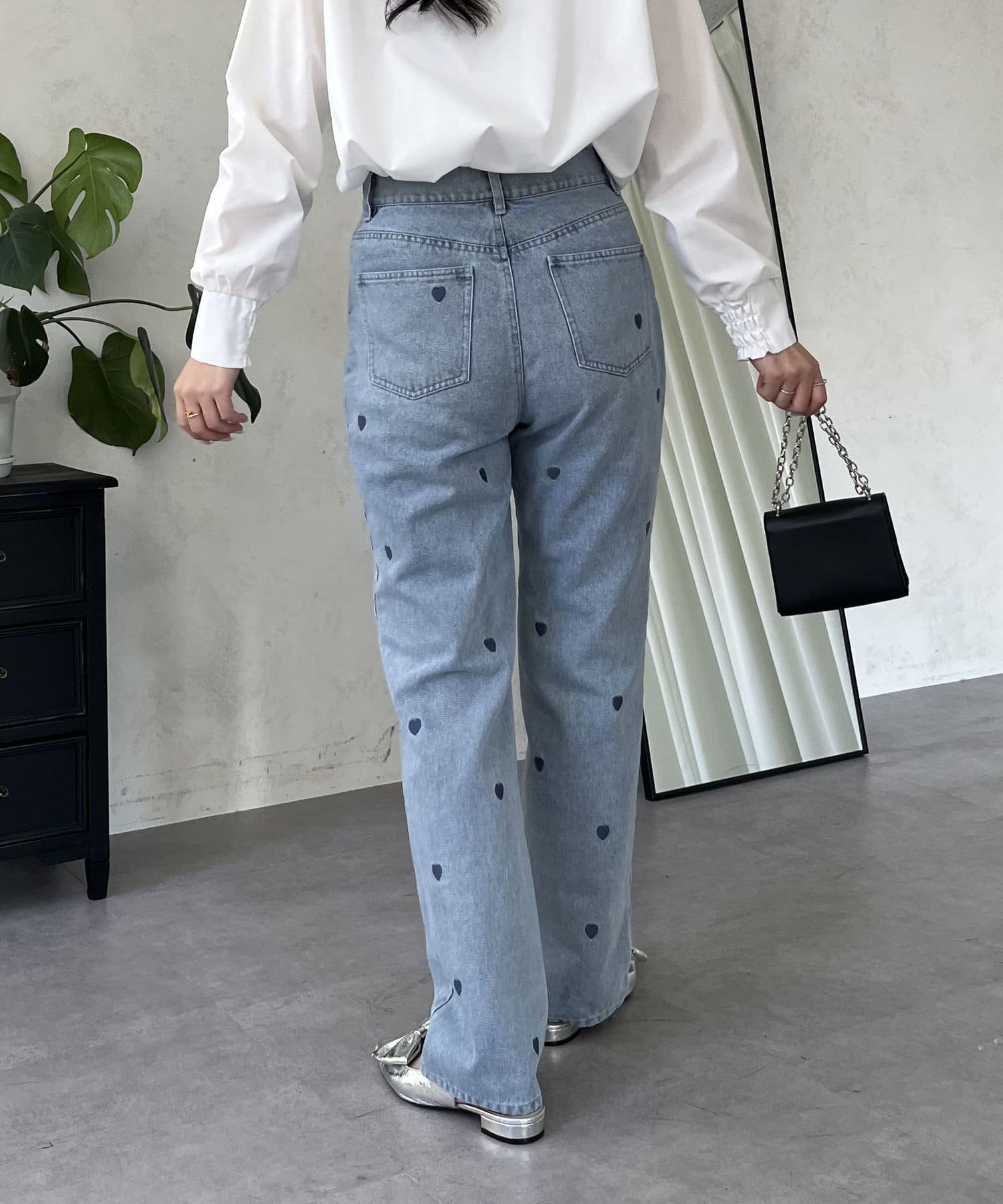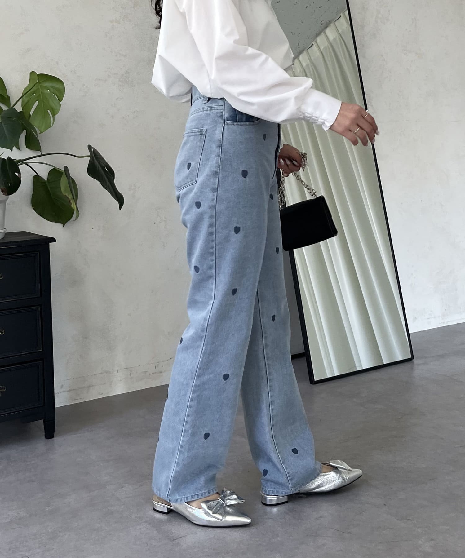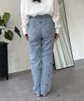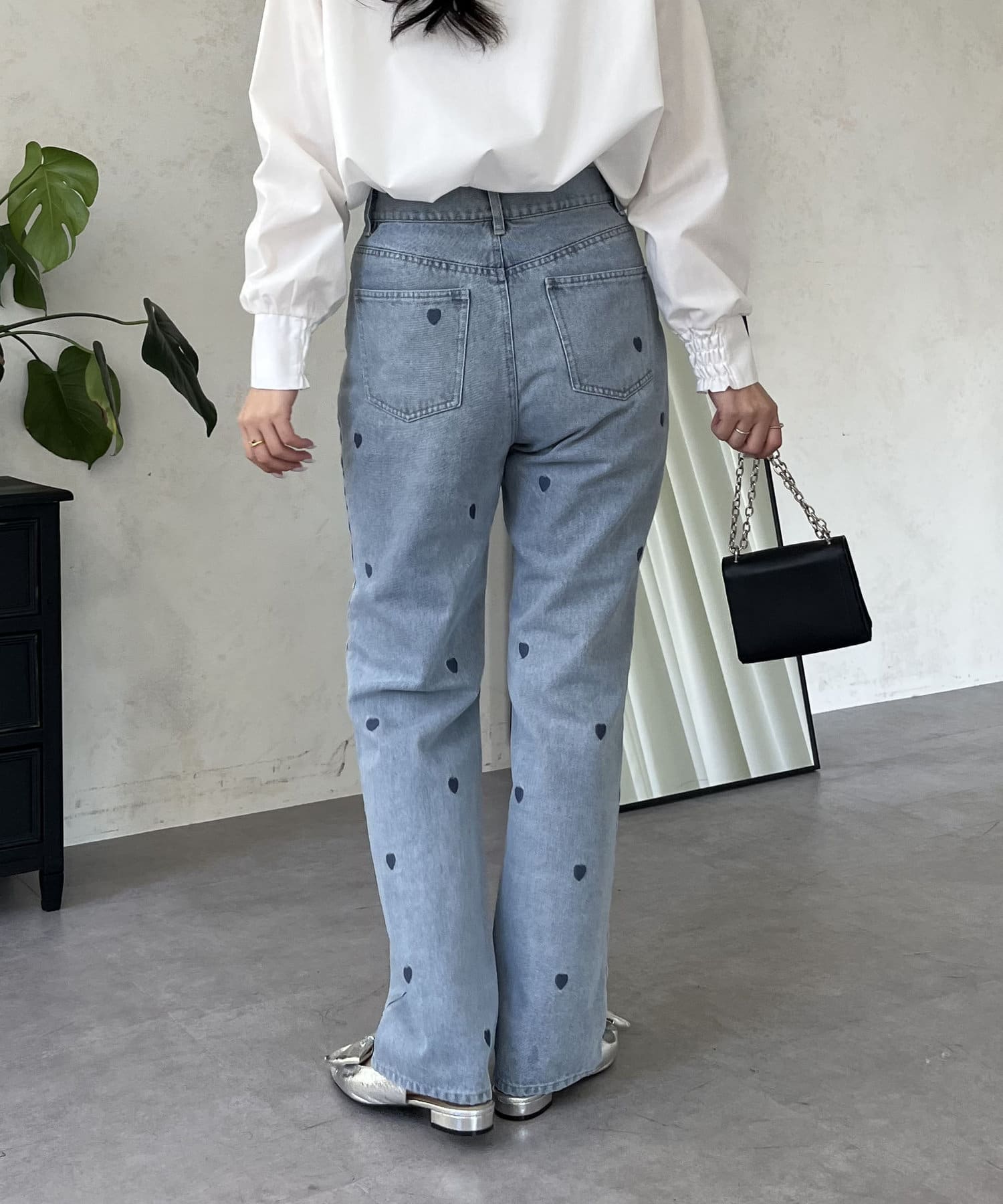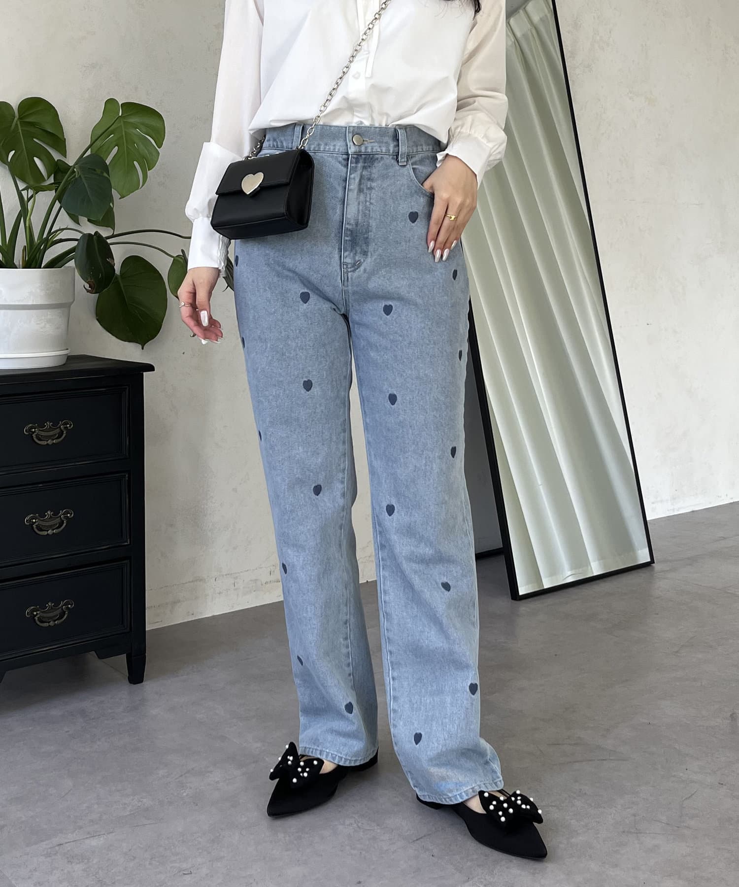 ハート刺繍ストレートデニムパンツ