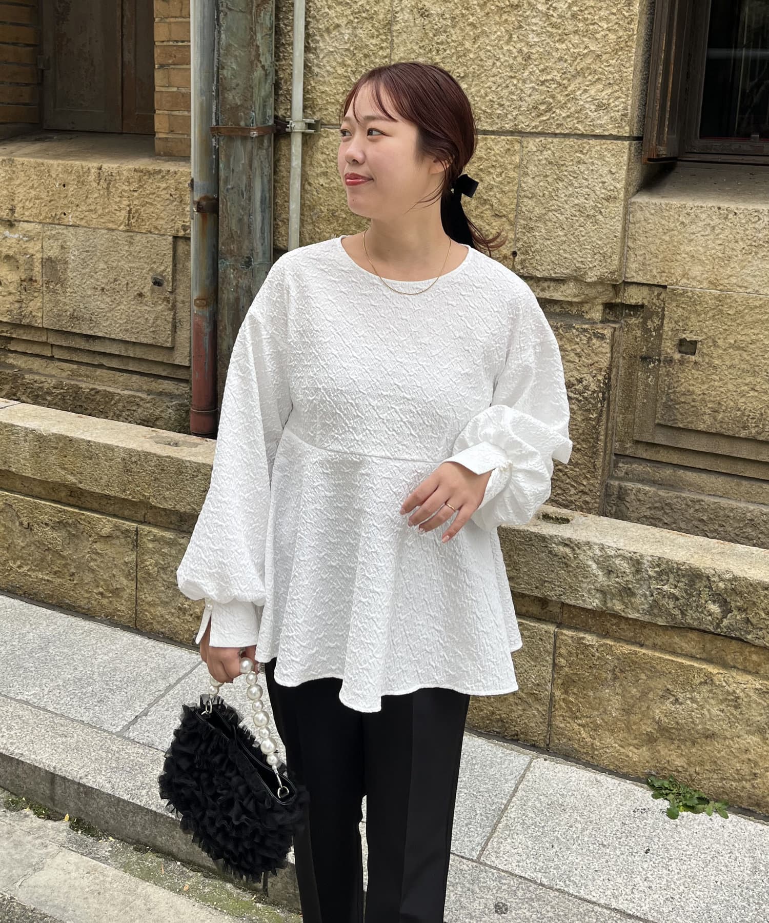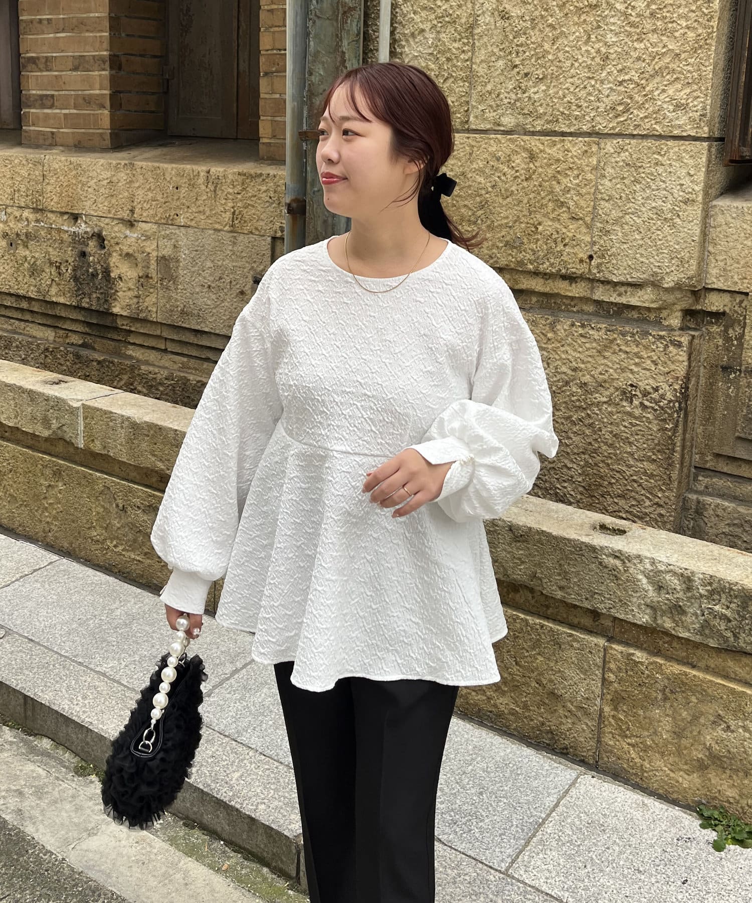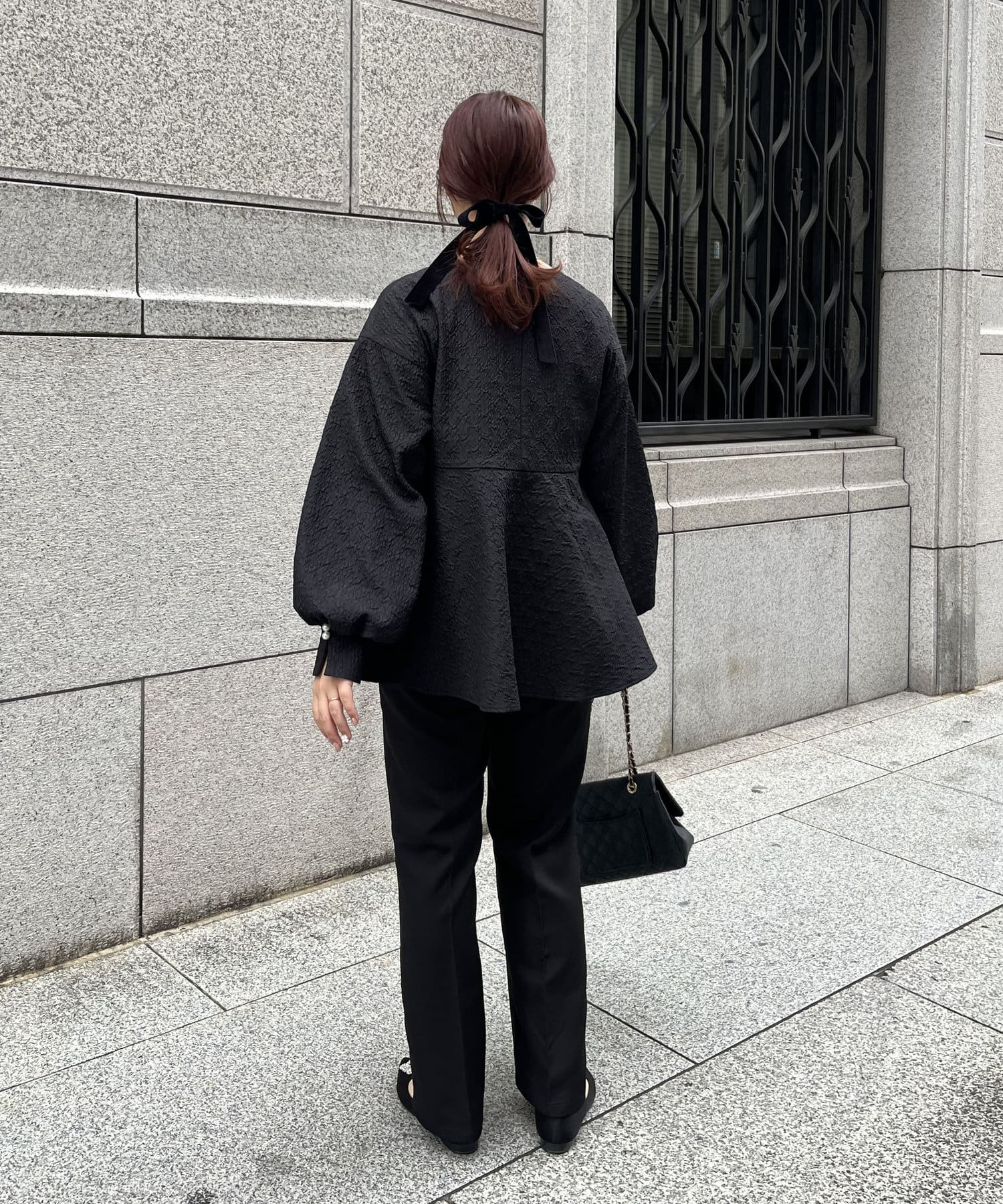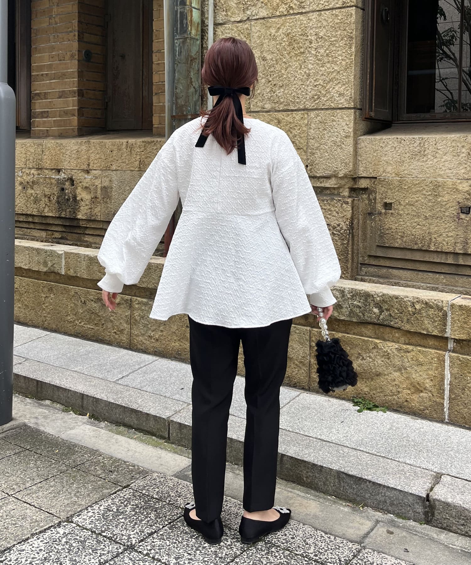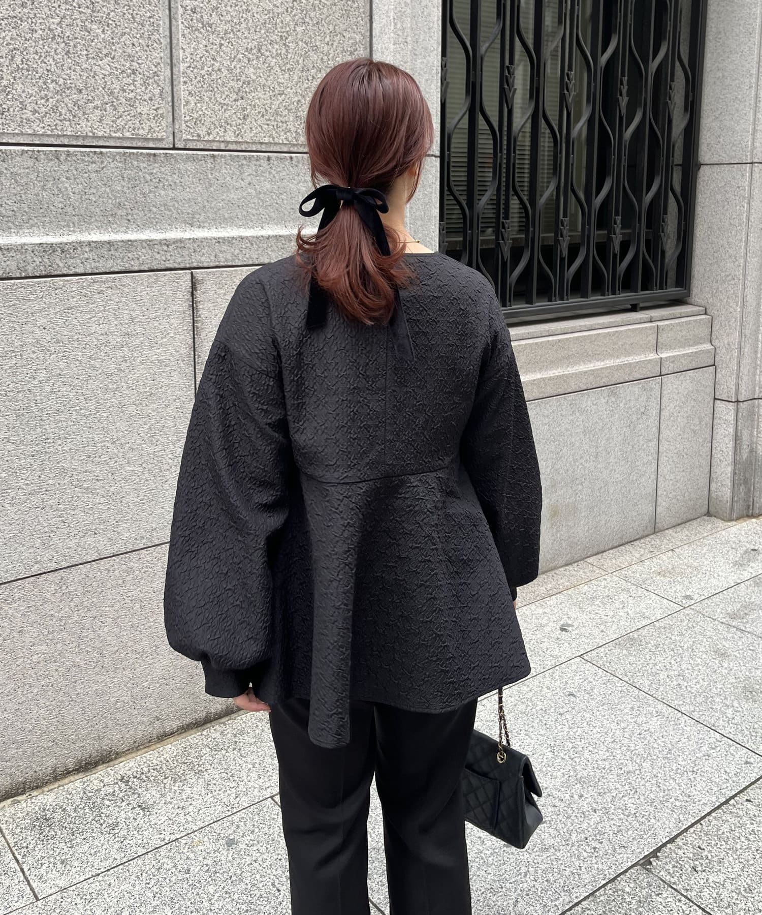 【ママ監修!セレモニーアイテム】バルーンスリーブジャガードペプラムブラウス
