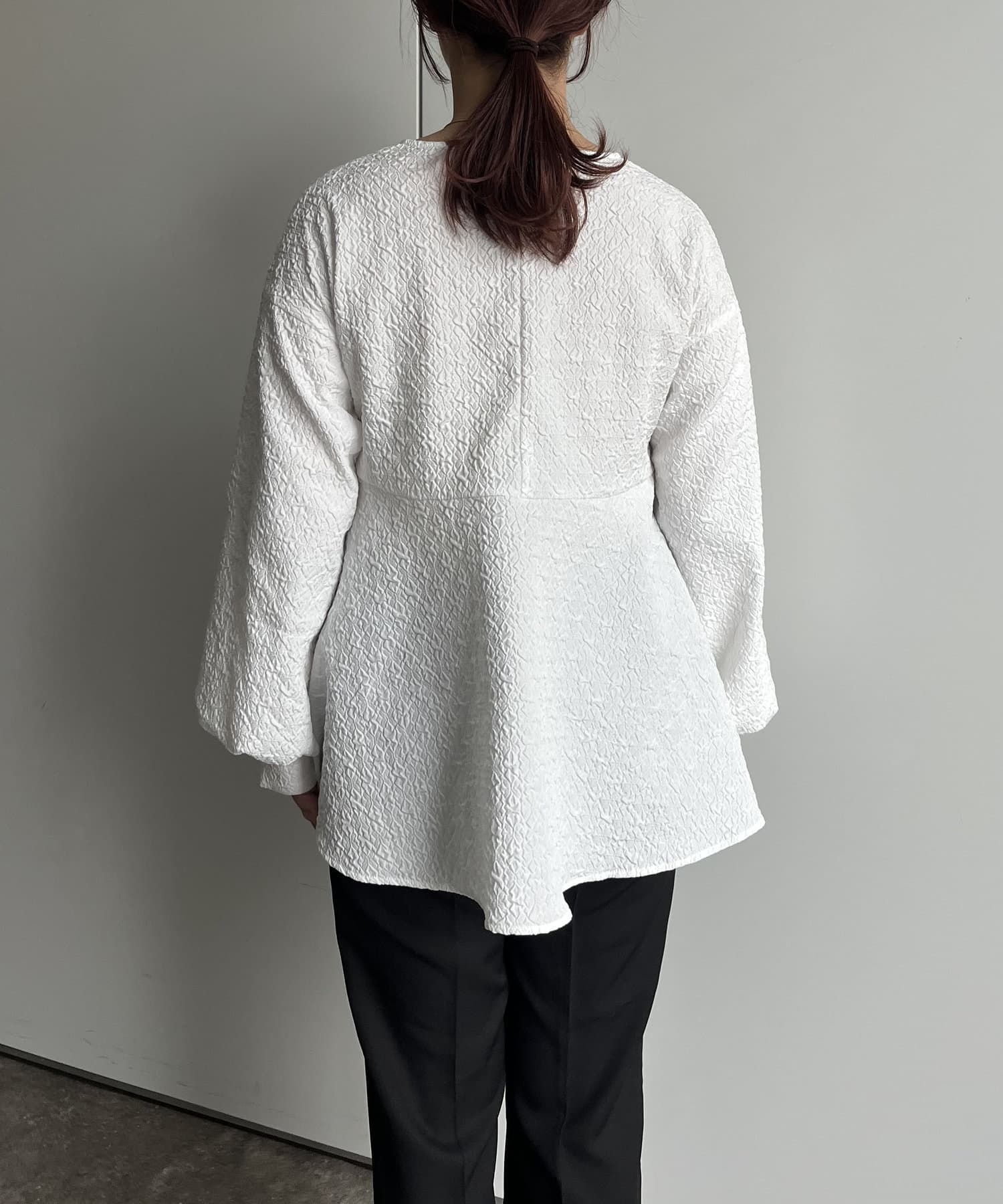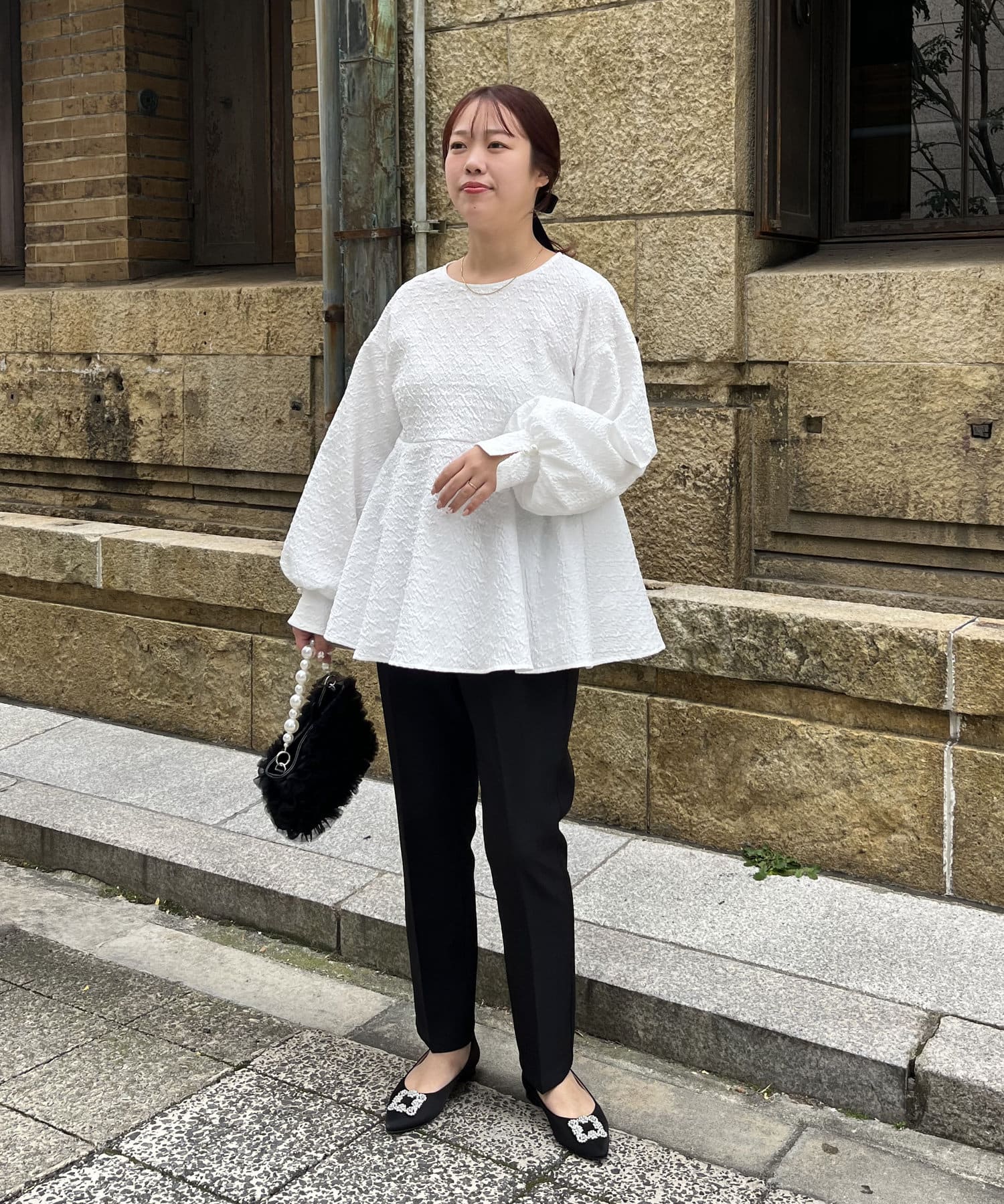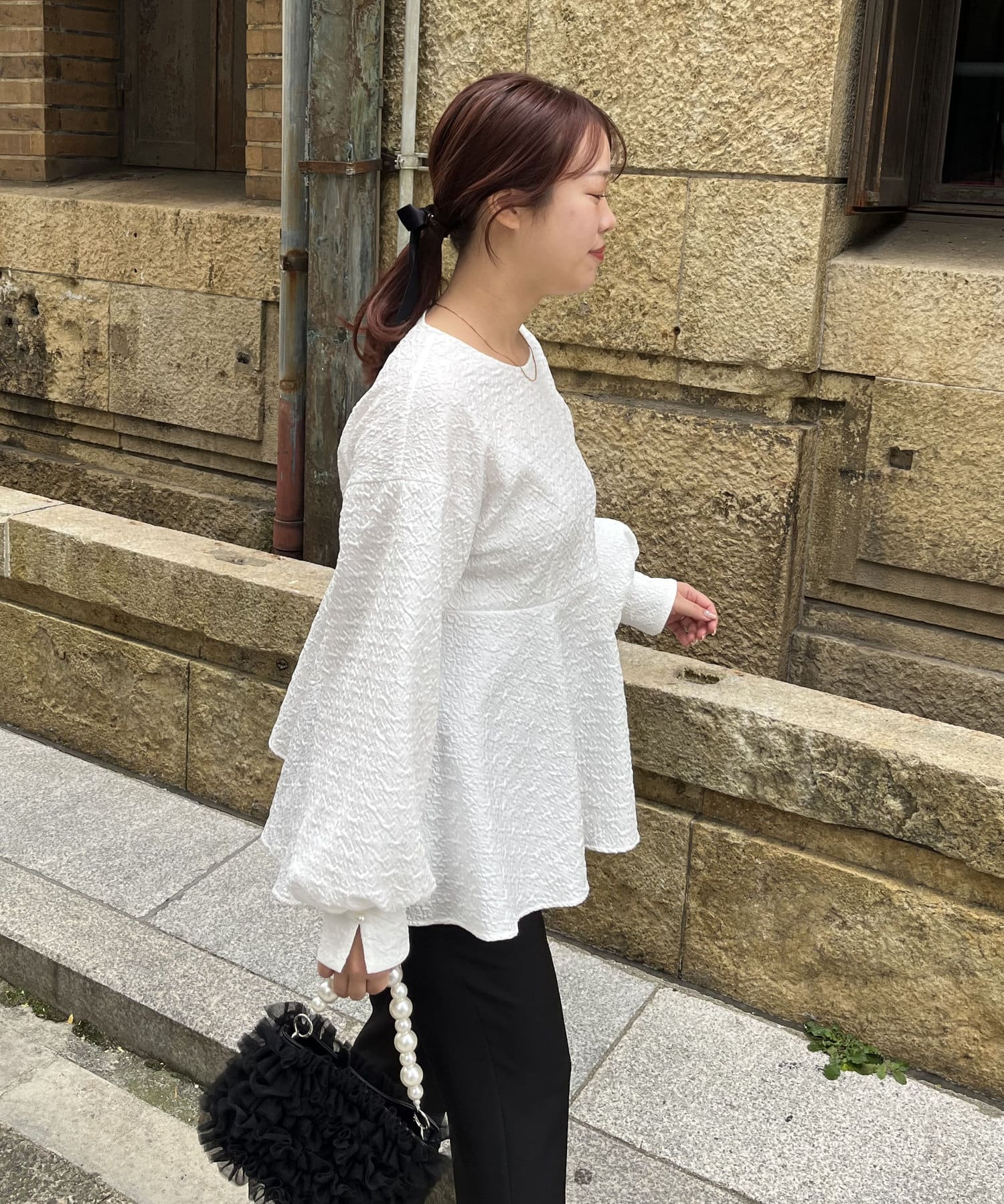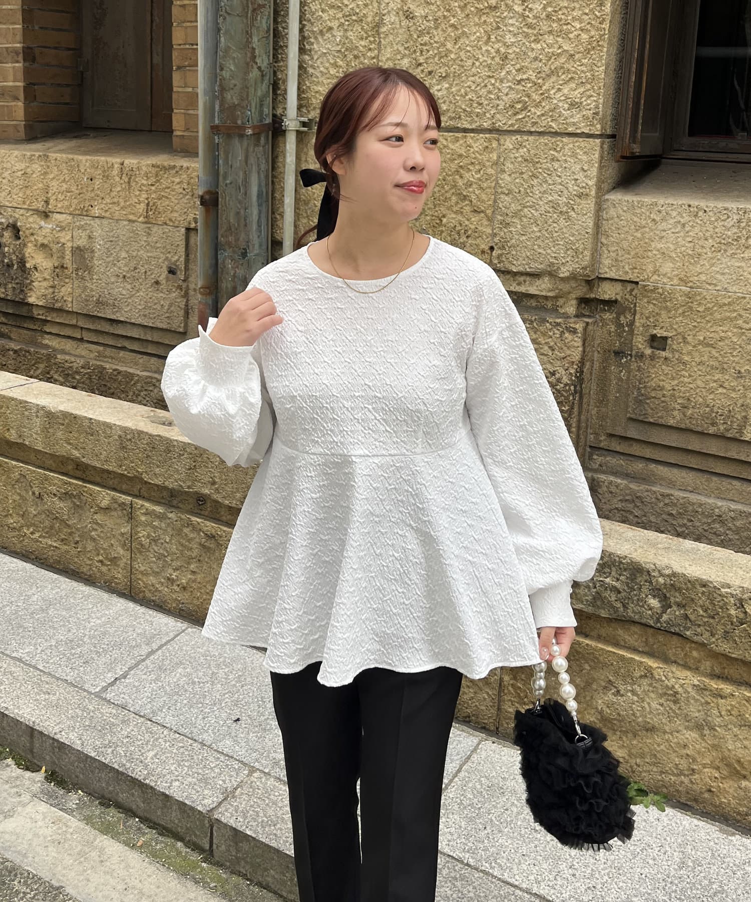 【ママ監修!セレモニーアイテム】バルーンスリーブジャガードペプラムブラウス
