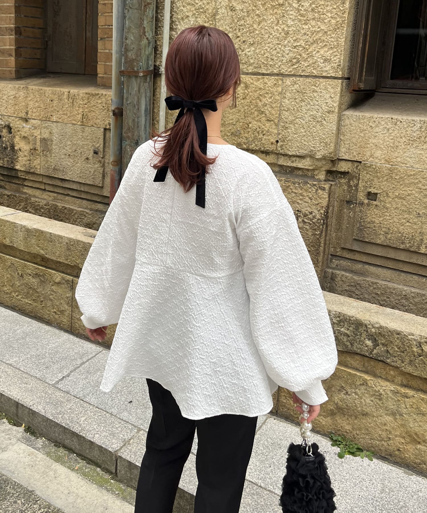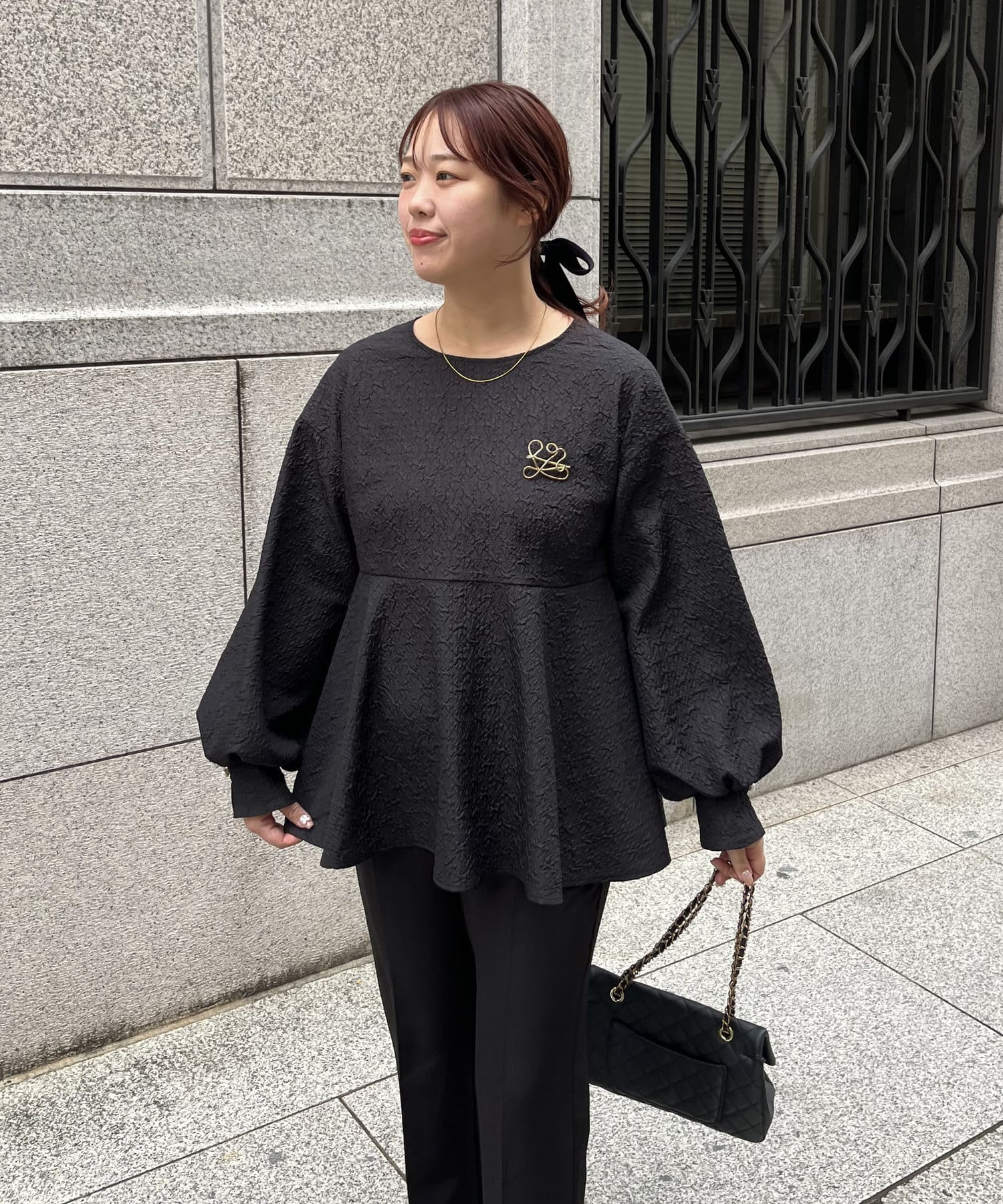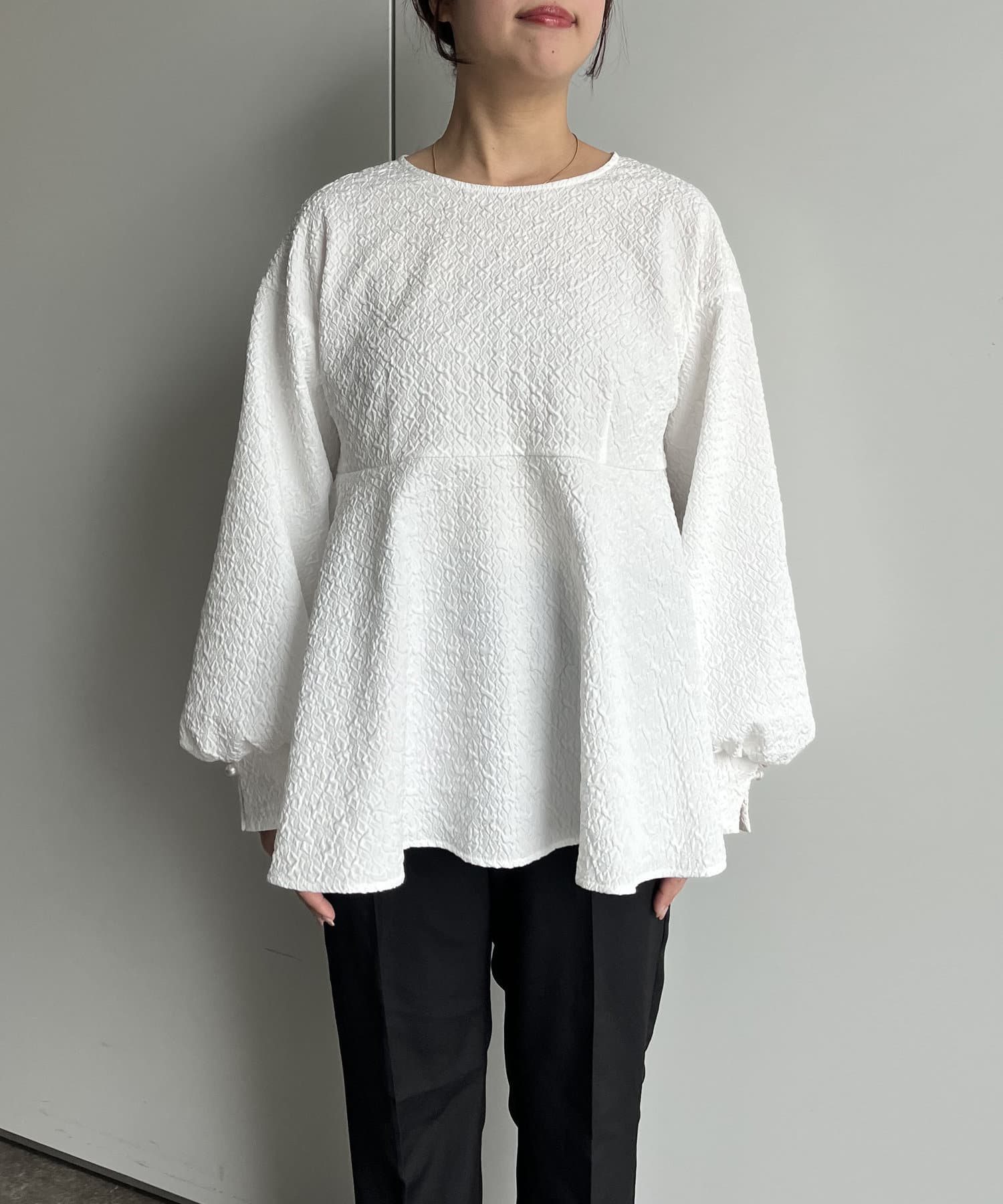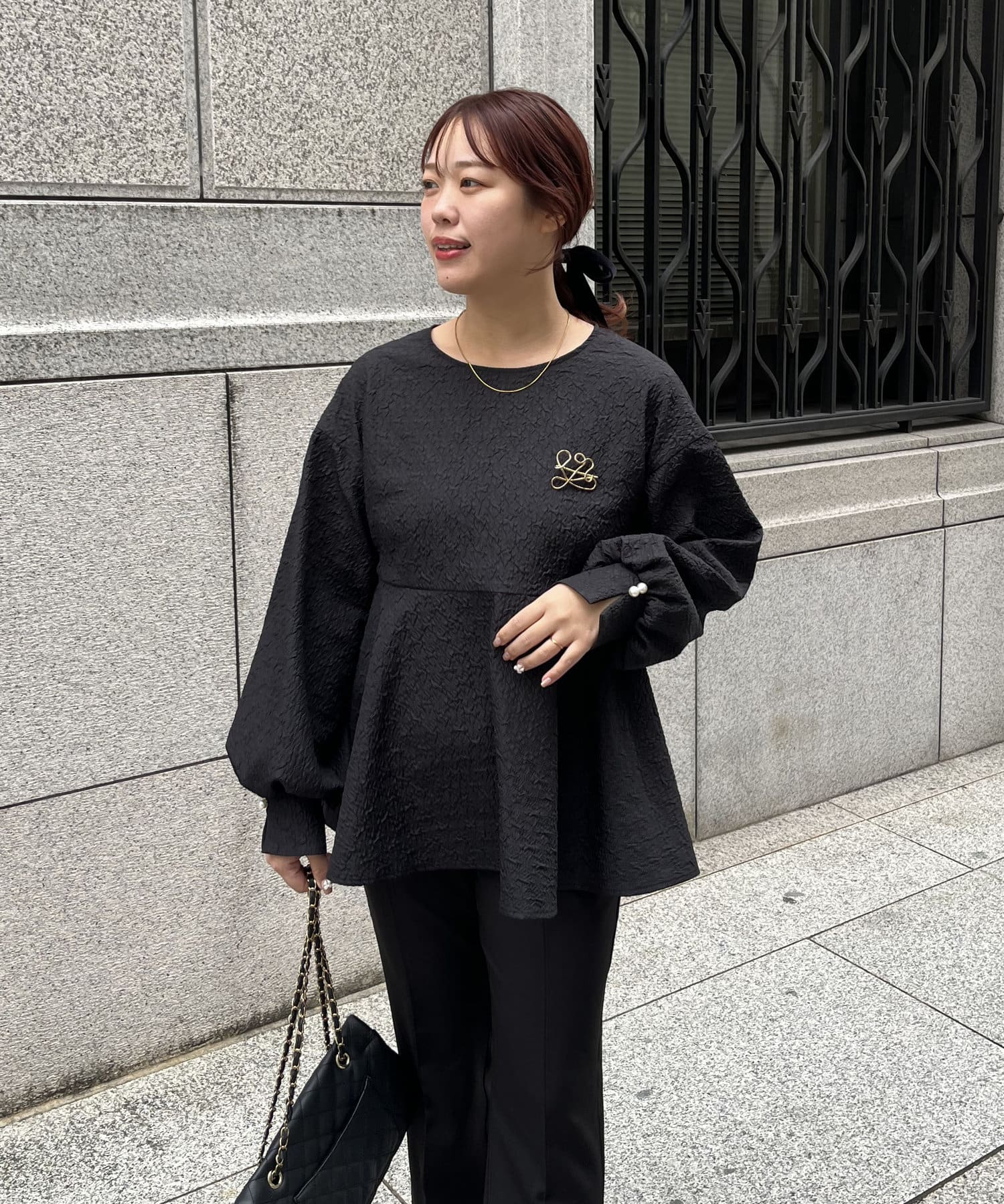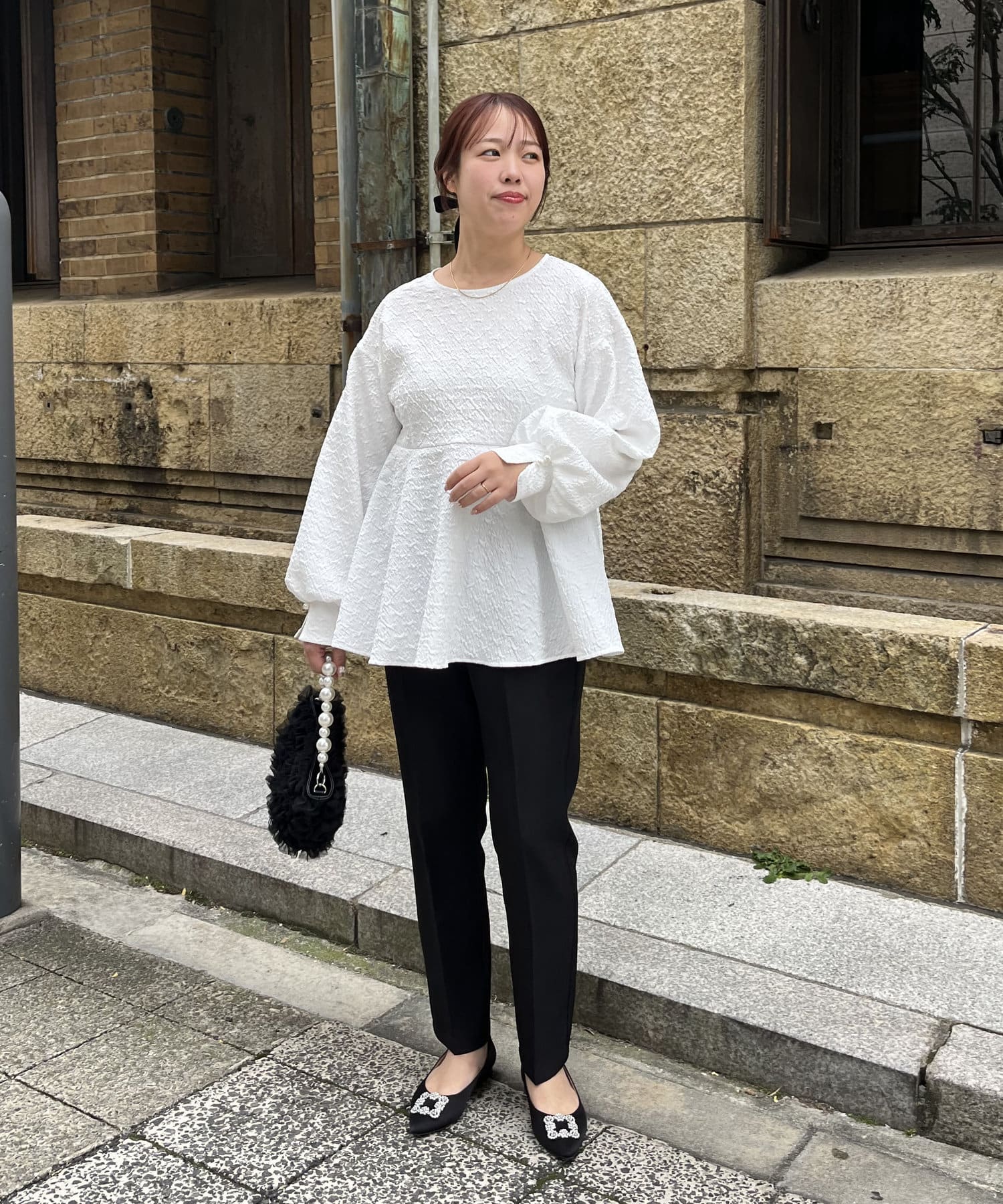 【ママ監修!セレモニーアイテム】バルーンスリーブジャガードペプラムブラウス