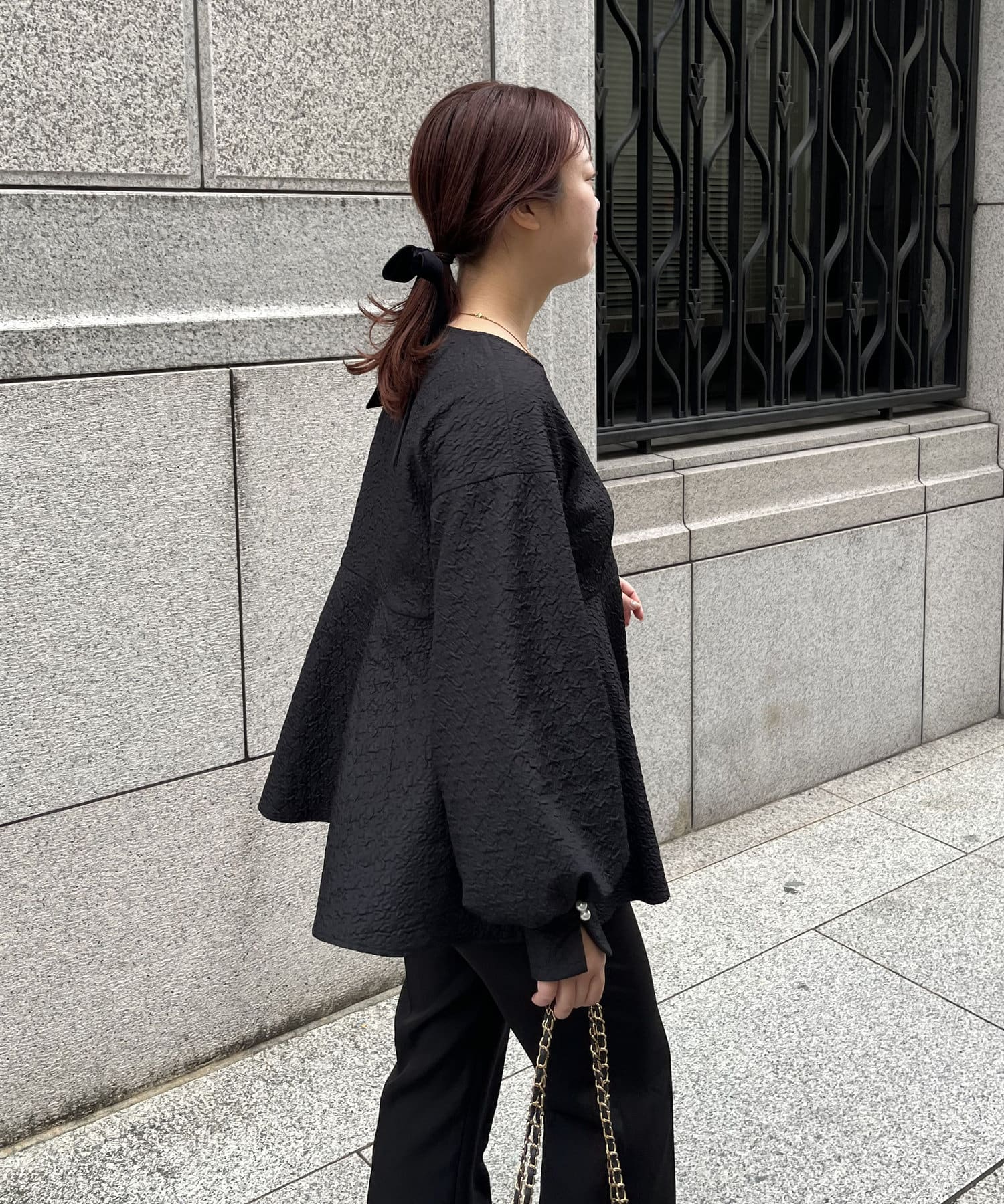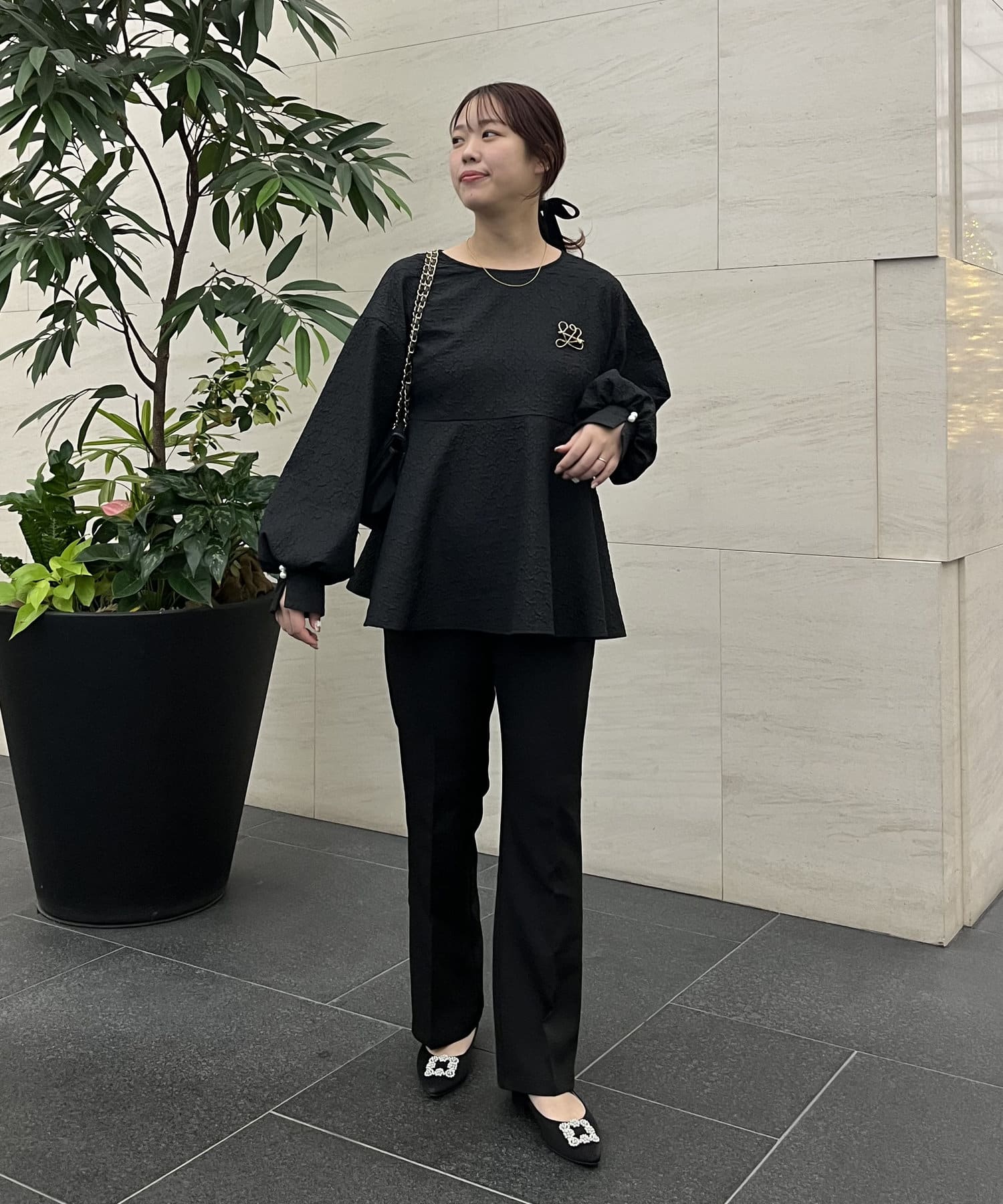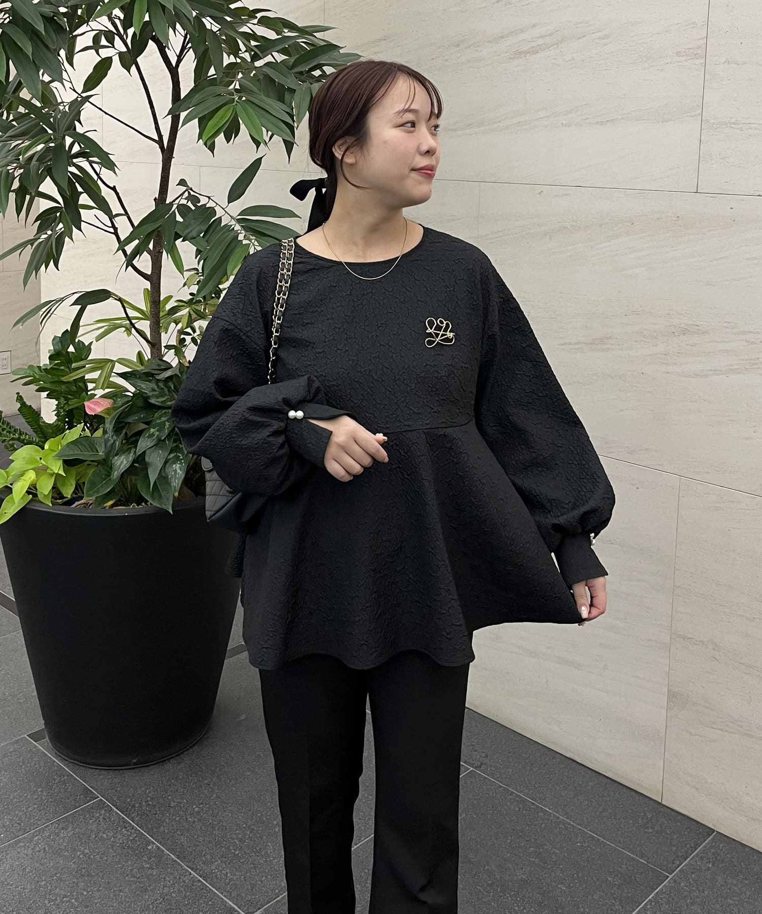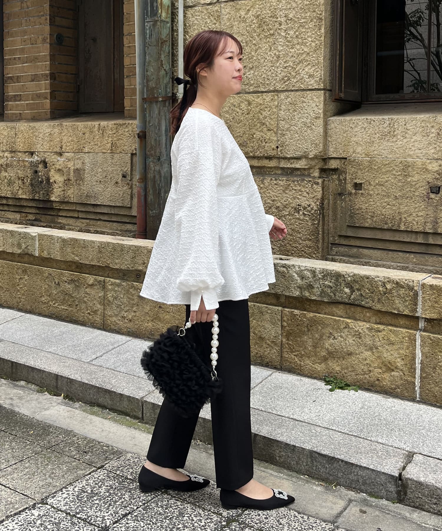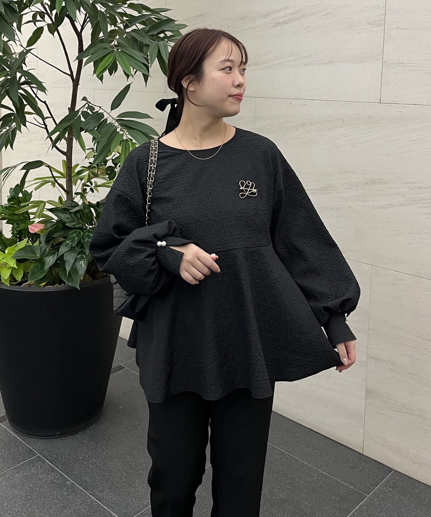 【ママ監修!セレモニーアイテム】バルーンスリーブジャガードペプラムブラウス
