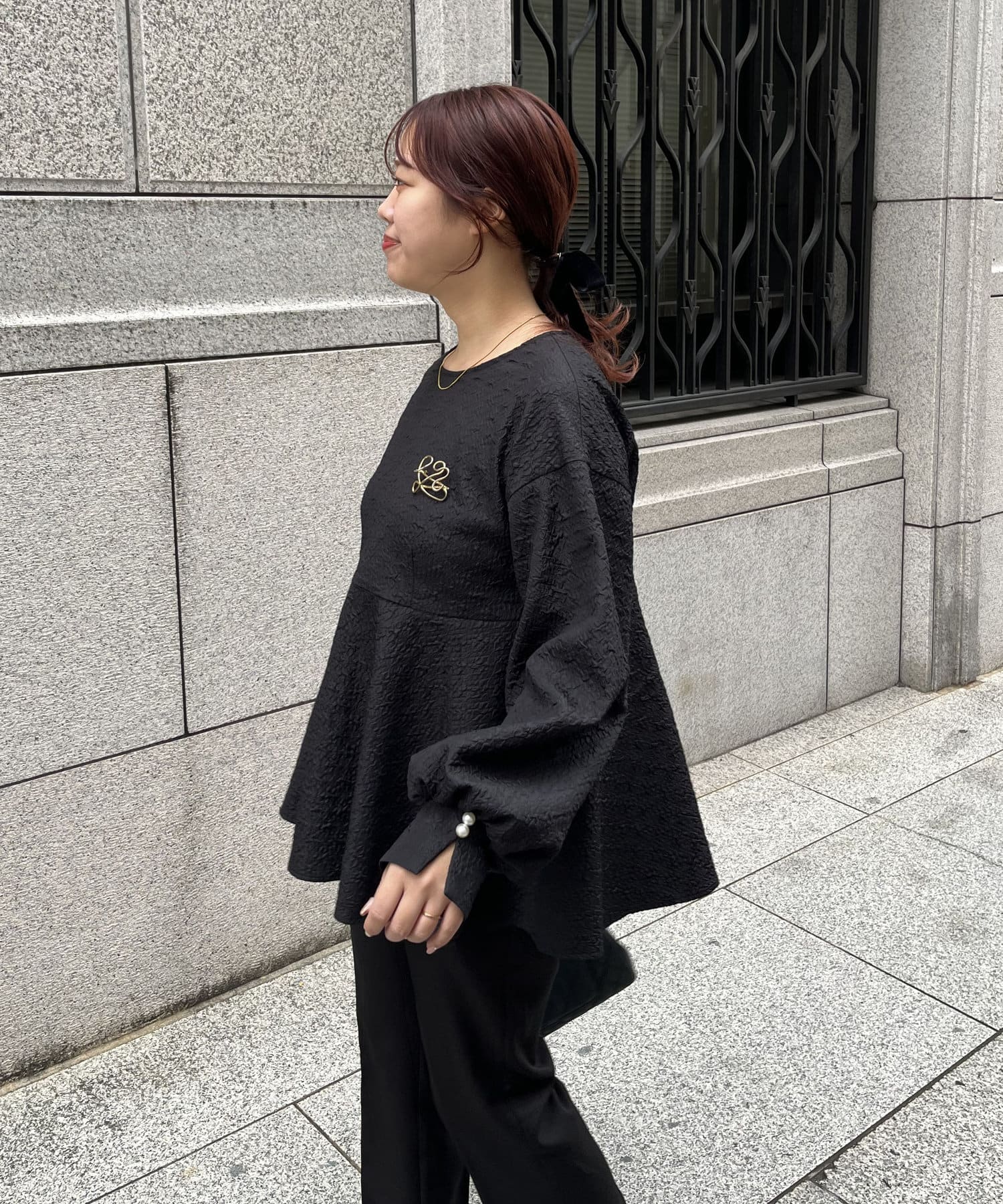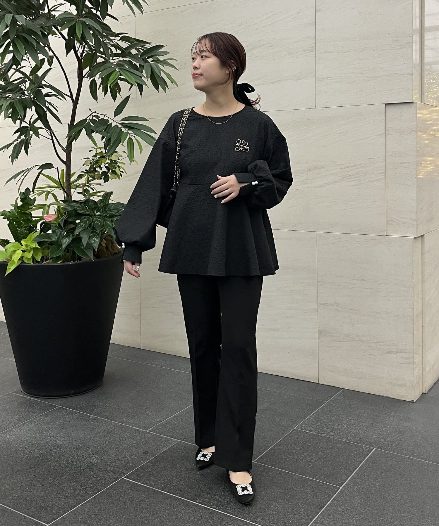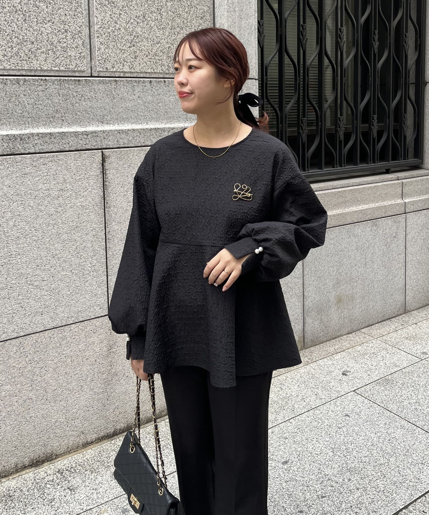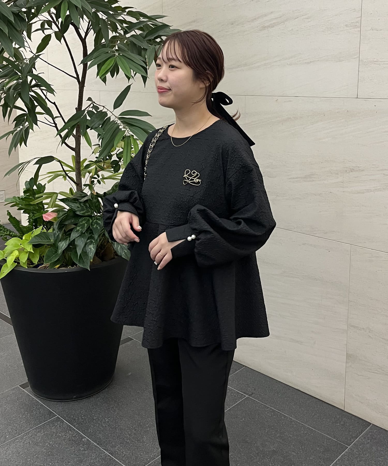 【ママ監修!セレモニーアイテム】バルーンスリーブジャガードペプラムブラウス