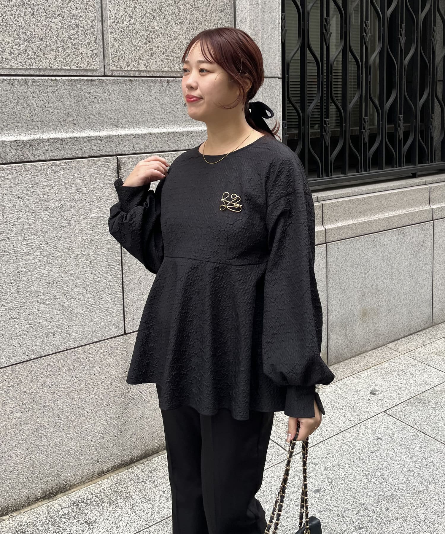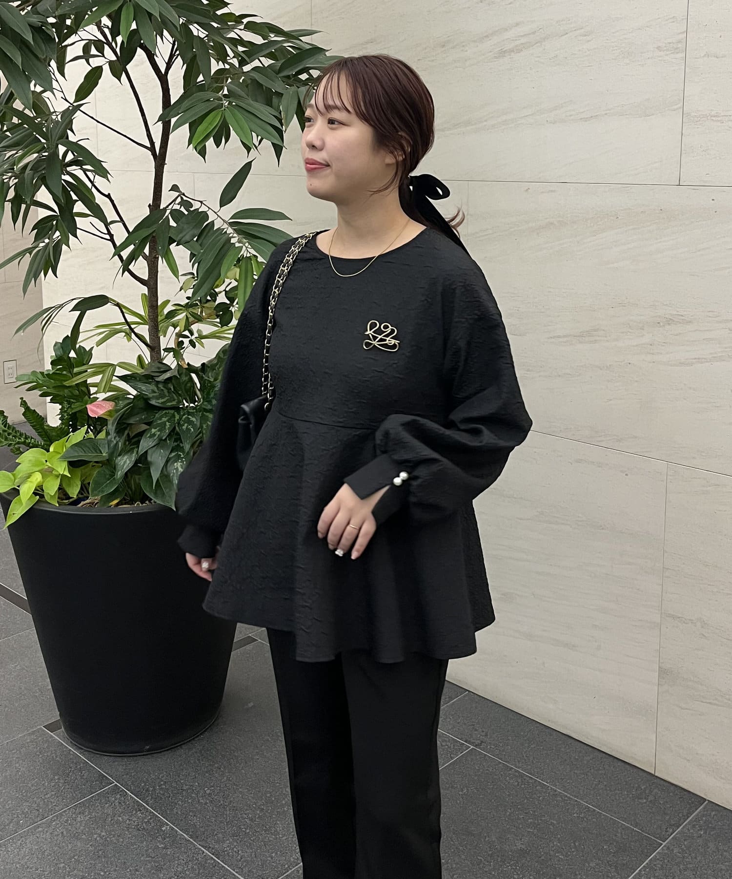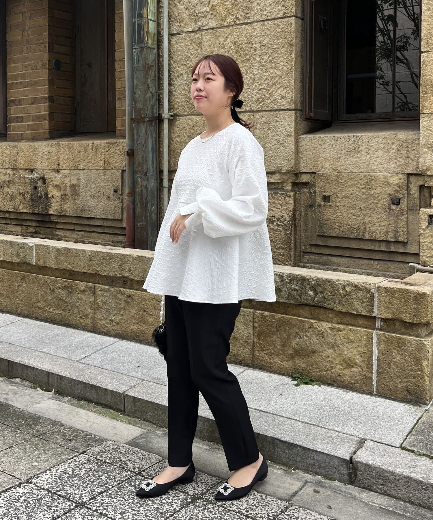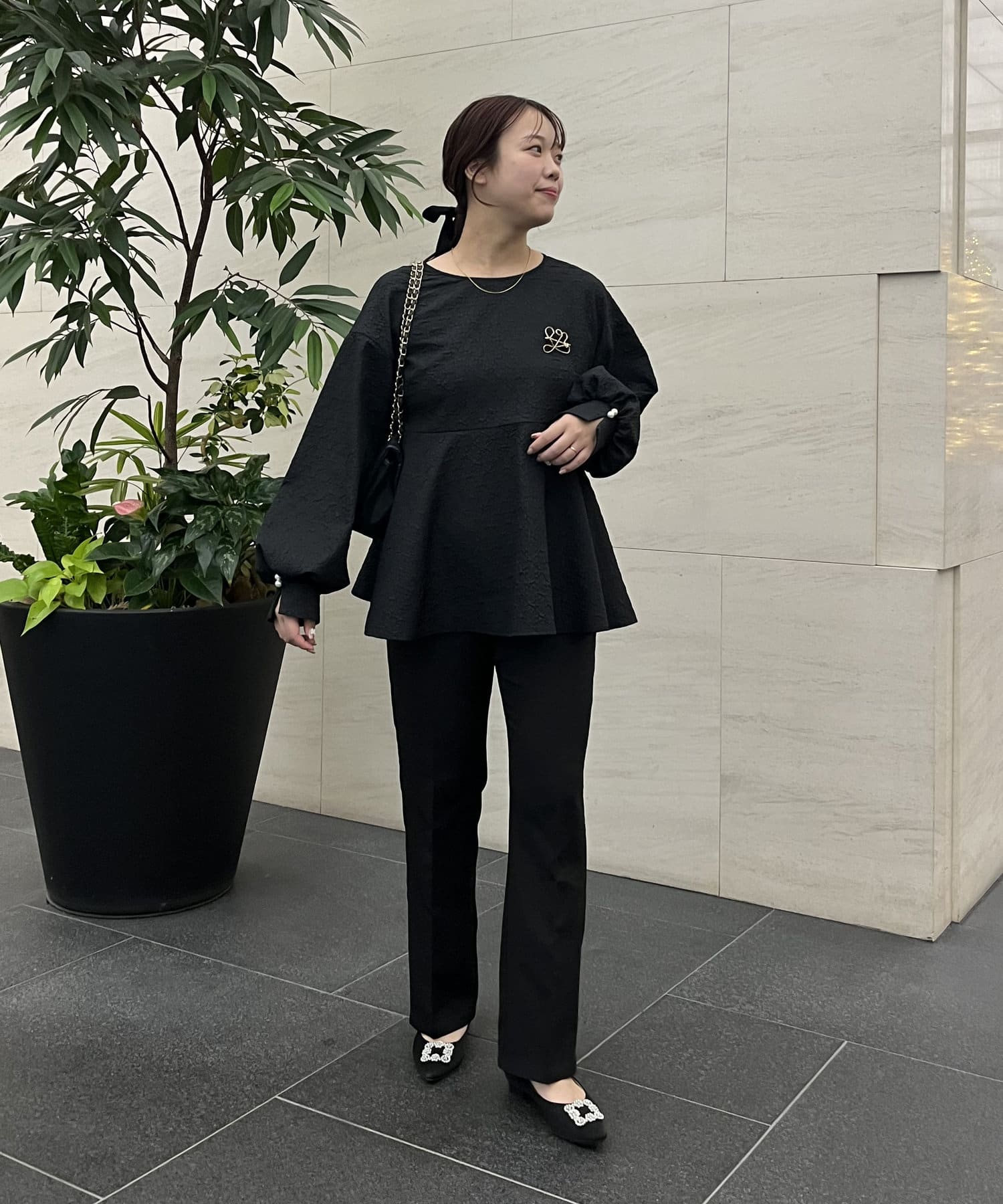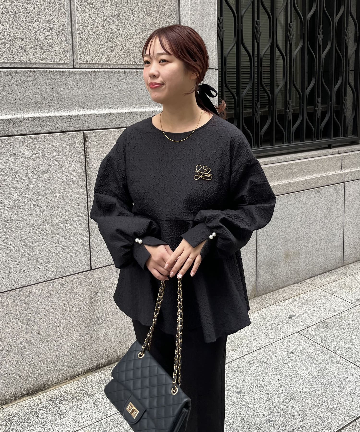 【ママ監修!セレモニーアイテム】バルーンスリーブジャガードペプラムブラウス