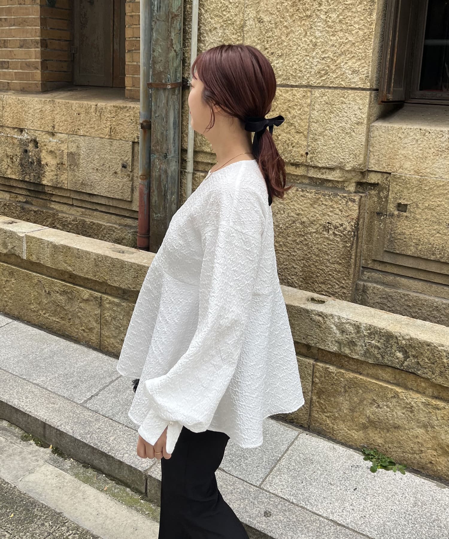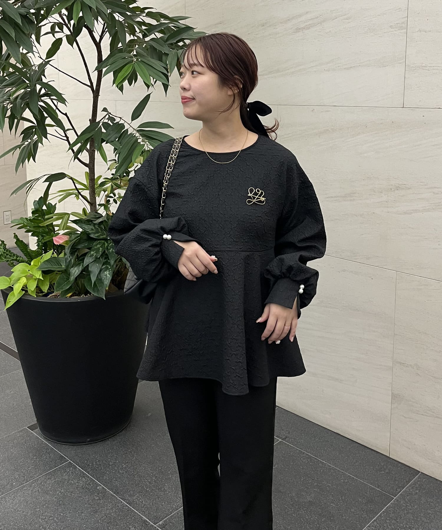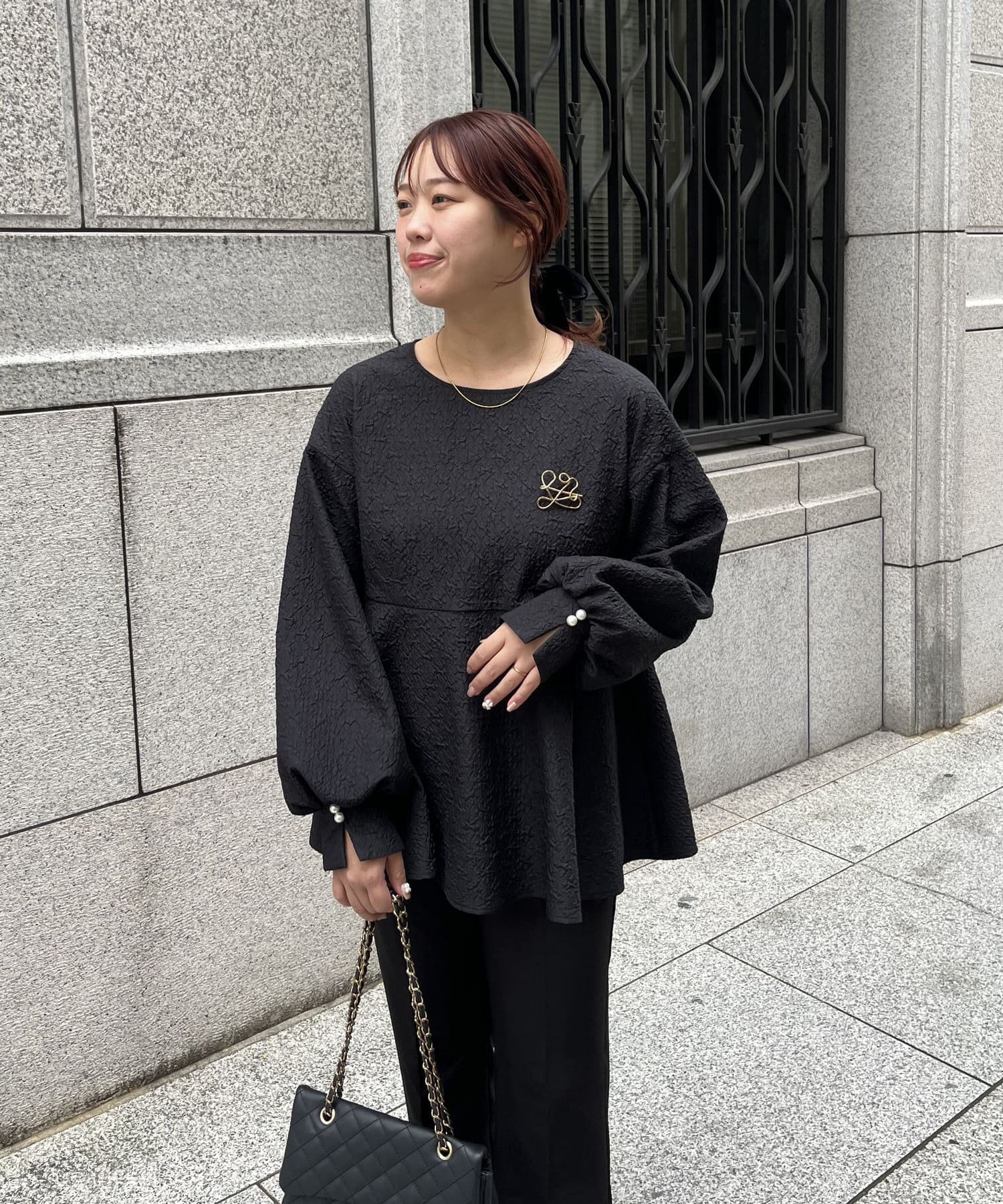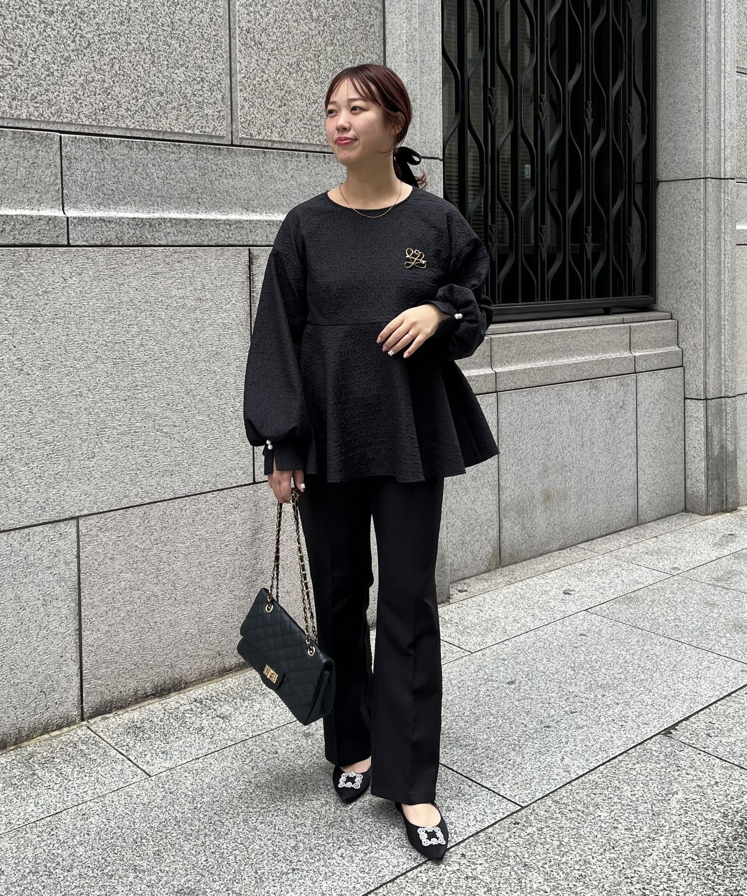 【ママ監修!セレモニーアイテム】バルーンスリーブジャガードペプラムブラウス