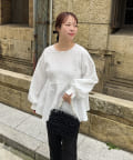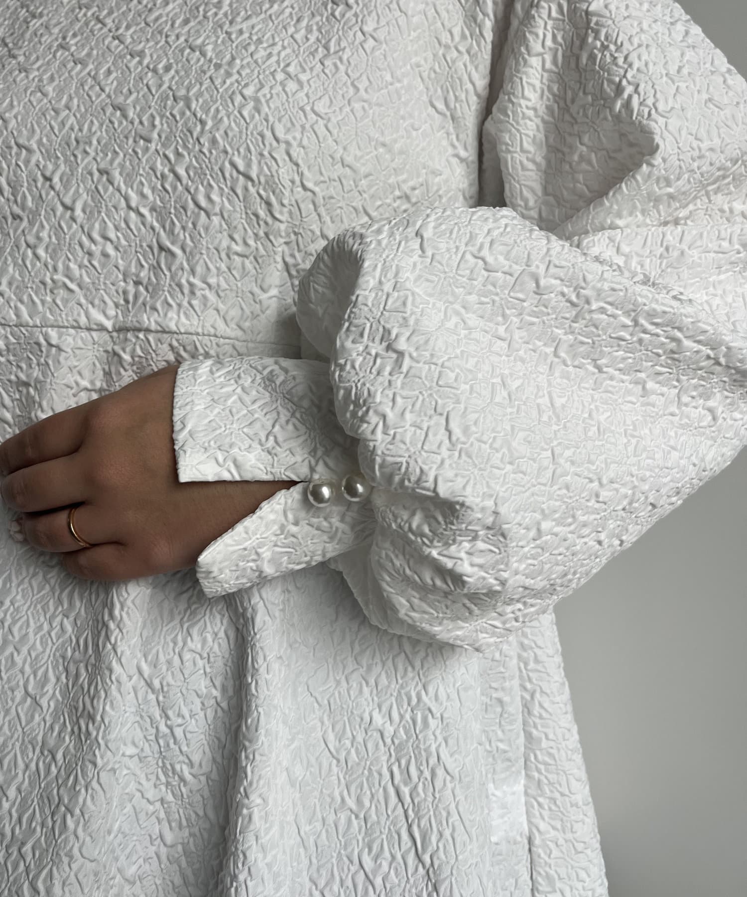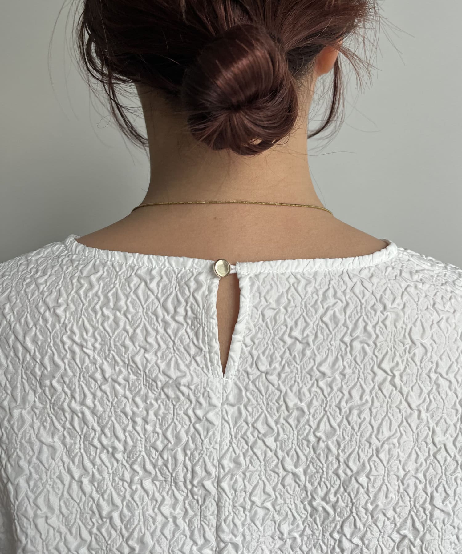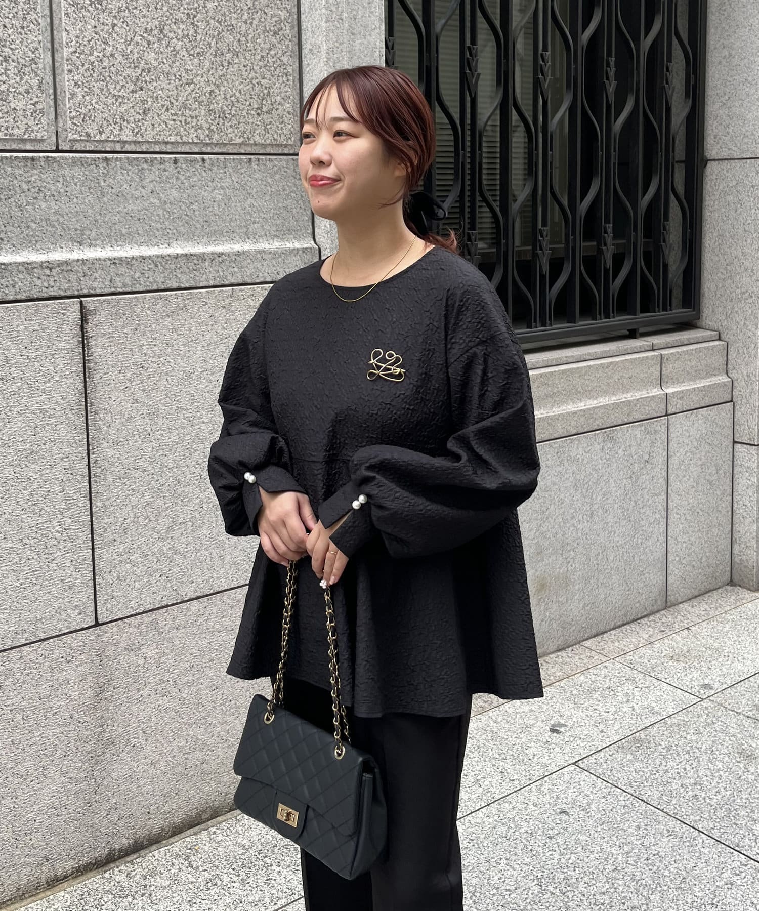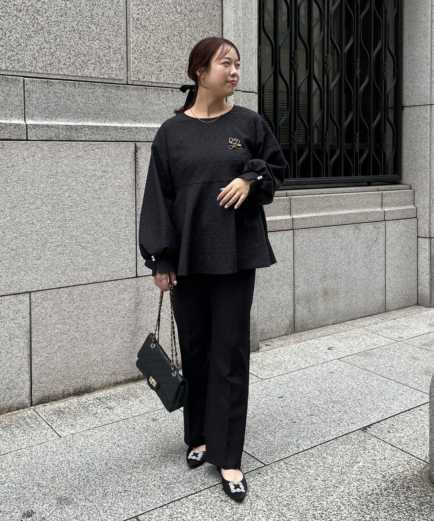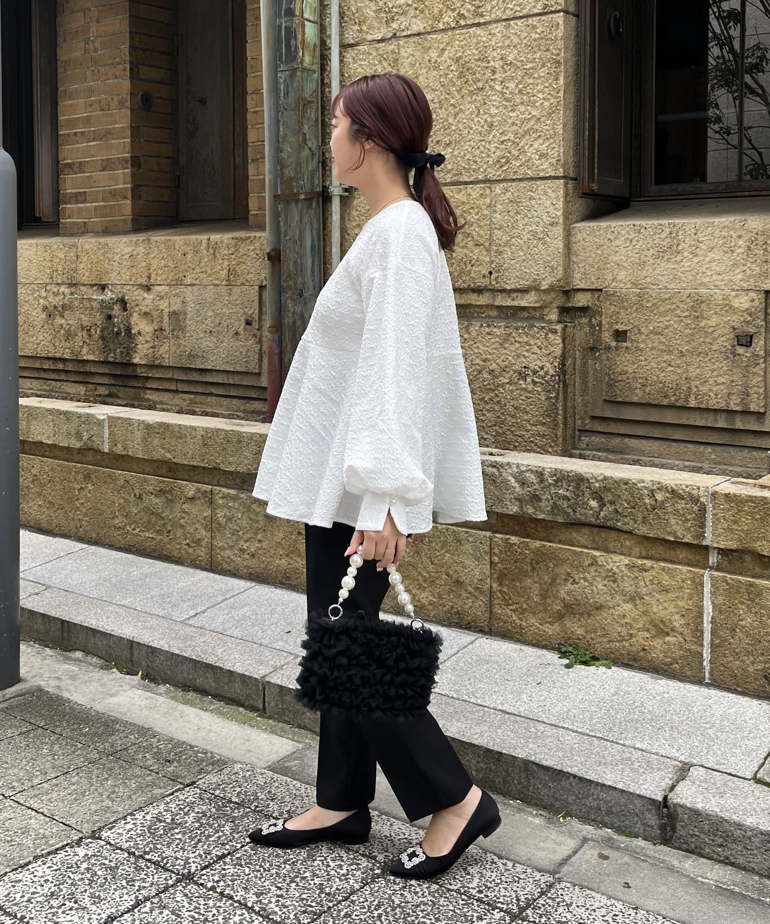 【ママ監修!セレモニーアイテム】バルーンスリーブジャガードペプラムブラウス