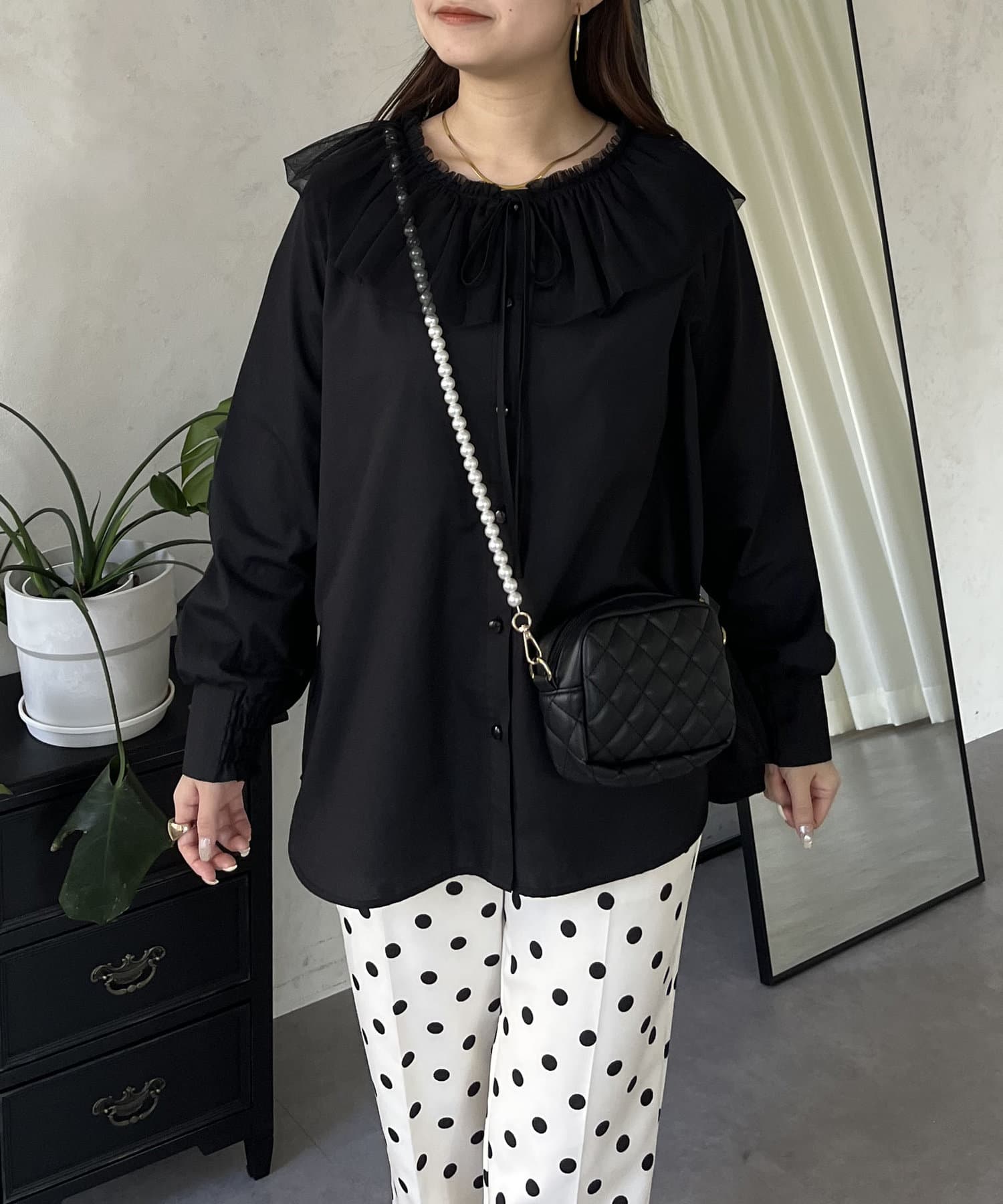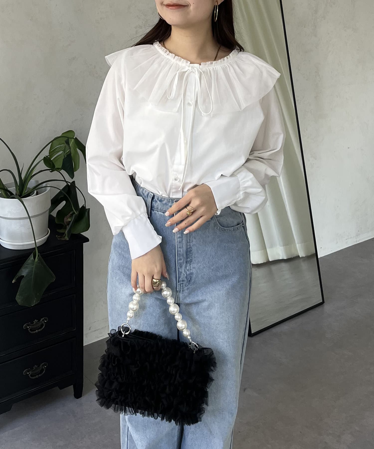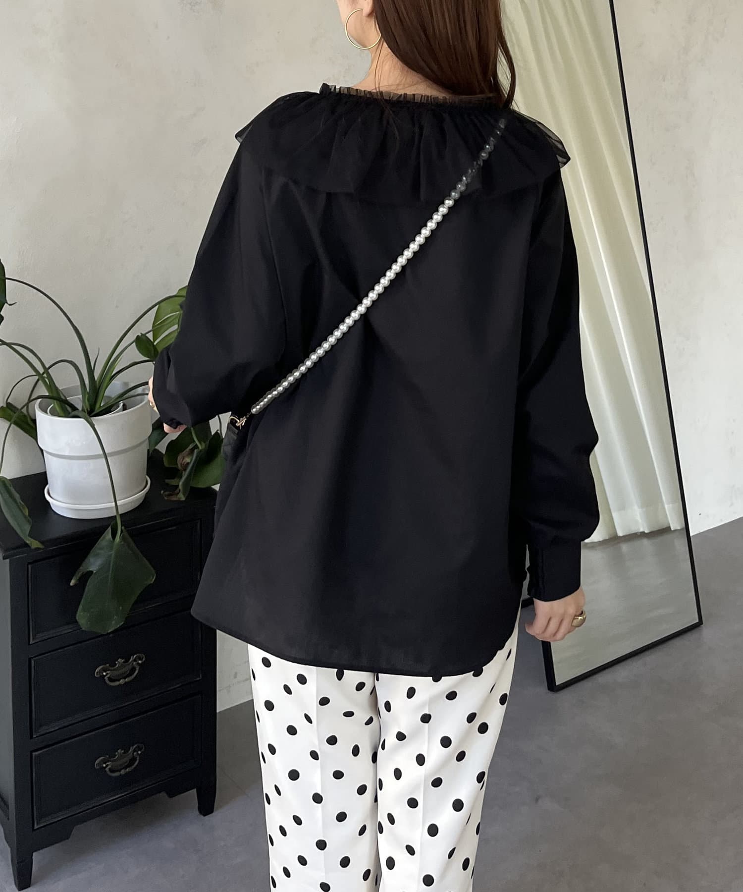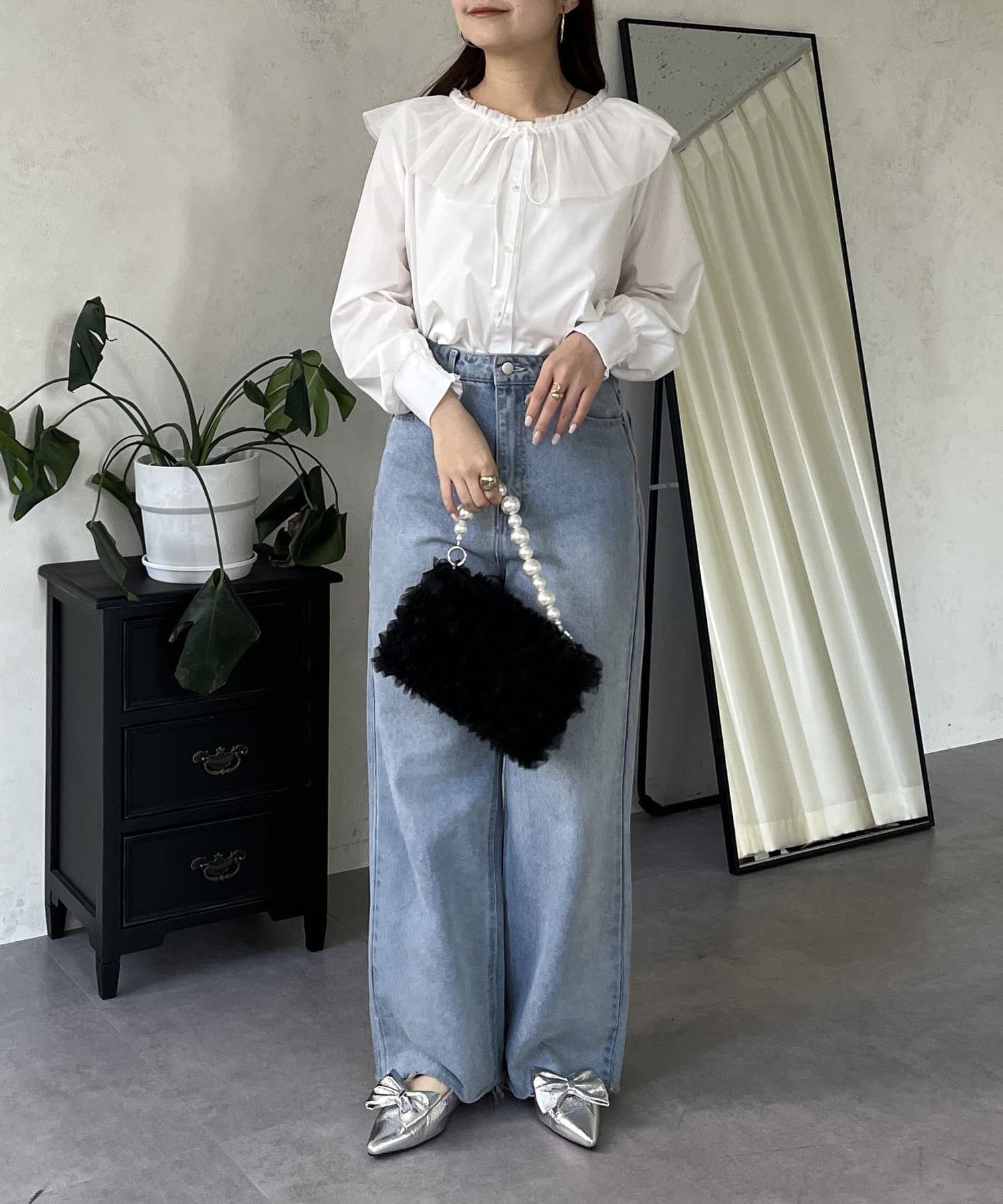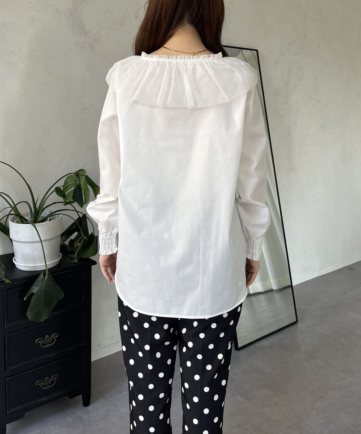 チュールフリルカラーブラウス