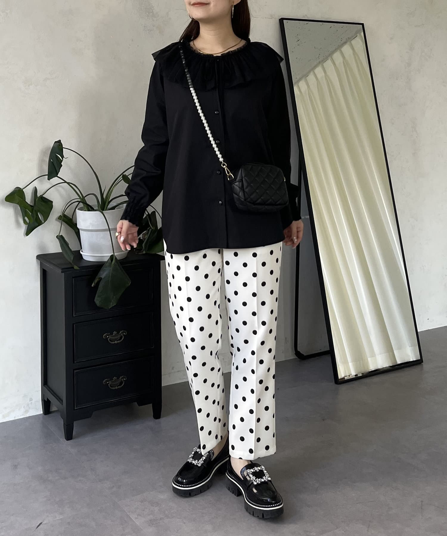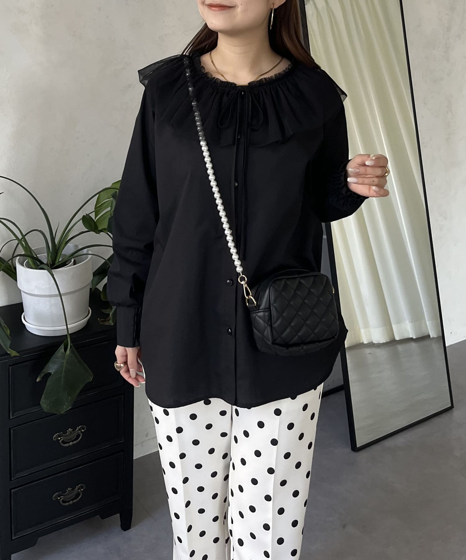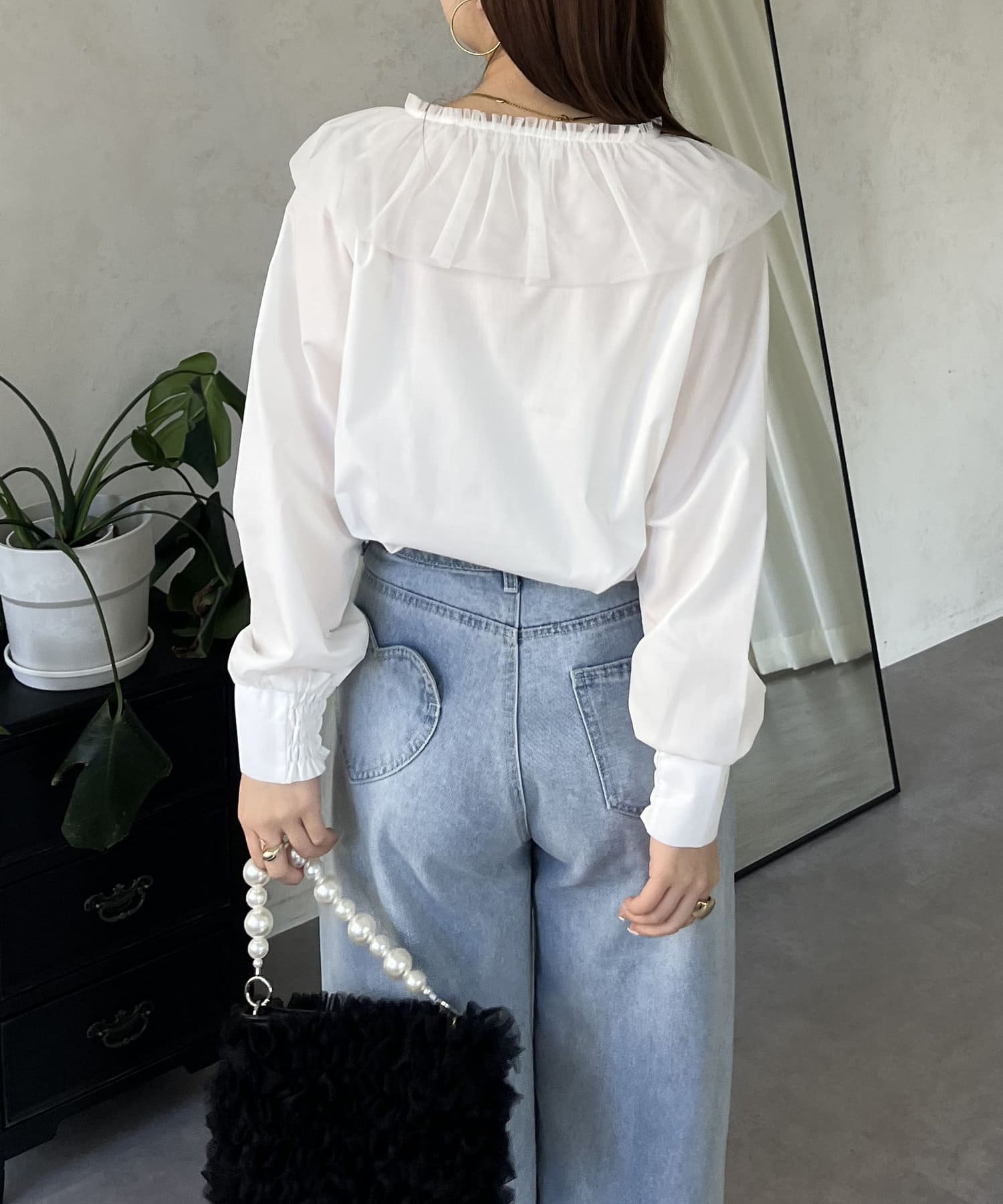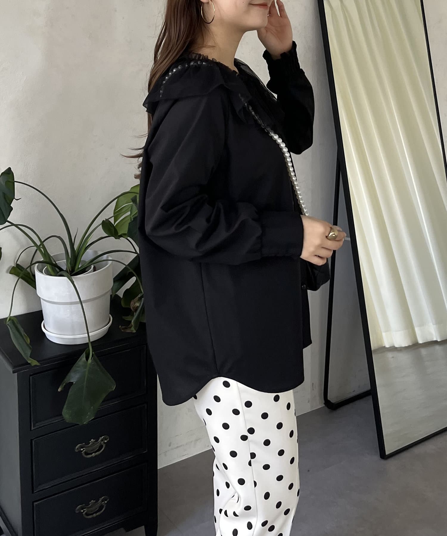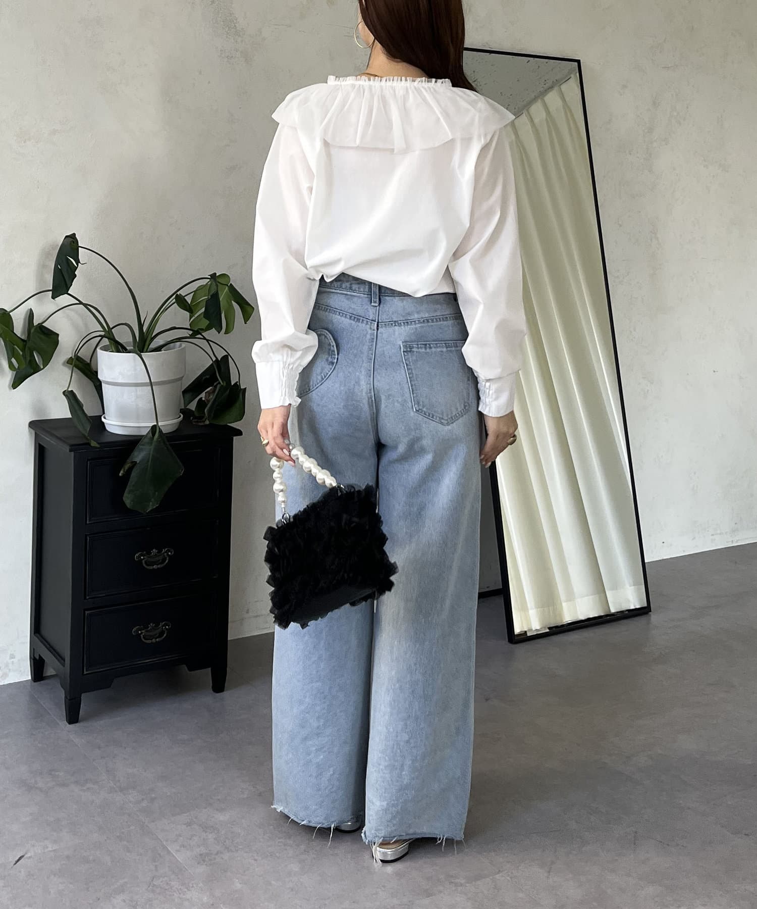チュールフリルカラーブラウス