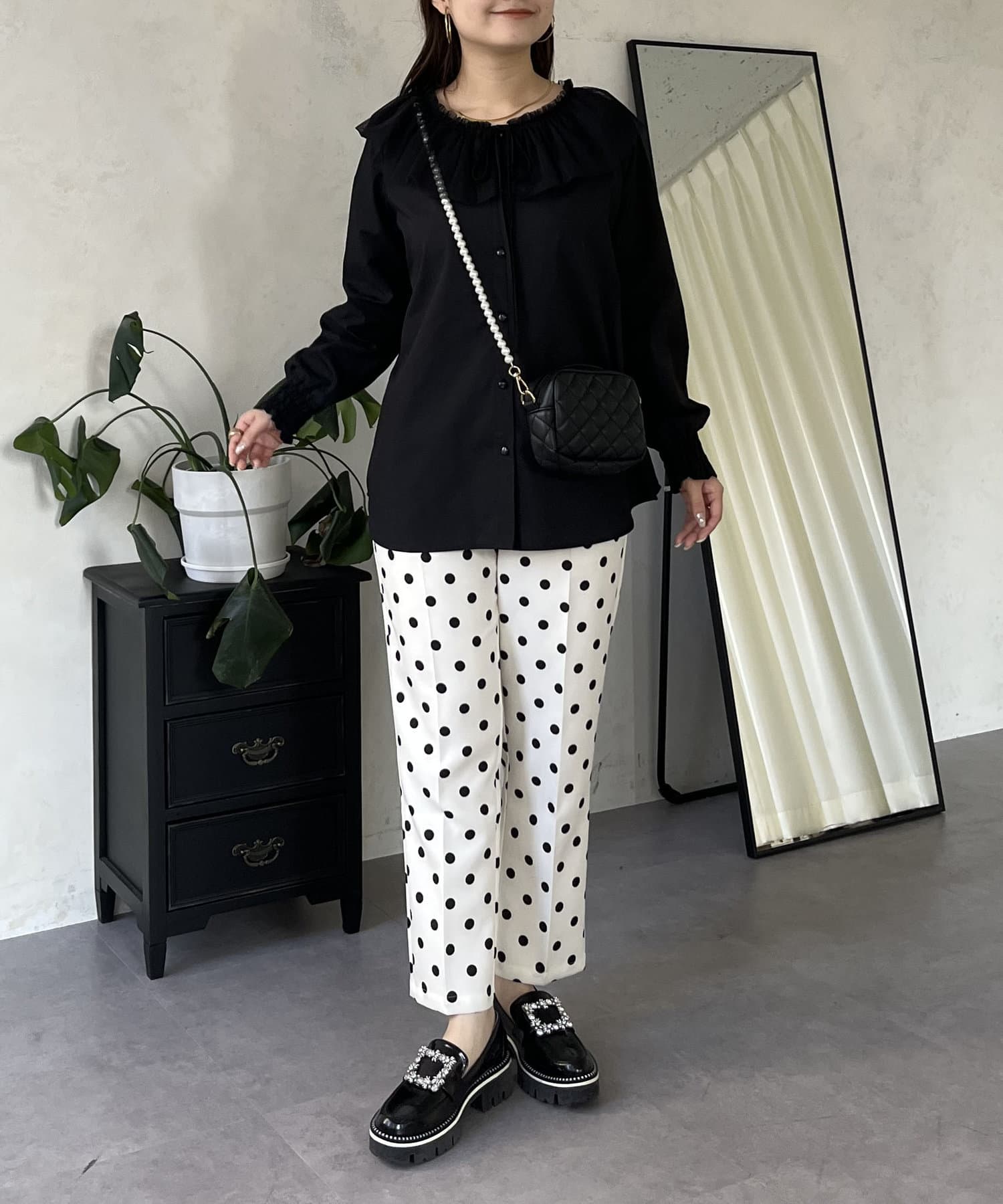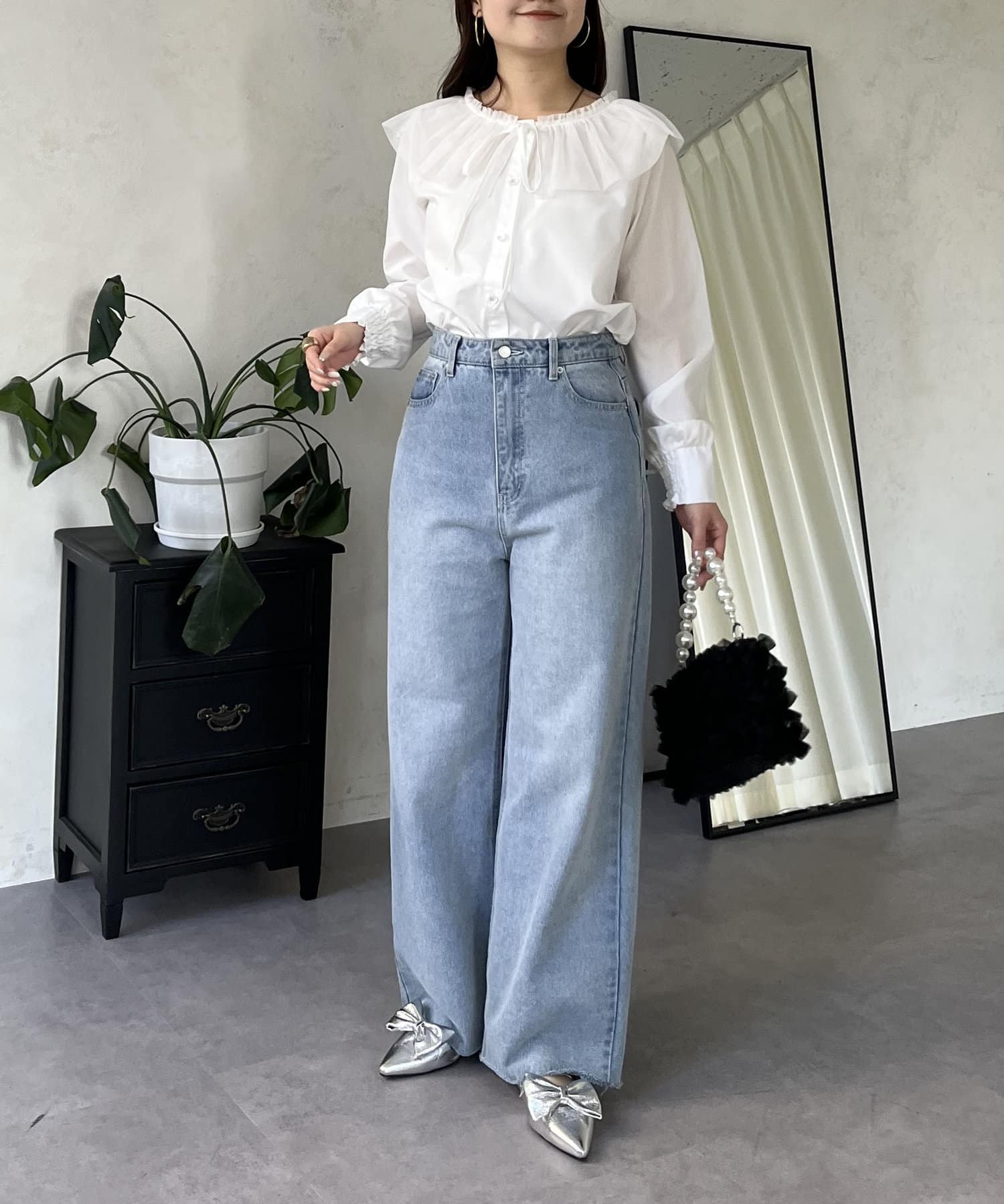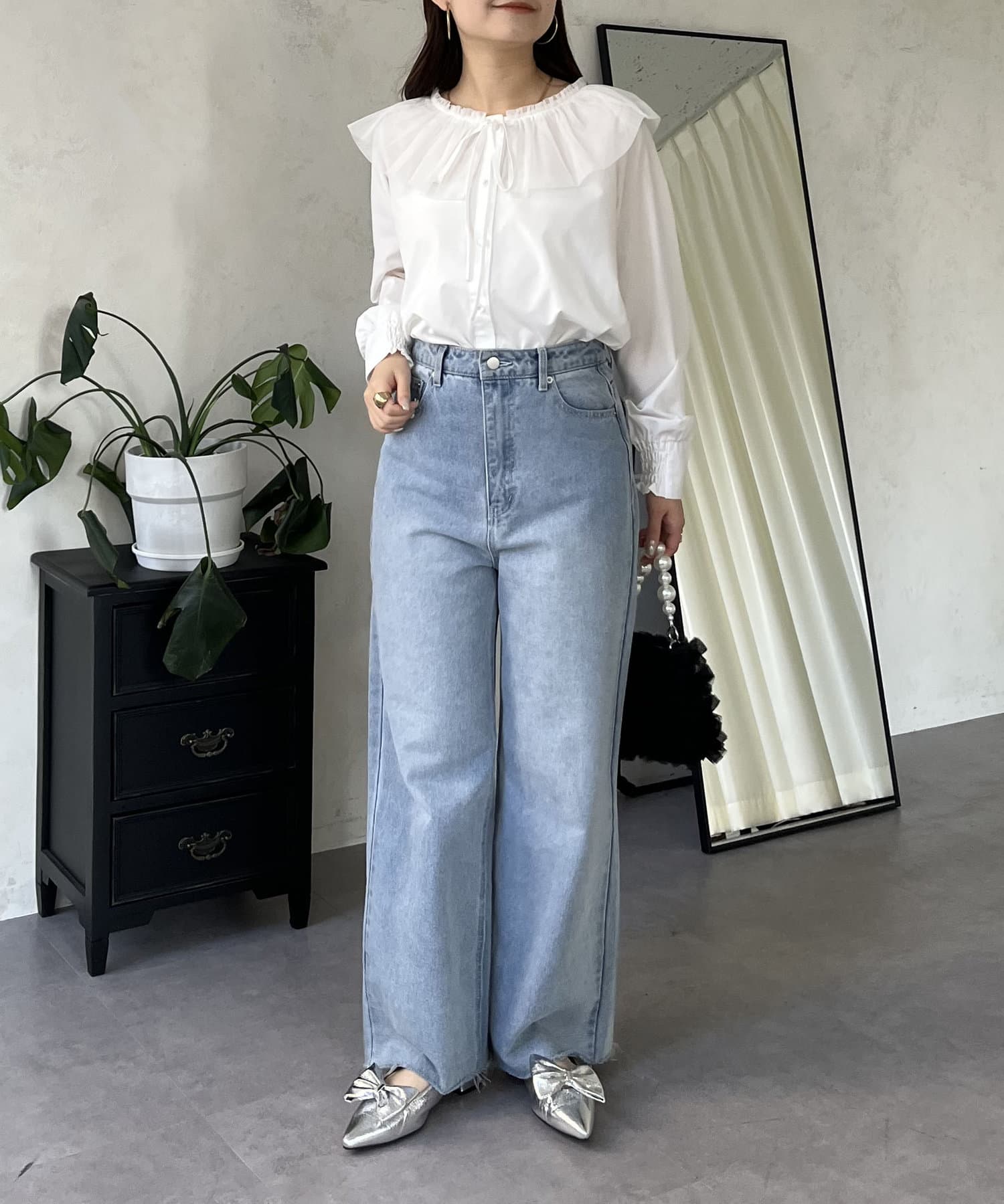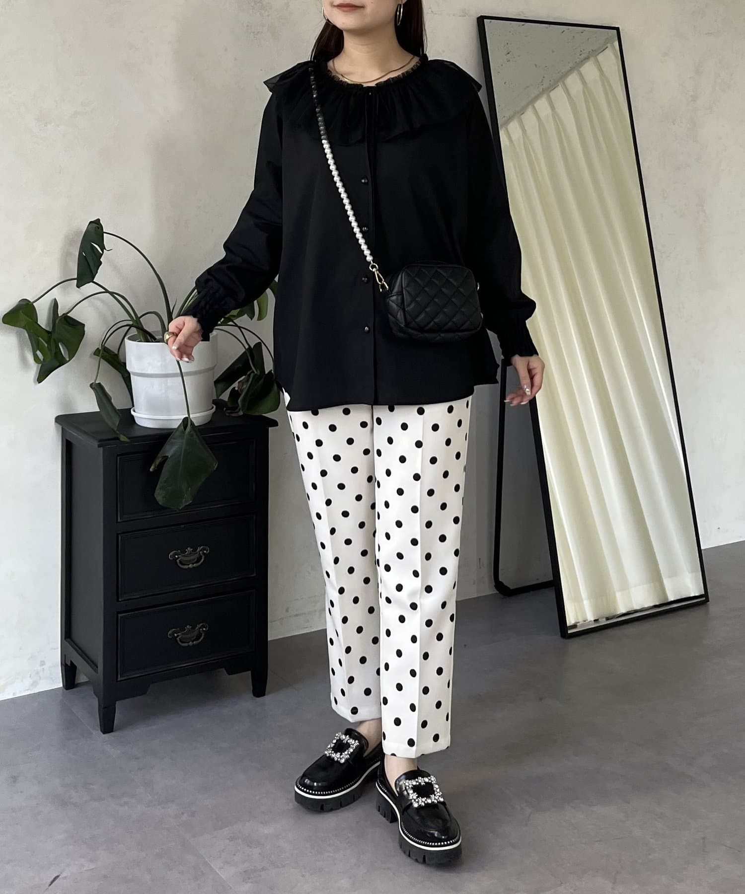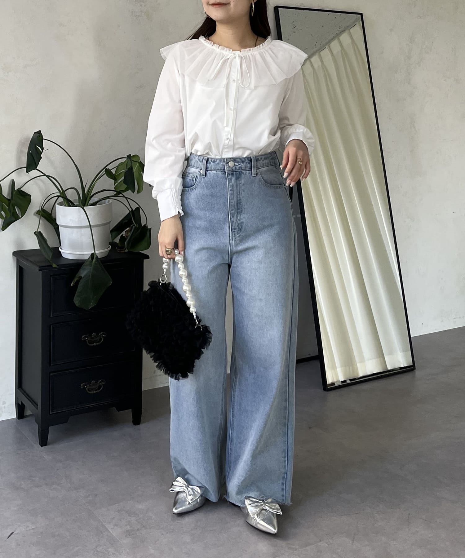 チュールフリルカラーブラウス