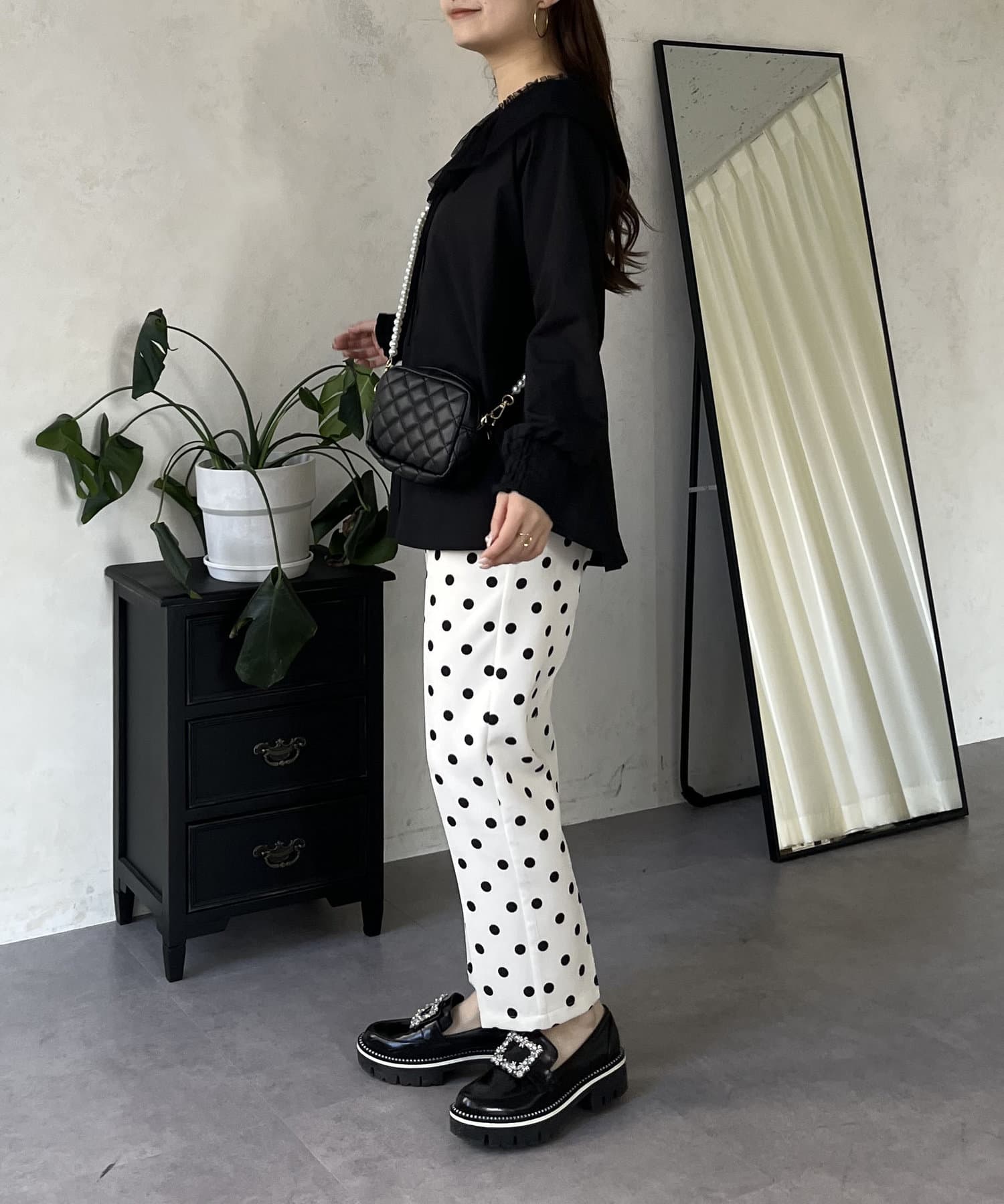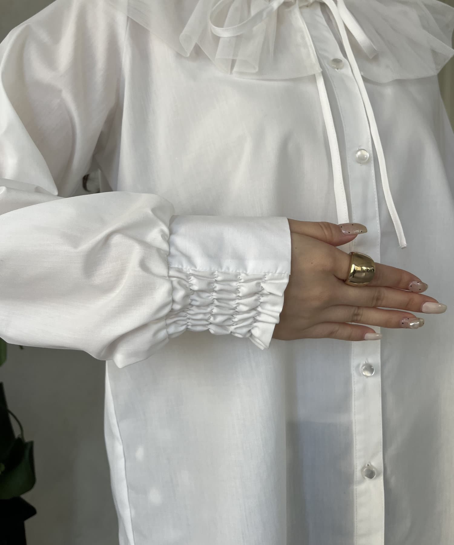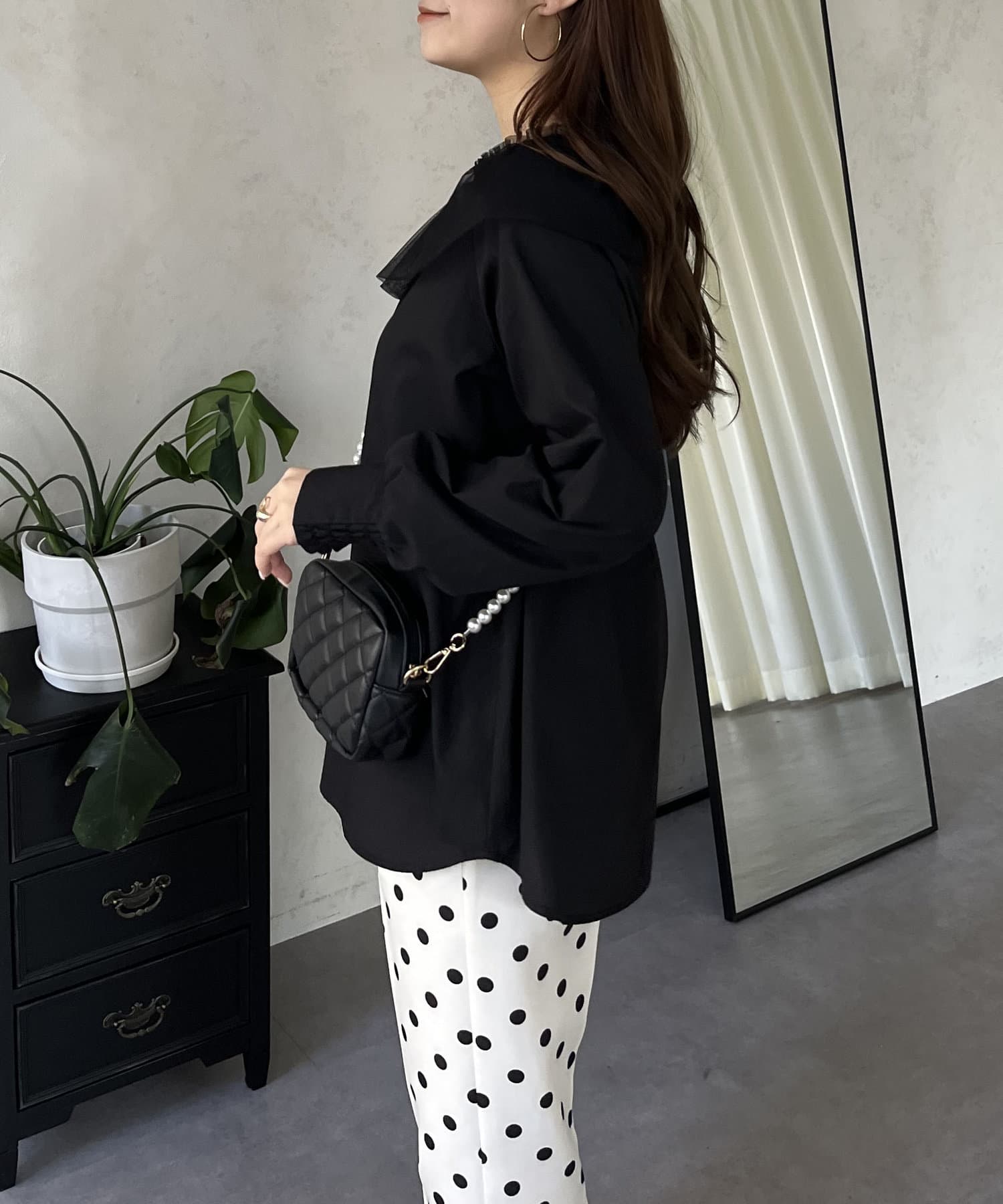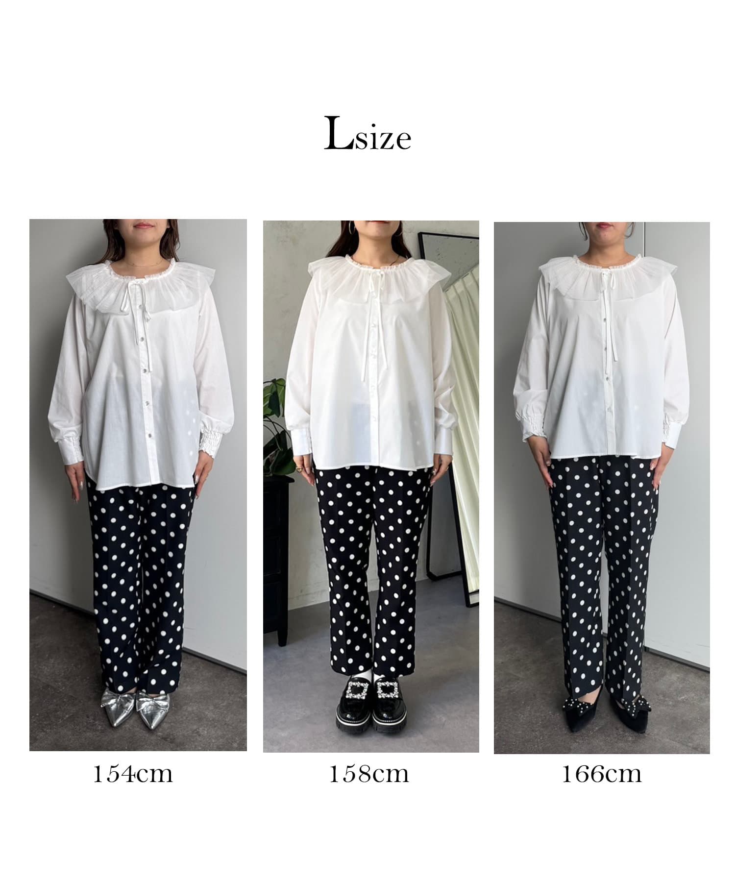 チュールの襟が華やかさを演出するブラウス