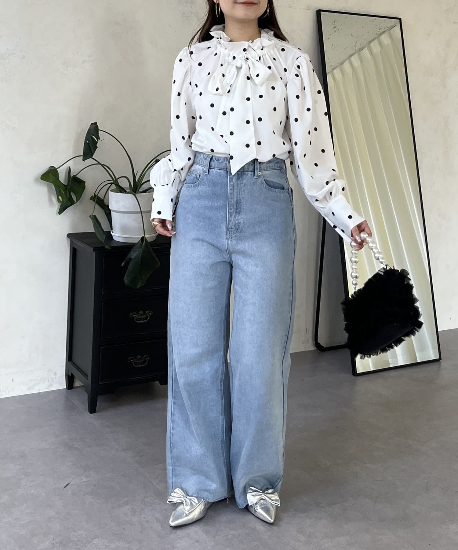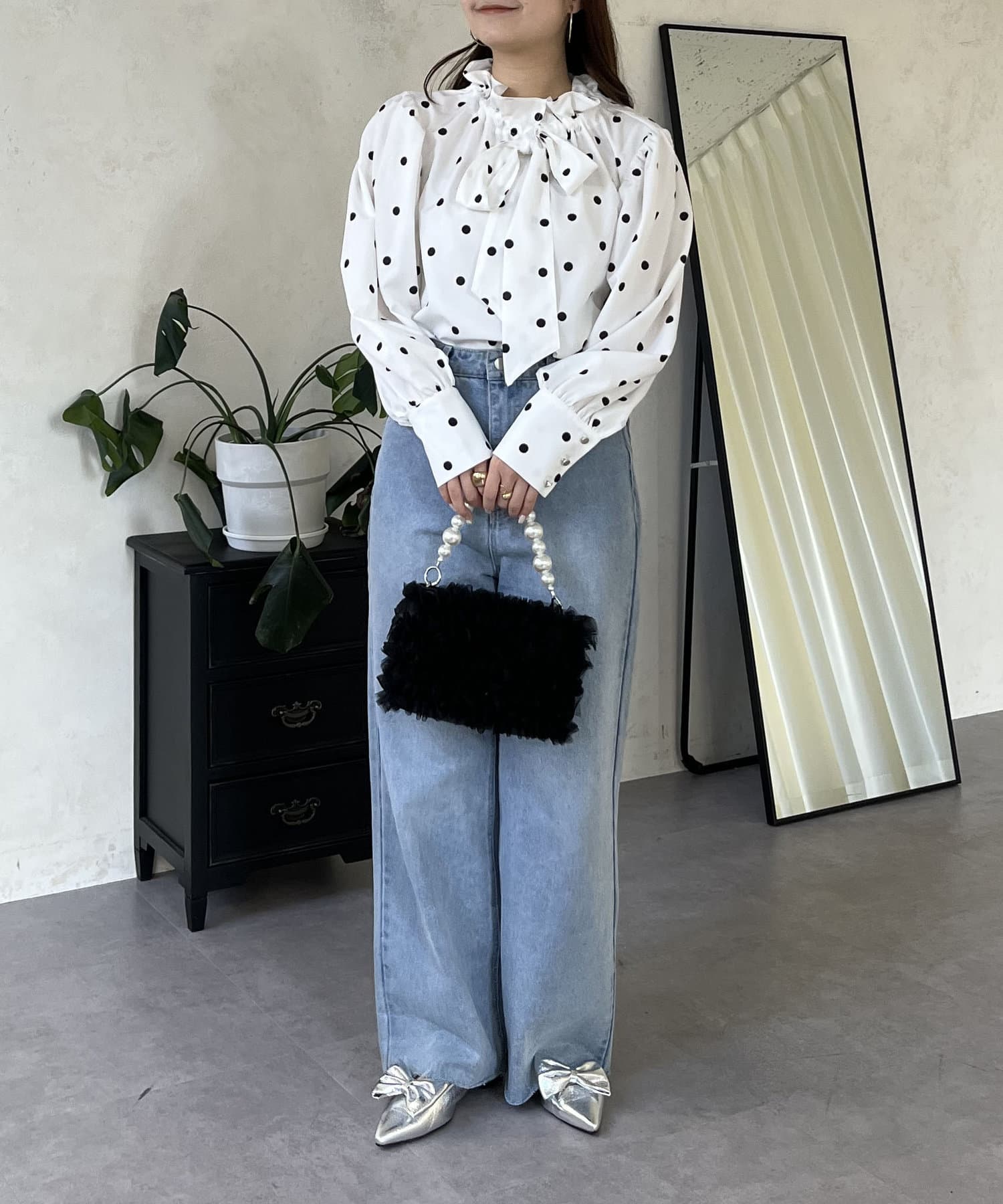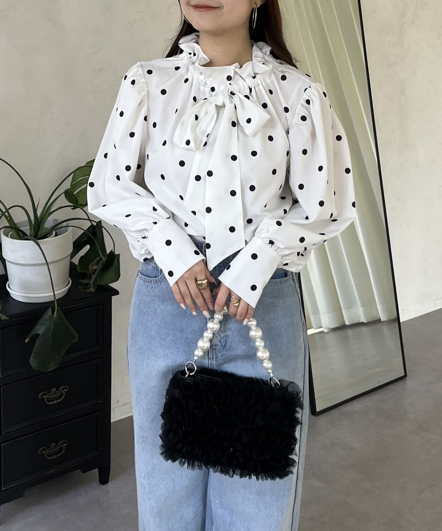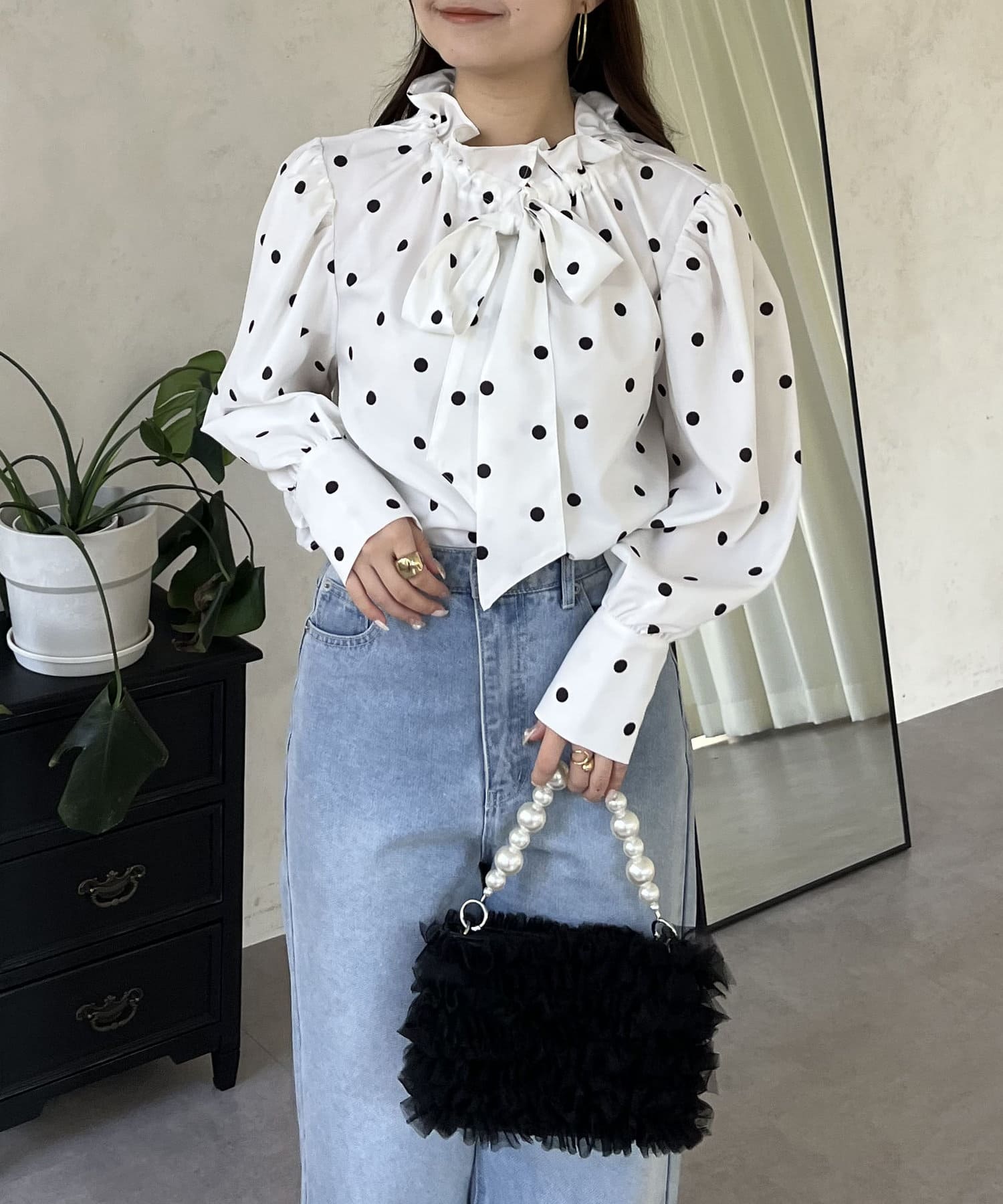 フリルとリボンが女性らしい印象見せてくれるブラウス