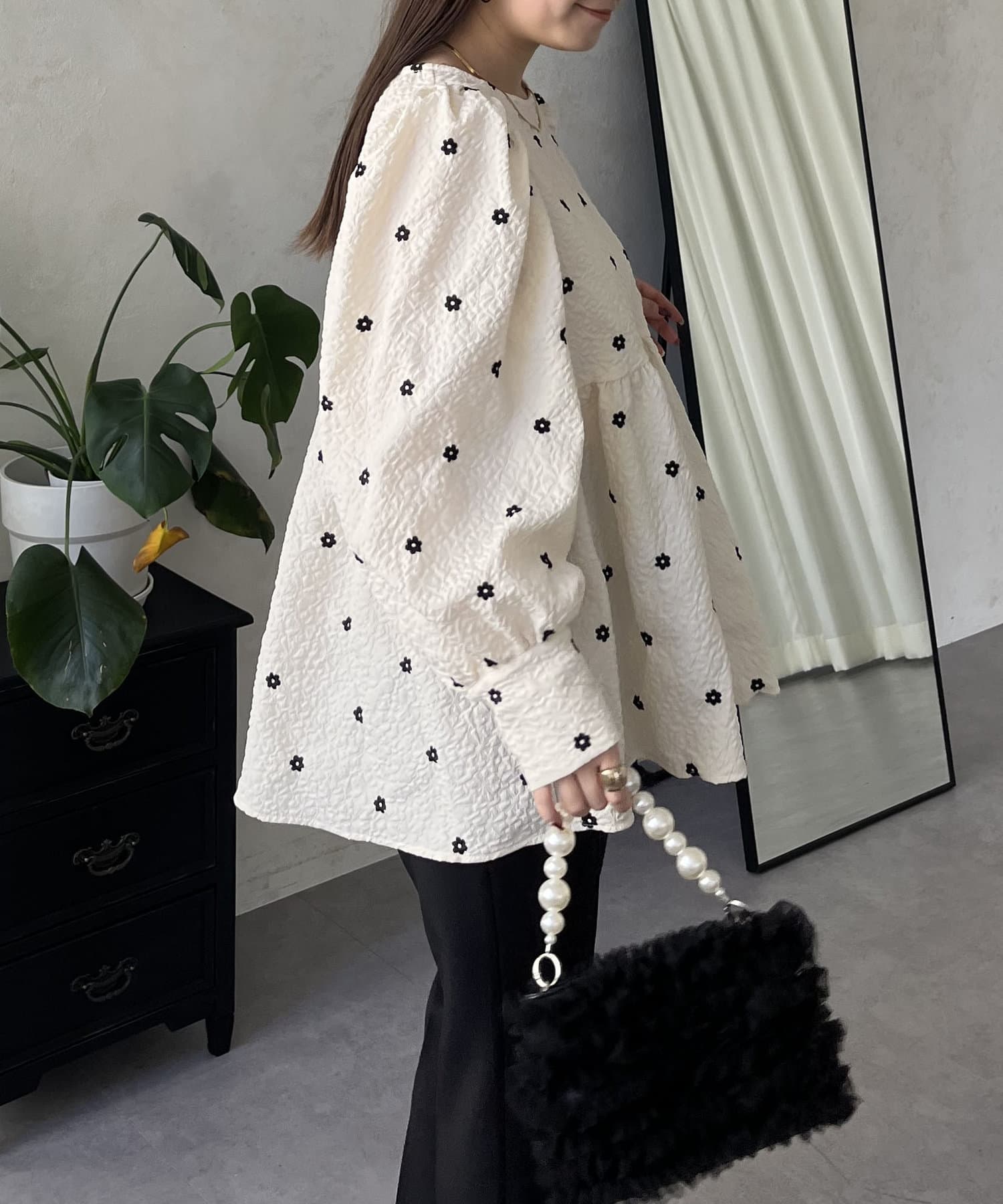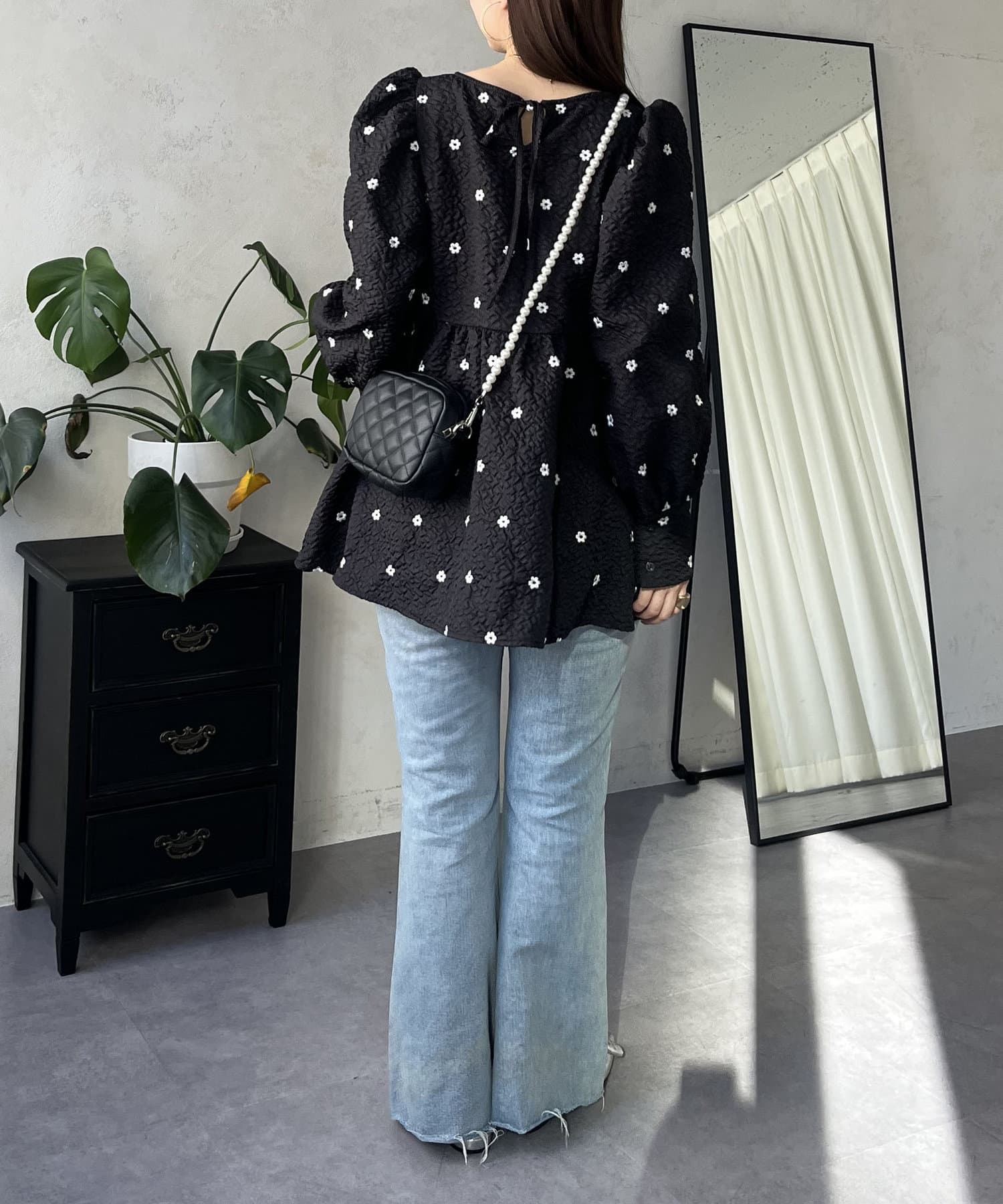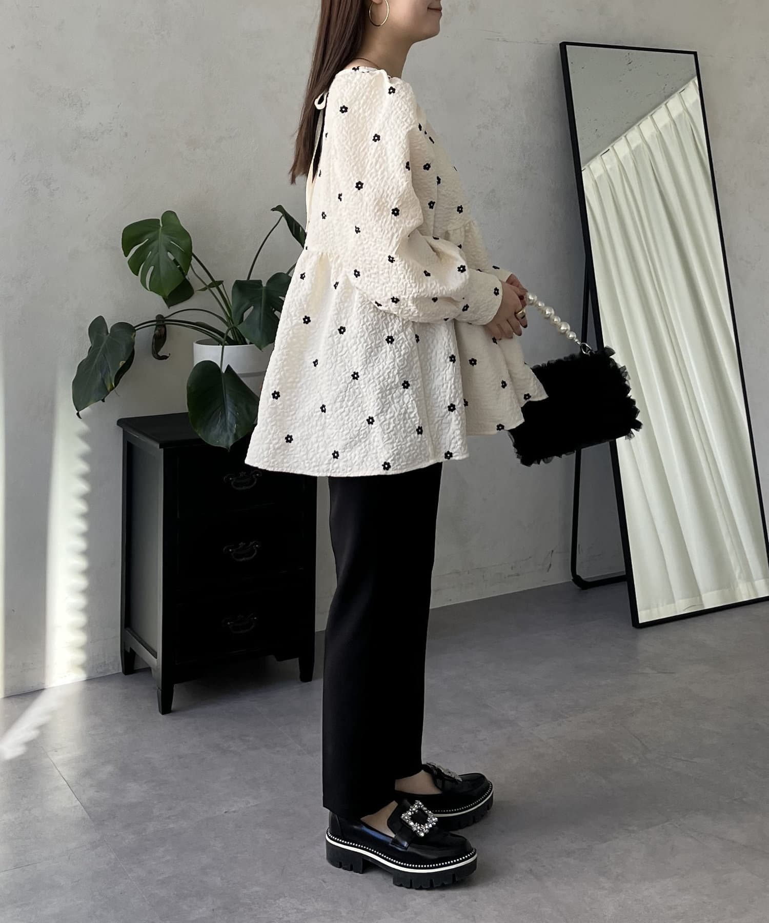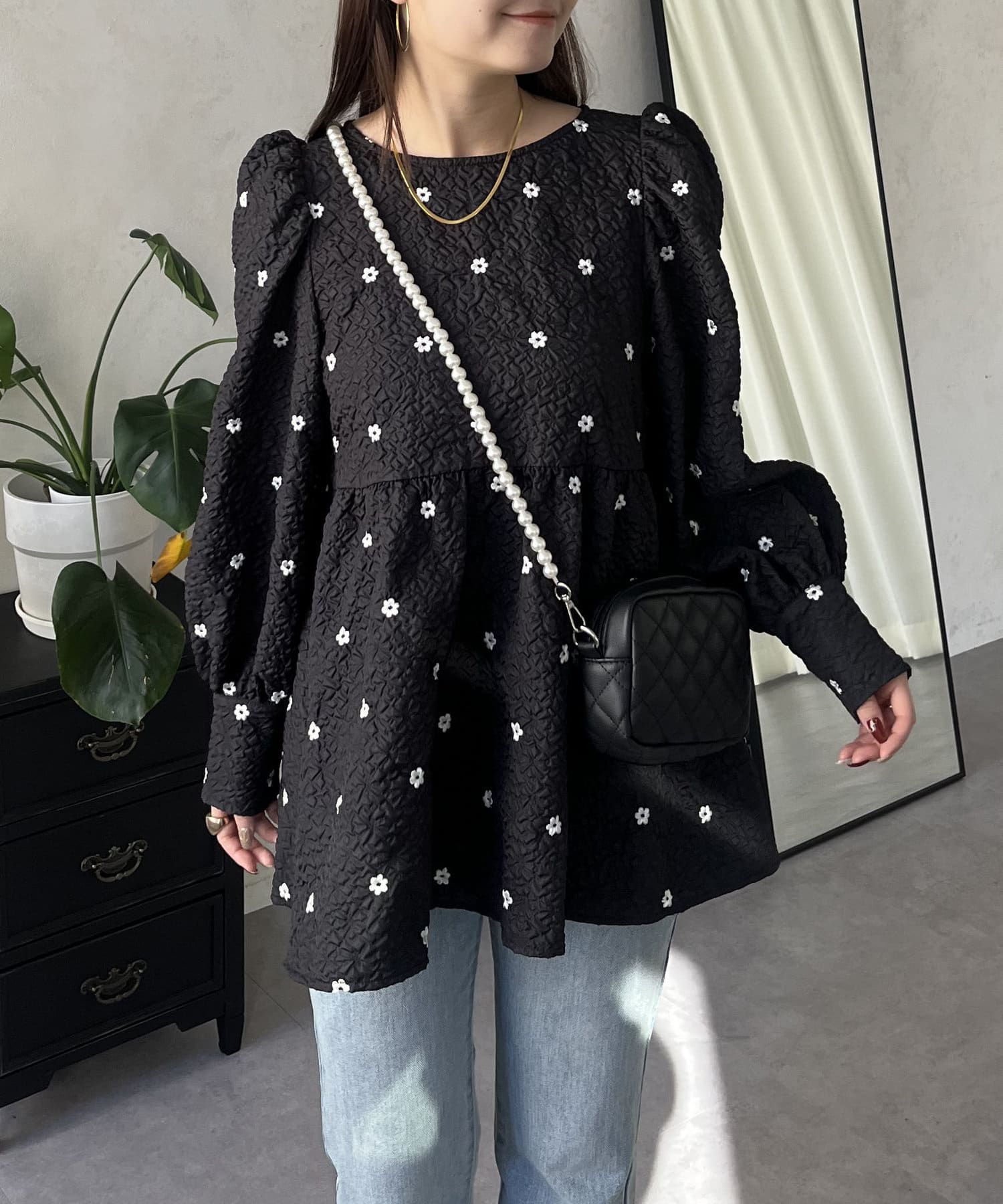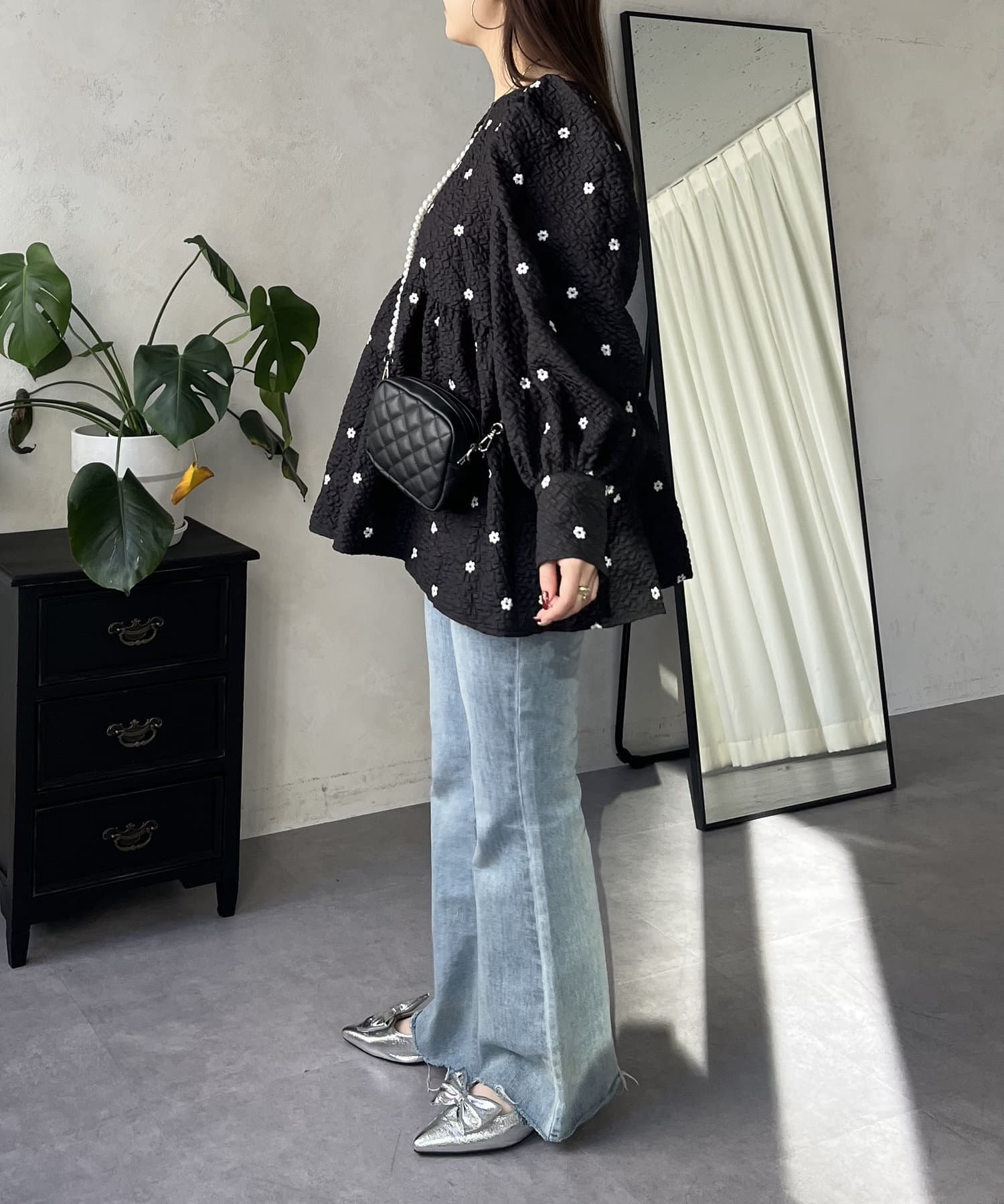 • prose verse(プロズヴェール) フラワー刺繍パフスリーブペプラムブラウス