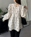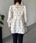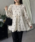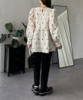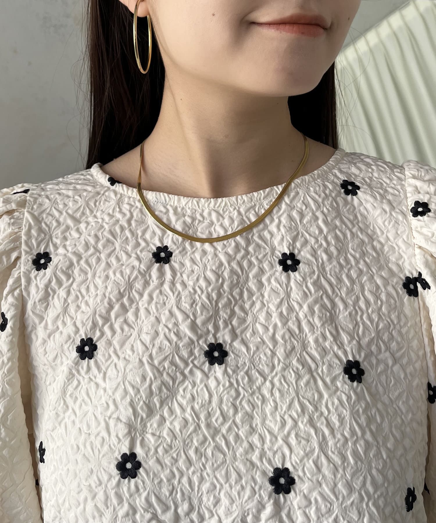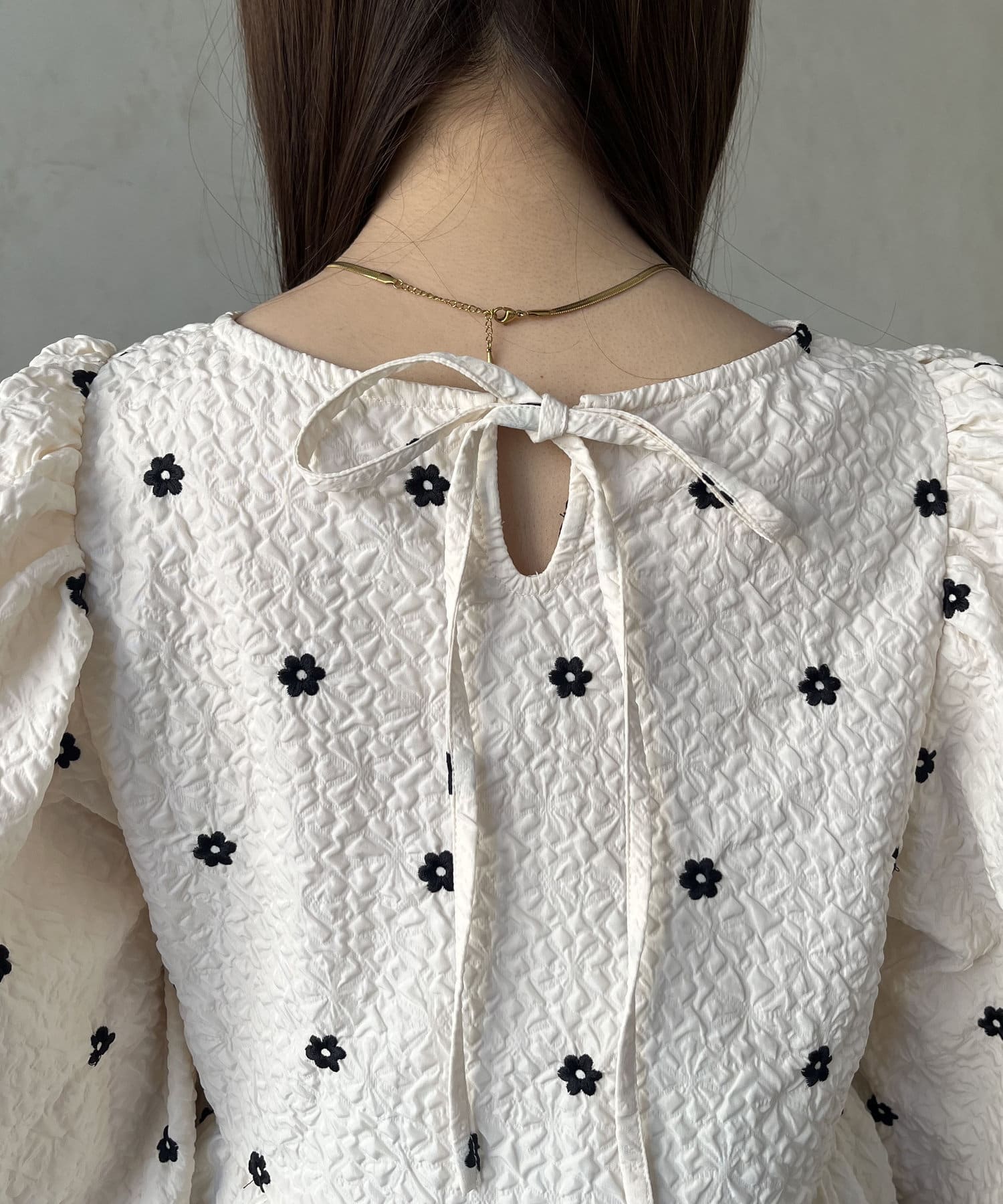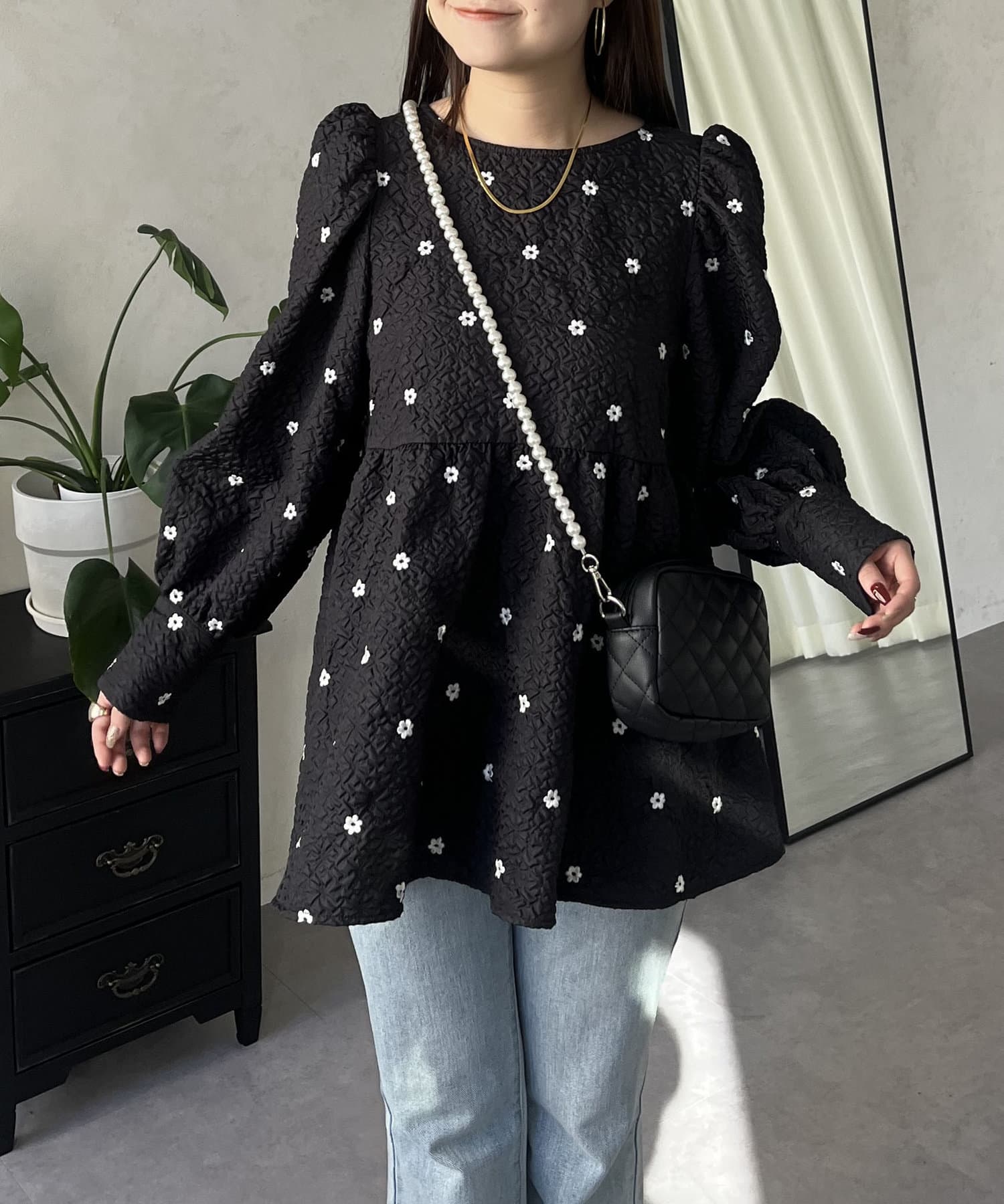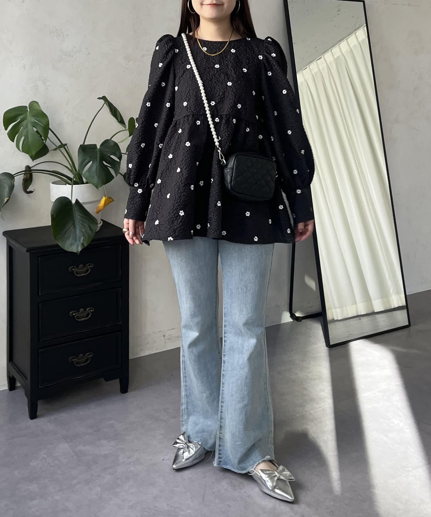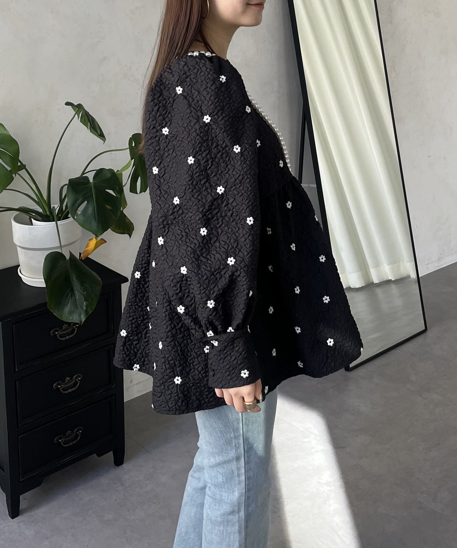 • prose verse(プロズヴェール) フラワー刺繍パフスリーブペプラムブラウス