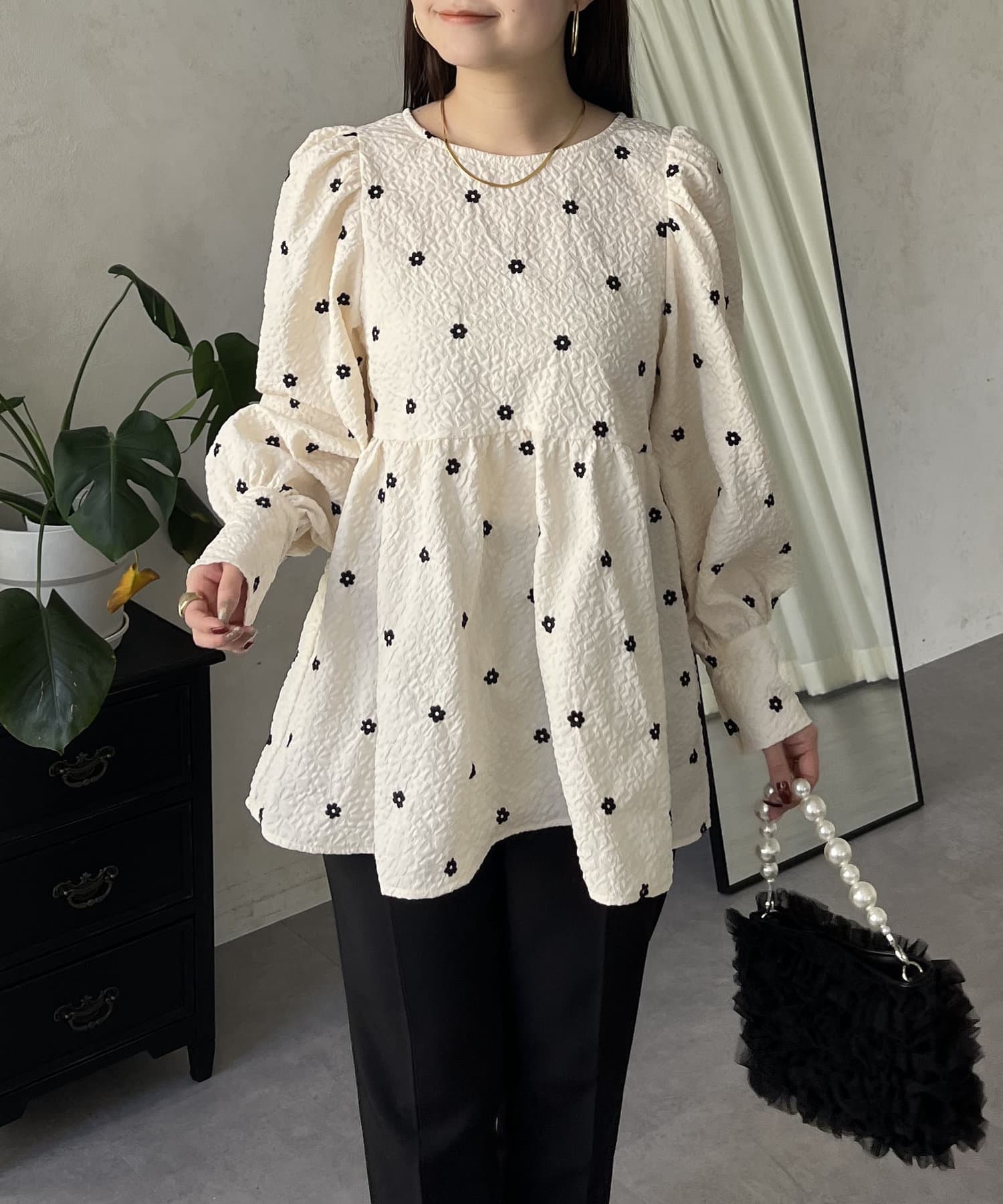 TOP > prose verse > レディース > トップス > シャツ/ブラウス(プルオーバー) > フラワー刺繍パフスリーブペプラムブラウス