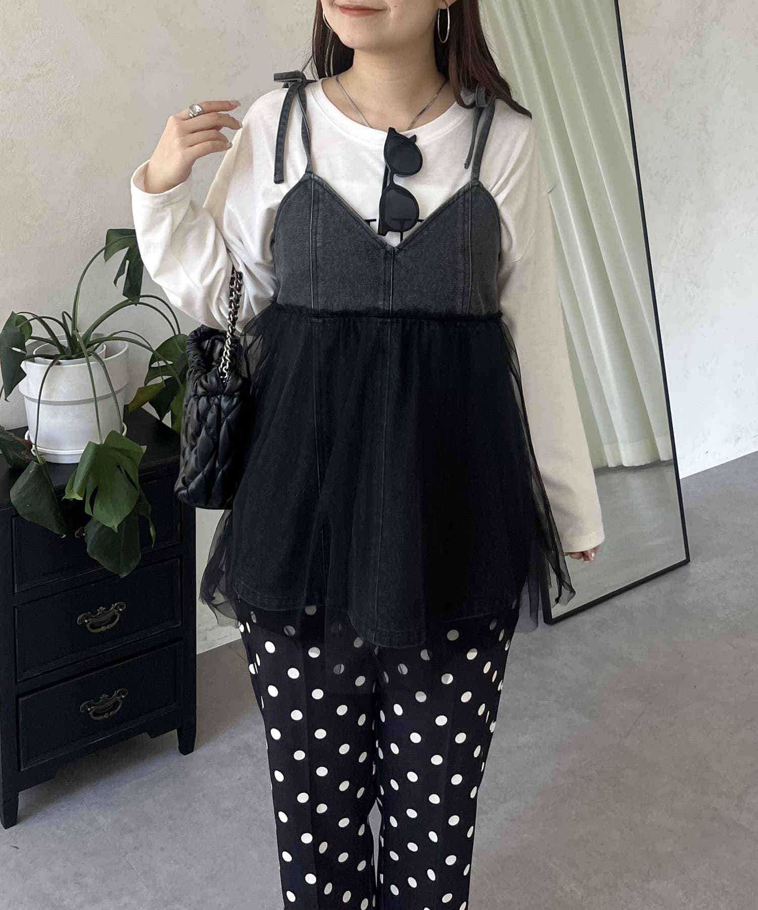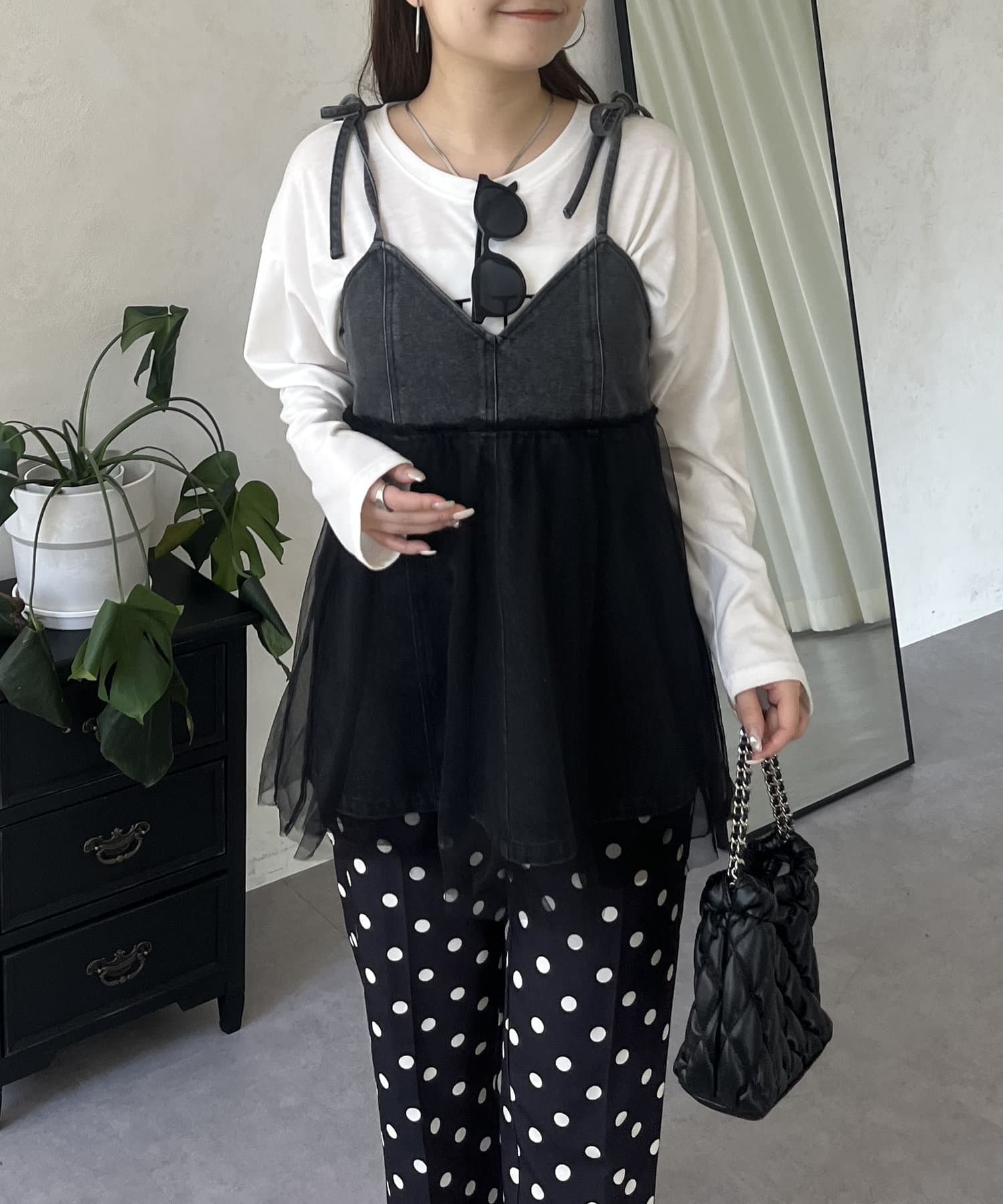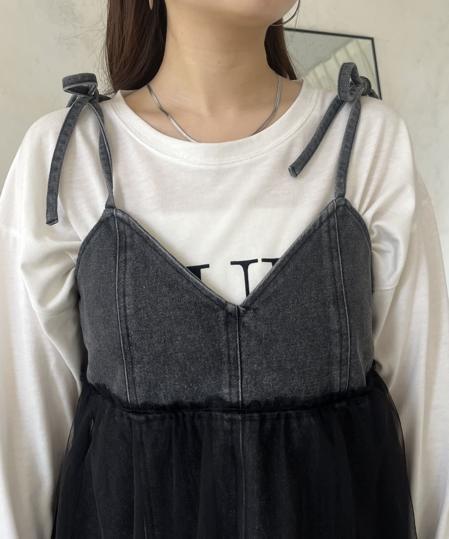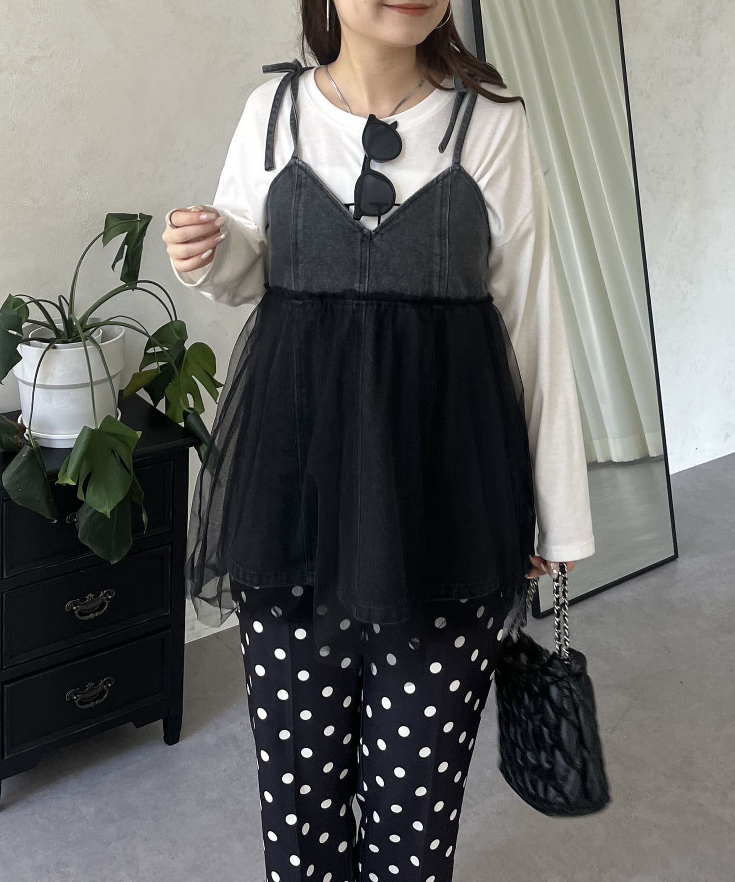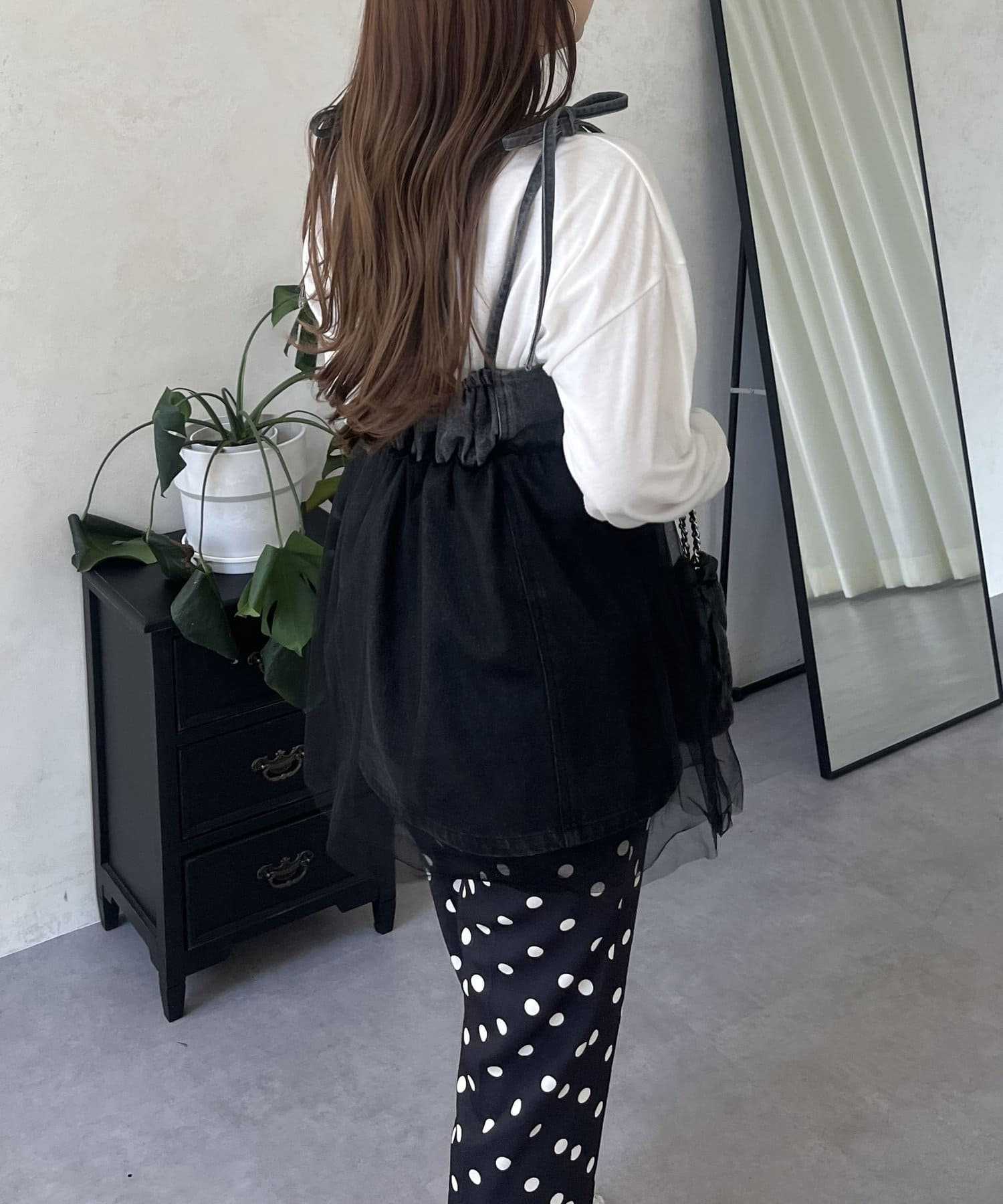 ●デニムビスチェにチュールが重なったワンランク上のアイテム