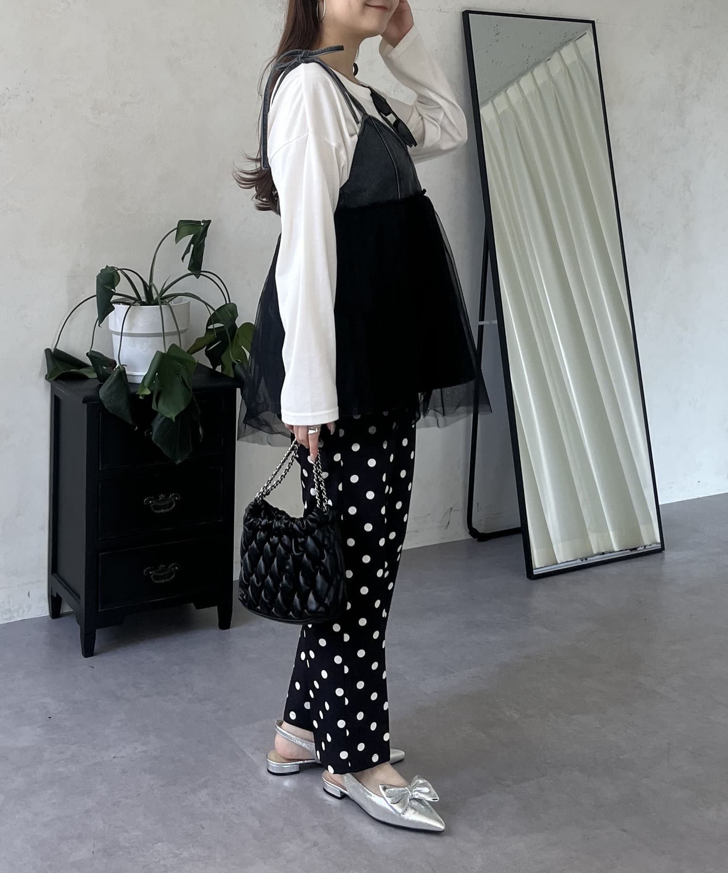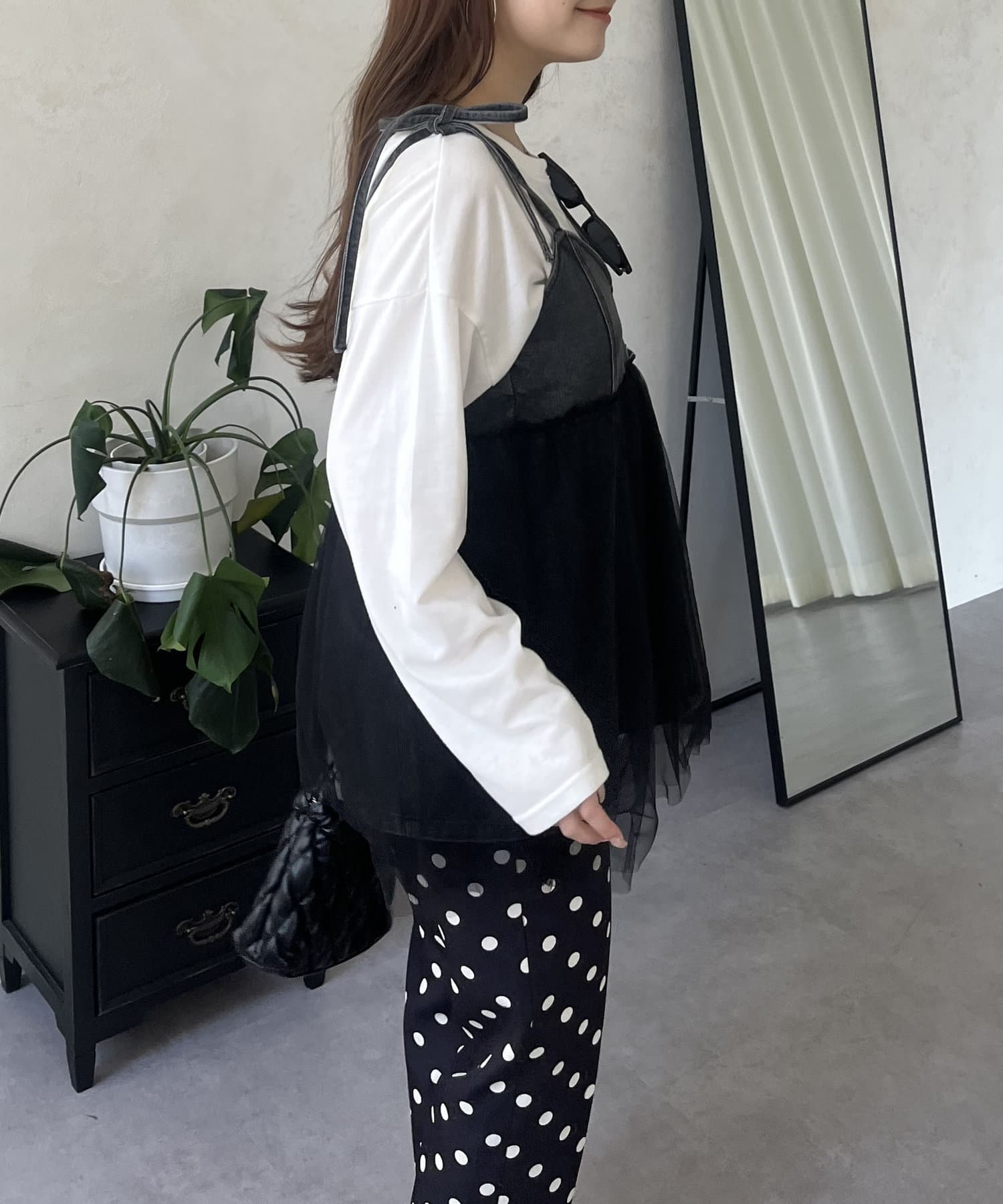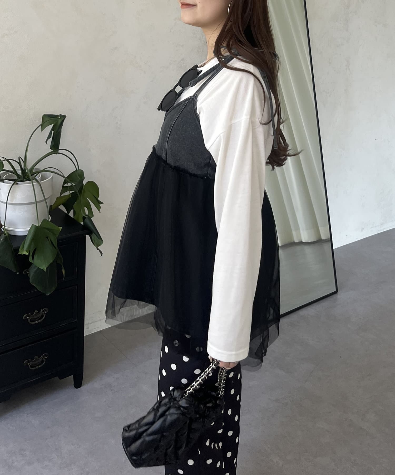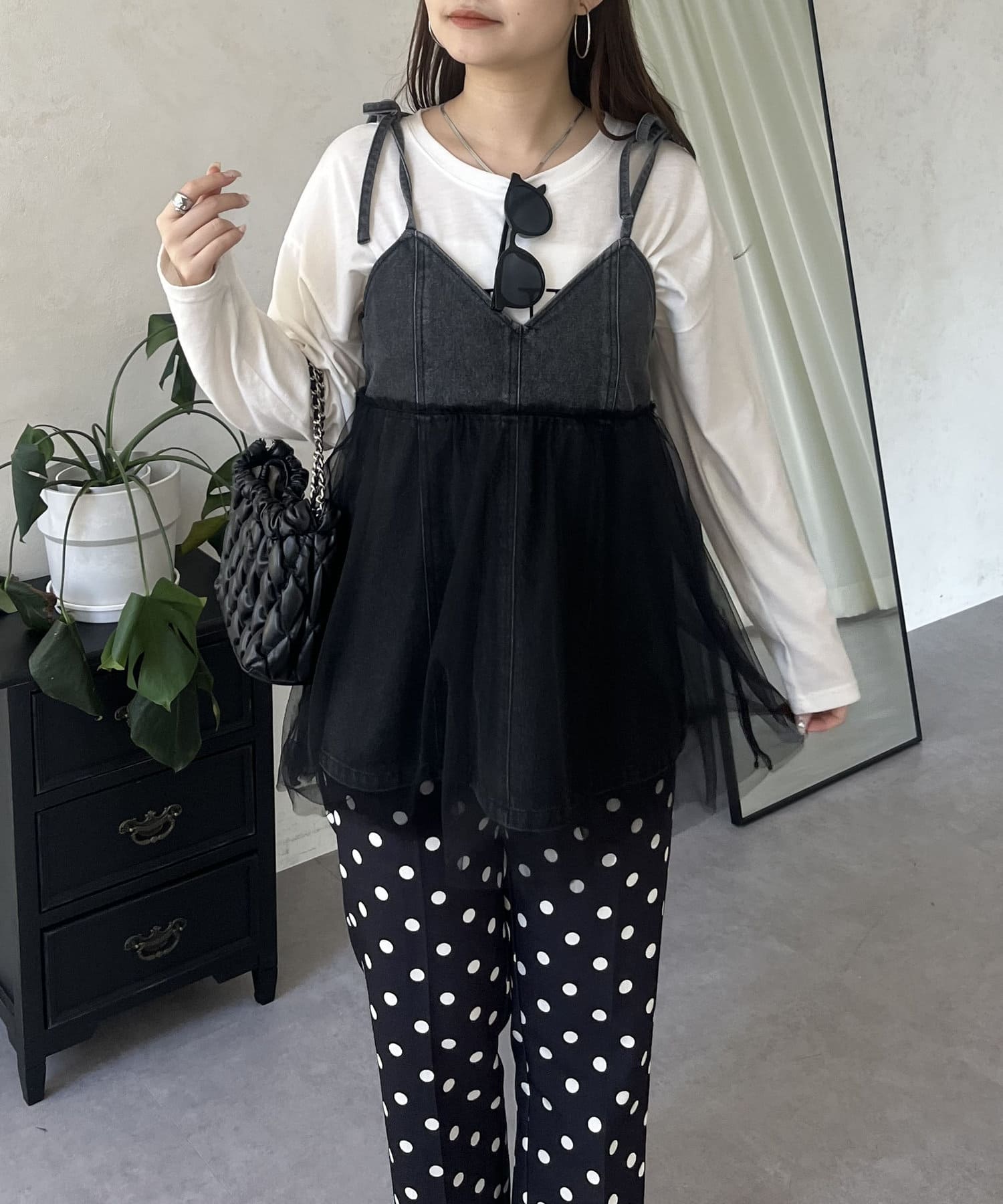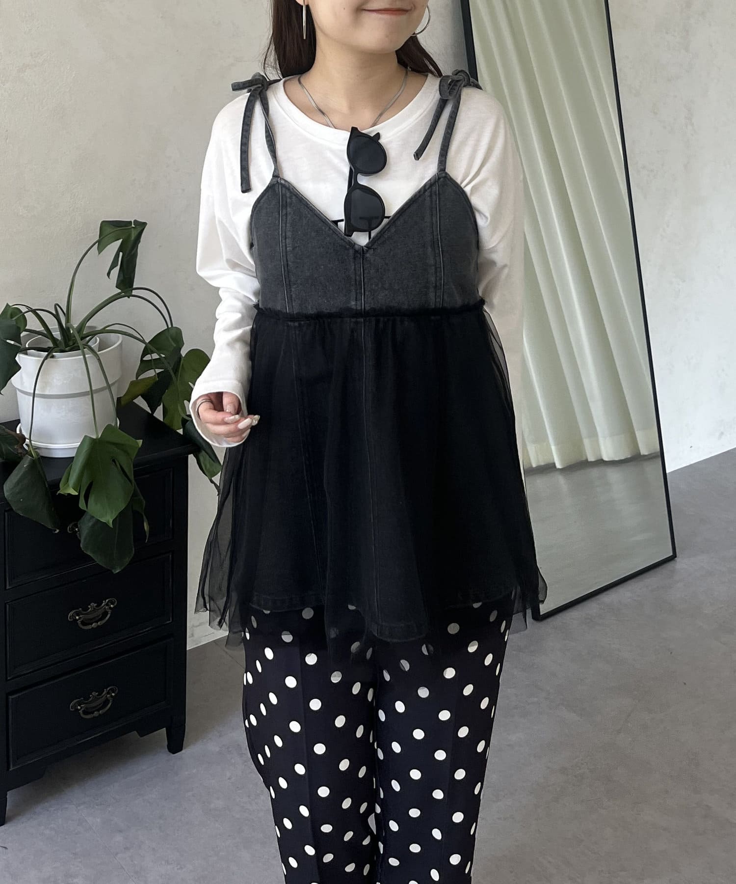 ●デニムビスチェにチュールが重なったワンランク上のアイテム