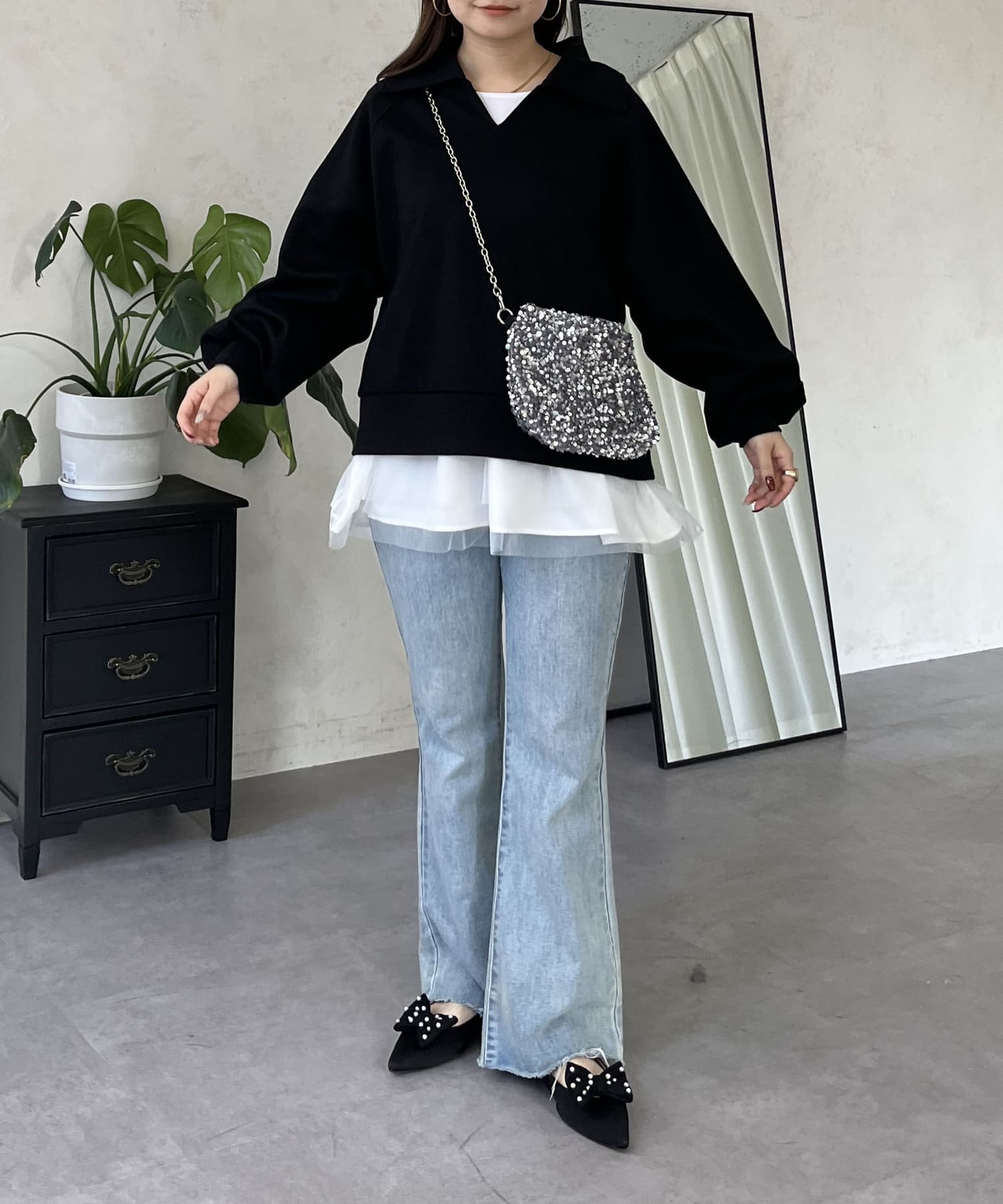 ●ペプラムロンTをプラスしてレイヤードコーデも◎