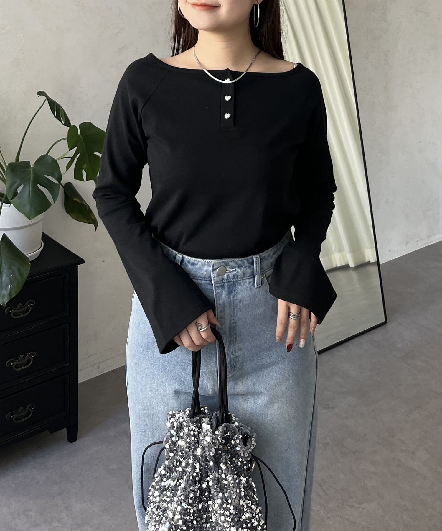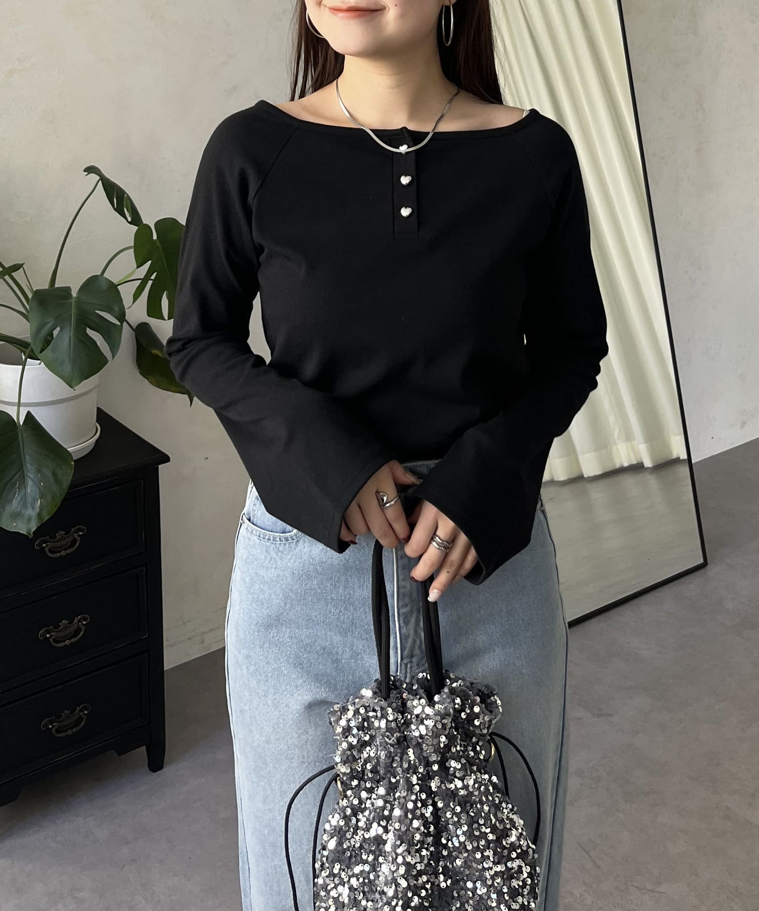 prose verse(プロズヴェール) 【前後2way】ハート釦ボートネックトップス