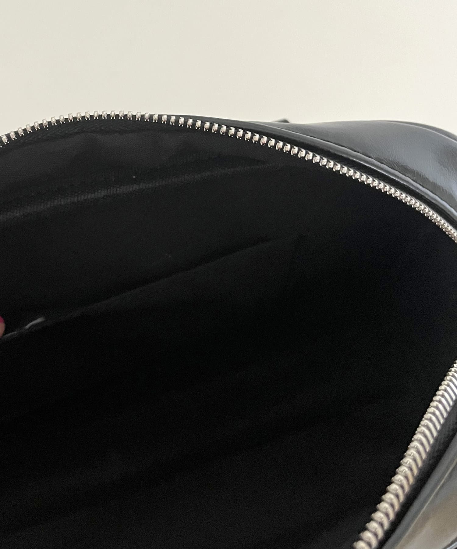 エナメルみたいなしっかりした固めの生地で良かったです!500ミリのペットボトルがギリギリ入るのも嬉しいです。