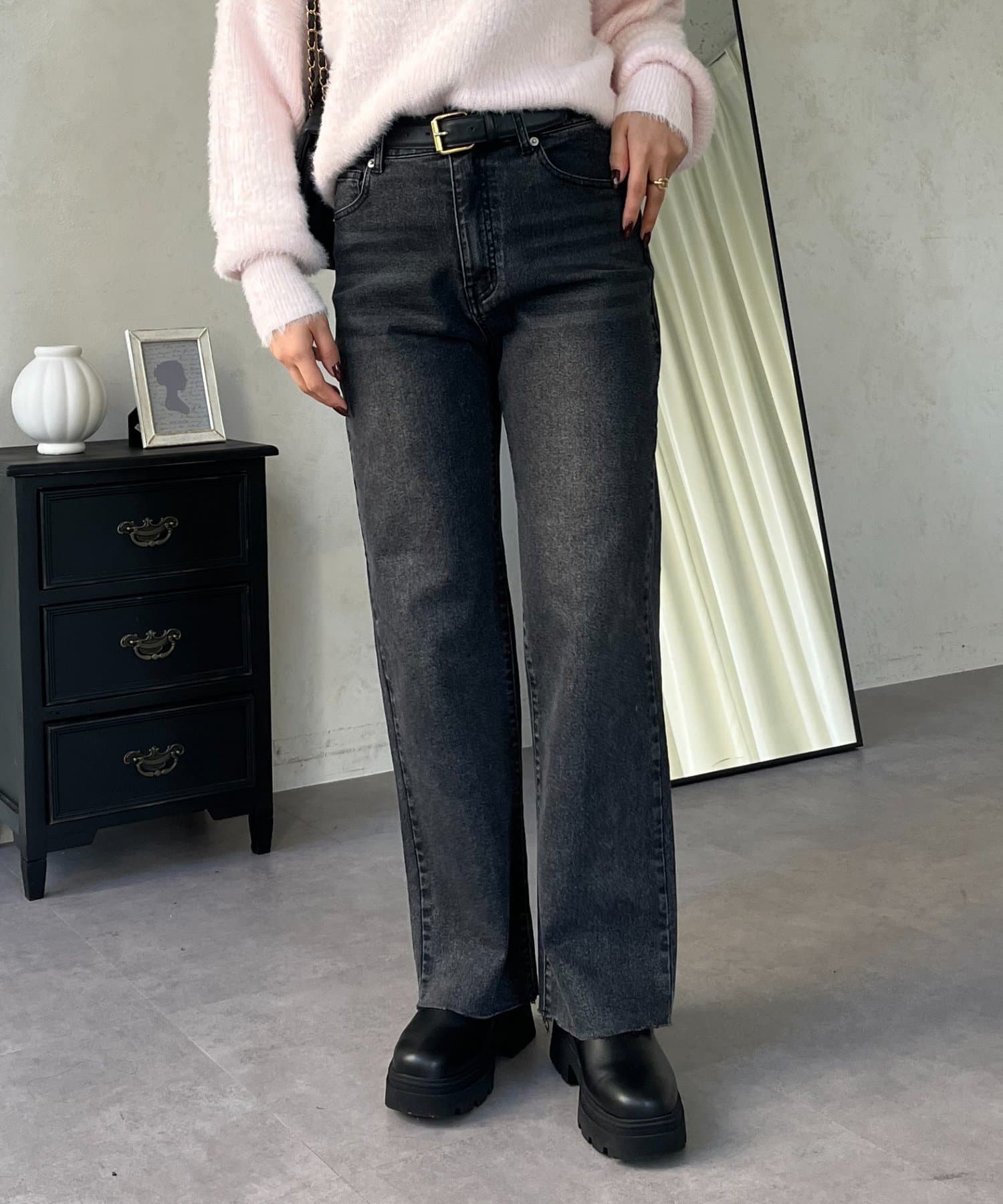 ●丈の長いトップスに合わせてもすっきり着れるストレートシルエット