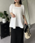 prose verse(プロズヴェール) ポコポコギンガムスクエアネックペプラムブラウス