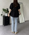 ポコポコギンガムスクエアネックペプラムブラウス