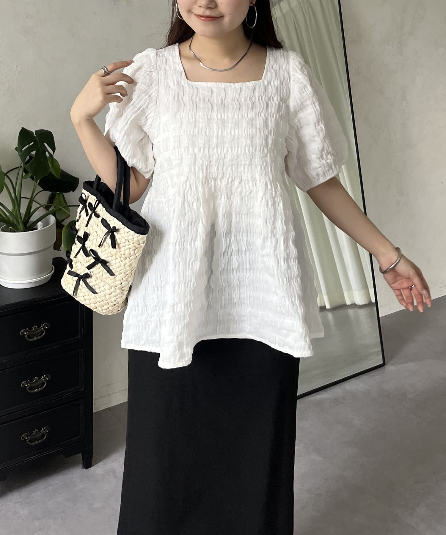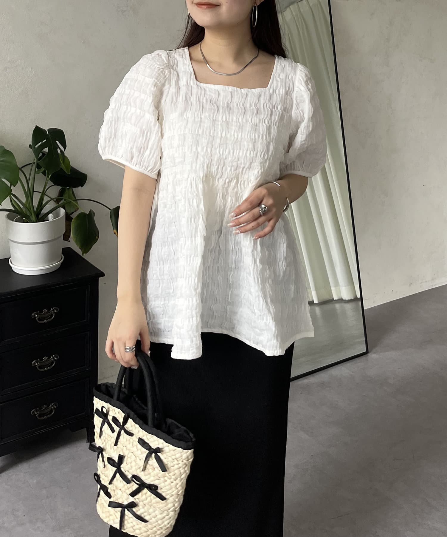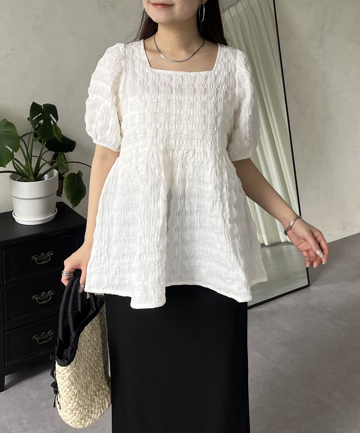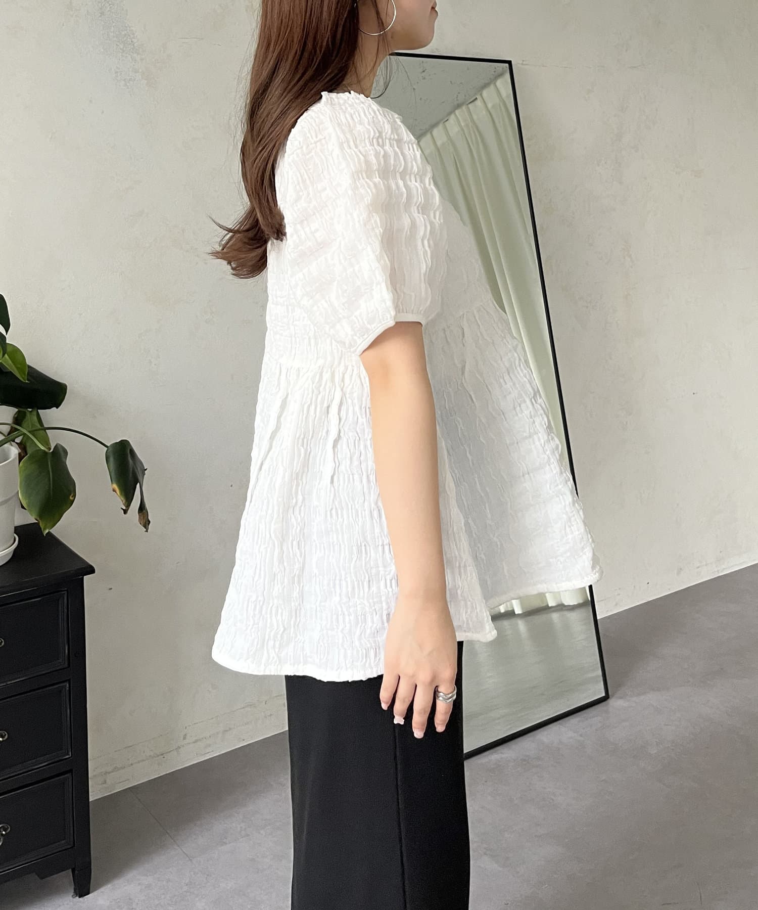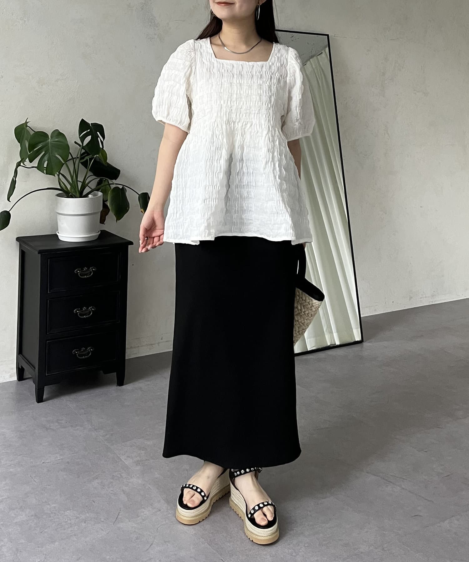 生地感が可愛いスクエアネックブラウス