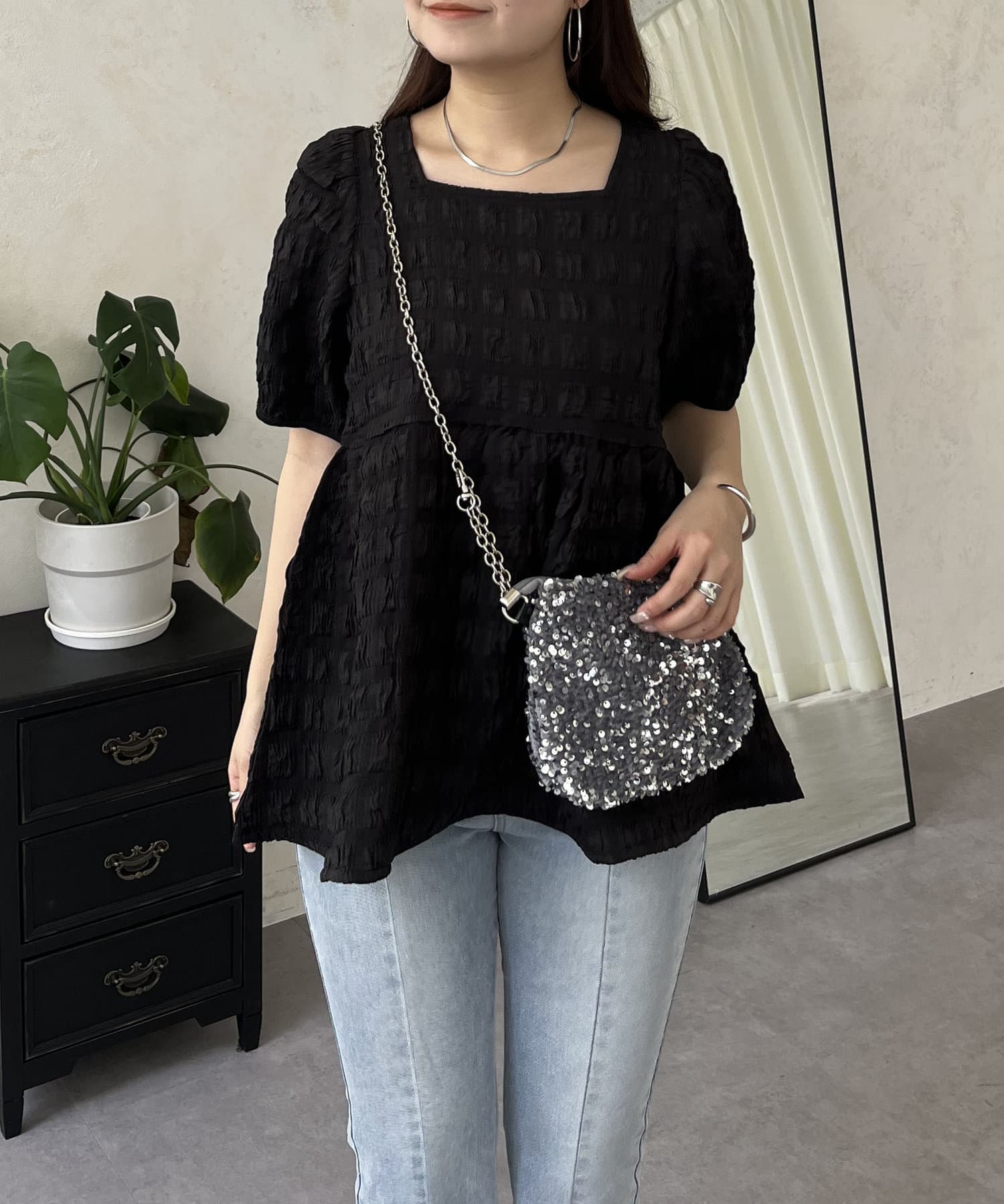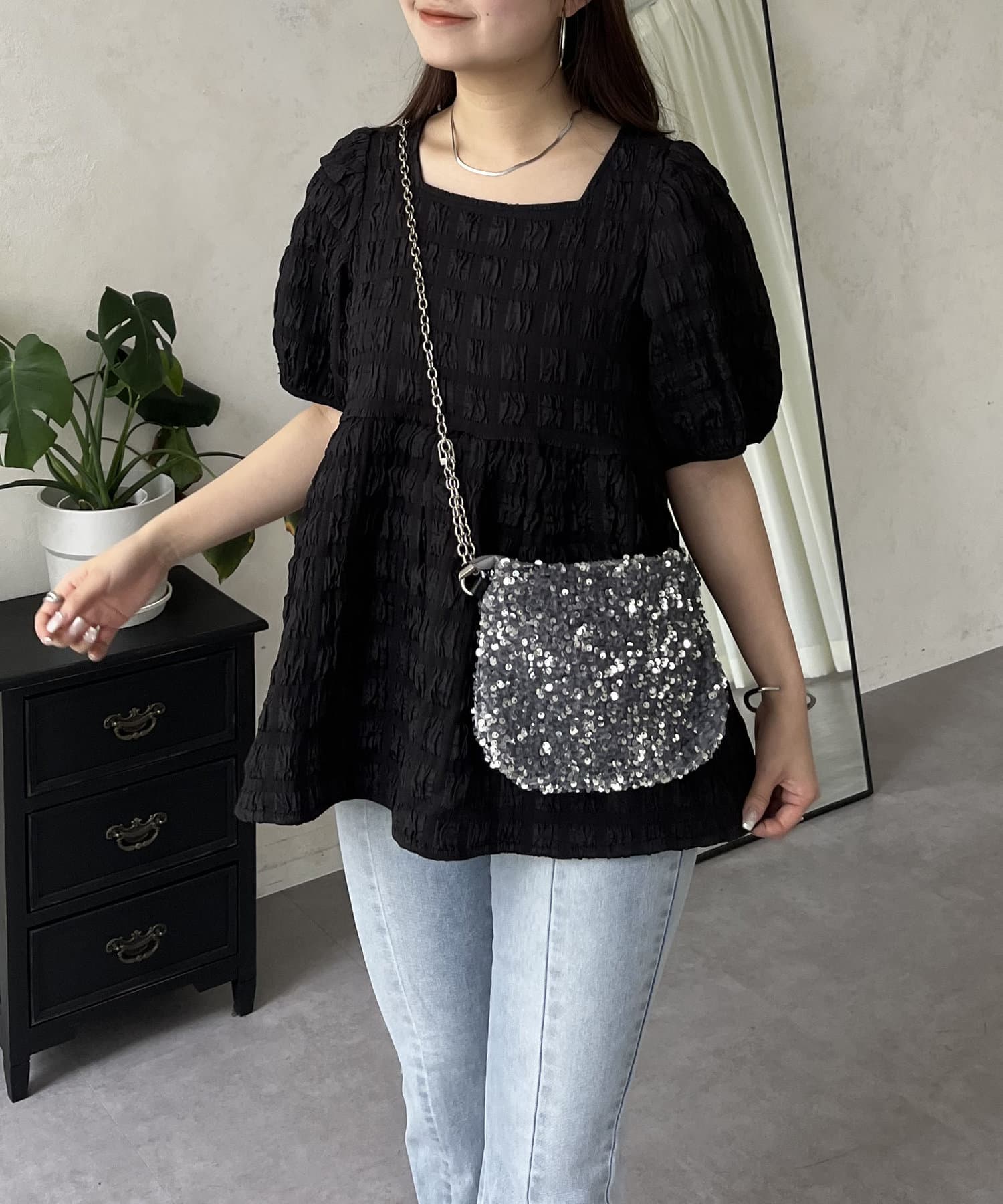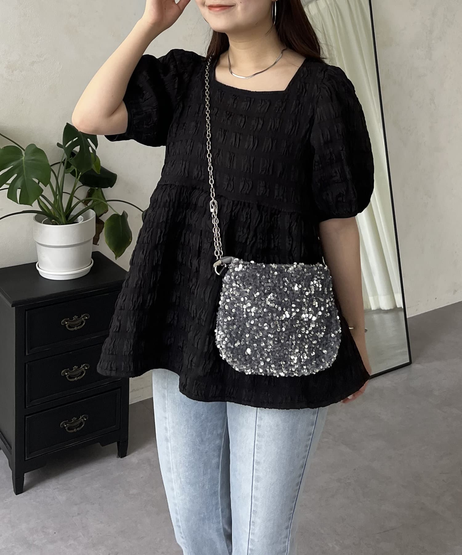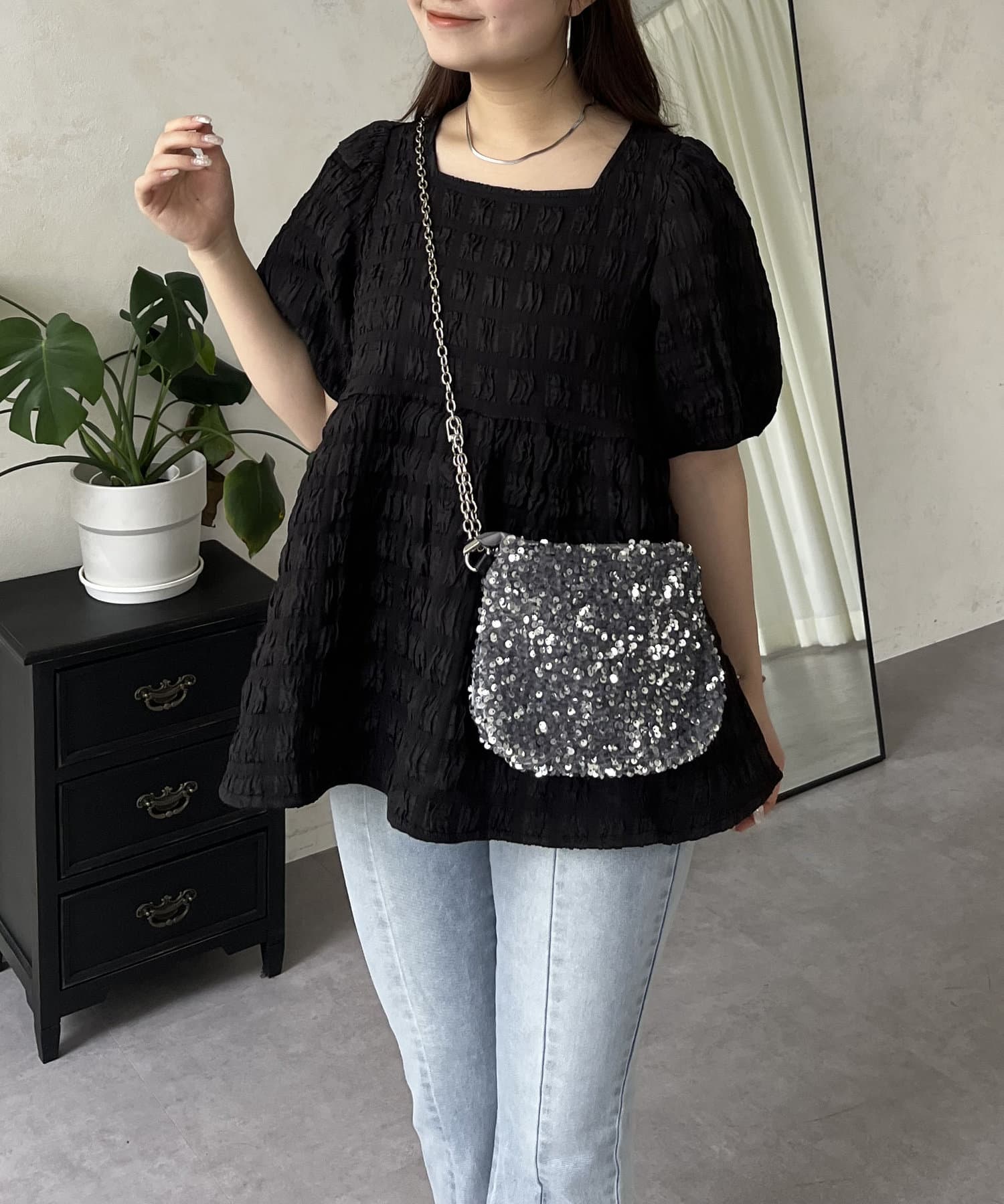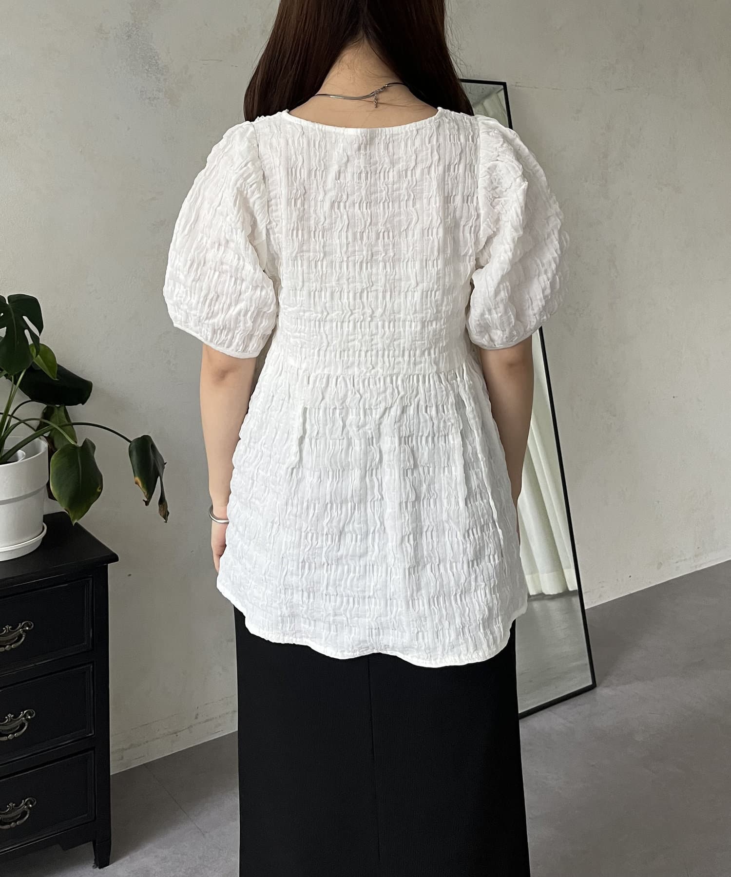 生地感が可愛いスクエアネックブラウス
