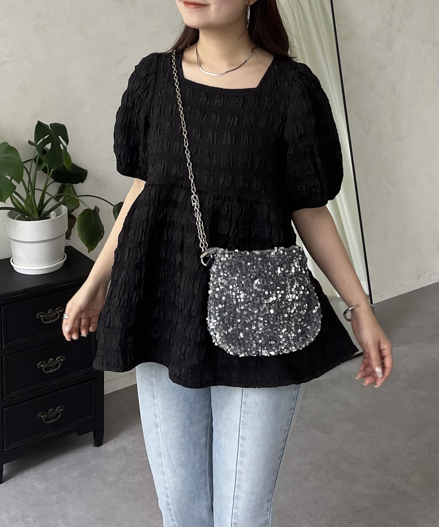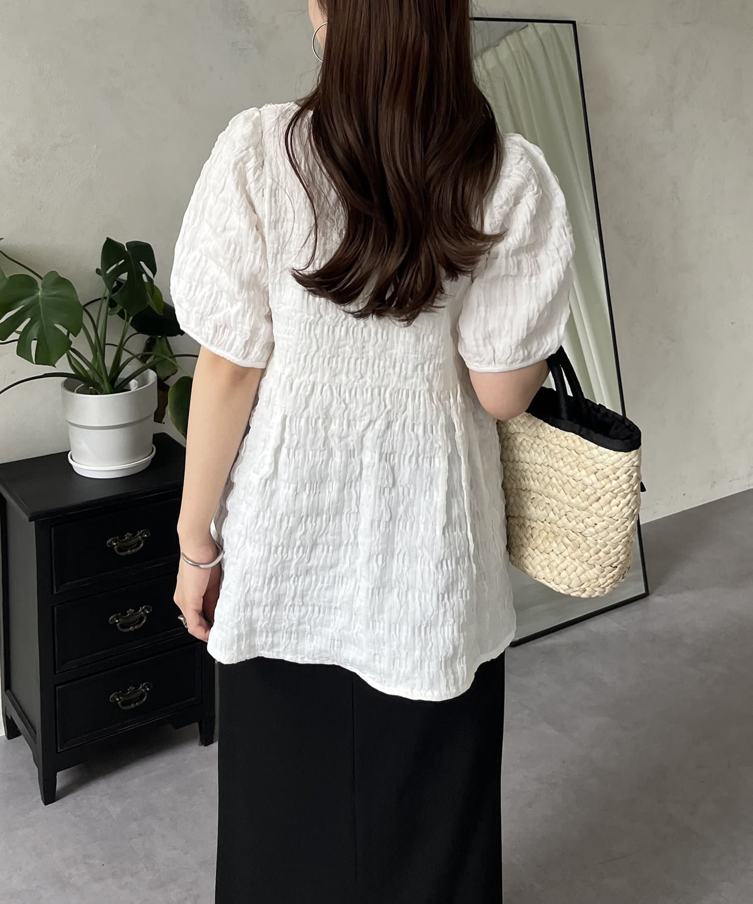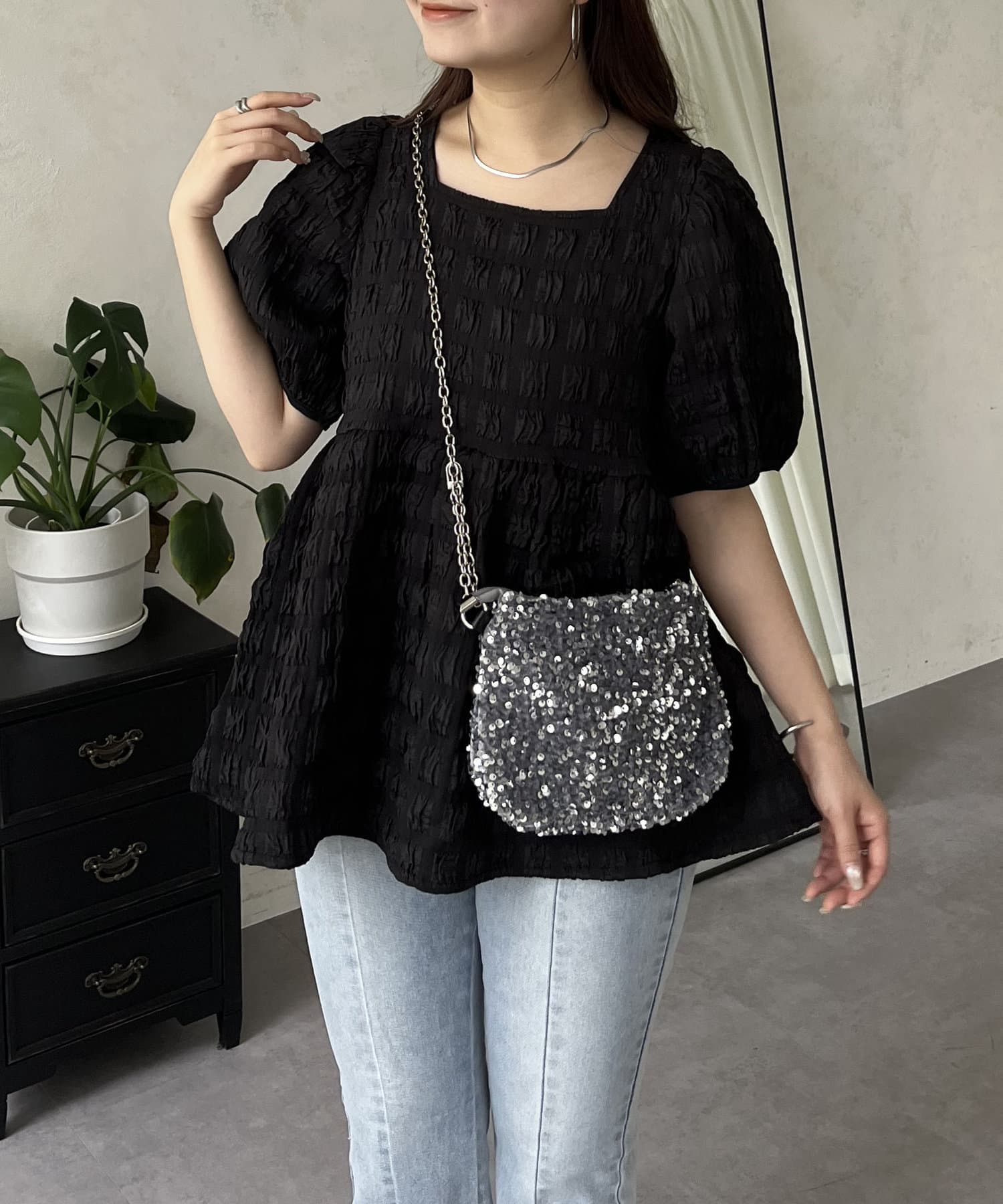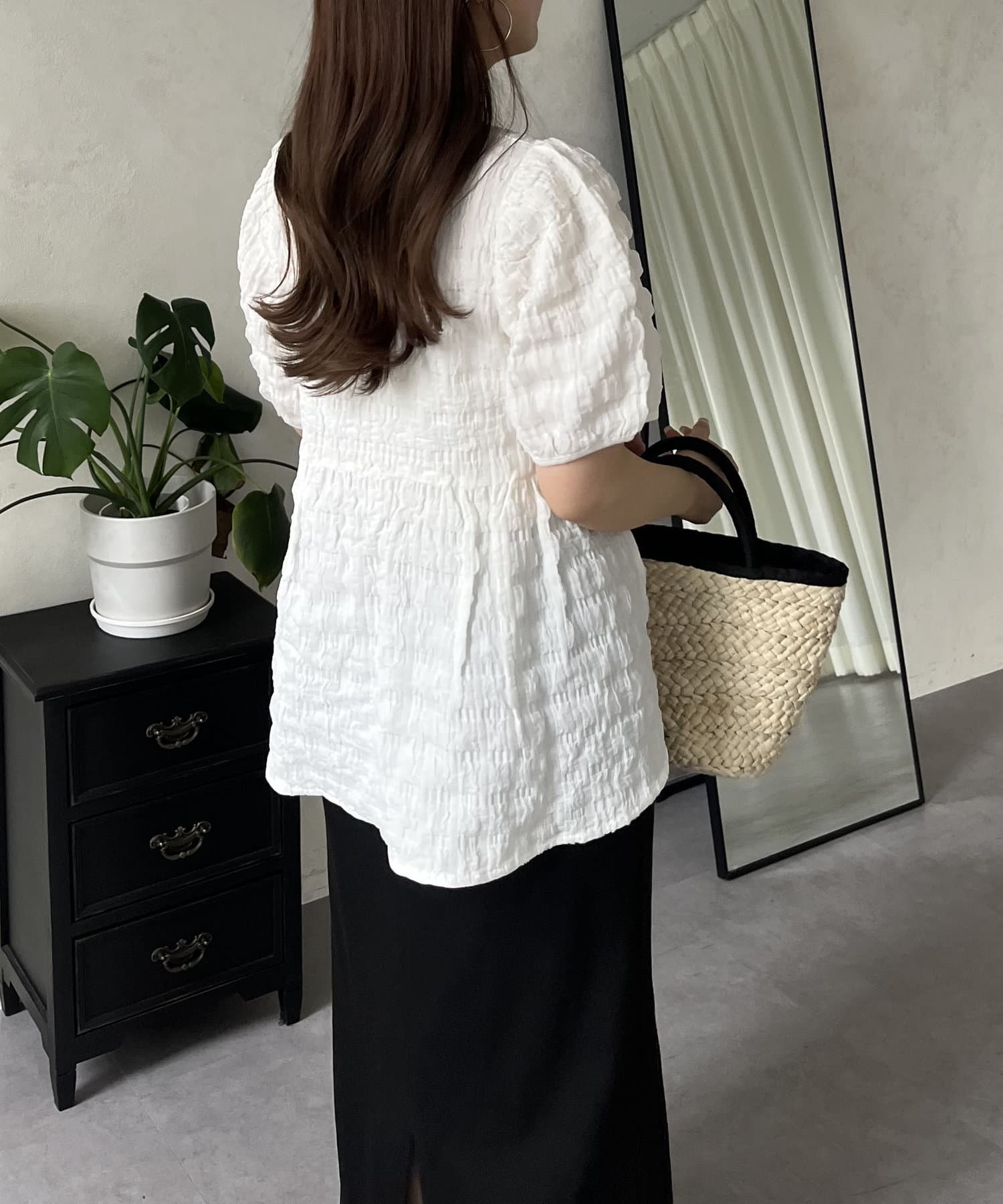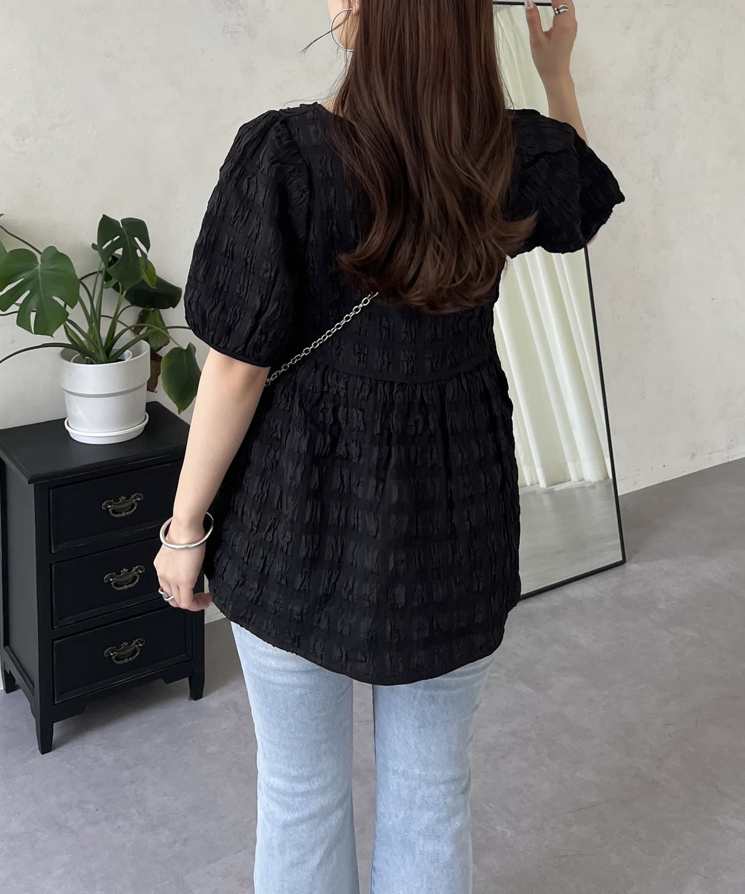 生地感が可愛いスクエアネックブラウス