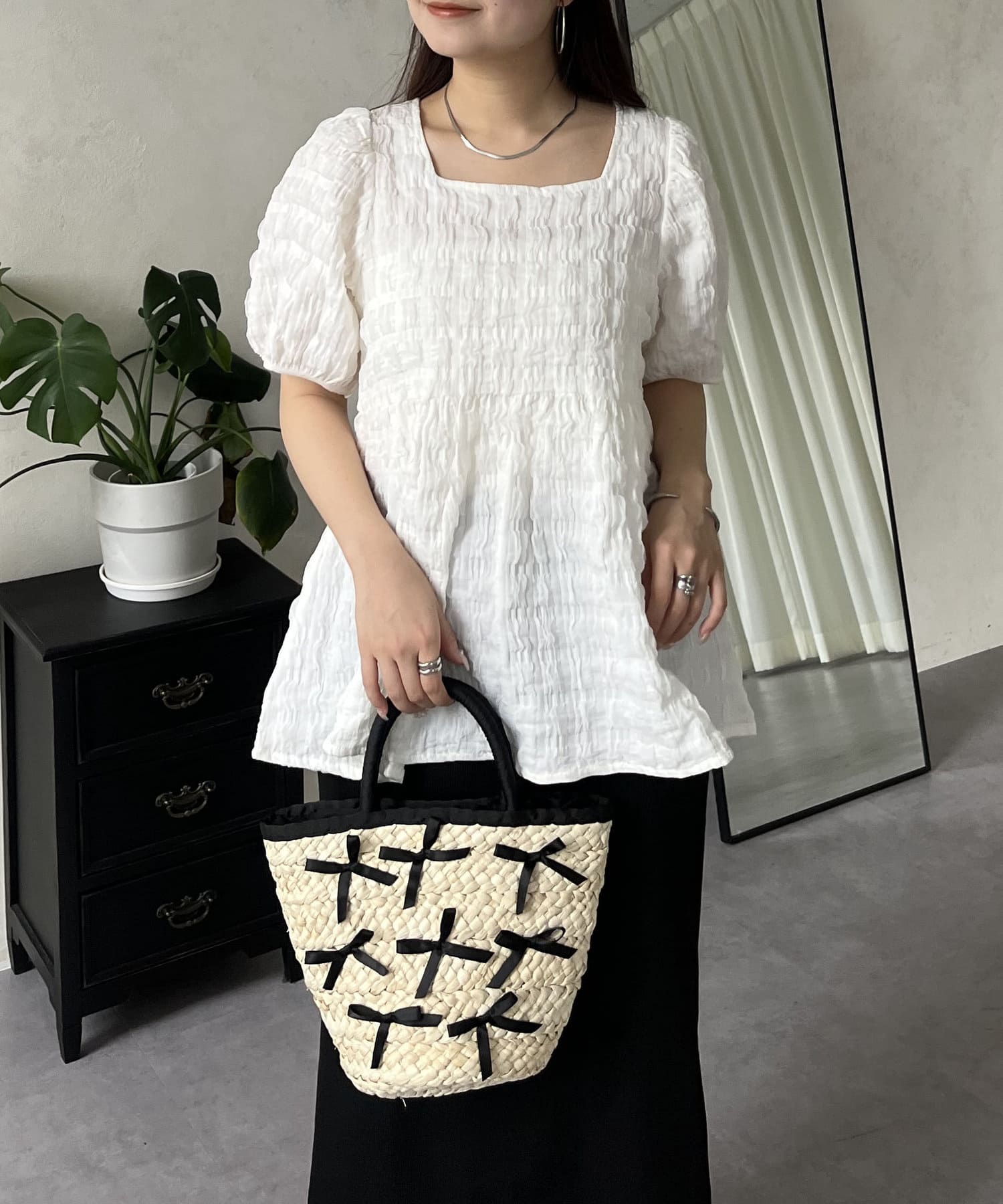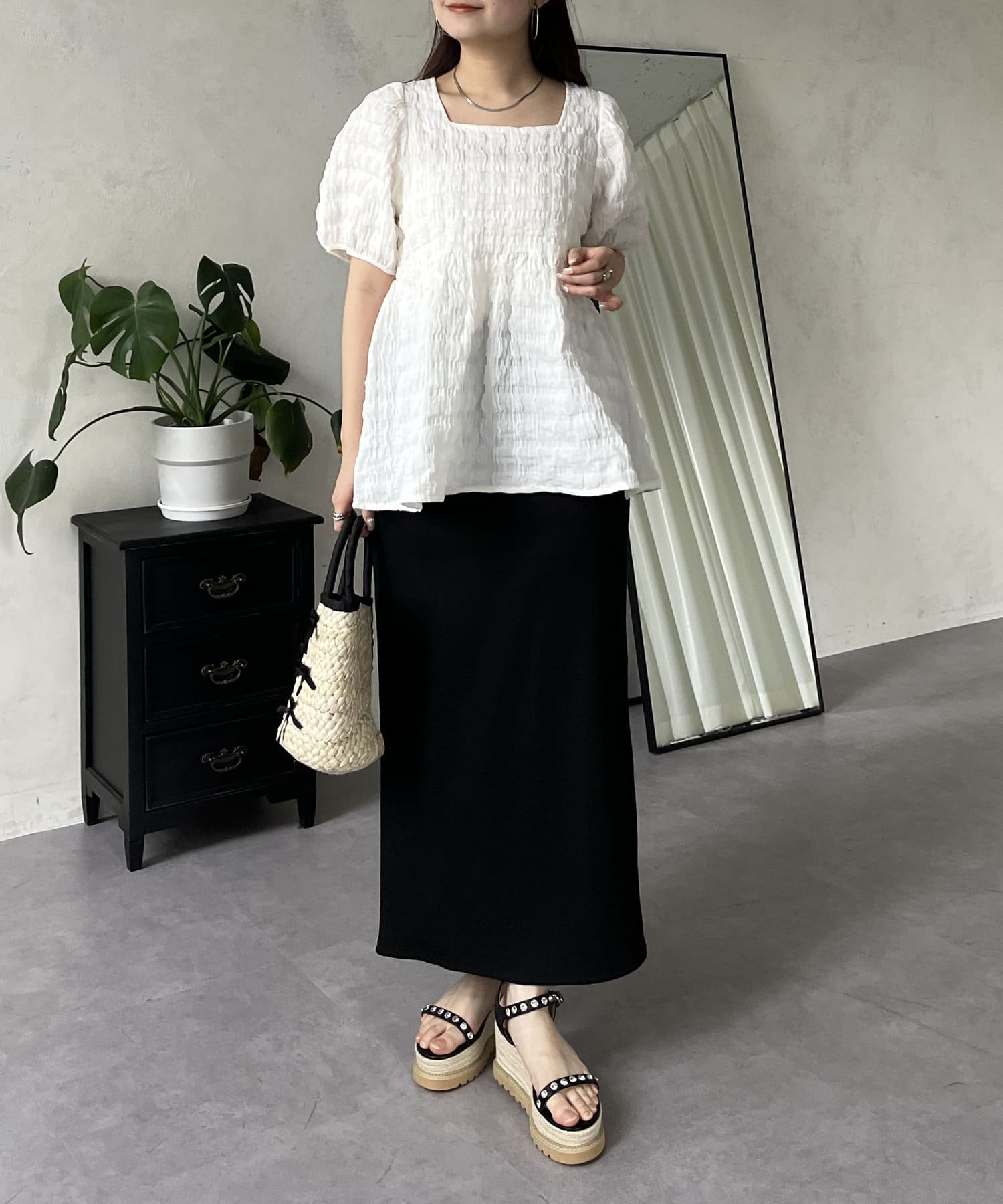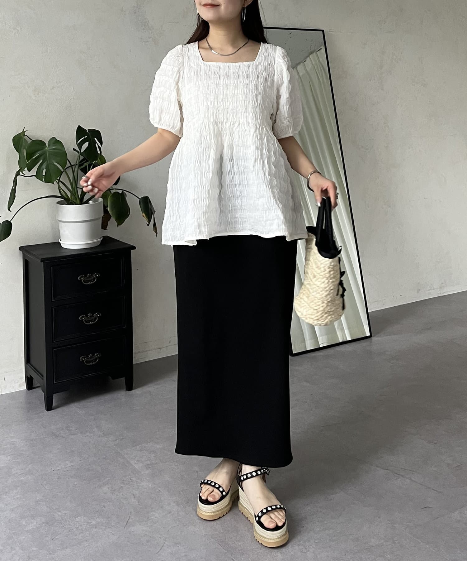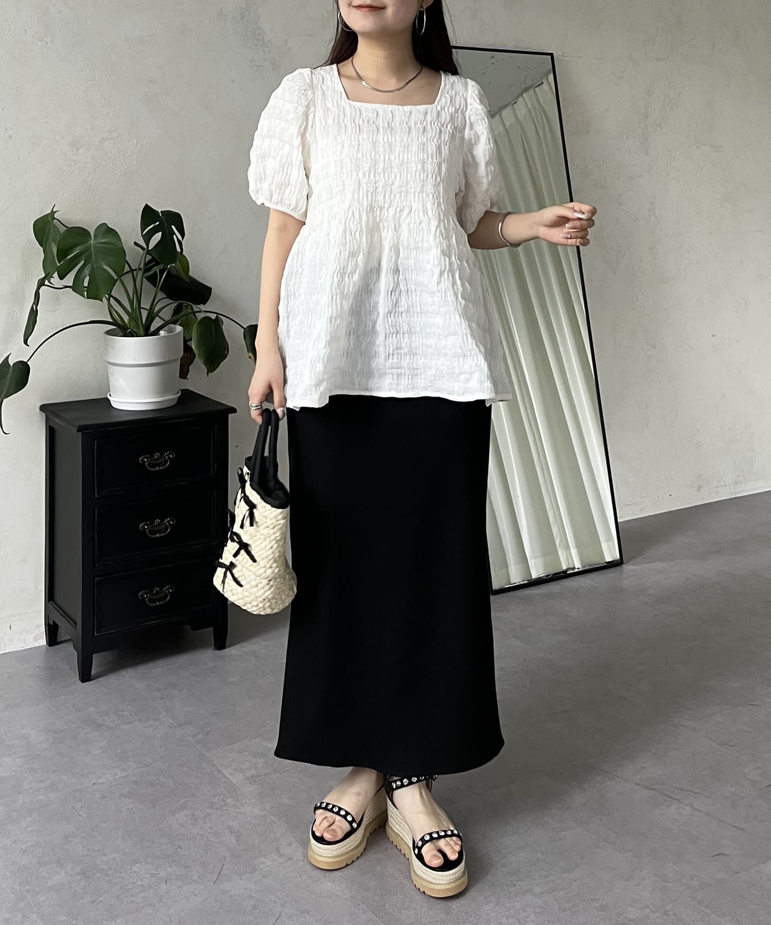 スクエアネック/大人可愛い/シンプル