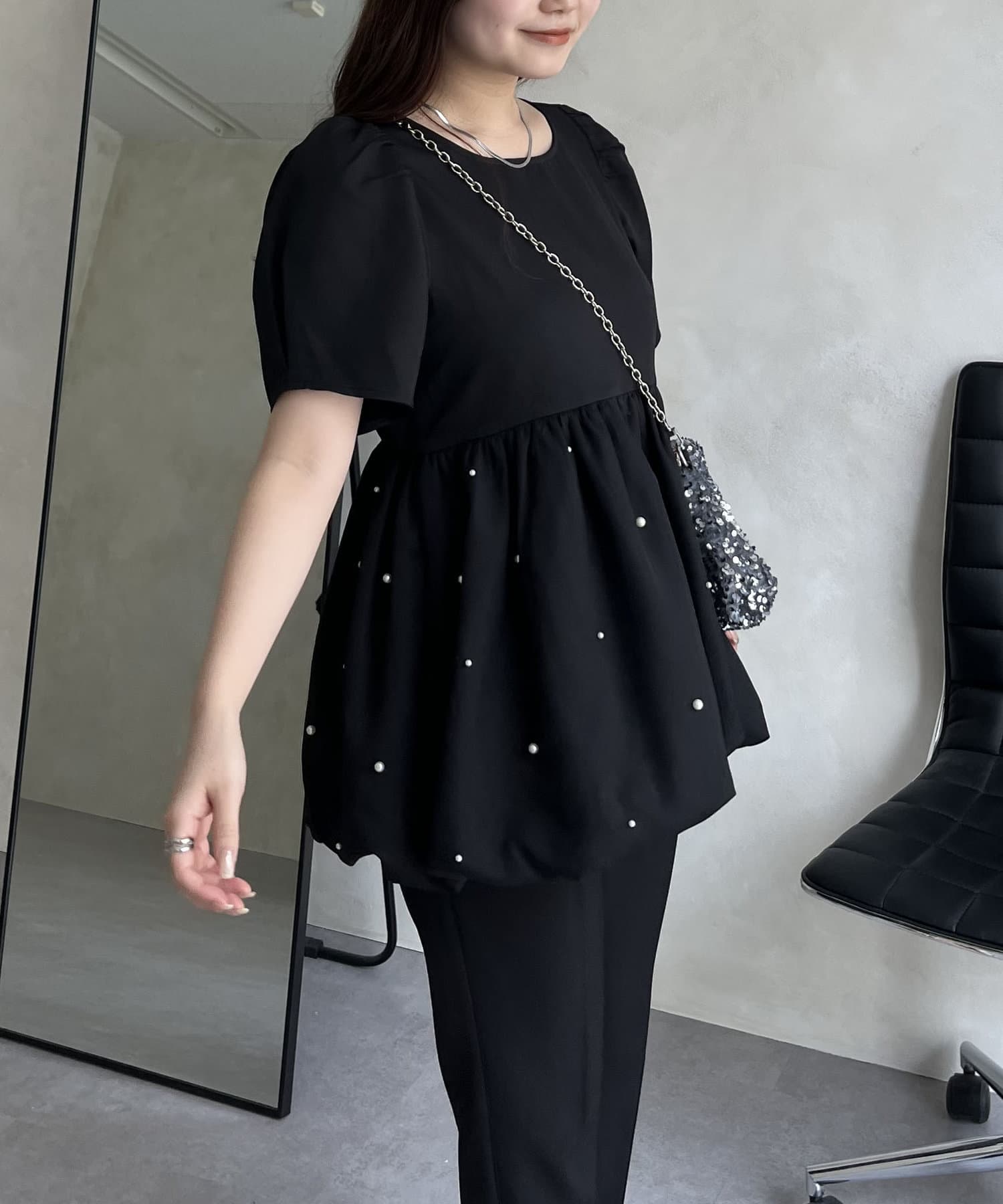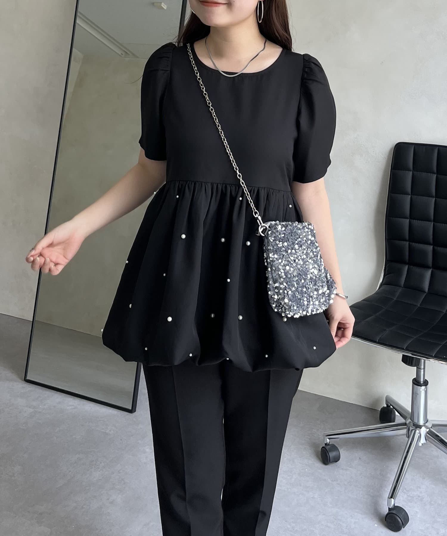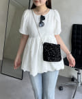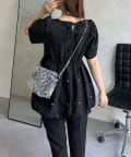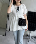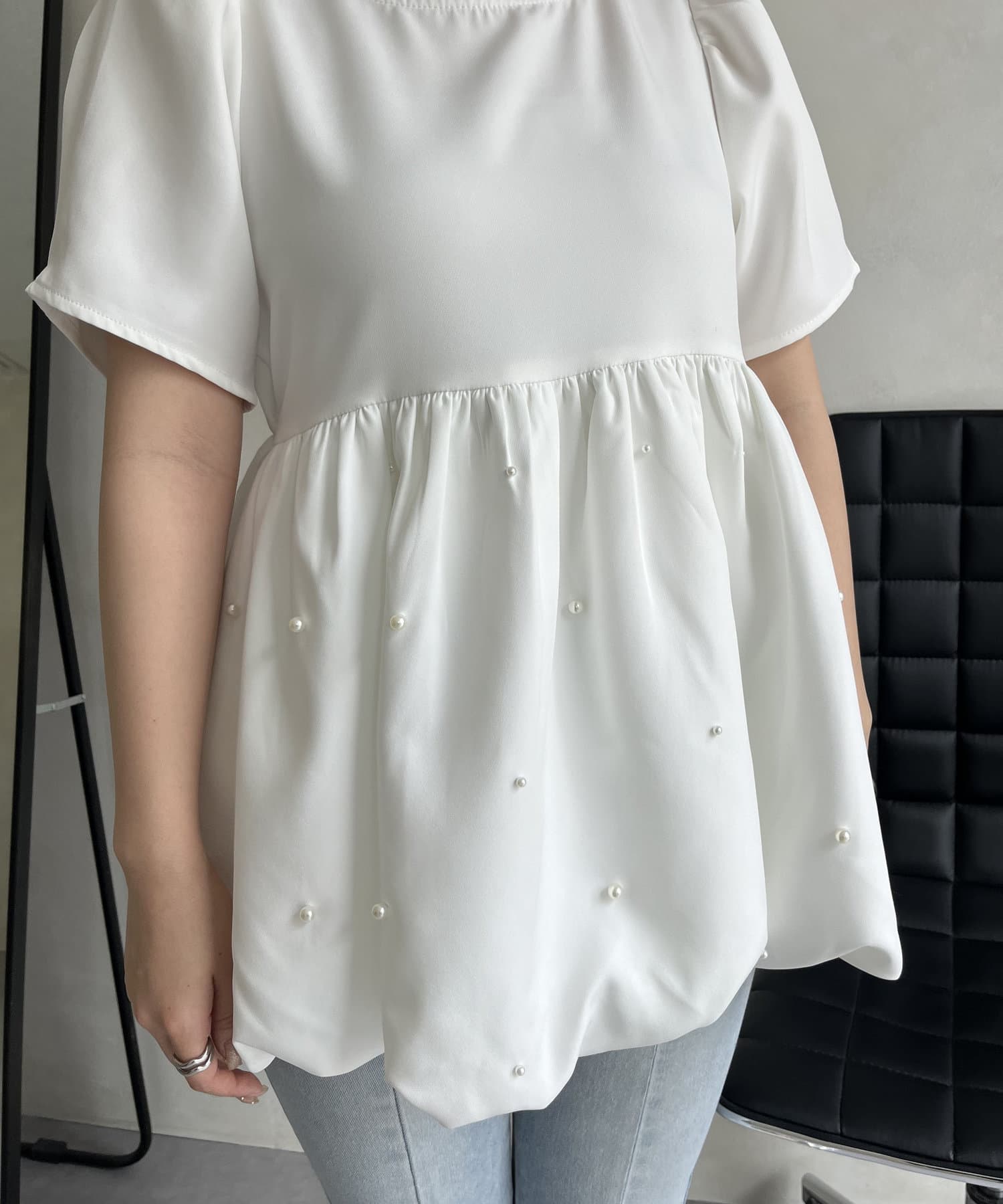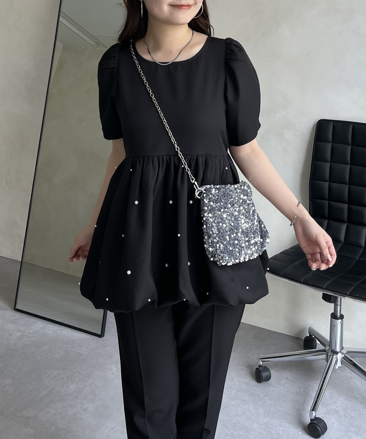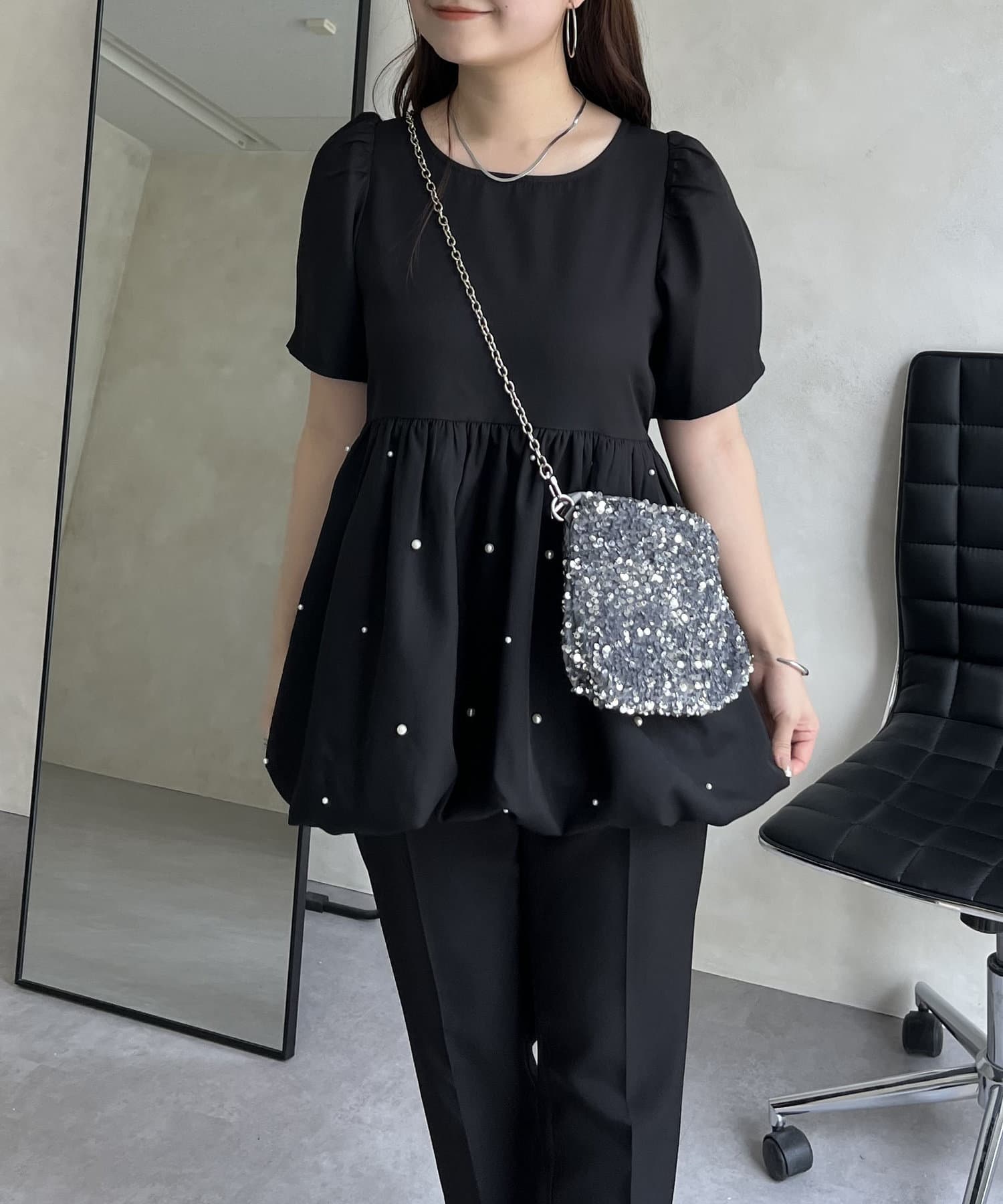 ランダムパール裾バルーンペプラムブラウス