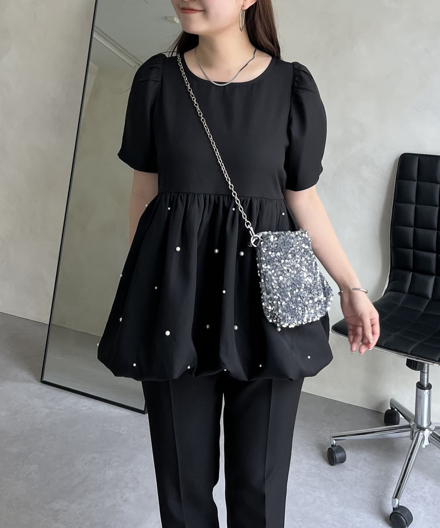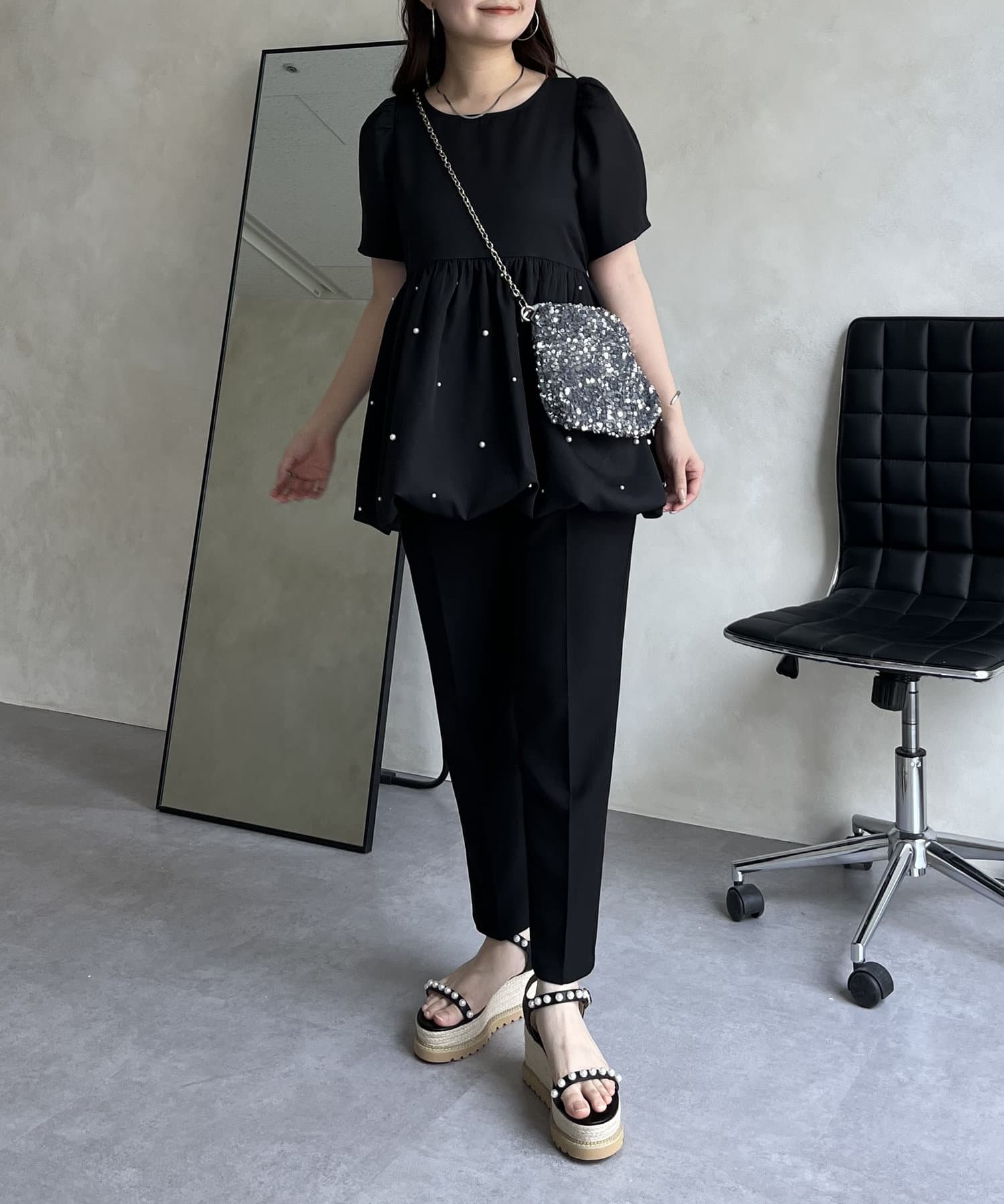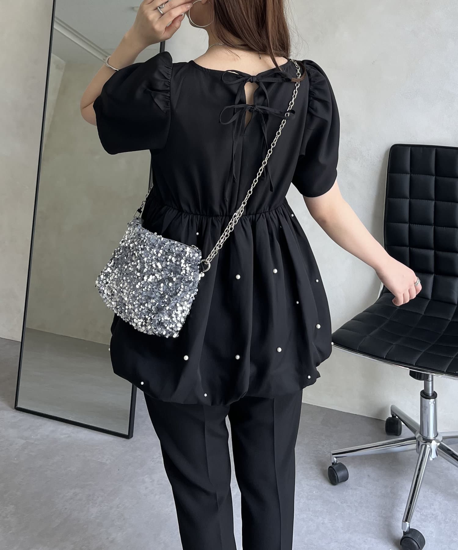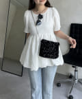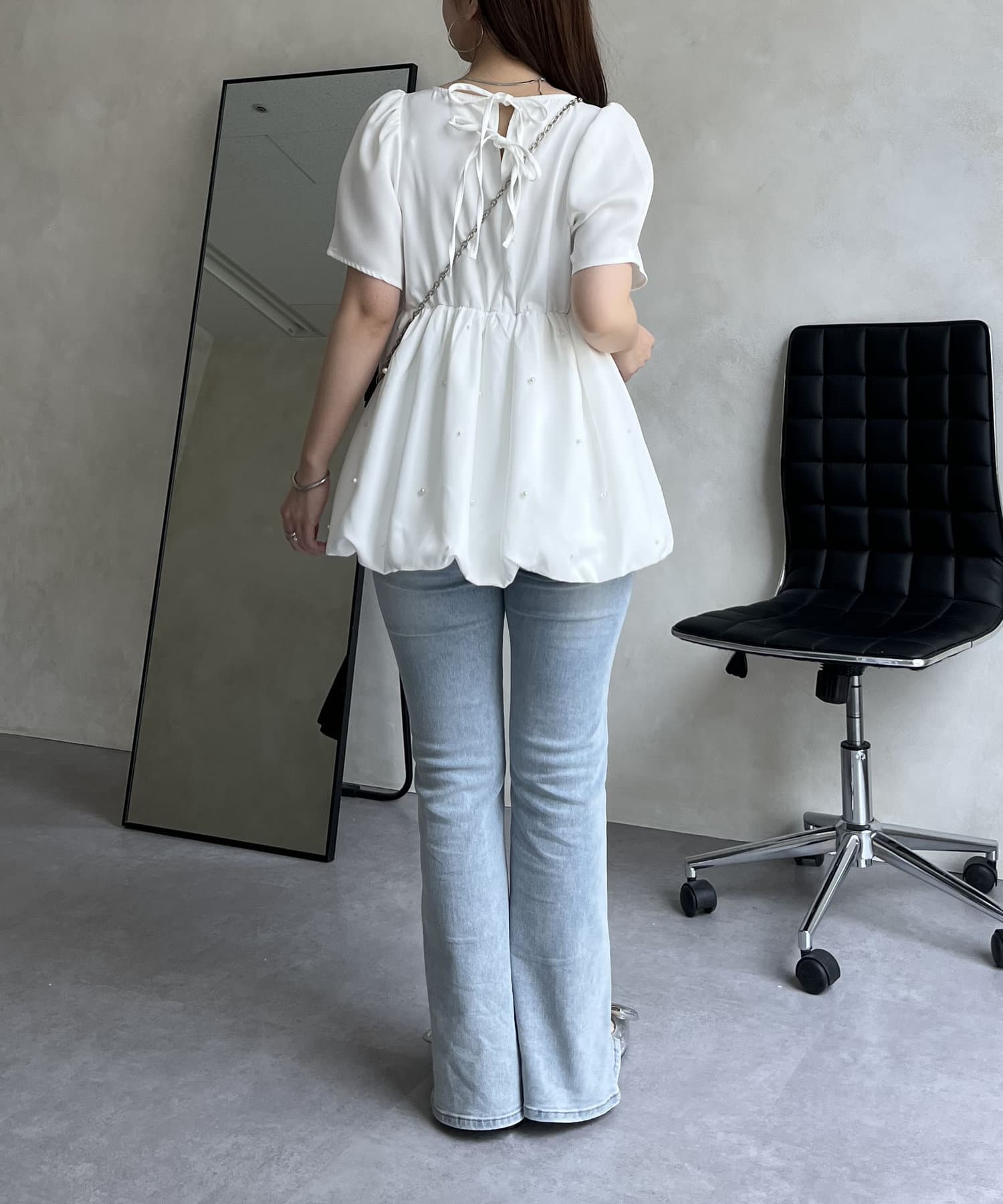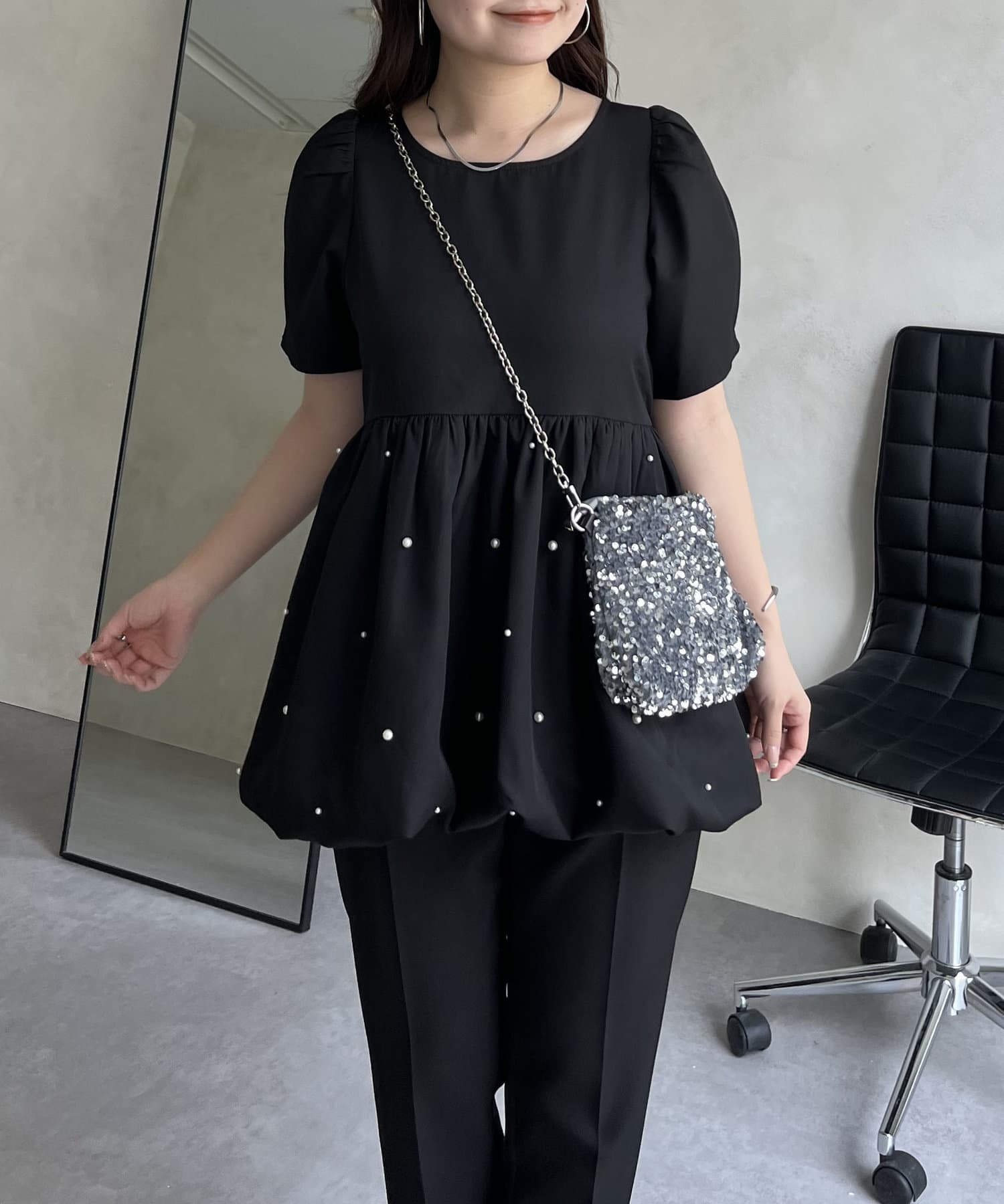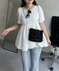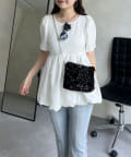 ランダムパール裾バルーンペプラムブラウス