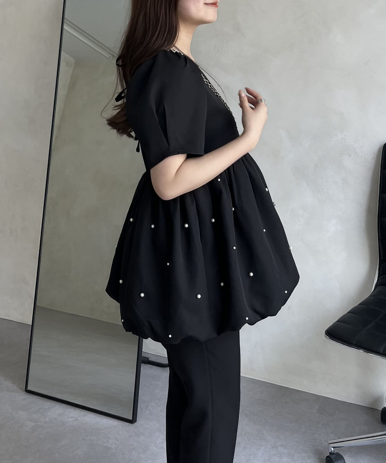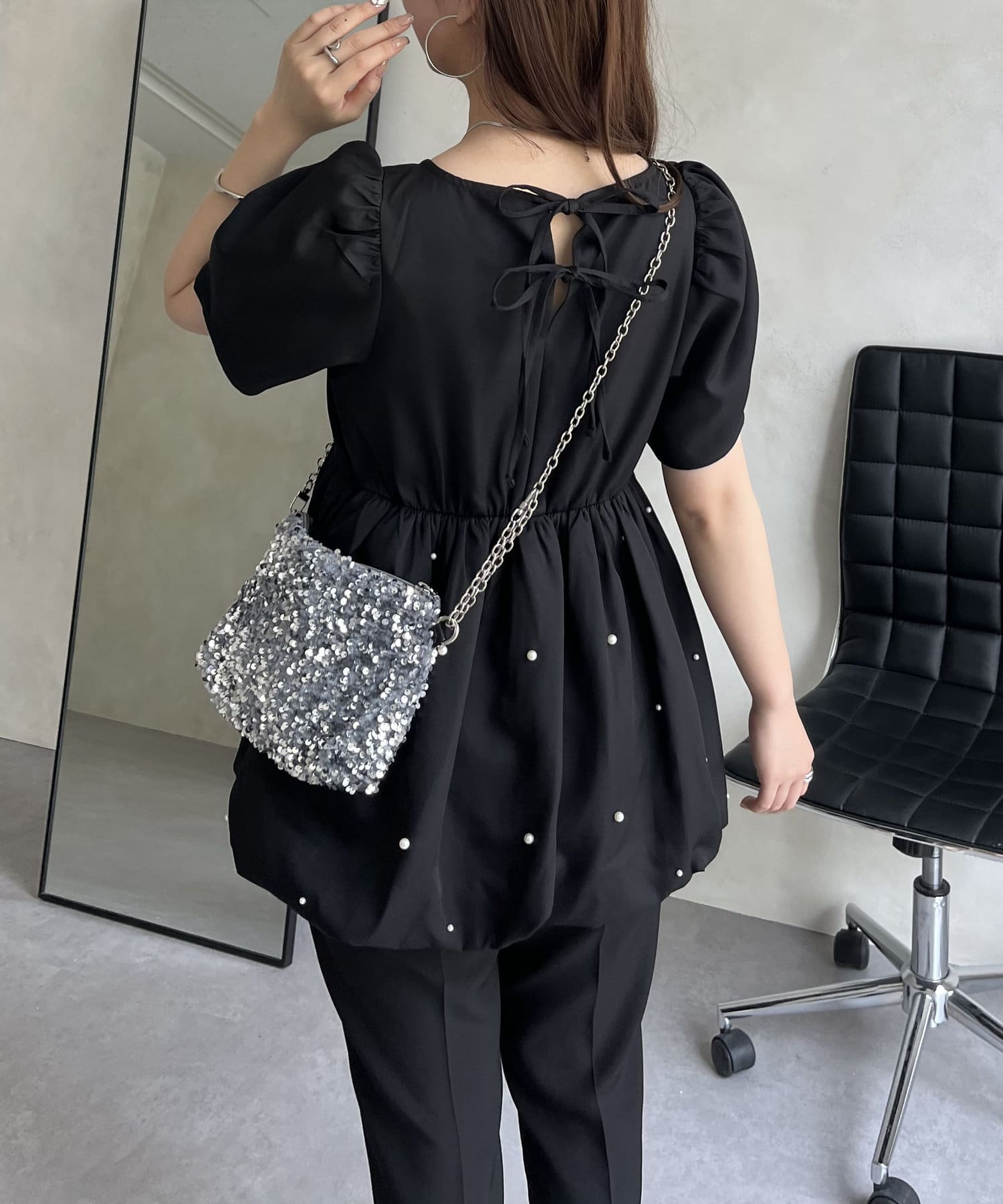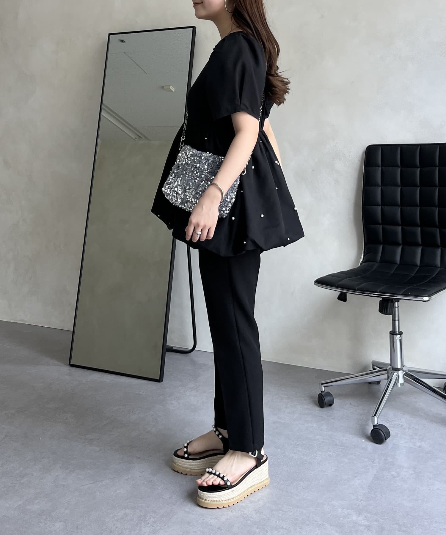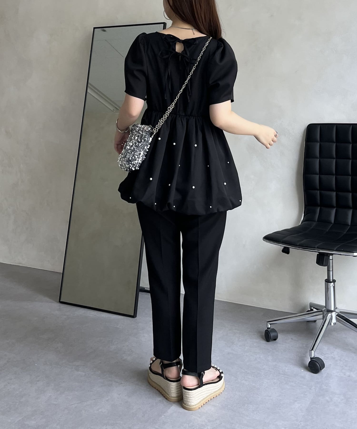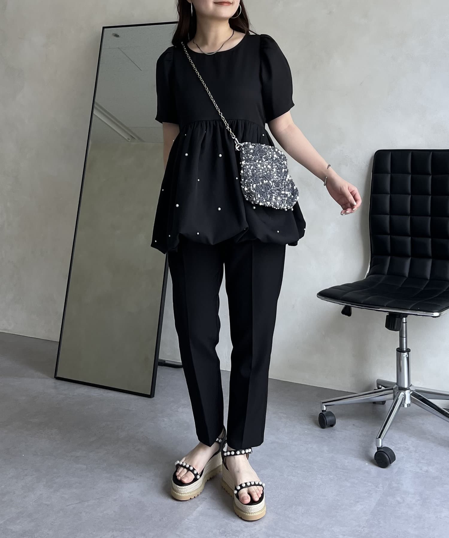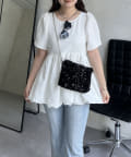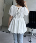 ランダムパール裾バルーンペプラムブラウス