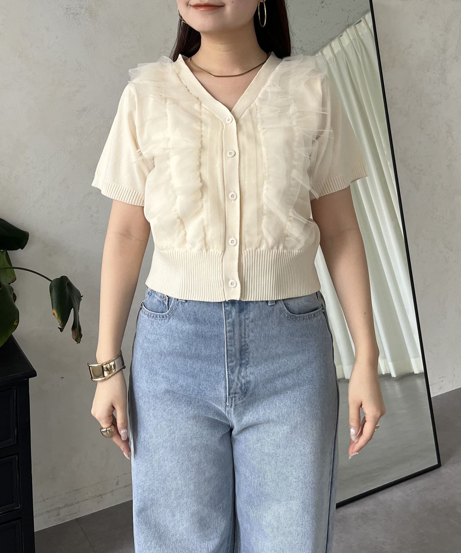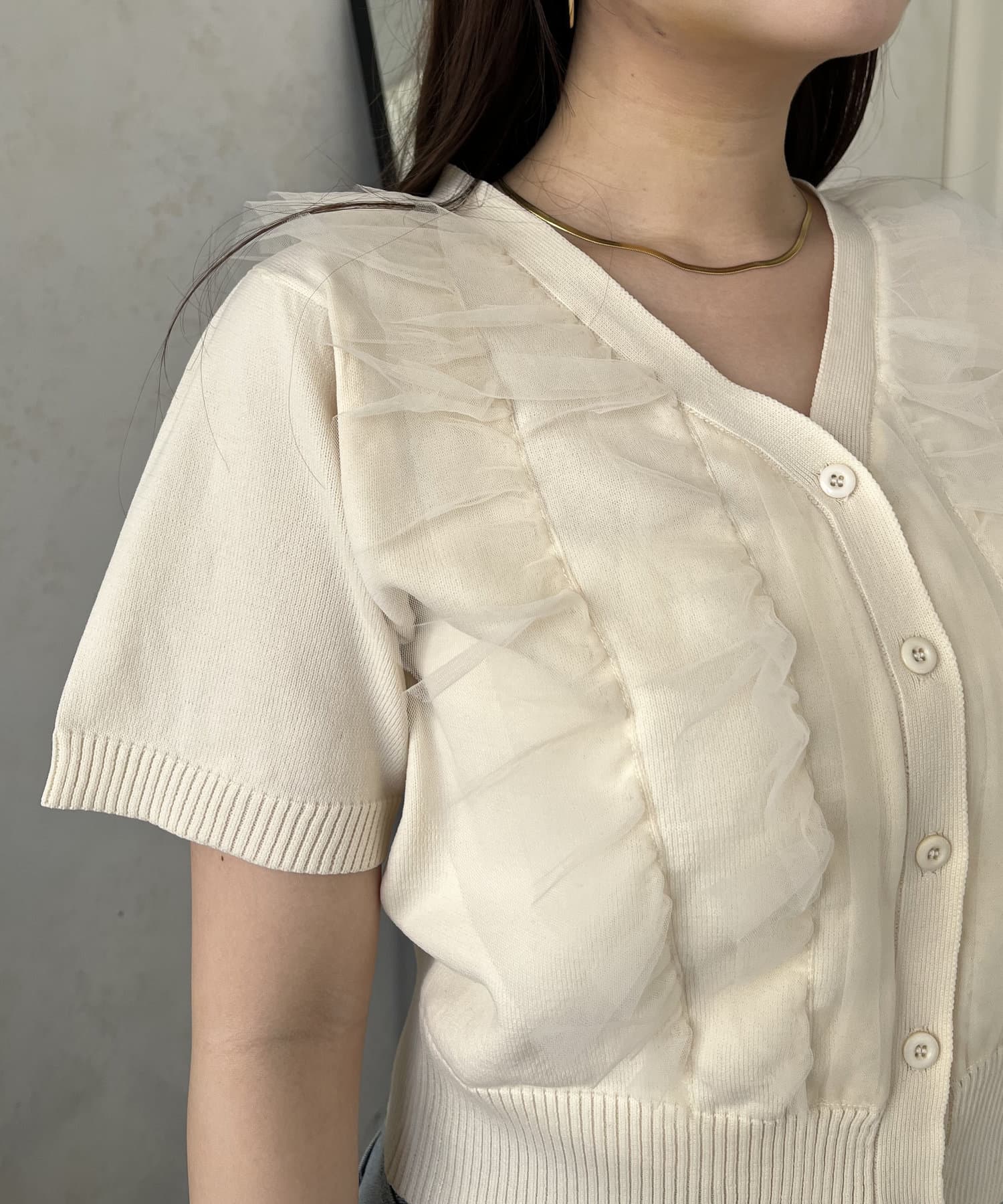 半袖チュールフリルカーディガン