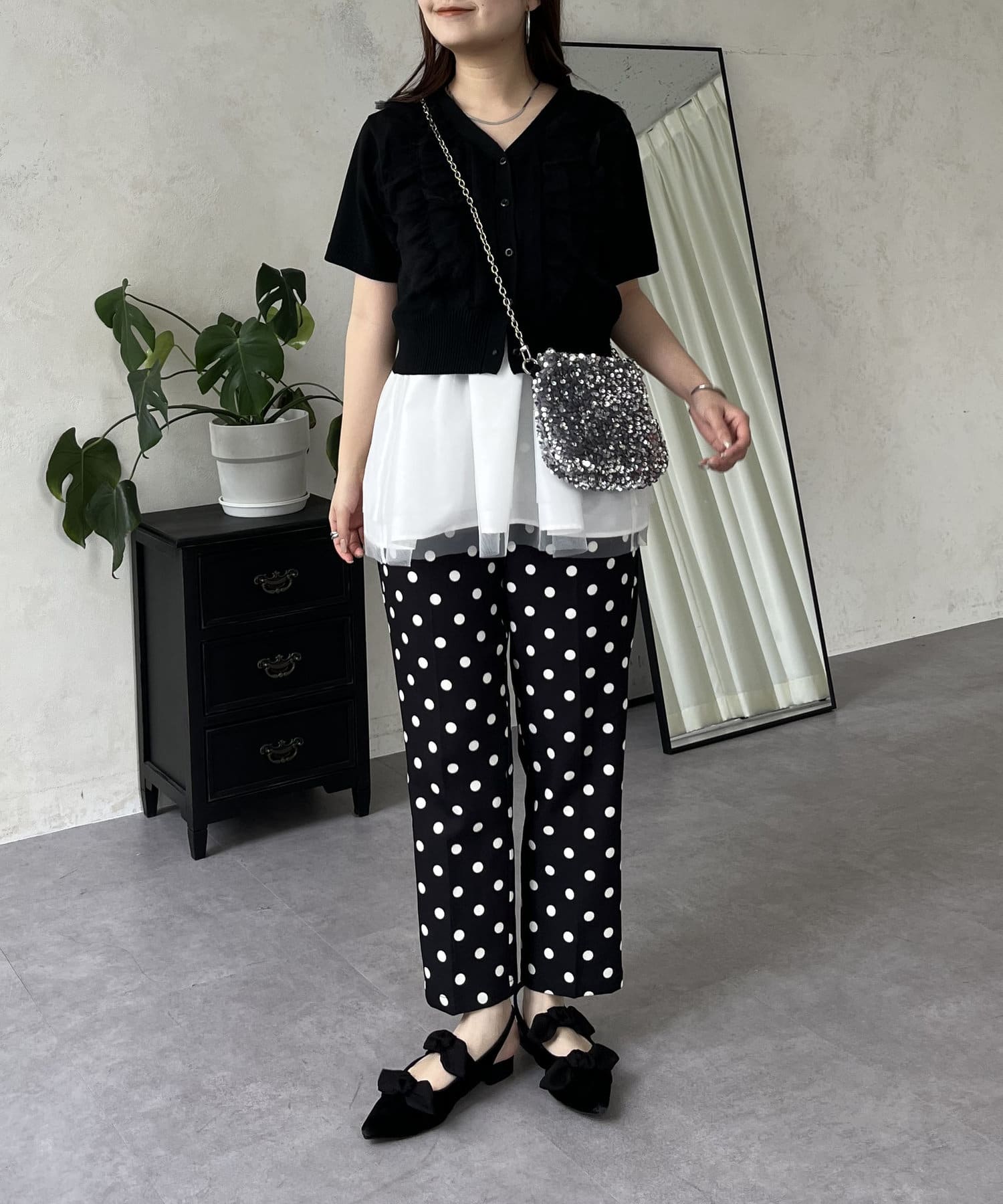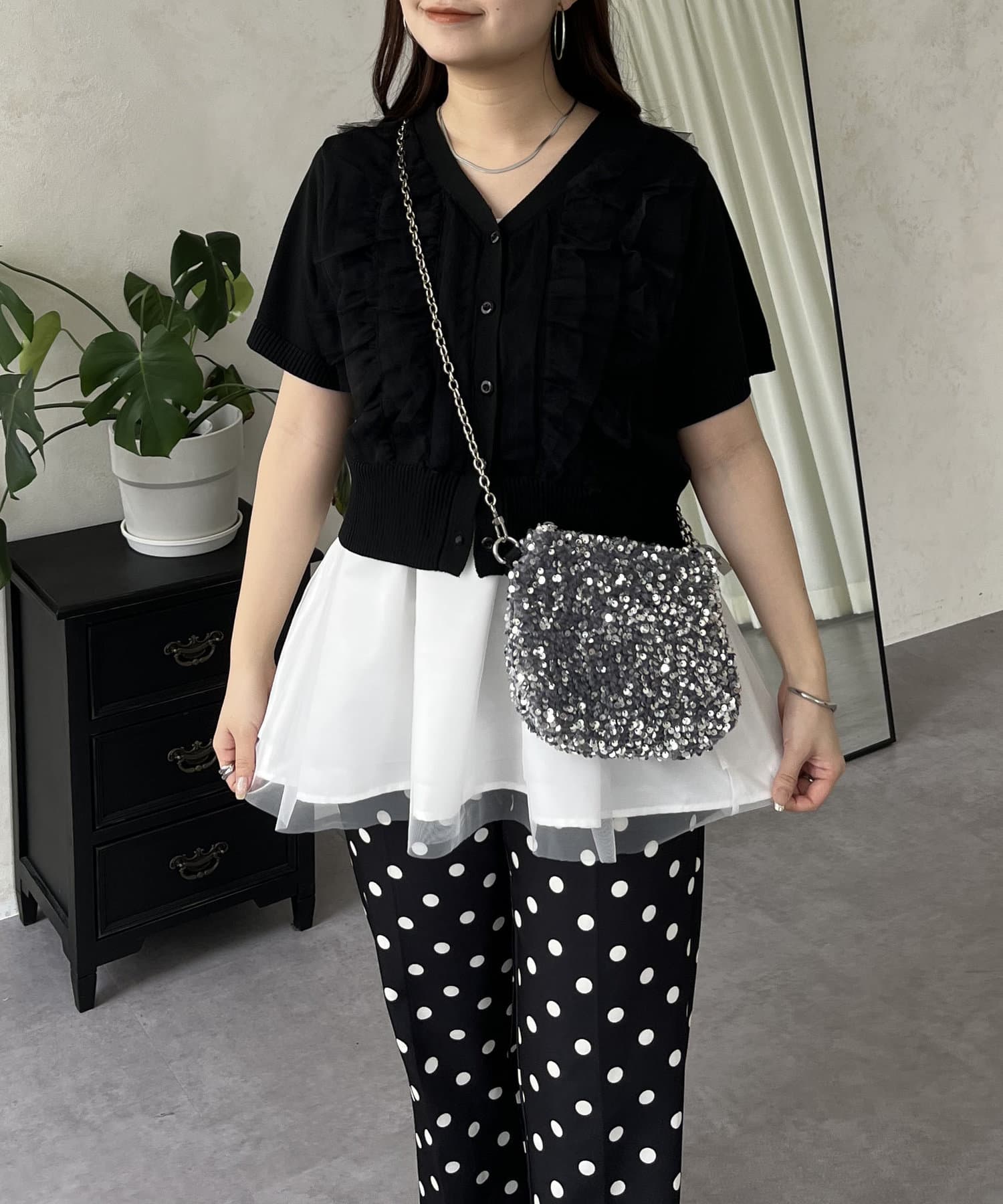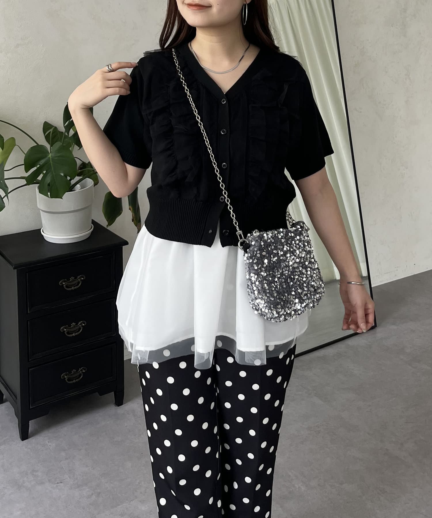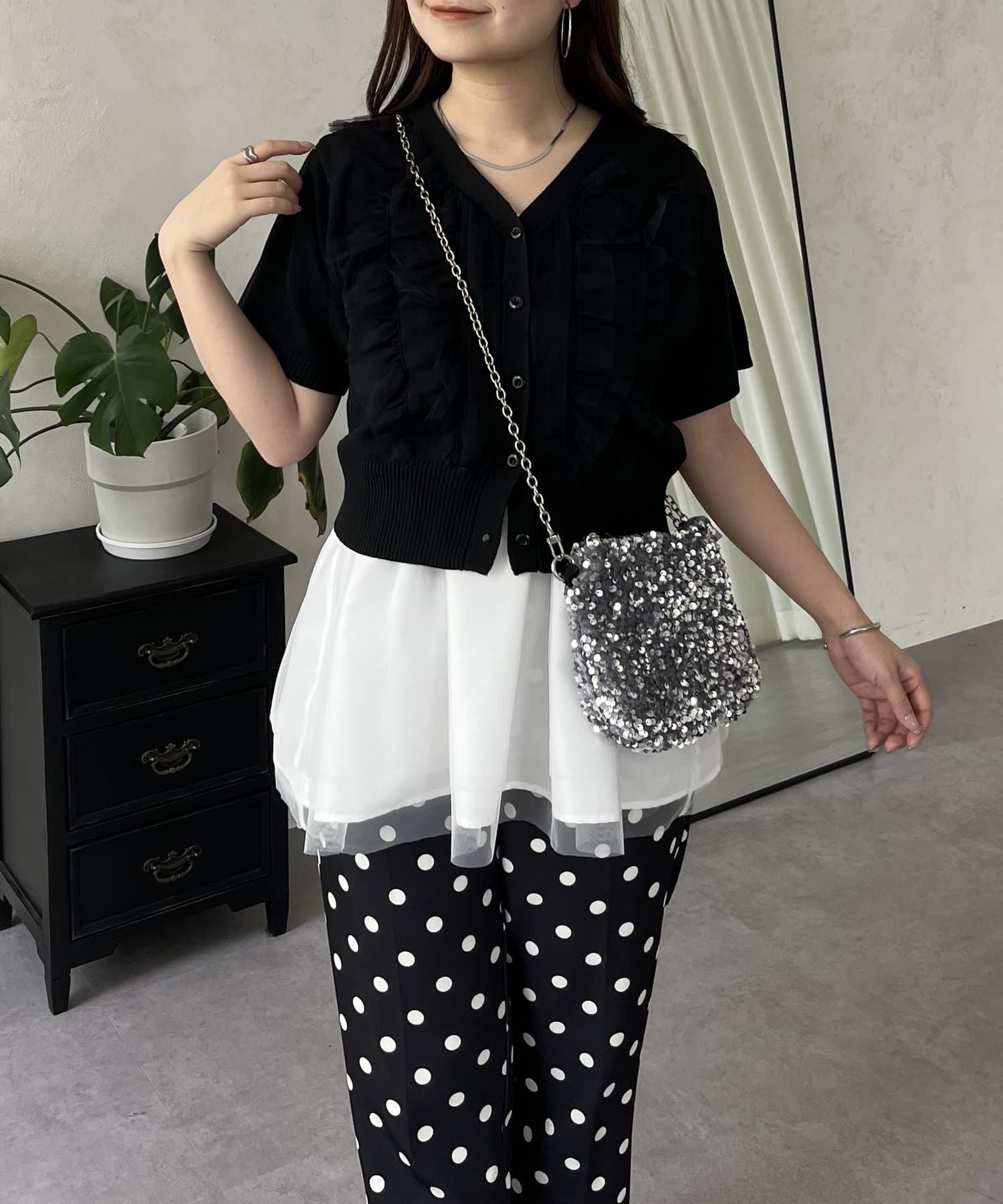 ●チュールフリルがコーデを華やかに