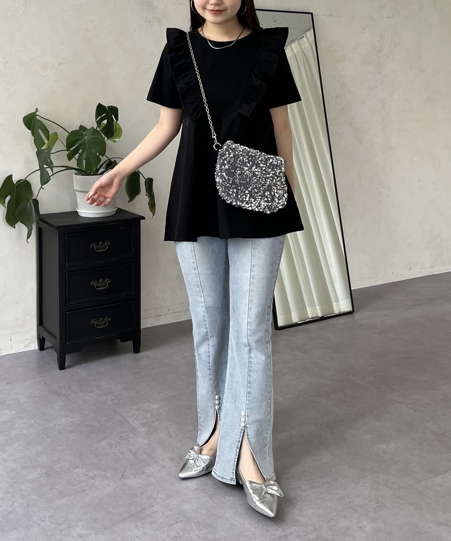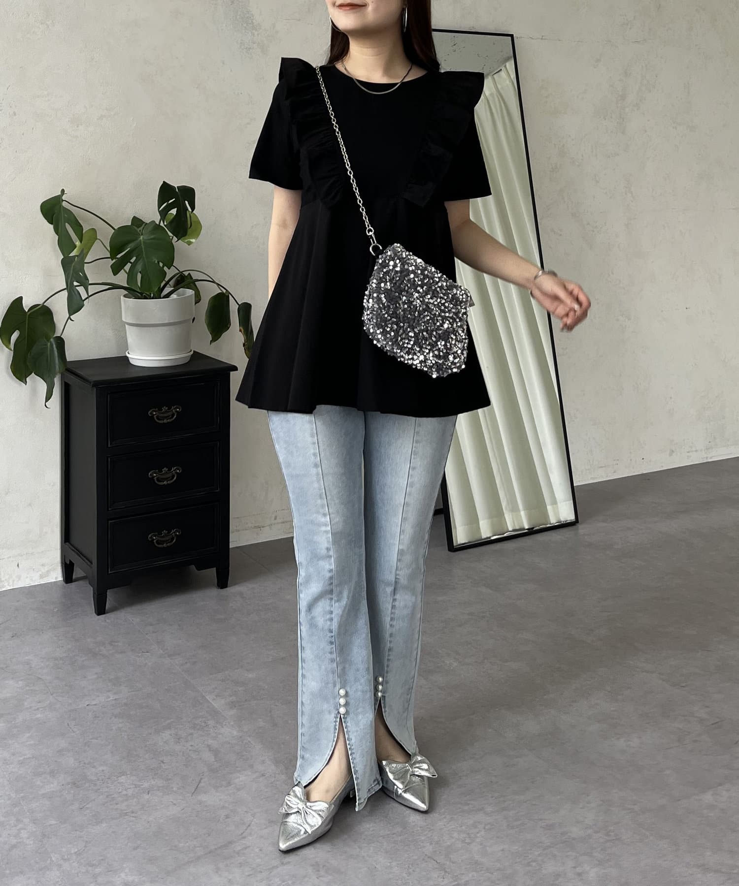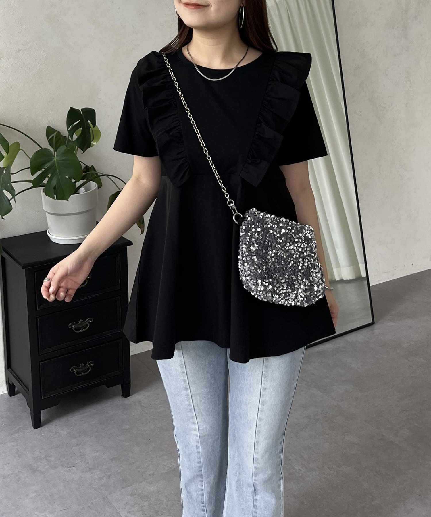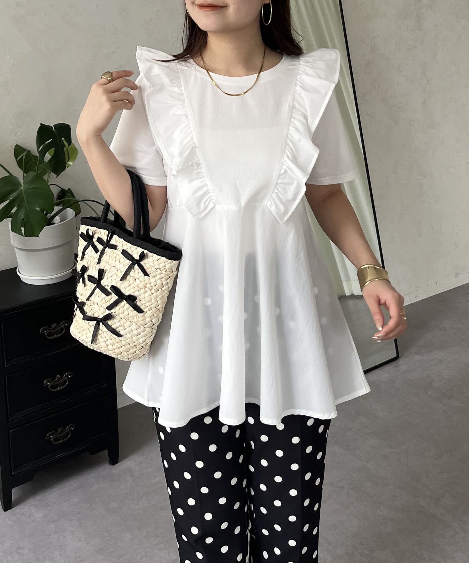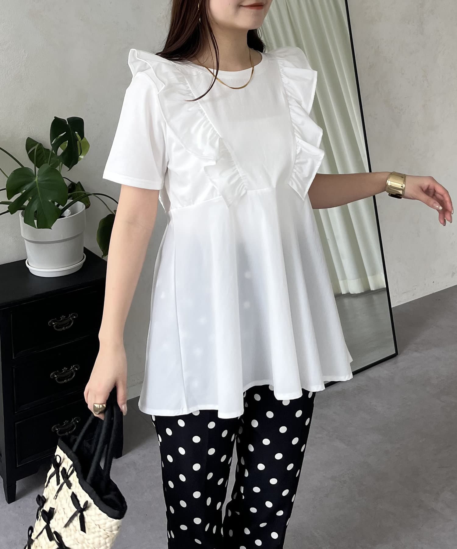 TOP > prose verse > レディース > トップス > Tシャツ/カットソー > フリルドッキングペプラムTシャツ