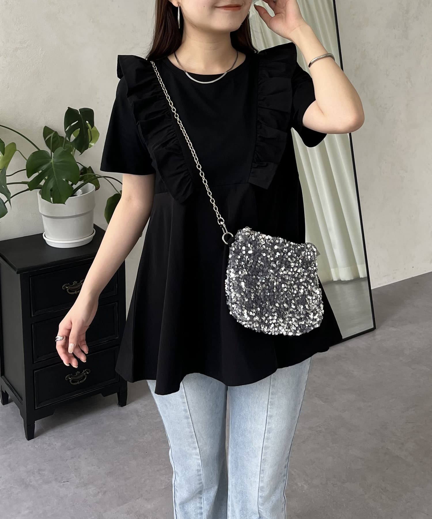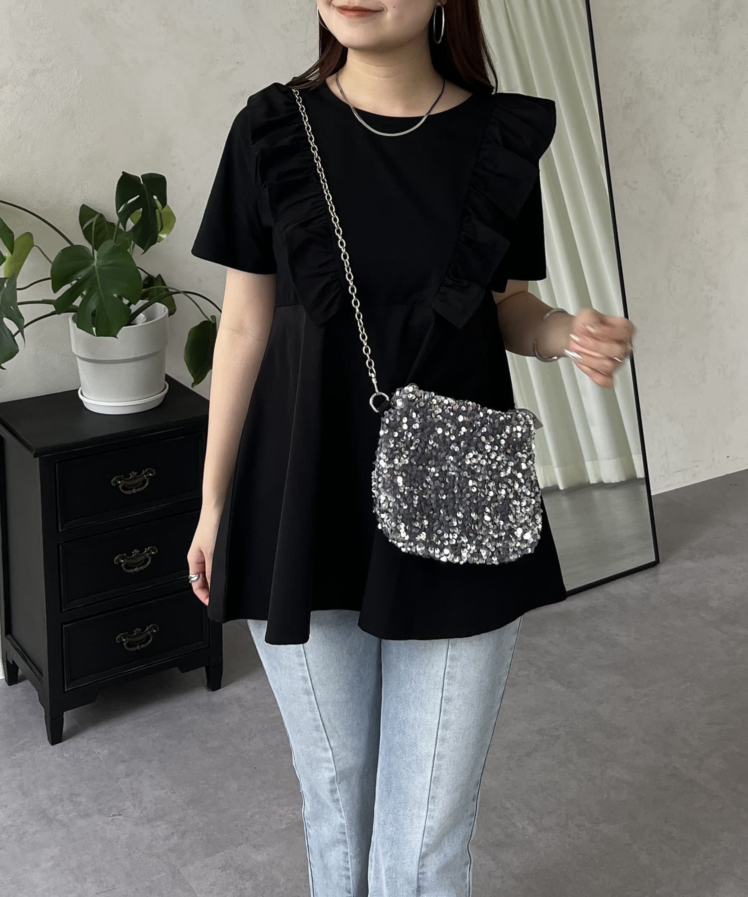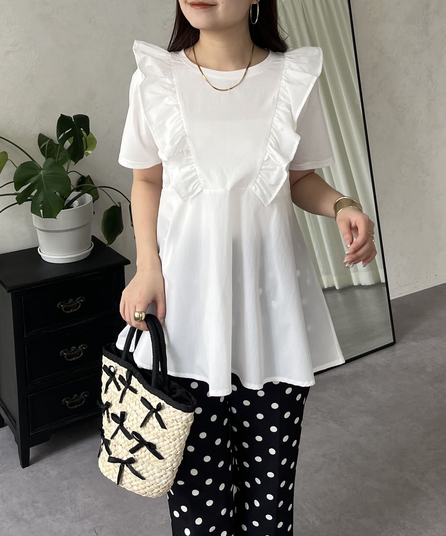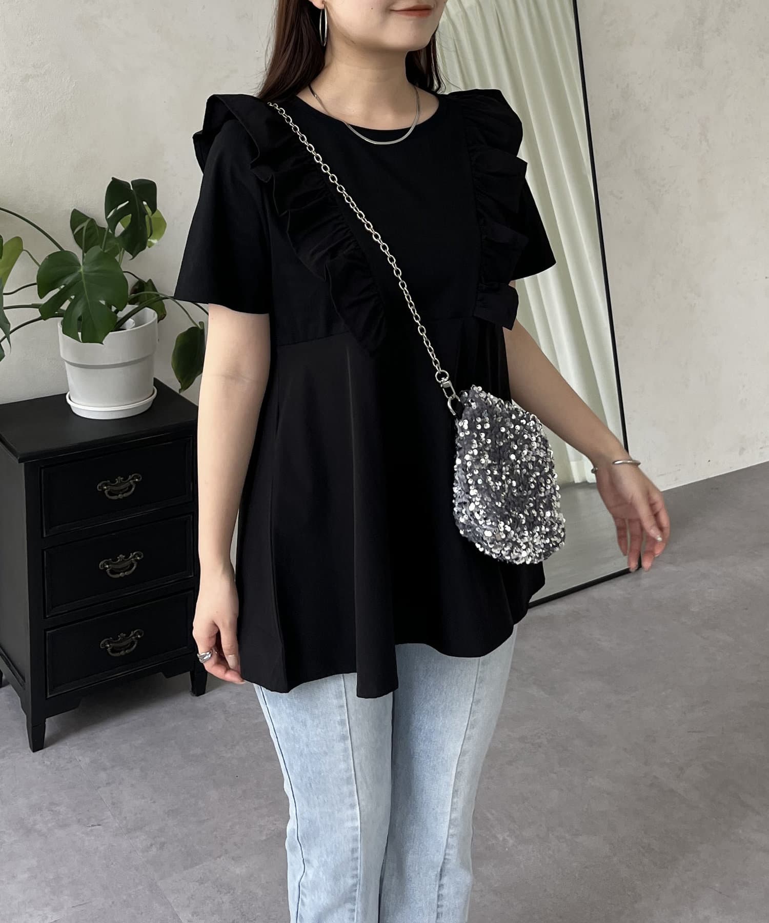 フリル/tシャツ/ペプラム/体型カバー/大人可愛い