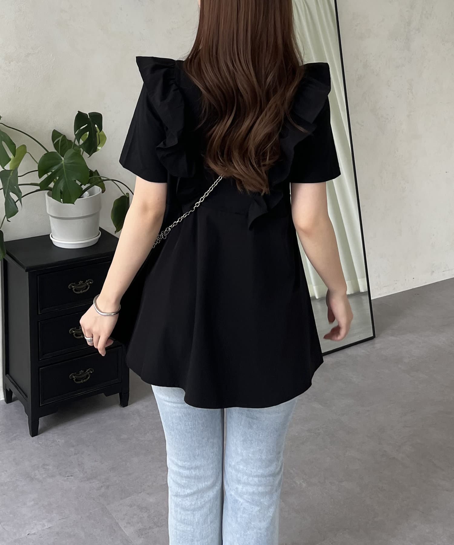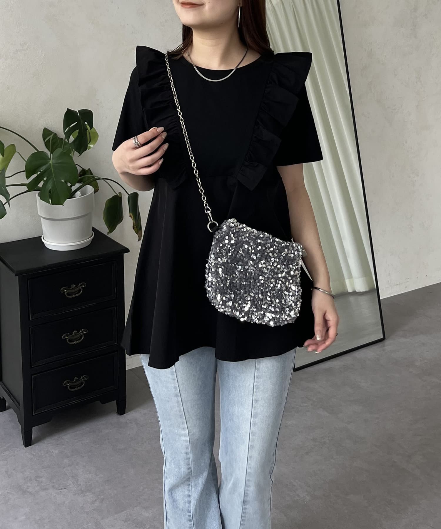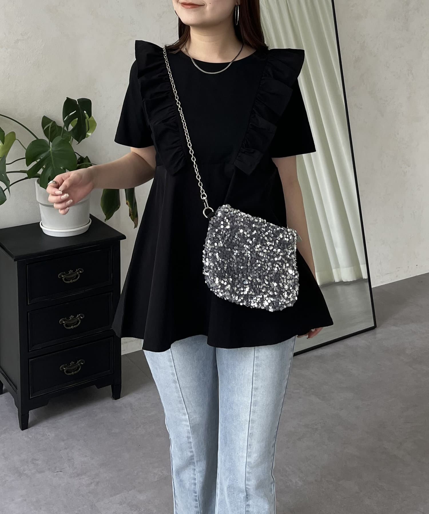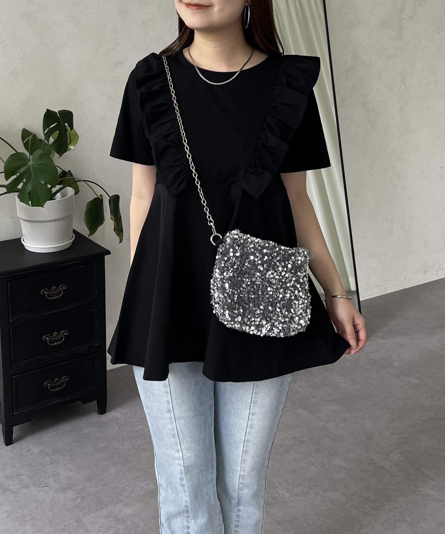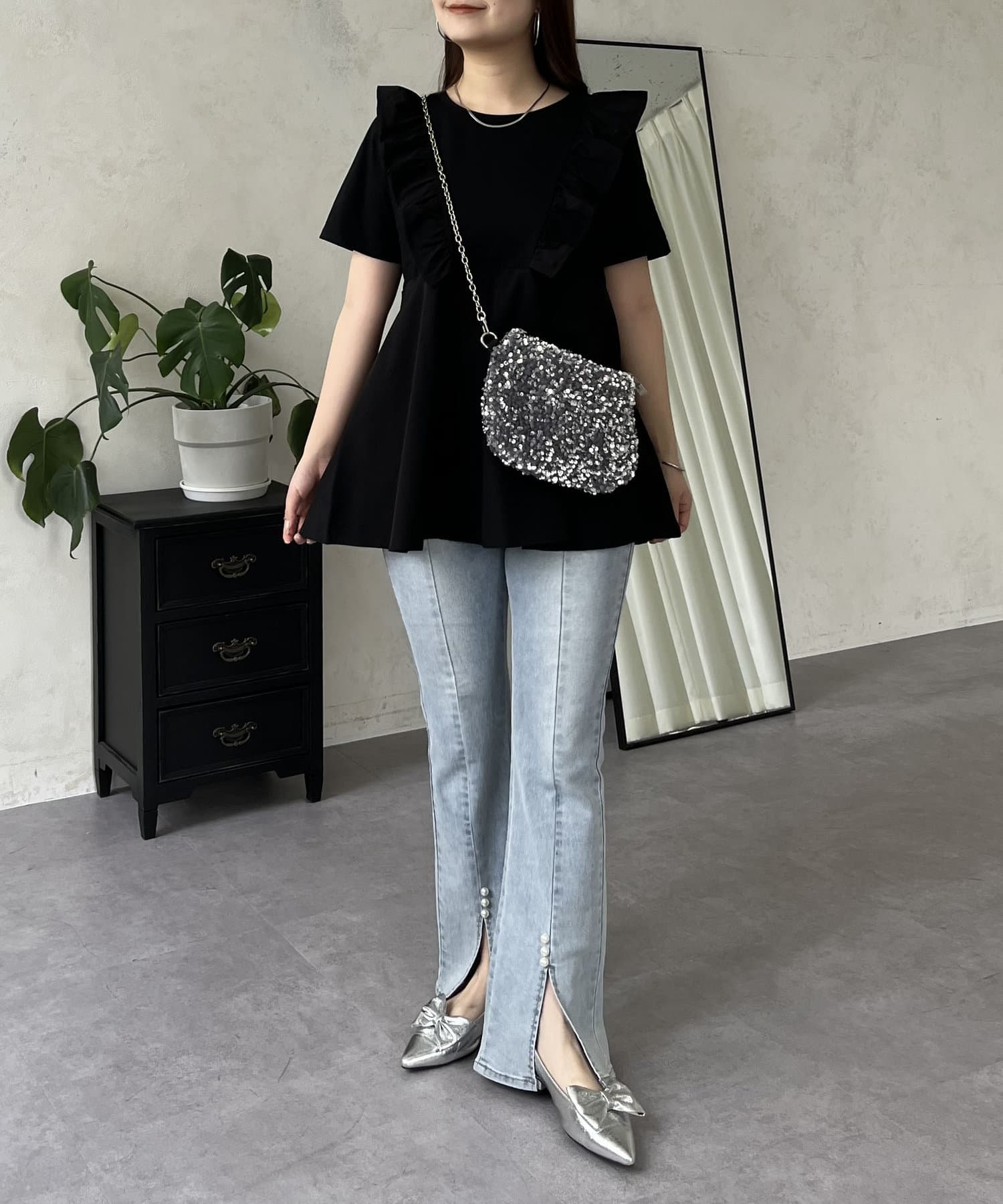 フリル/tシャツ/ペプラム/体型カバー/大人可愛い