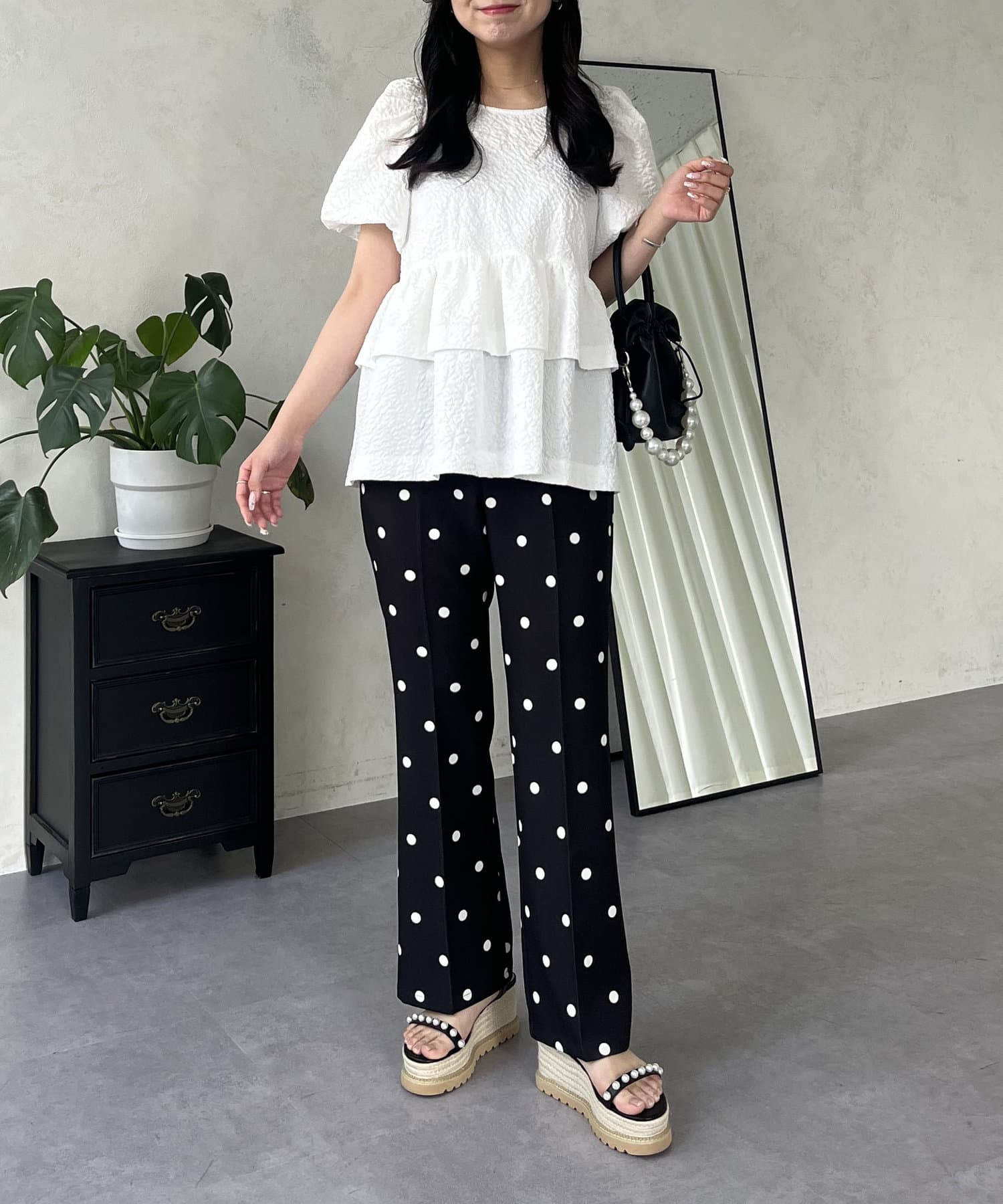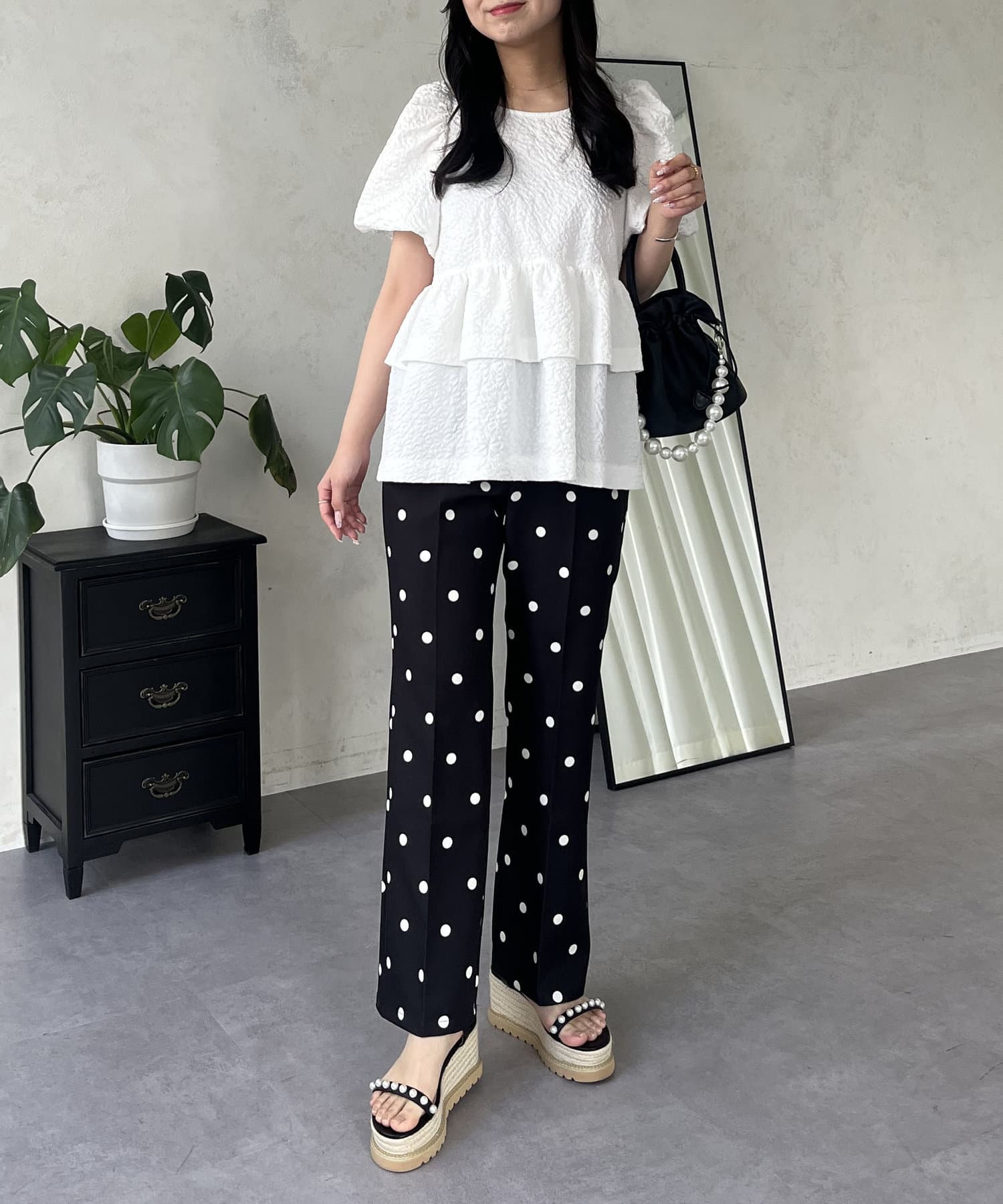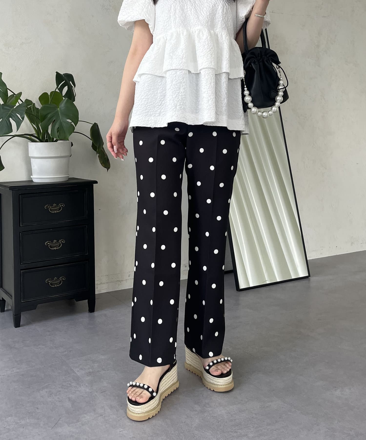 コーデのアクセントにぴったりなドットパンツ