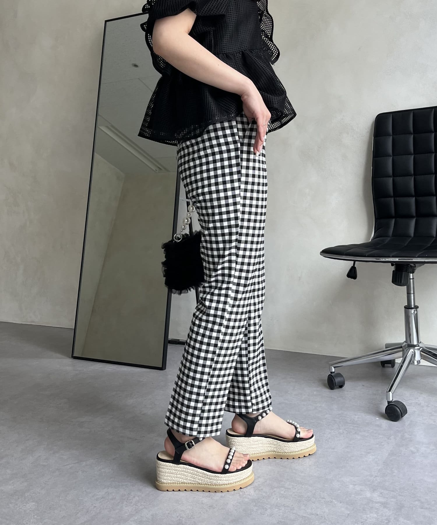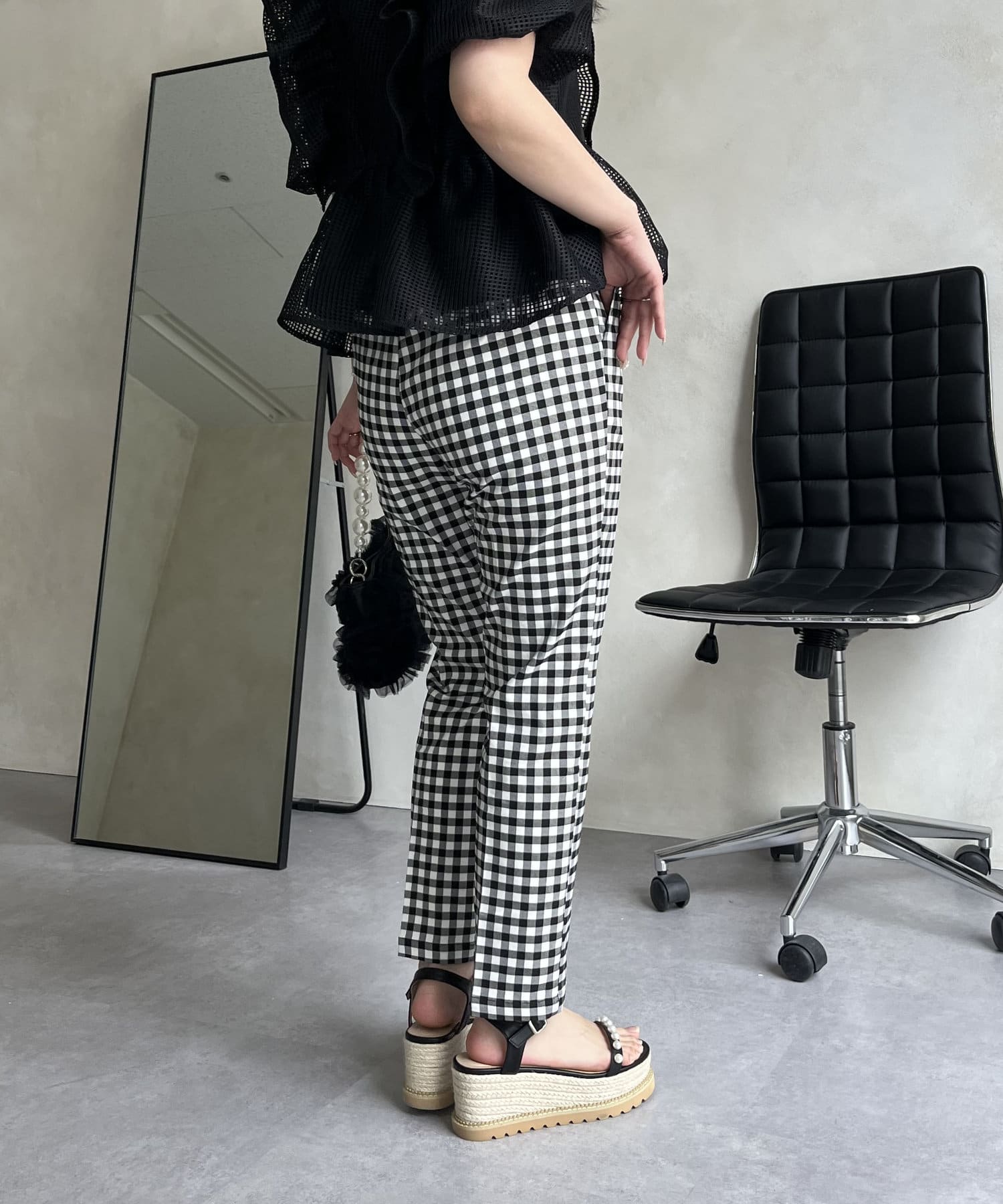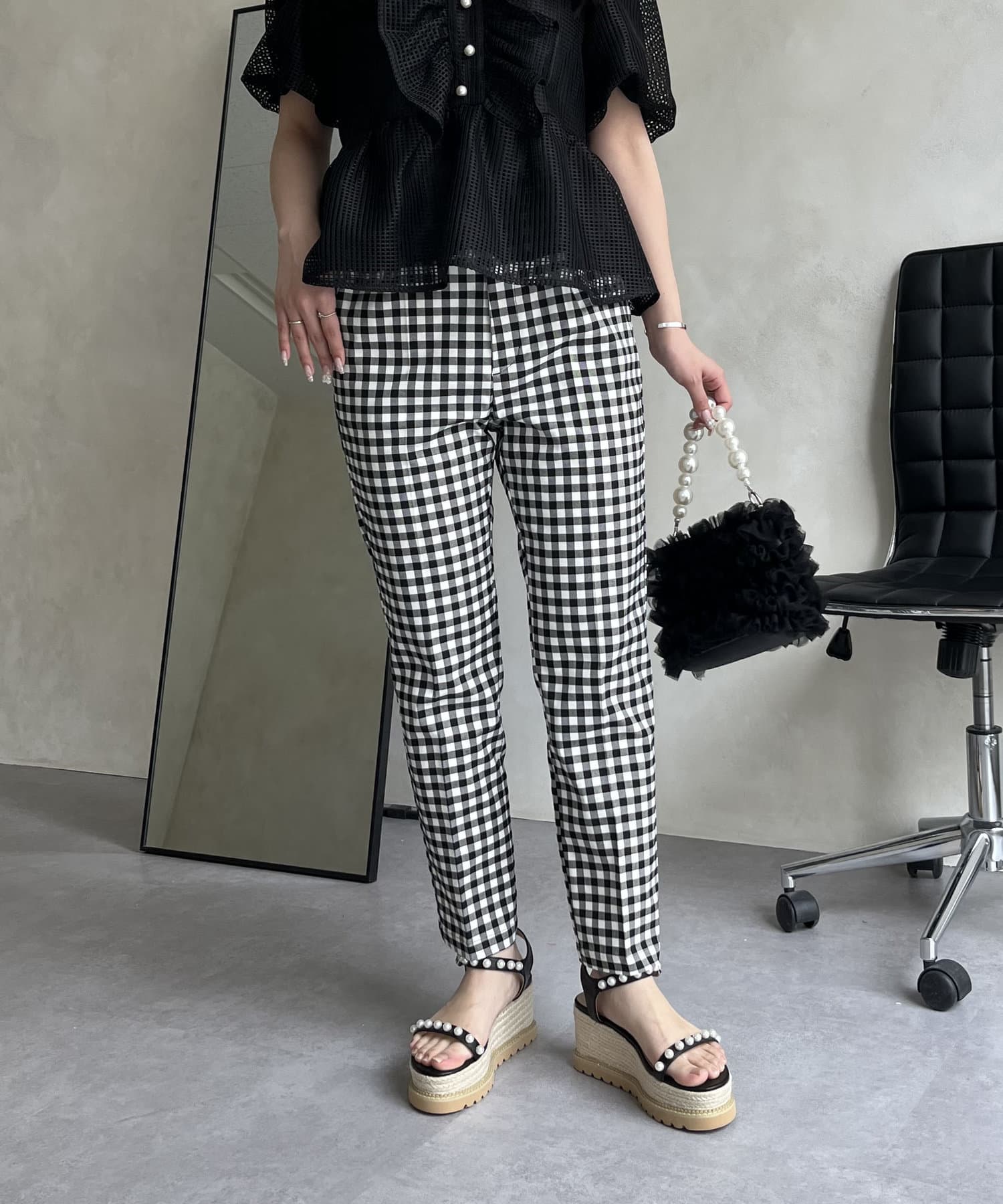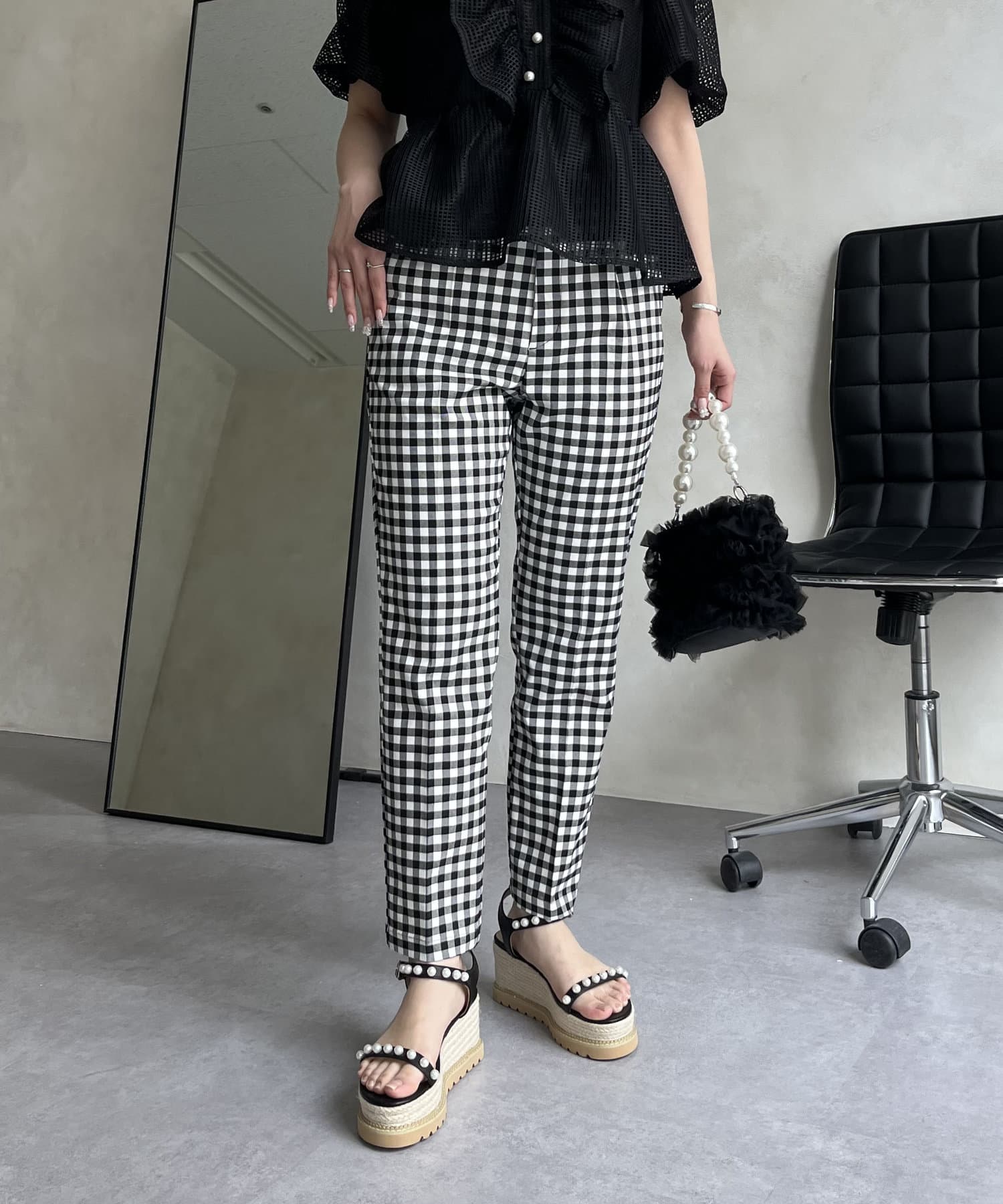 大人の女性を演出する、ギンガムチェックパンツ