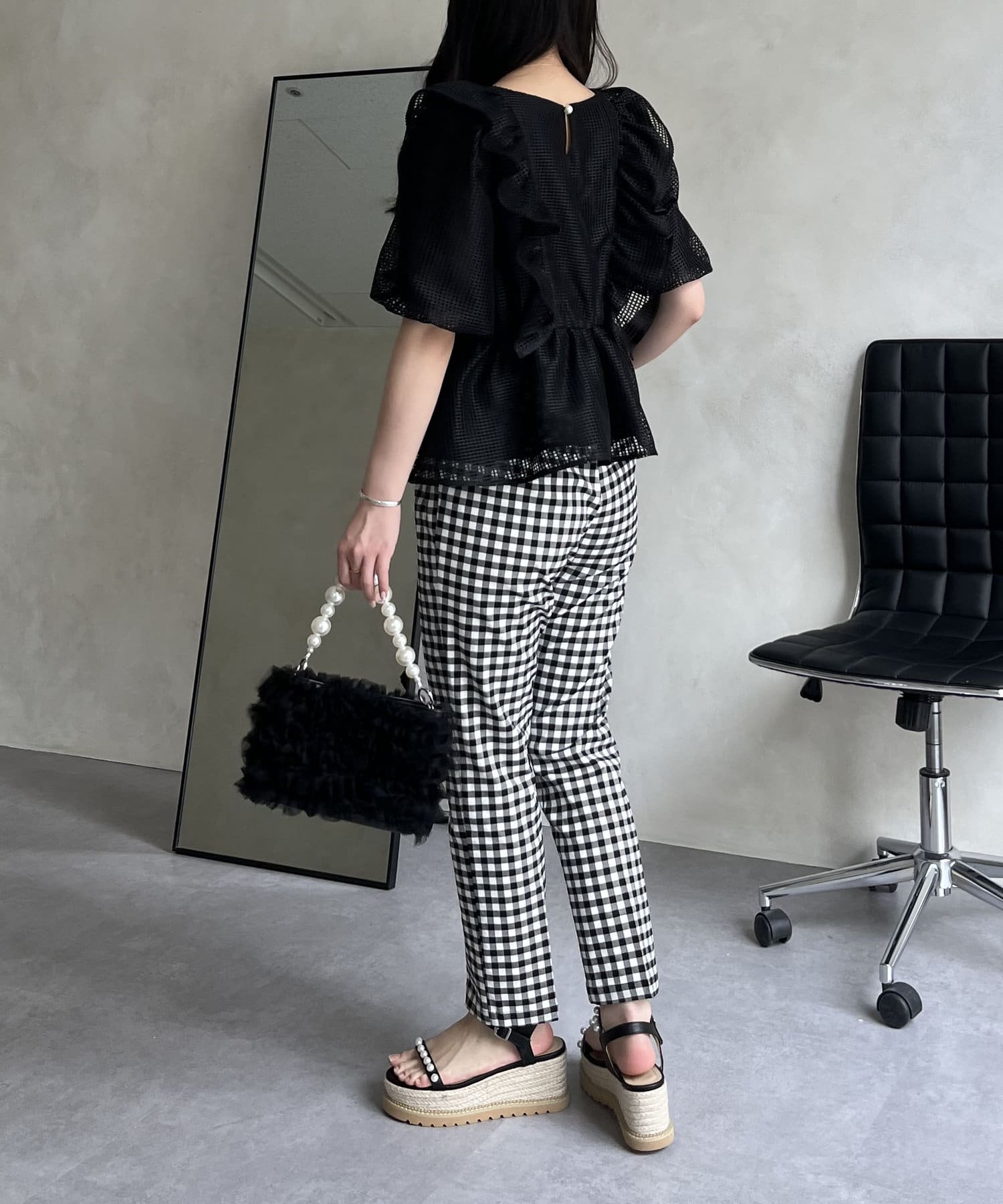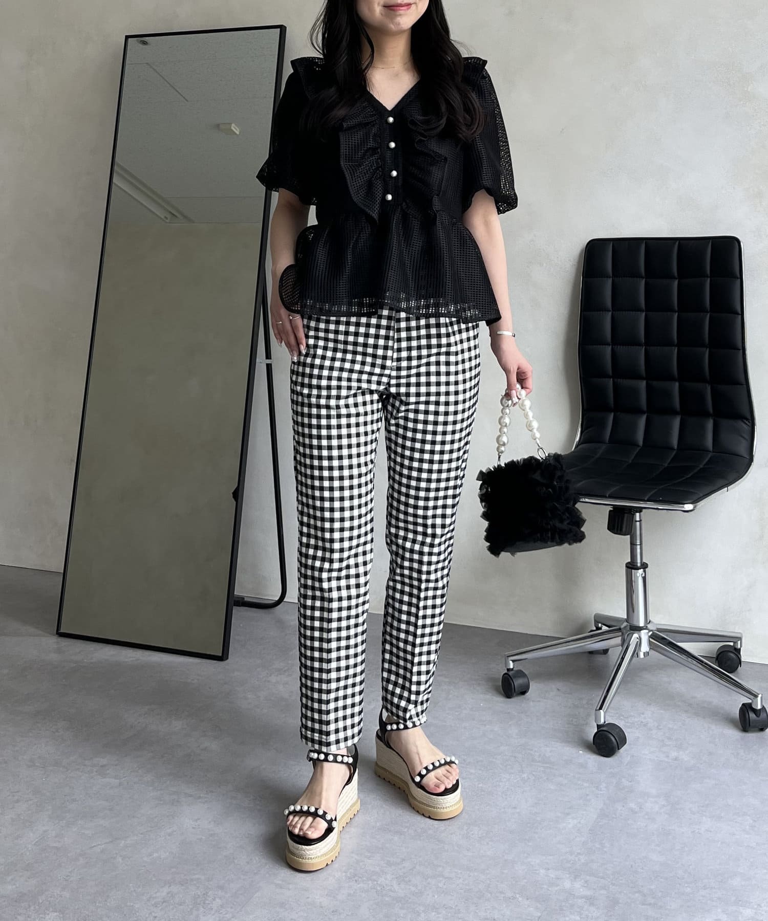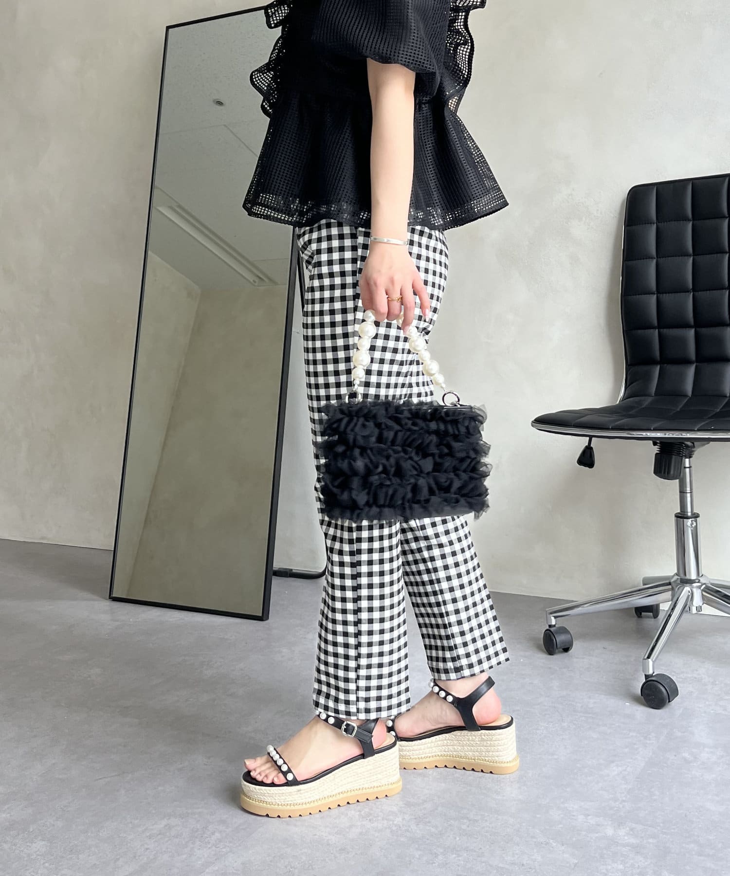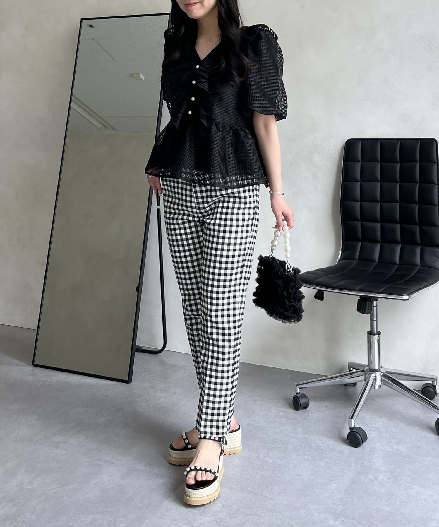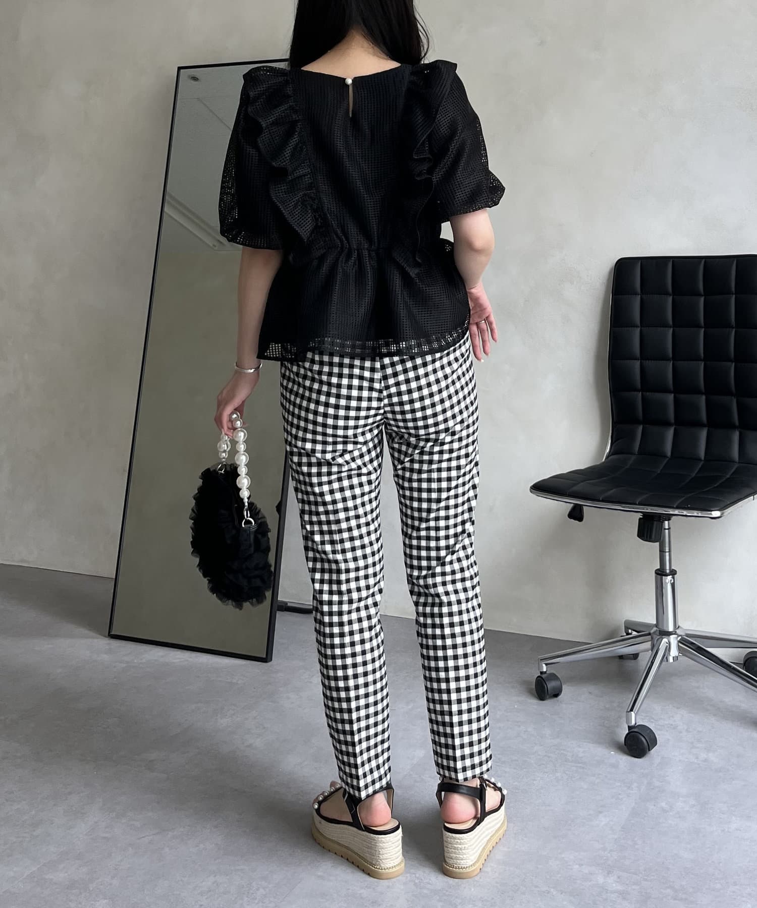 大人の女性を演出する、ギンガムチェックパンツ